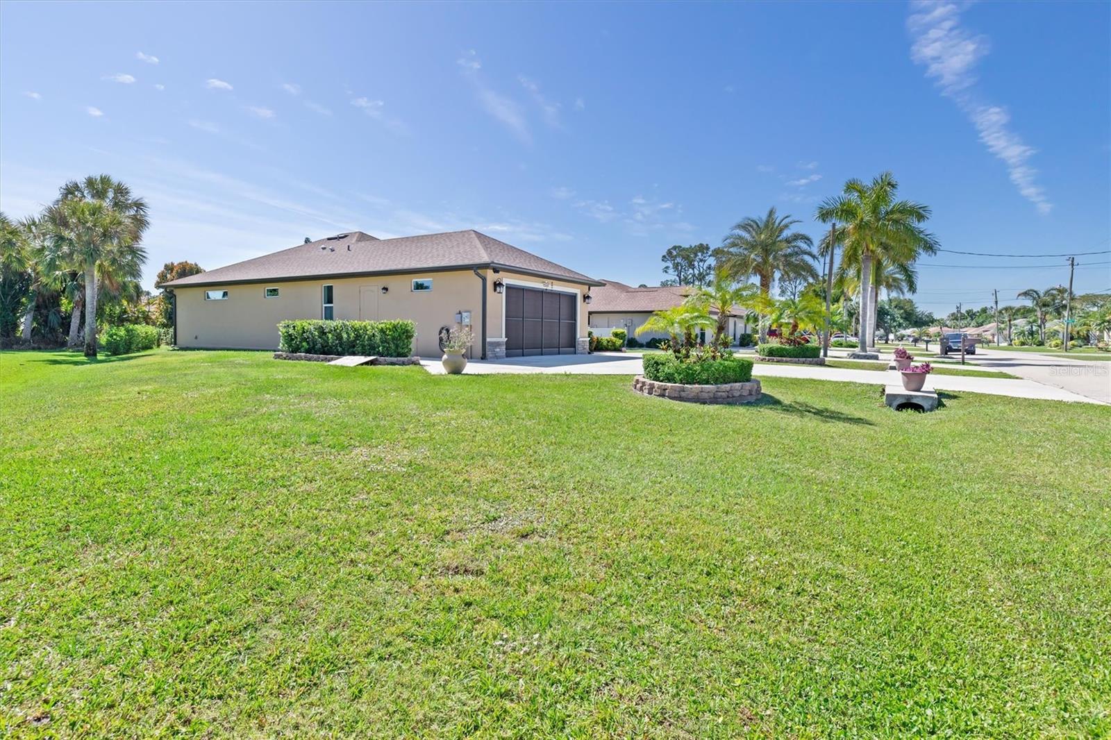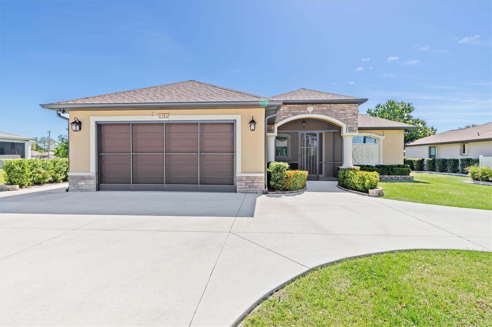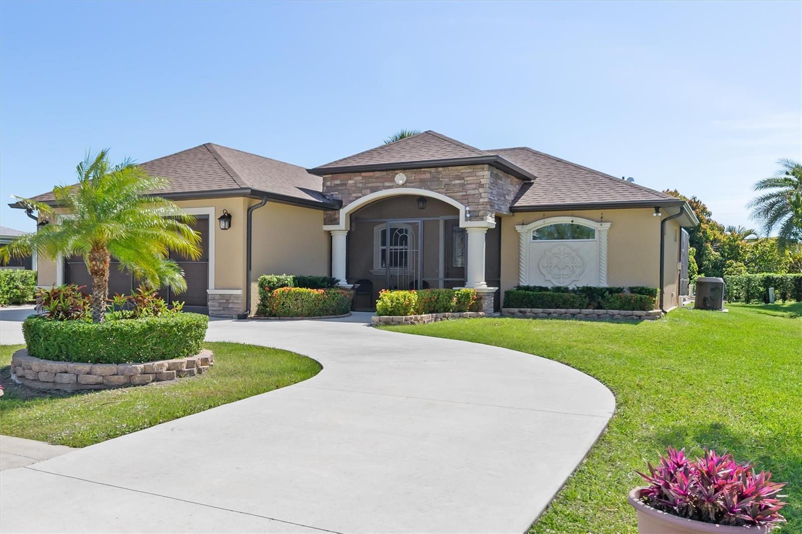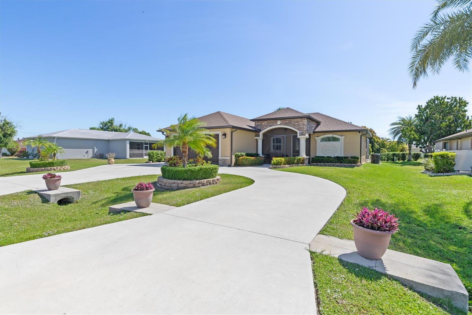 EXQUISITE DEEP CREEK HOME. From the moment you enter this CUSTOM-BUILT HOME it will be clear that this home was designed for both relaxed living and casual entertaining, both indoors and outdoors. The owner spared no expense when selecting their builder who delivered second-to-none craftmanship and who selected quality materials that transitioned this HOUSE into a HOME for its owners. Beautiful, mature landscaping accentuates the curb appeal at this premium location set against a backdrop of additional immaculate kept homes on Santarem Circle. As you approach the CIRCULAR DRIVE - which easily accommodates up to four vehicles due to its widened expanse – you will note there is also an oversized TWO-CAR GARAGE. Extend a warm welcome to your guests from your screened front patio and lead them into your home where they will find a well-designed, open floor plan. Off the foyer, there is a well-equipped chef’s kitchen, complete with stainless steel appliances, custom cabinetry with soft-close doors and draws, a large prepping island/breakfast bar with gorgeous quartz countertop, a window over the sink to take in the views, and a functional built-in desk/computer area. With 9’4” high ceilings throughout, the spacious family room has a cathedral ceiling and allows for interaction with your family and guests indoors, as well as a direct path outdoors through the pocketed sliders to your screened lanai and pool area. Lounge in your heated pool while your guests mingle under the covered, shaded lanai. Boasting TWO PRIMARY ENSUITE BEDROOMS, each afford their own luxurious spa-like ambience where your privacy and relaxation are guaranteed. The interior laundry room offers extra space for storage and multi-tasking. The home’s numerous upgrades and features are complemented by natural light and neutral hues that are both soothing and aesthetically pleasing. Designed with accessibility in mind, this home offers the convenience of aging in place, making it ideal for individuals seeking comfort and ease. Rest easy knowing that this home is located in ZONE X, where FLOOD INSURANCE IS NOT REQUIRED. The home boasts impact doors and windows for added security and peace of mind. Deep Creek’s deed restrictions ensure the preservation of the community's charm and eco-system, while meticulously groomed landscaping and abundant waterfowl enhance the community’s picturesque surroundings. Enjoy the convenience of shopping, medical facilities, and area attractions just minutes away, as well as nearby pristine beaches perfect for leisurely strolls or quick dips in the Gulf of Mexico. The charming and historical community of Punta Gorda is just 10 minutes away with waterfront dining, the Harbor Walk, farmers’ markets, pickleball complex, festivals and so much more. Within just 15 minutes of the Punta Gorda airport, enjoy over 55 non-stop, affordable flights serviced by Allegiant Airlines. Easy access to I-75 and US-41 make this an ideal location to call home. Sarasota is just 40 minutes to the North and Ft. Myers 30 minutes to the South, you will have access to world-class fishing, boating, water sports, and golfing. Don’t miss your chance to call this beautiful property home! Ask for the Custom Features Sheet and be sure to view the VIRTUAL TOUR. Schedule your private showing to experience the lifestyle you deserve!