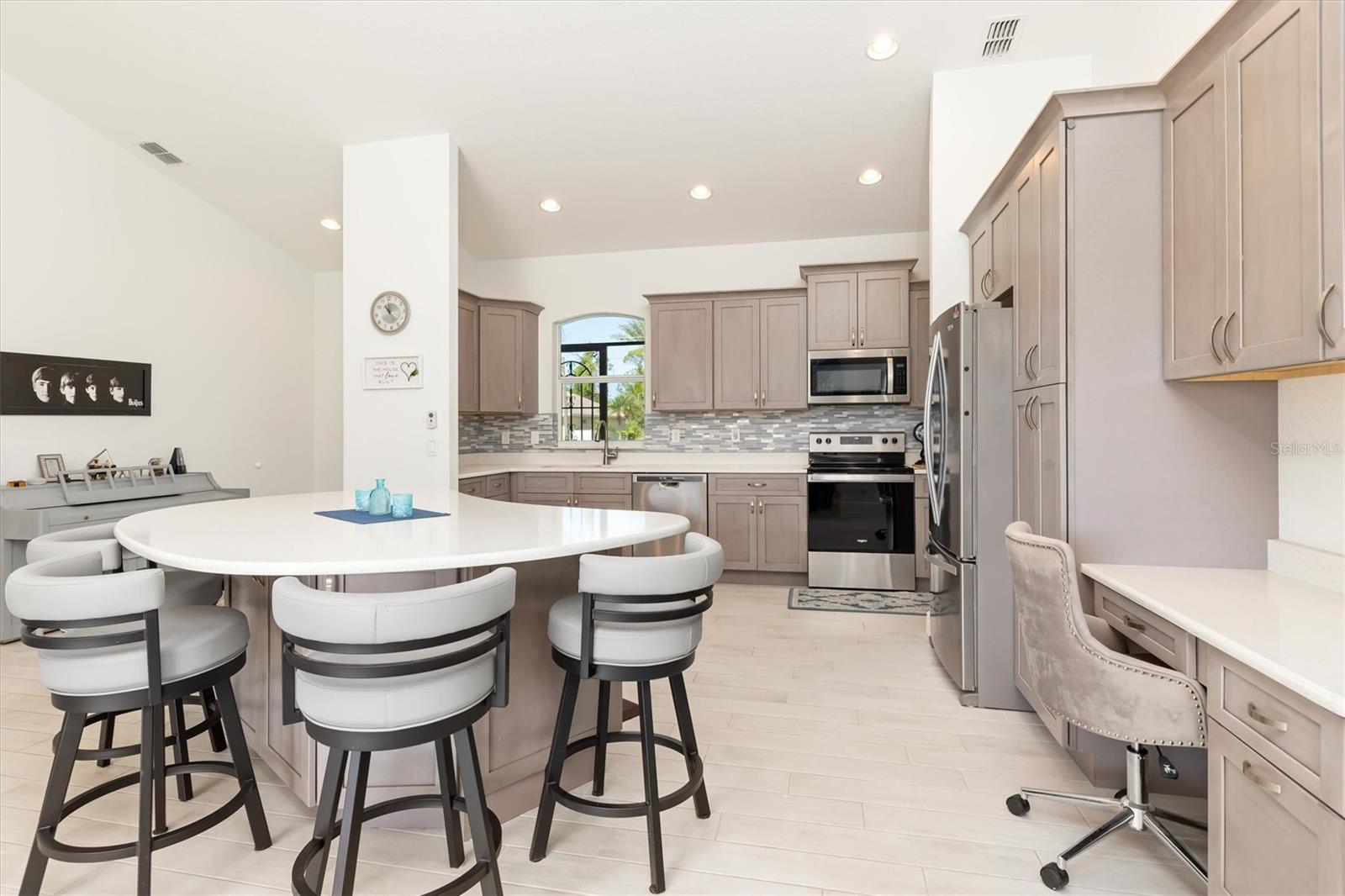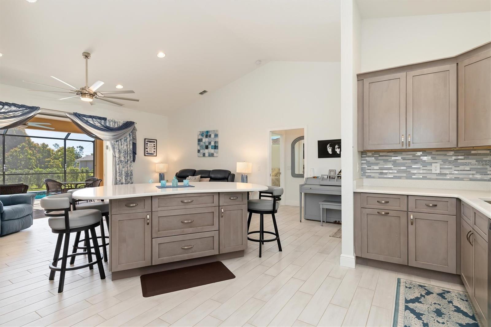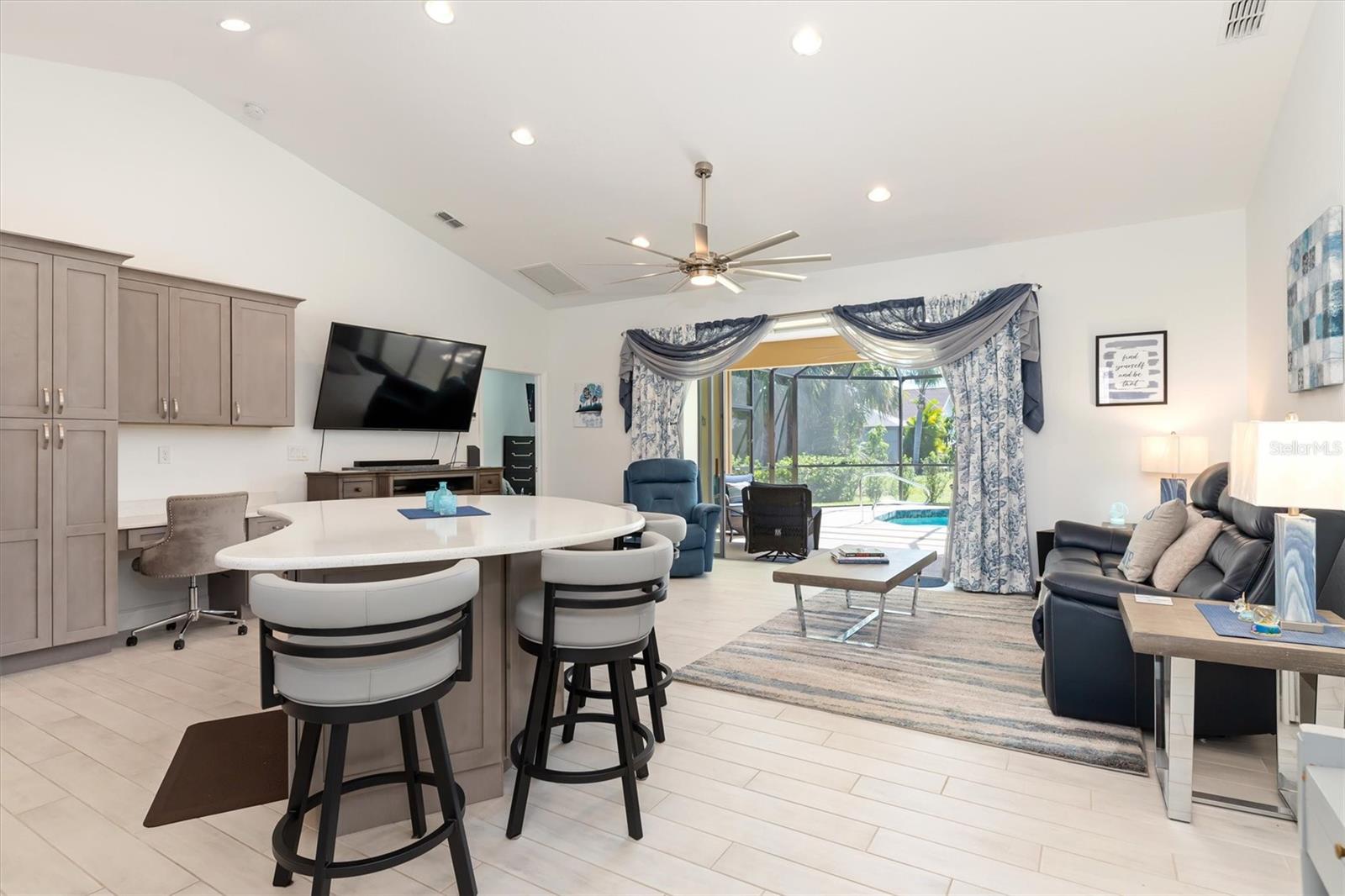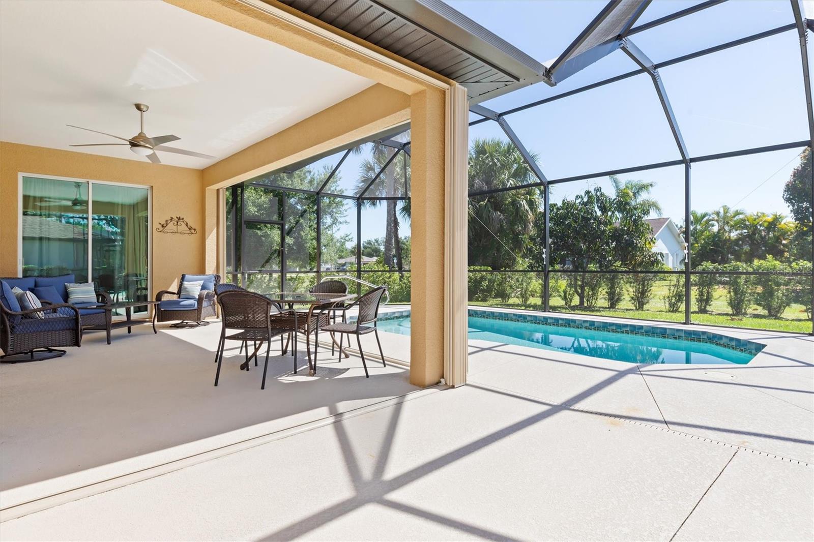 EXQUISITE DEEP CREEK HOME. From the moment you enter this CUSTOM-BUILT HOME it will be clear that this home was designed for both relaxed living and casual entertaining, both indoors and outdoors. The owner spared no expense when selecting their builder who delivered second-to-none craftmanship and who selected quality materials that transitioned this HOUSE into a HOME for its owners. Beautiful, mature landscaping accentuates the curb appeal at this premium location set against a backdrop of additional immaculate kept homes on Santarem Circle. As you approach the CIRCULAR DRIVE - which easily accommodates up to four vehicles due to its widened expanse – you will note there is also an oversized TWO-CAR GARAGE. Extend a warm welcome to your guests from your screened front patio and lead them into your home where they will find a well-designed, open floor plan. Off the foyer, there is a well-equipped chef’s kitchen, complete with stainless steel appliances, custom cabinetry with soft-close doors and draws, a large prepping island/breakfast bar with gorgeous quartz countertop, a window over the sink to take in the views, and a functional built-in desk/computer area. With 9’4” high ceilings throughout, the spacious family room has a cathedral ceiling and allows for interaction with your family and guests indoors, as well as a direct path outdoors through the pocketed sliders to your screened lanai and pool area. Lounge in your heated pool while your guests mingle under the covered, shaded lanai. Boasting TWO PRIMARY ENSUITE BEDROOMS, each afford their own luxurious spa-like ambience where your privacy and relaxation are guaranteed. The interior laundry room offers extra space for storage and multi-tasking. The home’s numerous upgrades and features are complemented by natural light and neutral hues that are both soothing and aesthetically pleasing. Designed with accessibility in mind, this home offers the convenience of aging in place, making it ideal for individuals seeking comfort and ease. Rest easy knowing that this home is located in ZONE X, where FLOOD INSURANCE IS NOT REQUIRED. The home boasts impact doors and windows for added security and peace of mind. Deep Creek’s deed restrictions ensure the preservation of the community's charm and eco-system, while meticulously groomed landscaping and abundant waterfowl enhance the community’s picturesque surroundings. Enjoy the convenience of shopping, medical facilities, and area attractions just minutes away, as well as nearby pristine beaches perfect for leisurely strolls or quick dips in the Gulf of Mexico. The charming and historical community of Punta Gorda is just 10 minutes away with waterfront dining, the Harbor Walk, farmers’ markets, pickleball complex, festivals and so much more. Within just 15 minutes of the Punta Gorda airport, enjoy over 55 non-stop, affordable flights serviced by Allegiant Airlines. Easy access to I-75 and US-41 make this an ideal location to call home. Sarasota is just 40 minutes to the North and Ft. Myers 30 minutes to the South, you will have access to world-class fishing, boating, water sports, and golfing. Don’t miss your chance to call this beautiful property home! Ask for the Custom Features Sheet and be sure to view the VIRTUAL TOUR. Schedule your private showing to experience the lifestyle you deserve!