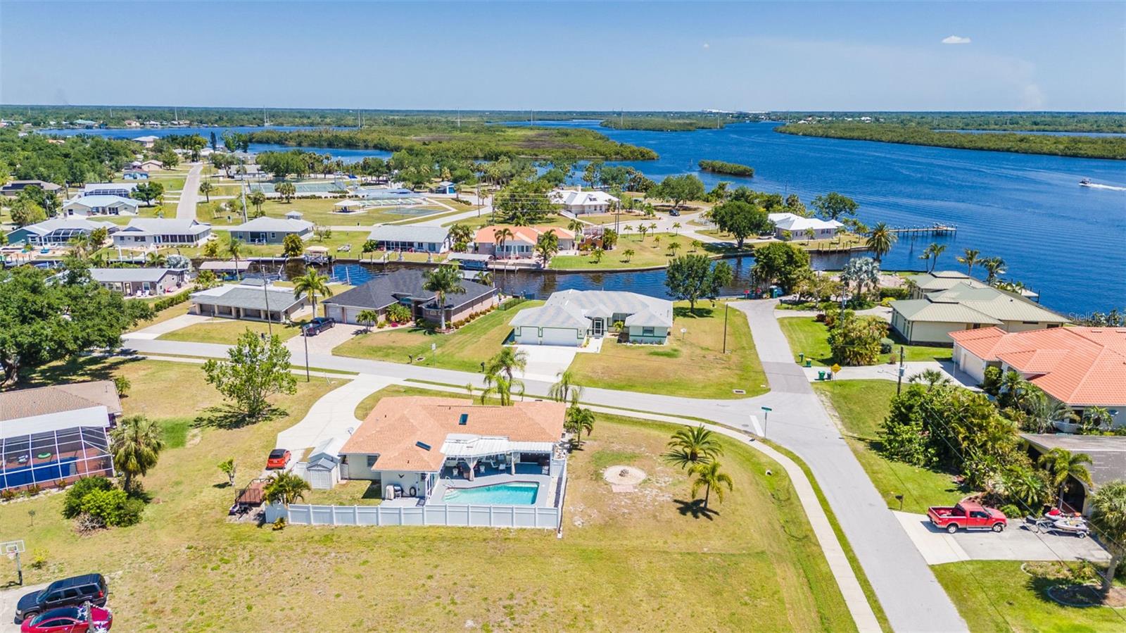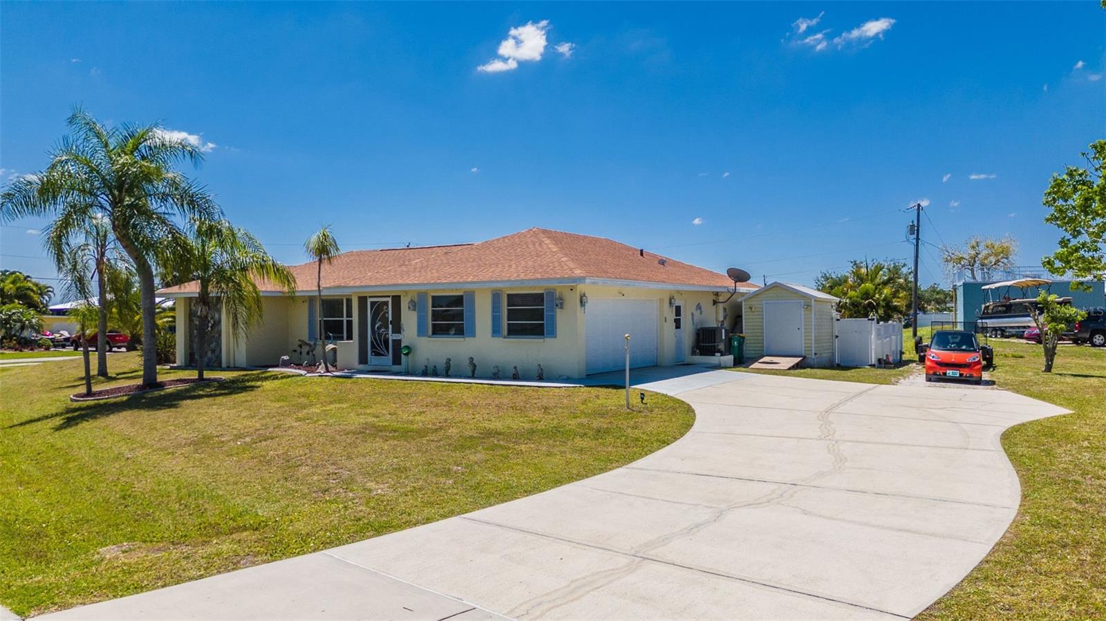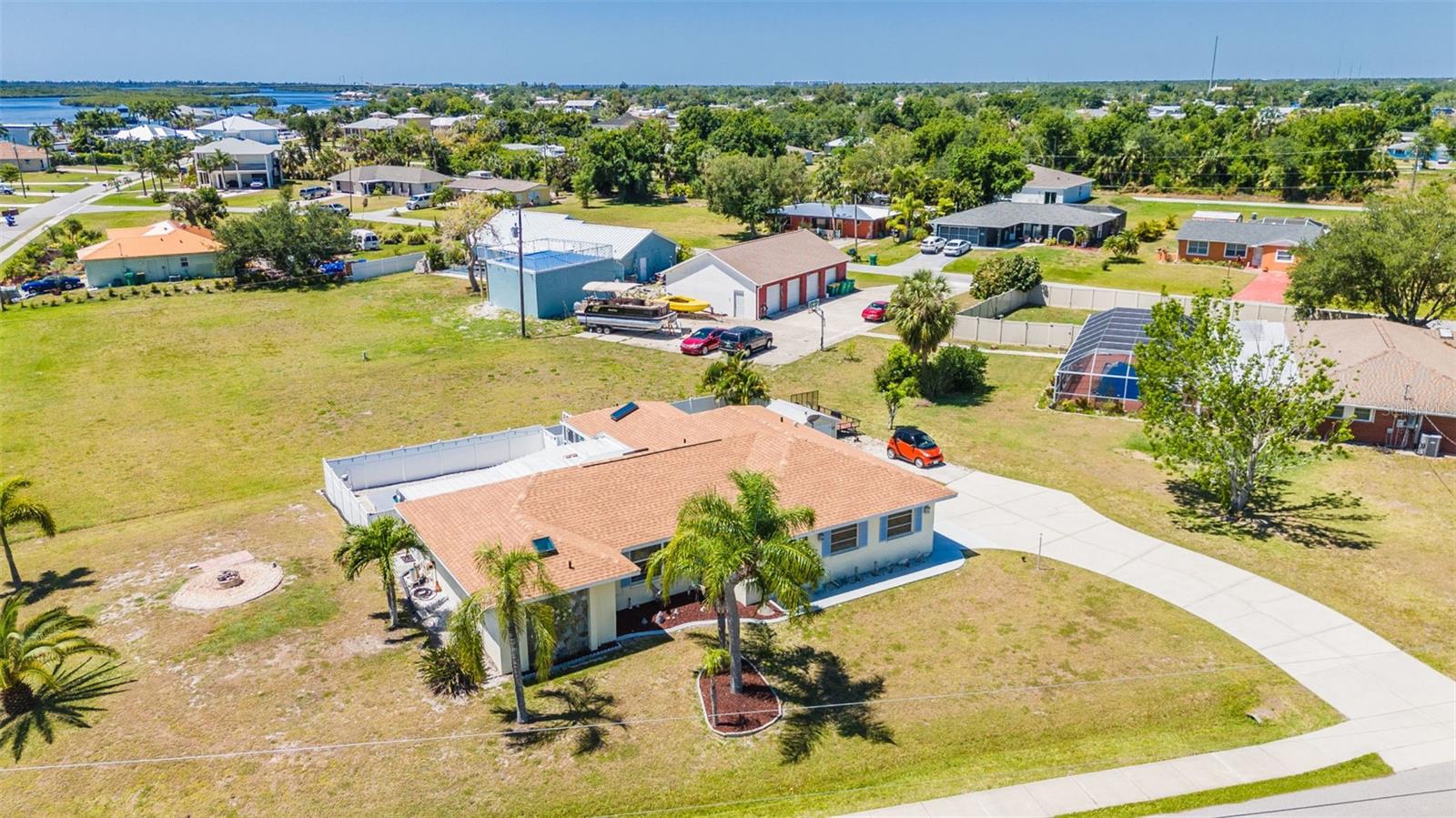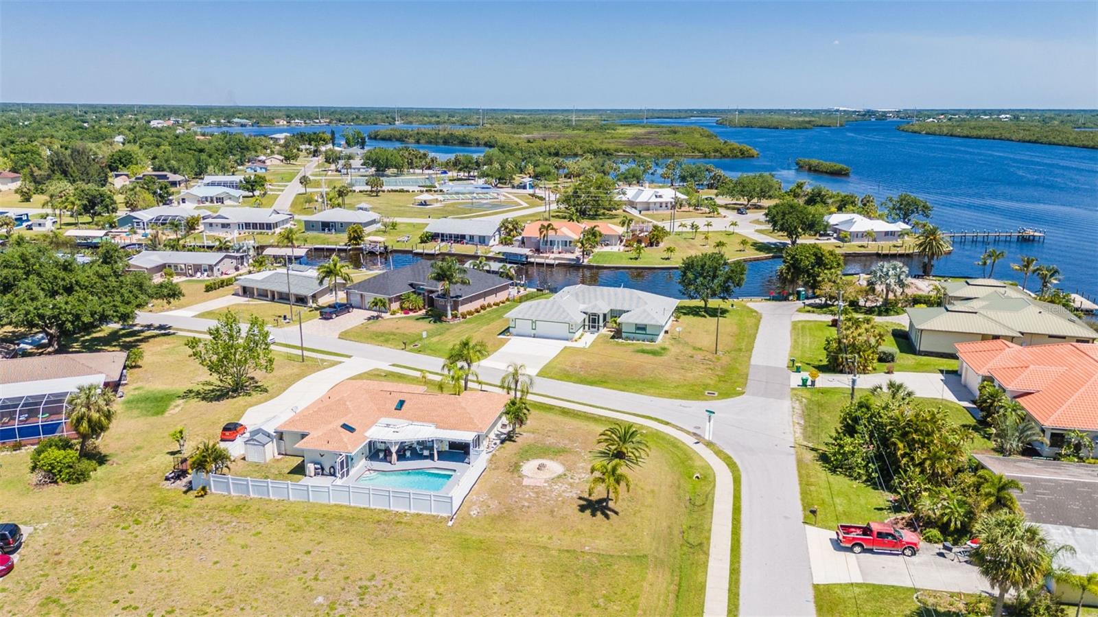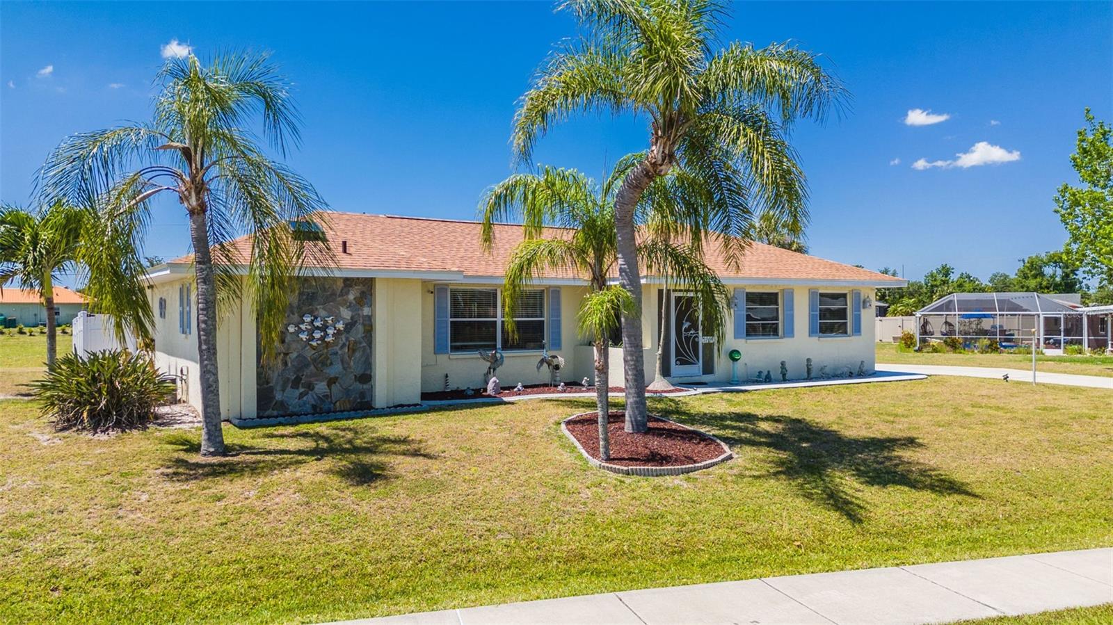 Introducing this remarkable two-bedroom, two-bathroom home nestled in the charming Harbour Heights community, just a stone's throw away from the tranquil Peace River. Upon stepping through the front door, you'll be captivated by the exquisite diagonal tile flooring that spans throughout the living spaces. Boasting both a spacious living room and a cozy family room, this home offers the perfect blend of comfort and functionality. The well-appointed kitchen features elegant granite countertops and ample cabinet space with under cabinet lighting that's remote controlled and changes colors. The convenient indoor laundry room is equipped with a full-size washer and dryer. The guest bedroom offers generous proportions, accompanied by a guest bathroom complete with a tub-shower combo and direct access to the inviting pool area. The primary bedroom is a true retreat, boasting an expansive layout with two separate walk-in closets and an en suite primary bathroom featuring a walk-in shower, a linen closet, and a skylight that bathes the space in natural light. Entertain with ease in the spacious lanai accessed through three sliders, two of which conveniently pocket away, seamlessly blending indoor and outdoor living. A fenced area provides a safe haven for pets to play, while a two-car garage and additional shed for ample storage space and RV parking with 30 AMP, completing this exceptional offering in Harbour Heights. Must see to appreciate, make an appointment today!