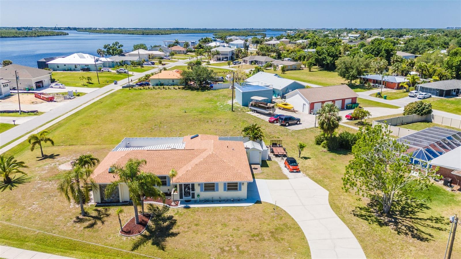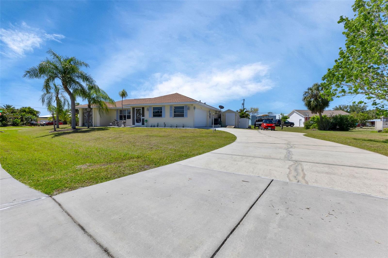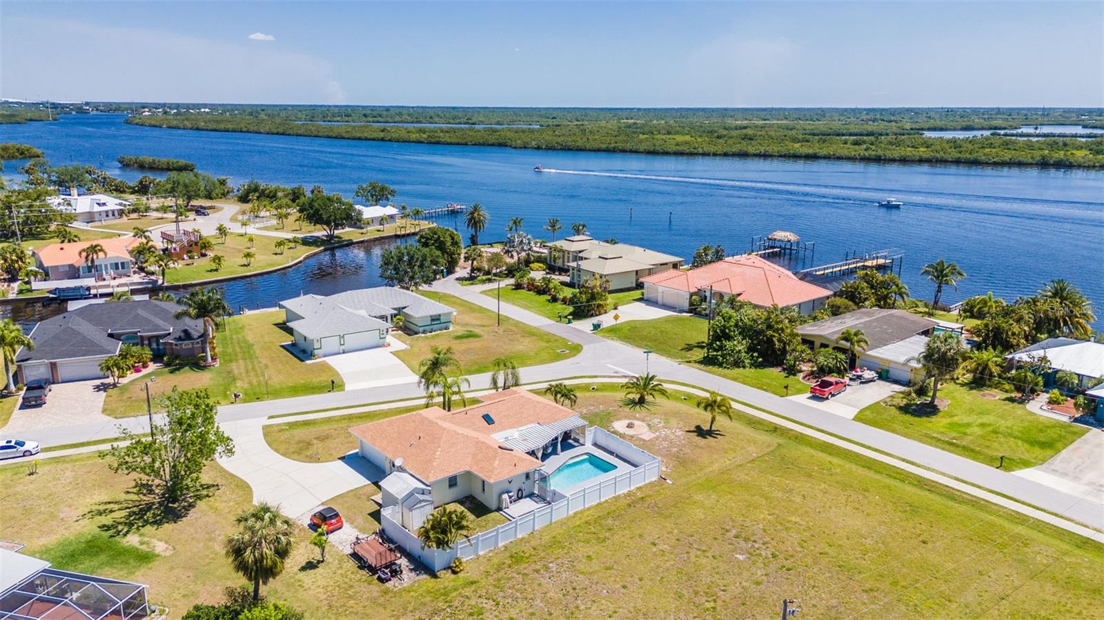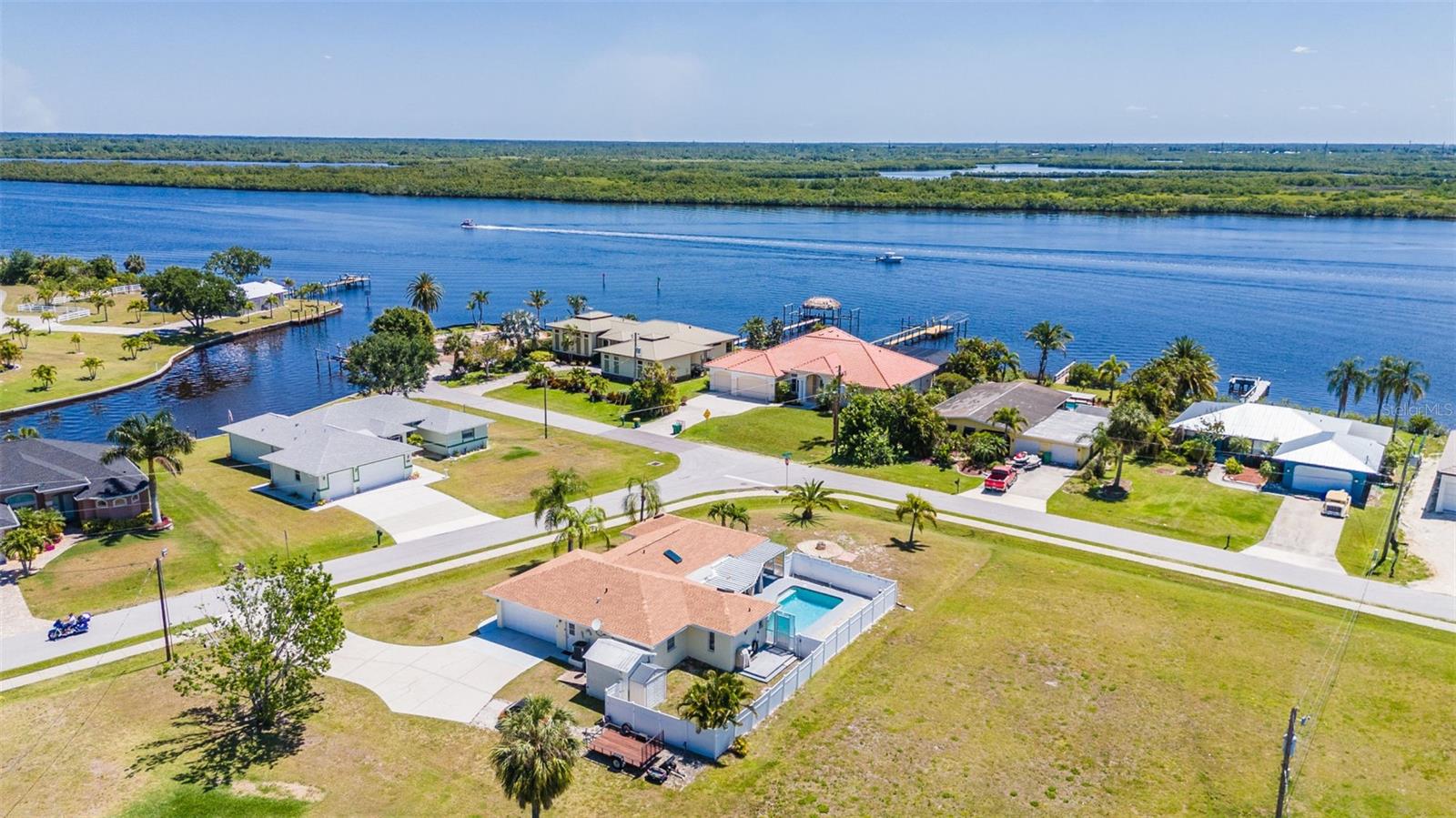 Introducing this remarkable two-bedroom, two-bathroom home nestled in the charming Harbour Heights community, just a stone's throw away from the tranquil Peace River. Upon stepping through the front door, you'll be captivated by the exquisite diagonal tile flooring that spans throughout the living spaces. Boasting both a spacious living room and a cozy family room, this home offers the perfect blend of comfort and functionality. The well-appointed kitchen features elegant granite countertops and ample cabinet space with under cabinet lighting that's remote controlled and changes colors. The convenient indoor laundry room is equipped with a full-size washer and dryer. The guest bedroom offers generous proportions, accompanied by a guest bathroom complete with a tub-shower combo and direct access to the inviting pool area. The primary bedroom is a true retreat, boasting an expansive layout with two separate walk-in closets and an en suite primary bathroom featuring a walk-in shower, a linen closet, and a skylight that bathes the space in natural light. Entertain with ease in the spacious lanai accessed through three sliders, two of which conveniently pocket away, seamlessly blending indoor and outdoor living. A fenced area provides a safe haven for pets to play, while a two-car garage and additional shed for ample storage space and RV parking with 30 AMP, completing this exceptional offering in Harbour Heights. Must see to appreciate, make an appointment today!