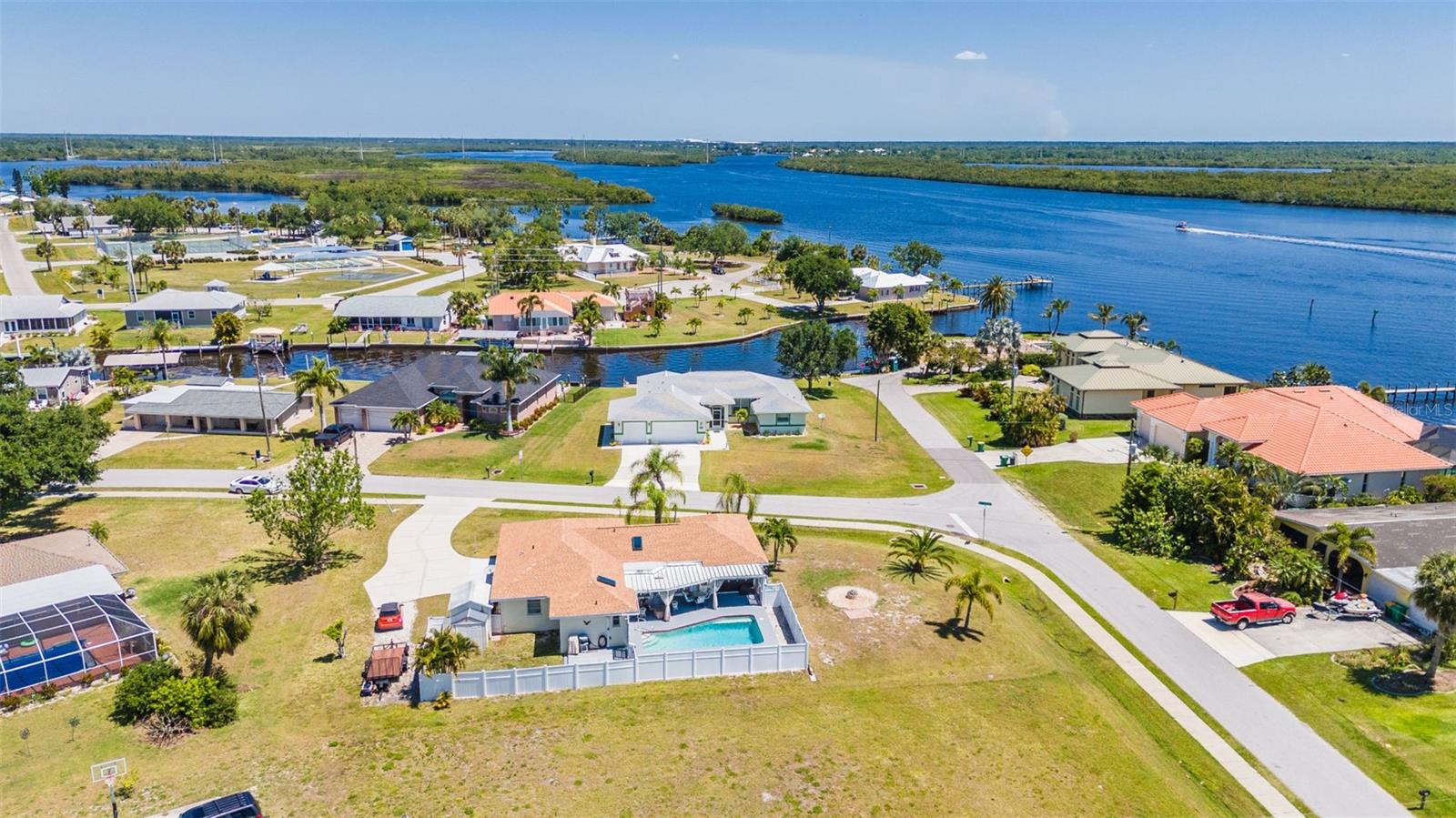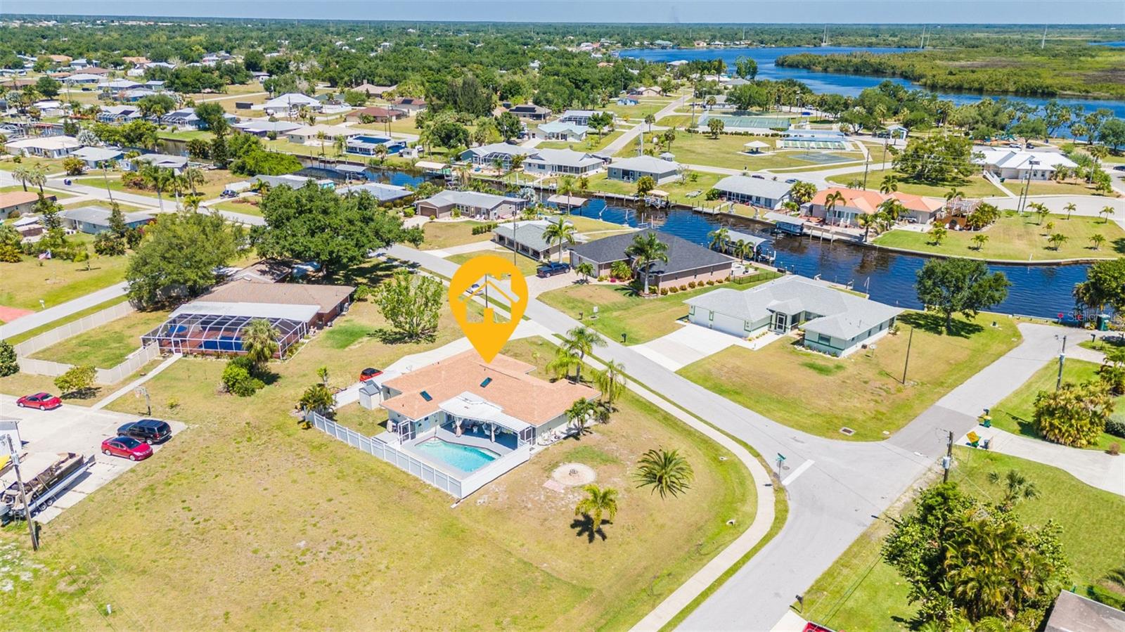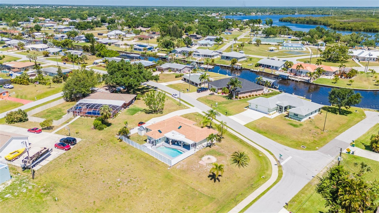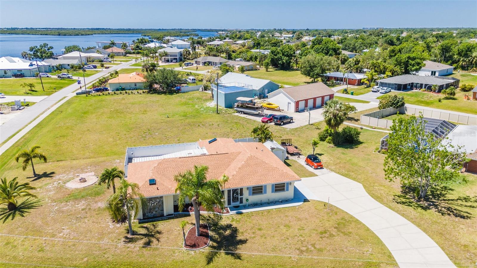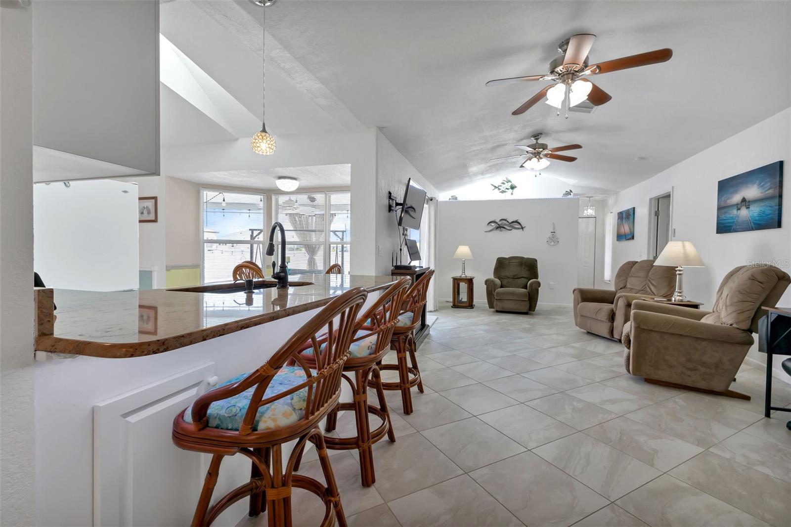 Introducing this remarkable two-bedroom, two-bathroom home nestled in the charming Harbour Heights community, just a stone's throw away from the tranquil Peace River. Upon stepping through the front door, you'll be captivated by the exquisite diagonal tile flooring that spans throughout the living spaces. Boasting both a spacious living room and a cozy family room, this home offers the perfect blend of comfort and functionality. The well-appointed kitchen features elegant granite countertops and ample cabinet space with under cabinet lighting that's remote controlled and changes colors. The convenient indoor laundry room is equipped with a full-size washer and dryer. The guest bedroom offers generous proportions, accompanied by a guest bathroom complete with a tub-shower combo and direct access to the inviting pool area. The primary bedroom is a true retreat, boasting an expansive layout with two separate walk-in closets and an en suite primary bathroom featuring a walk-in shower, a linen closet, and a skylight that bathes the space in natural light. Entertain with ease in the spacious lanai accessed through three sliders, two of which conveniently pocket away, seamlessly blending indoor and outdoor living. A fenced area provides a safe haven for pets to play, while a two-car garage and additional shed for ample storage space and RV parking with 30 AMP, completing this exceptional offering in Harbour Heights. Must see to appreciate, make an appointment today!