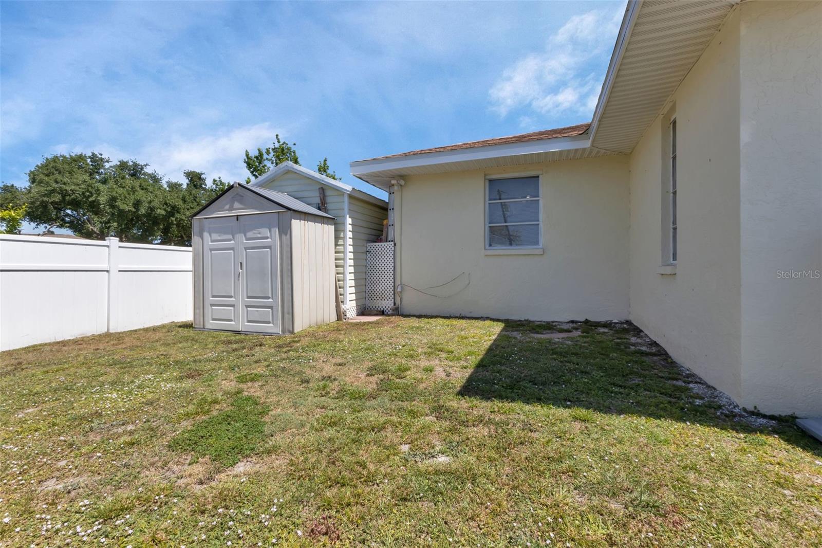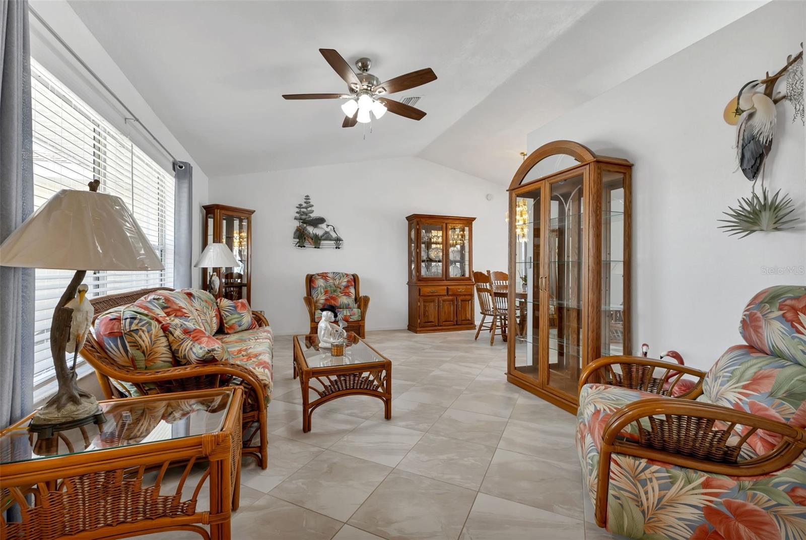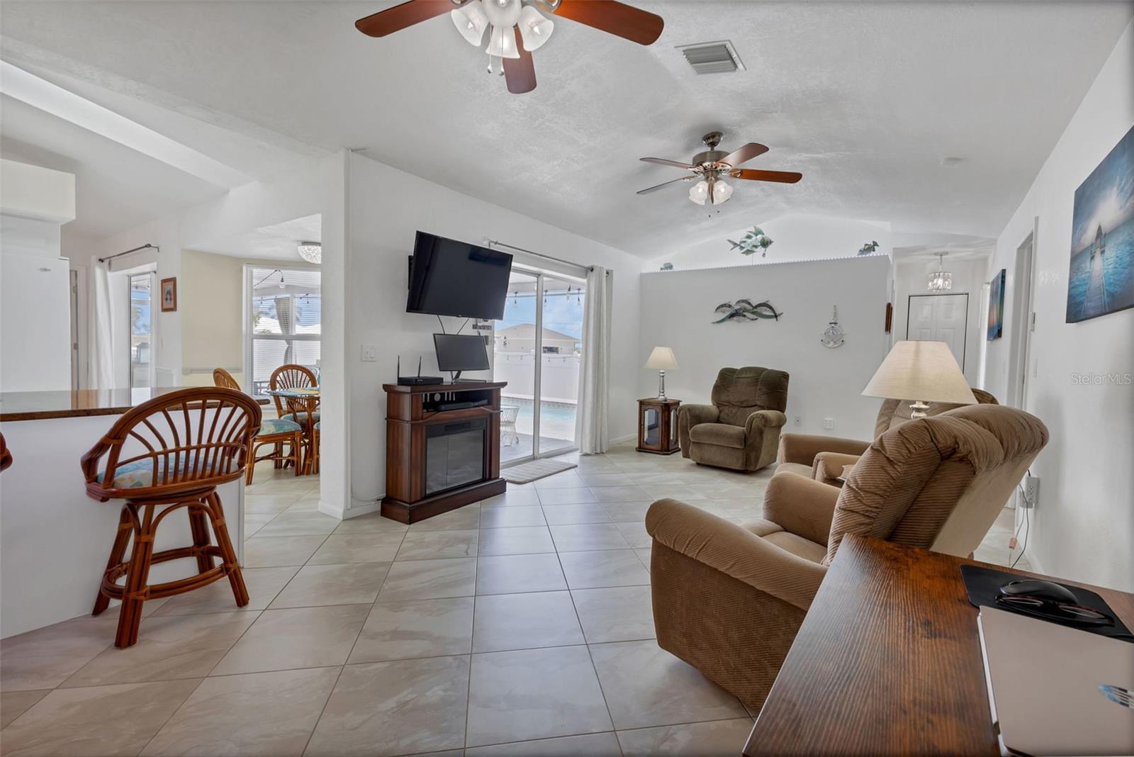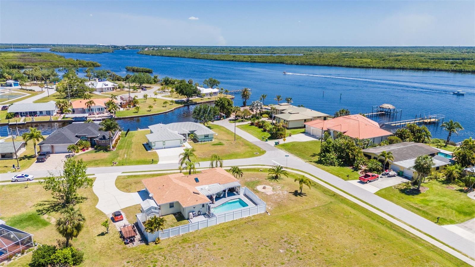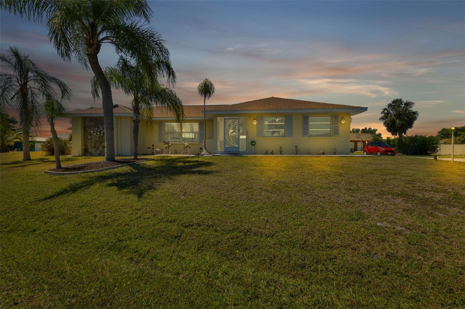 Introducing this remarkable two-bedroom, two-bathroom home nestled in the charming Harbour Heights community, just a stone's throw away from the tranquil Peace River. Upon stepping through the front door, you'll be captivated by the exquisite diagonal tile flooring that spans throughout the living spaces. Boasting both a spacious living room and a cozy family room, this home offers the perfect blend of comfort and functionality. The well-appointed kitchen features elegant granite countertops and ample cabinet space with under cabinet lighting that's remote controlled and changes colors. The convenient indoor laundry room is equipped with a full-size washer and dryer. The guest bedroom offers generous proportions, accompanied by a guest bathroom complete with a tub-shower combo and direct access to the inviting pool area. The primary bedroom is a true retreat, boasting an expansive layout with two separate walk-in closets and an en suite primary bathroom featuring a walk-in shower, a linen closet, and a skylight that bathes the space in natural light. Entertain with ease in the spacious lanai accessed through three sliders, two of which conveniently pocket away, seamlessly blending indoor and outdoor living. A fenced area provides a safe haven for pets to play, while a two-car garage and additional shed for ample storage space and RV parking with 30 AMP, completing this exceptional offering in Harbour Heights. Must see to appreciate, make an appointment today!