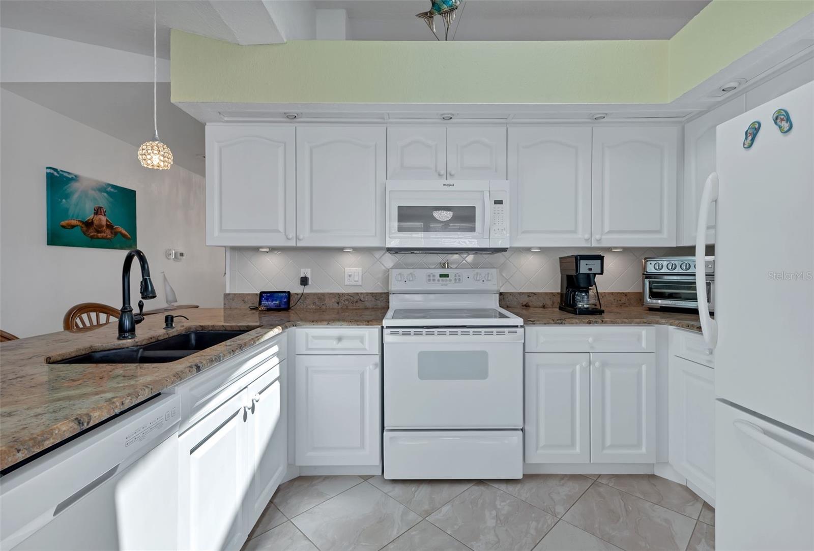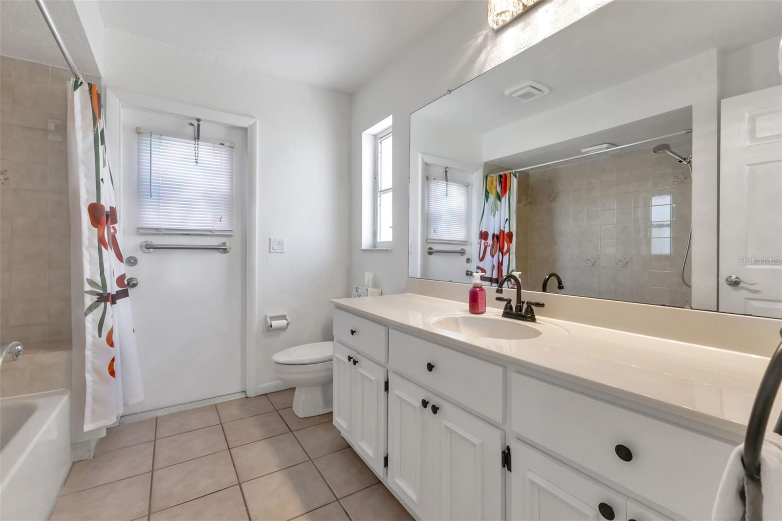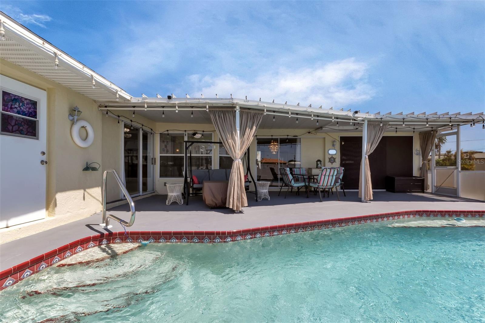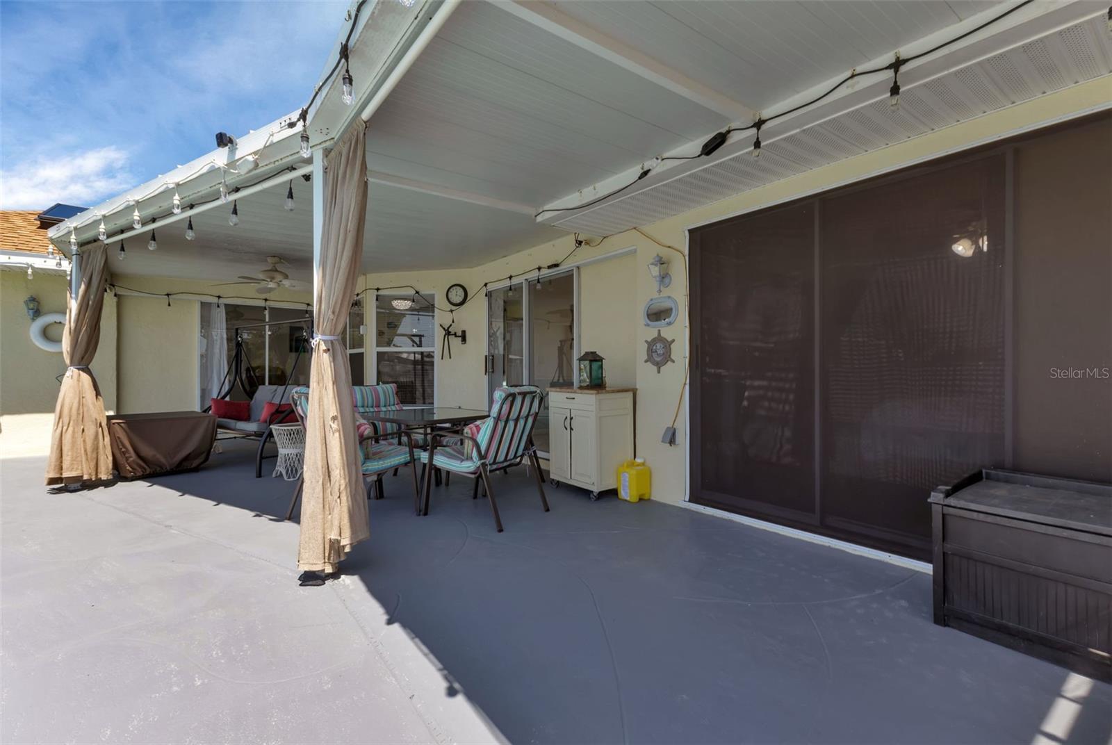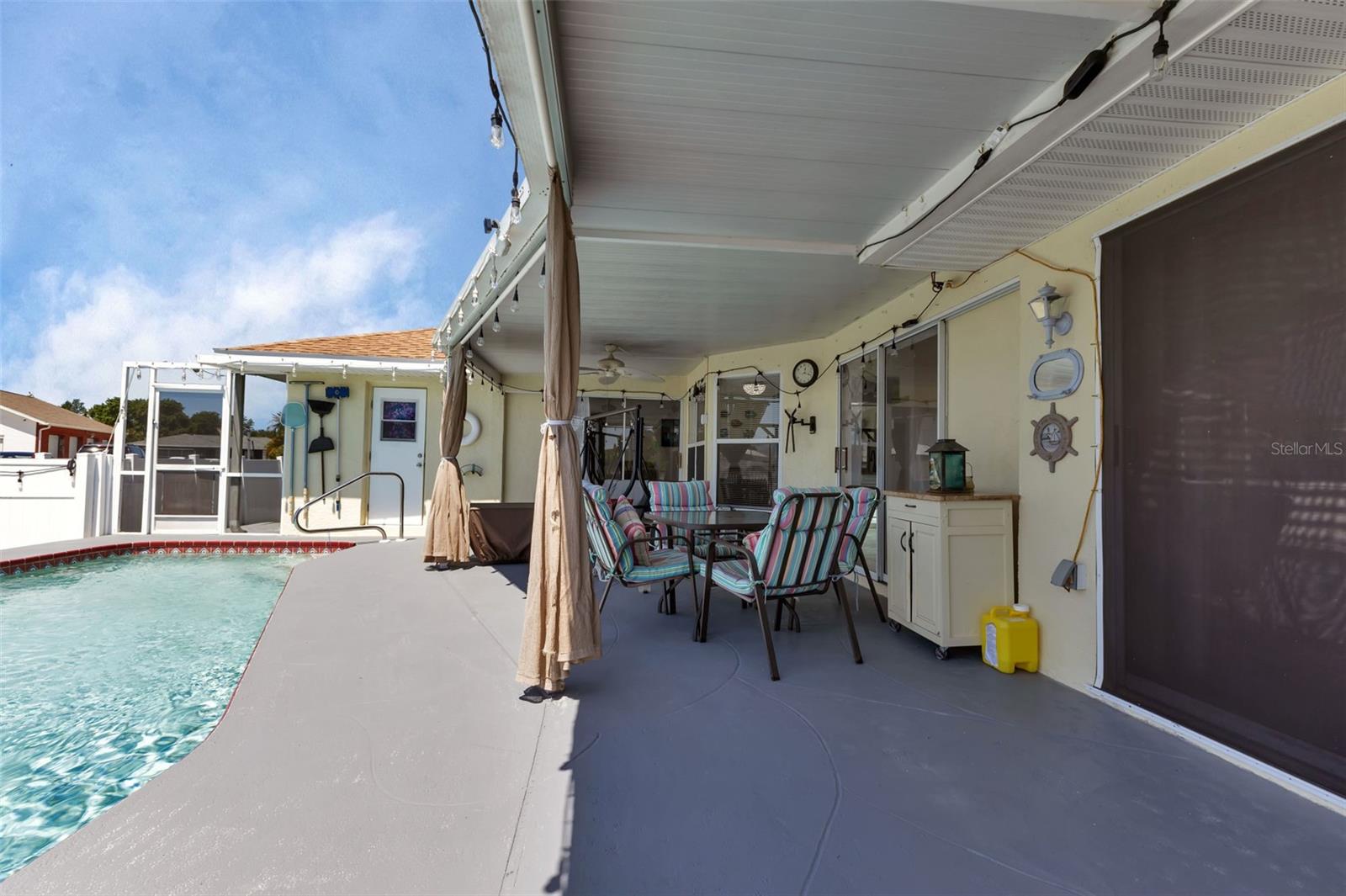 Introducing this remarkable two-bedroom, two-bathroom home nestled in the charming Harbour Heights community, just a stone's throw away from the tranquil Peace River. Upon stepping through the front door, you'll be captivated by the exquisite diagonal tile flooring that spans throughout the living spaces. Boasting both a spacious living room and a cozy family room, this home offers the perfect blend of comfort and functionality. The well-appointed kitchen features elegant granite countertops and ample cabinet space with under cabinet lighting that's remote controlled and changes colors. The convenient indoor laundry room is equipped with a full-size washer and dryer. The guest bedroom offers generous proportions, accompanied by a guest bathroom complete with a tub-shower combo and direct access to the inviting pool area. The primary bedroom is a true retreat, boasting an expansive layout with two separate walk-in closets and an en suite primary bathroom featuring a walk-in shower, a linen closet, and a skylight that bathes the space in natural light. Entertain with ease in the spacious lanai accessed through three sliders, two of which conveniently pocket away, seamlessly blending indoor and outdoor living. A fenced area provides a safe haven for pets to play, while a two-car garage and additional shed for ample storage space and RV parking with 30 AMP, completing this exceptional offering in Harbour Heights. Must see to appreciate, make an appointment today!