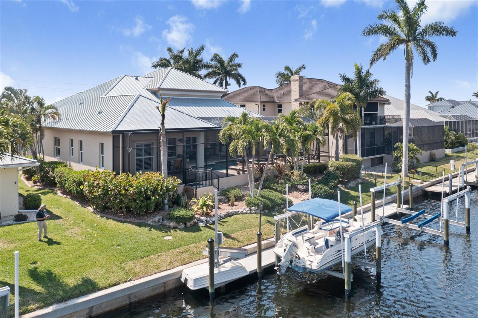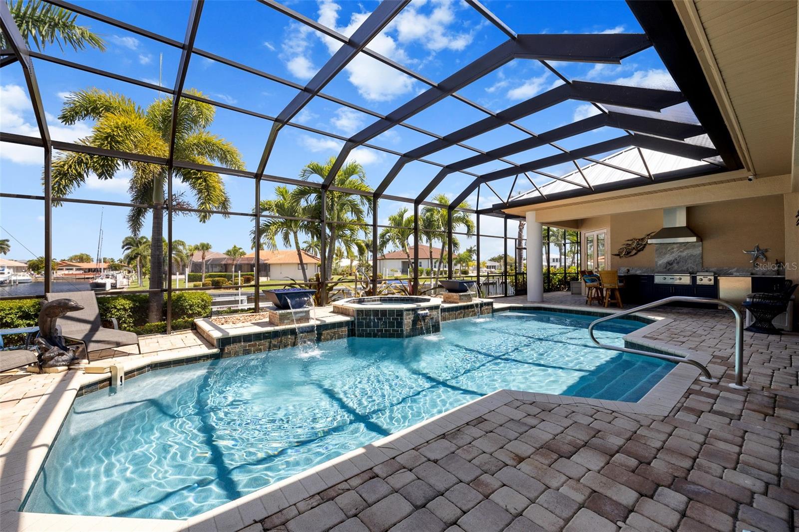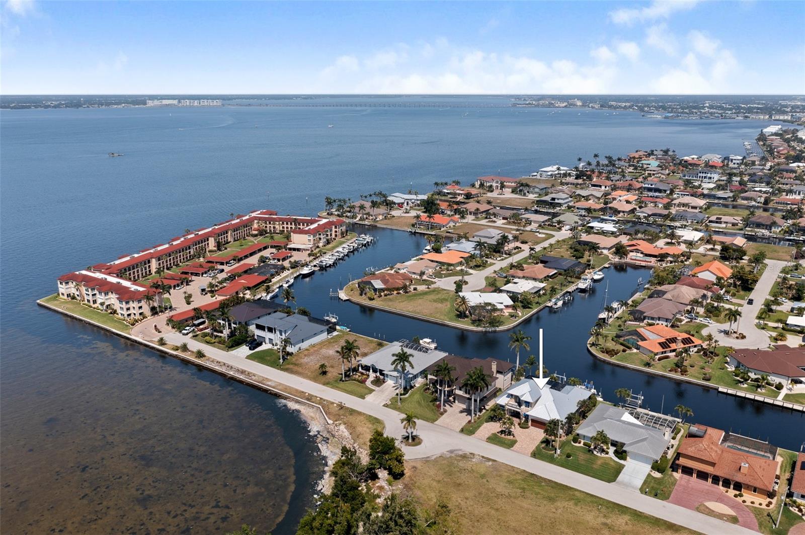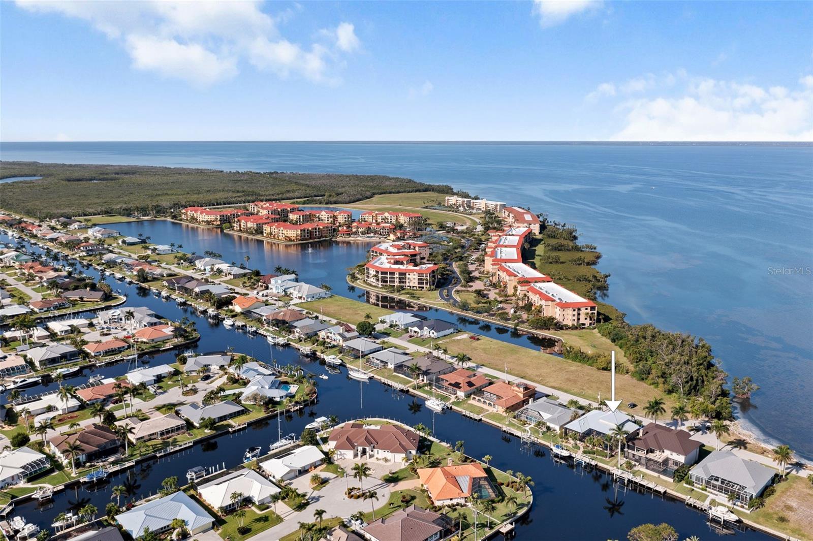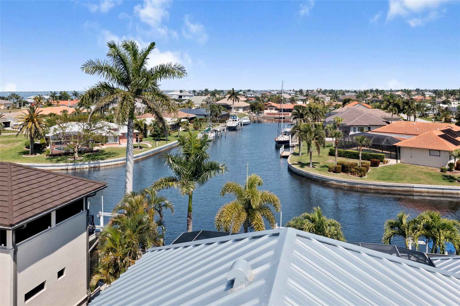 NO FLOODING FROM HURRICANE! HIGHER ELEVATION! HOME IS READY TO SHOW! ONE OF THE BEST SAILBOAT LOCATIONS IN PUNTA GORDA ISLES BOASTING 2-MINUTE ACCESS TO CHARLOTTE HARBOR LEADING TO THE GULF OF MEXICO! This exquisite home provides stunning views of the bay and mesmerizing sunsets from the front porch plus intersecting canal views and great sunrises while enjoying your morning coffee on the lanai. Boating enthusiasts will appreciate the 80'of waterfrontage, concrete seawall with dock, 12,000 lb. and 6,000 lb. boat lifts, and additional lift for a kayak, along with shore power connection and water at the dock. Experience luxury waterfront living at its finest in this custom-built home by Tim Towles featuring 3 bedrooms plus loft/bonus room, 3.5 bathrooms, and a 2-car oversized garage. This elegant residence offers a total of 2,846 sf of living area and the interior is adorned with upgraded design features, soaring ceilings, zero-corner slider and a gas fireplace, creating a warm and inviting ambiance. The open floor plan seamlessly connects the living room with a separate dining room, while the kitchen is a chef's delight, featuring a 5-burner gas cooktop, built-in double oven, stainless appliances, granite, wood cabinetry with pull-out drawers, breakfast bar, and a wine chiller. The primary suite offers lanai access, a California closet, and a luxurious ensuite with dual Decolav semi-recessed sinks, soaking tub, and large walk-in shower. The guest suite also provides lanai access and a private bath with a walk-in shower, which conveniently serves as a pool bath. The second floor presents a large loft room that can be utilized as an office, den or media room and offers full harbor views and access to a balcony. Step outside to discover an expansive covered lanai, screened heated pool and spa with propane fireballs and a Dolphin fountain plus a fully equipped summer kitchen. The property also features a new metal roof, impact windows and sliders, 2-zone A/C, convenient circular driveway and lush tropical landscaping. Nestled in a popular golf and boating community, this home is just minutes from the Yacht Club, Fishermen's Village, and the historic downtown area of Punta Gorda, offering access to arts, community events, entertainment, world-class fishing, boating, fine dining, and beautiful parks, as well as easy access to the SWFL gulf beaches. Don't miss the opportunity to indulge in the ultimate waterfront lifestyle.