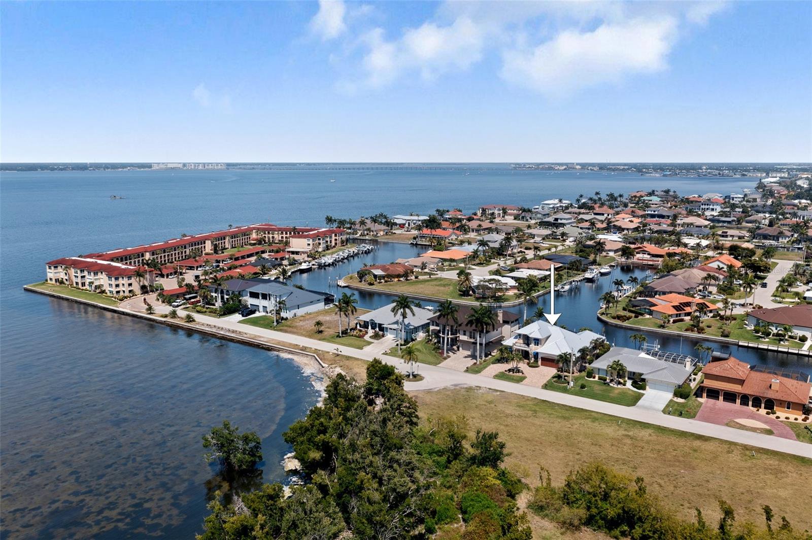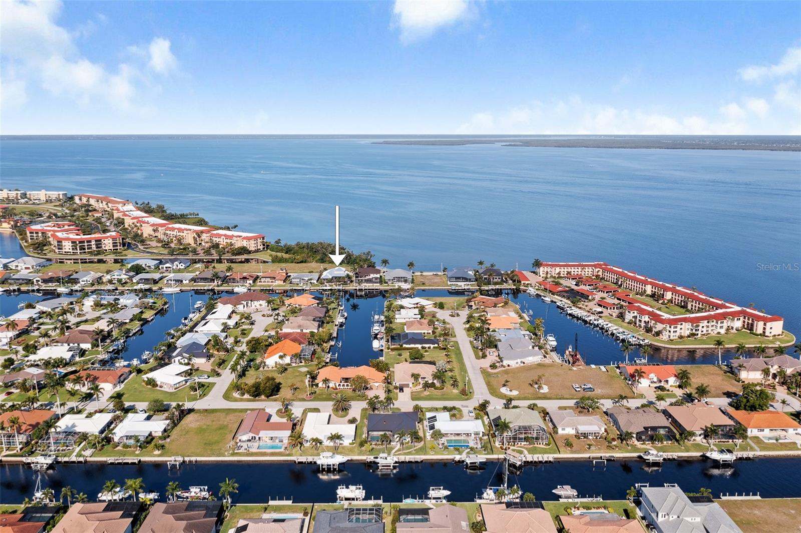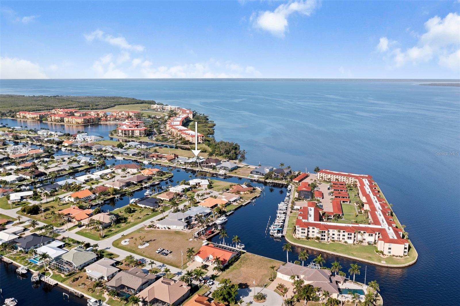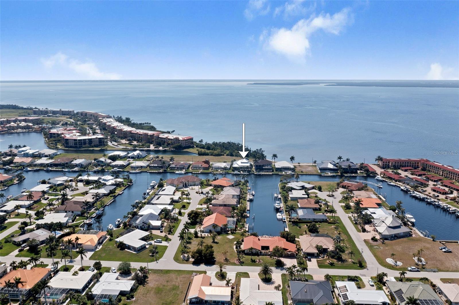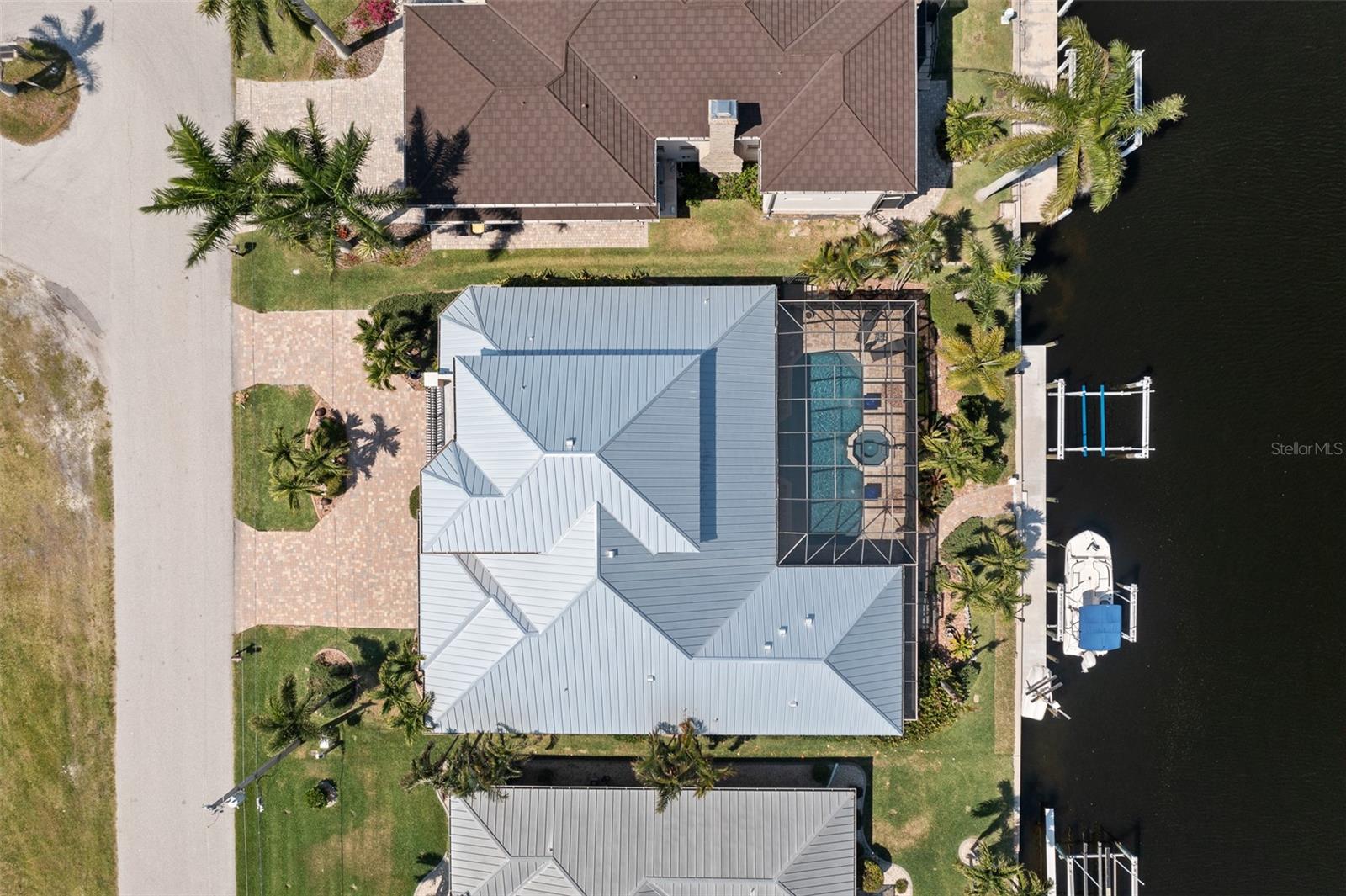 NO FLOODING FROM HURRICANE! HIGHER ELEVATION! HOME IS READY TO SHOW! ONE OF THE BEST SAILBOAT LOCATIONS IN PUNTA GORDA ISLES BOASTING 2-MINUTE ACCESS TO CHARLOTTE HARBOR LEADING TO THE GULF OF MEXICO! This exquisite home provides stunning views of the bay and mesmerizing sunsets from the front porch plus intersecting canal views and great sunrises while enjoying your morning coffee on the lanai. Boating enthusiasts will appreciate the 80'of waterfrontage, concrete seawall with dock, 12,000 lb. and 6,000 lb. boat lifts, and additional lift for a kayak, along with shore power connection and water at the dock. Experience luxury waterfront living at its finest in this custom-built home by Tim Towles featuring 3 bedrooms plus loft/bonus room, 3.5 bathrooms, and a 2-car oversized garage. This elegant residence offers a total of 2,846 sf of living area and the interior is adorned with upgraded design features, soaring ceilings, zero-corner slider and a gas fireplace, creating a warm and inviting ambiance. The open floor plan seamlessly connects the living room with a separate dining room, while the kitchen is a chef's delight, featuring a 5-burner gas cooktop, built-in double oven, stainless appliances, granite, wood cabinetry with pull-out drawers, breakfast bar, and a wine chiller. The primary suite offers lanai access, a California closet, and a luxurious ensuite with dual Decolav semi-recessed sinks, soaking tub, and large walk-in shower. The guest suite also provides lanai access and a private bath with a walk-in shower, which conveniently serves as a pool bath. The second floor presents a large loft room that can be utilized as an office, den or media room and offers full harbor views and access to a balcony. Step outside to discover an expansive covered lanai, screened heated pool and spa with propane fireballs and a Dolphin fountain plus a fully equipped summer kitchen. The property also features a new metal roof, impact windows and sliders, 2-zone A/C, convenient circular driveway and lush tropical landscaping. Nestled in a popular golf and boating community, this home is just minutes from the Yacht Club, Fishermen's Village, and the historic downtown area of Punta Gorda, offering access to arts, community events, entertainment, world-class fishing, boating, fine dining, and beautiful parks, as well as easy access to the SWFL gulf beaches. Don't miss the opportunity to indulge in the ultimate waterfront lifestyle.