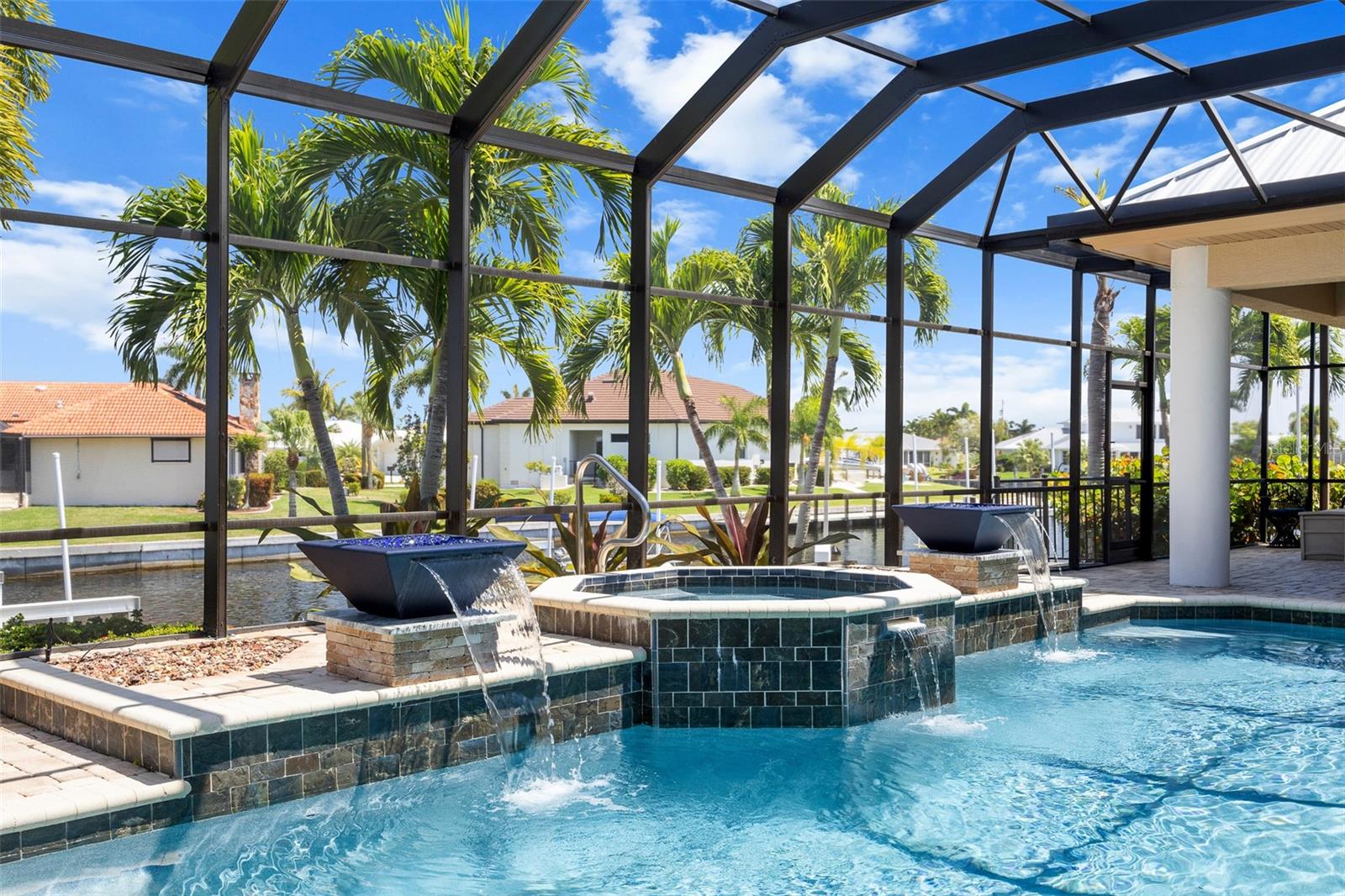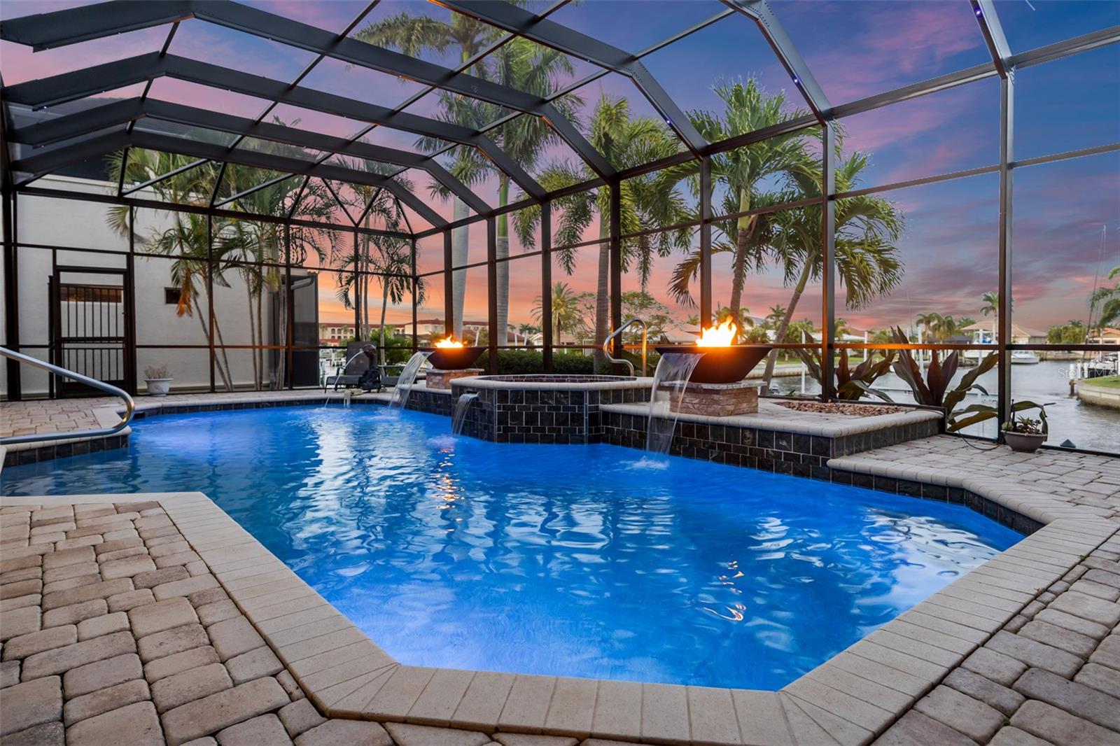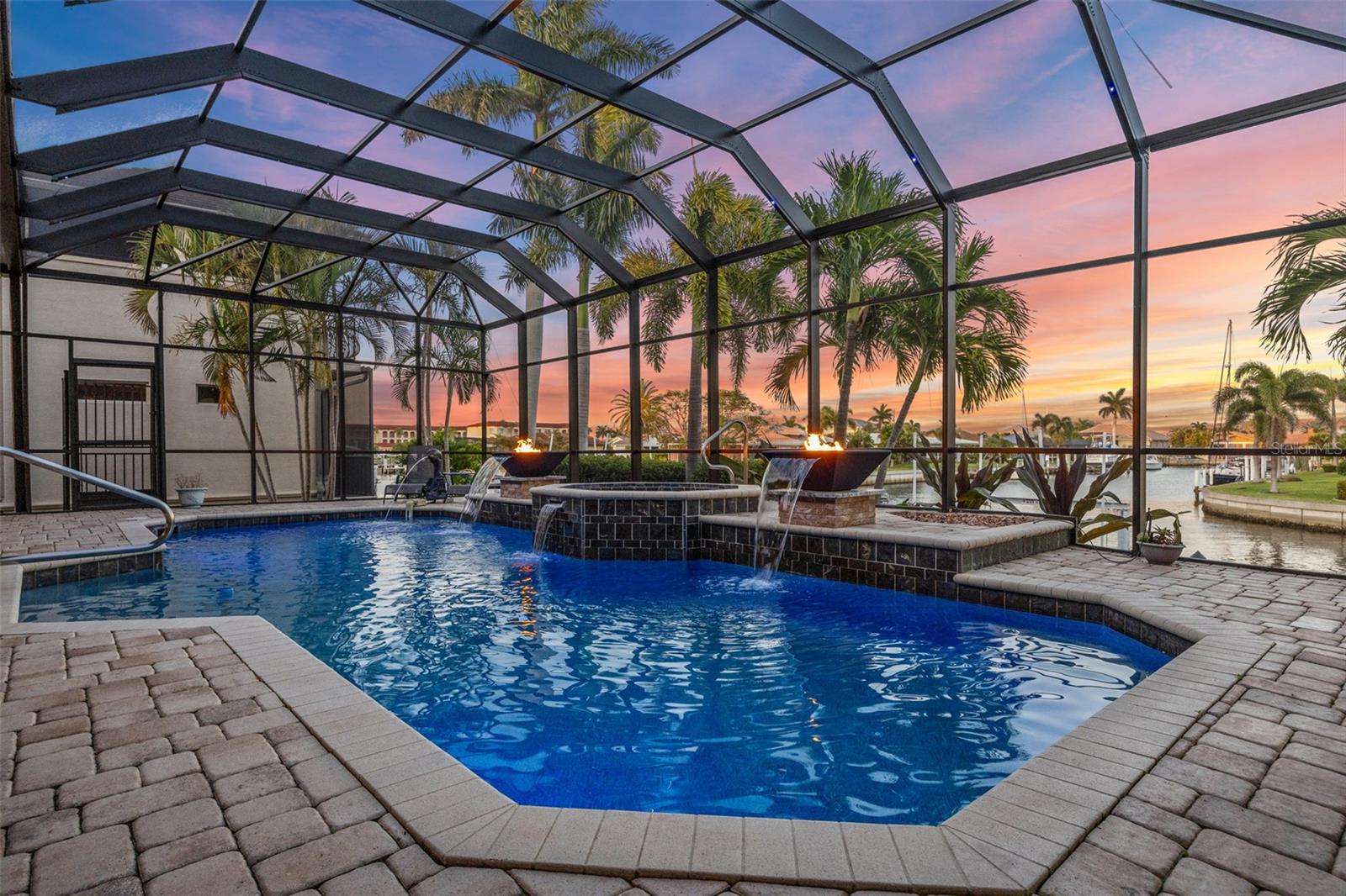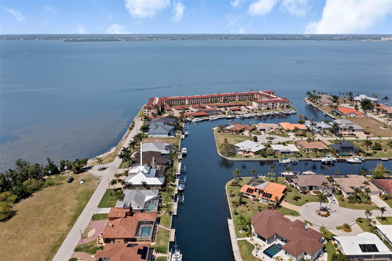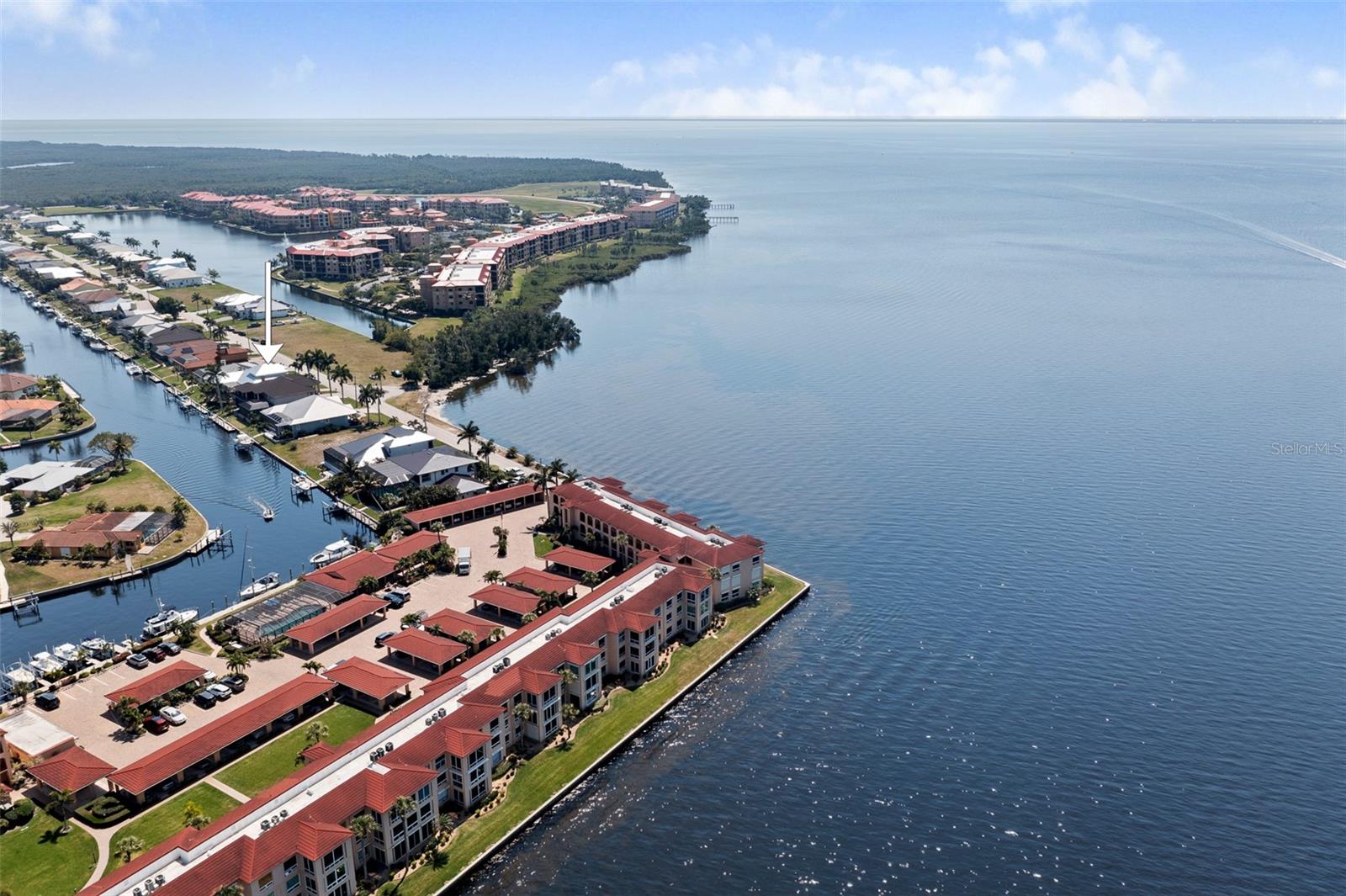 NO FLOODING FROM HURRICANE! HIGHER ELEVATION! HOME IS READY TO SHOW! ONE OF THE BEST SAILBOAT LOCATIONS IN PUNTA GORDA ISLES BOASTING 2-MINUTE ACCESS TO CHARLOTTE HARBOR LEADING TO THE GULF OF MEXICO! This exquisite home provides stunning views of the bay and mesmerizing sunsets from the front porch plus intersecting canal views and great sunrises while enjoying your morning coffee on the lanai. Boating enthusiasts will appreciate the 80'of waterfrontage, concrete seawall with dock, 12,000 lb. and 6,000 lb. boat lifts, and additional lift for a kayak, along with shore power connection and water at the dock. Experience luxury waterfront living at its finest in this custom-built home by Tim Towles featuring 3 bedrooms plus loft/bonus room, 3.5 bathrooms, and a 2-car oversized garage. This elegant residence offers a total of 2,846 sf of living area and the interior is adorned with upgraded design features, soaring ceilings, zero-corner slider and a gas fireplace, creating a warm and inviting ambiance. The open floor plan seamlessly connects the living room with a separate dining room, while the kitchen is a chef's delight, featuring a 5-burner gas cooktop, built-in double oven, stainless appliances, granite, wood cabinetry with pull-out drawers, breakfast bar, and a wine chiller. The primary suite offers lanai access, a California closet, and a luxurious ensuite with dual Decolav semi-recessed sinks, soaking tub, and large walk-in shower. The guest suite also provides lanai access and a private bath with a walk-in shower, which conveniently serves as a pool bath. The second floor presents a large loft room that can be utilized as an office, den or media room and offers full harbor views and access to a balcony. Step outside to discover an expansive covered lanai, screened heated pool and spa with propane fireballs and a Dolphin fountain plus a fully equipped summer kitchen. The property also features a new metal roof, impact windows and sliders, 2-zone A/C, convenient circular driveway and lush tropical landscaping. Nestled in a popular golf and boating community, this home is just minutes from the Yacht Club, Fishermen's Village, and the historic downtown area of Punta Gorda, offering access to arts, community events, entertainment, world-class fishing, boating, fine dining, and beautiful parks, as well as easy access to the SWFL gulf beaches. Don't miss the opportunity to indulge in the ultimate waterfront lifestyle.
