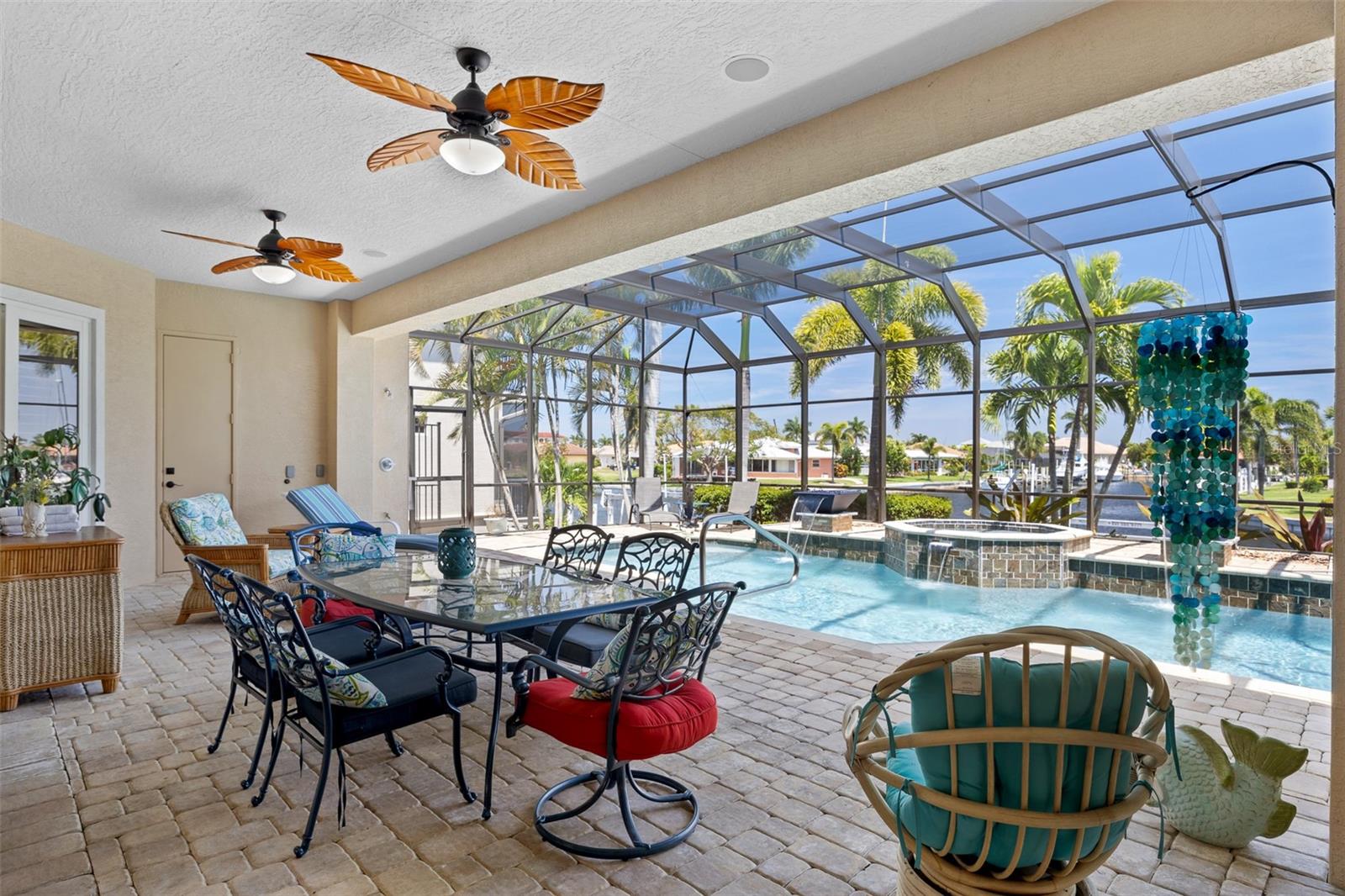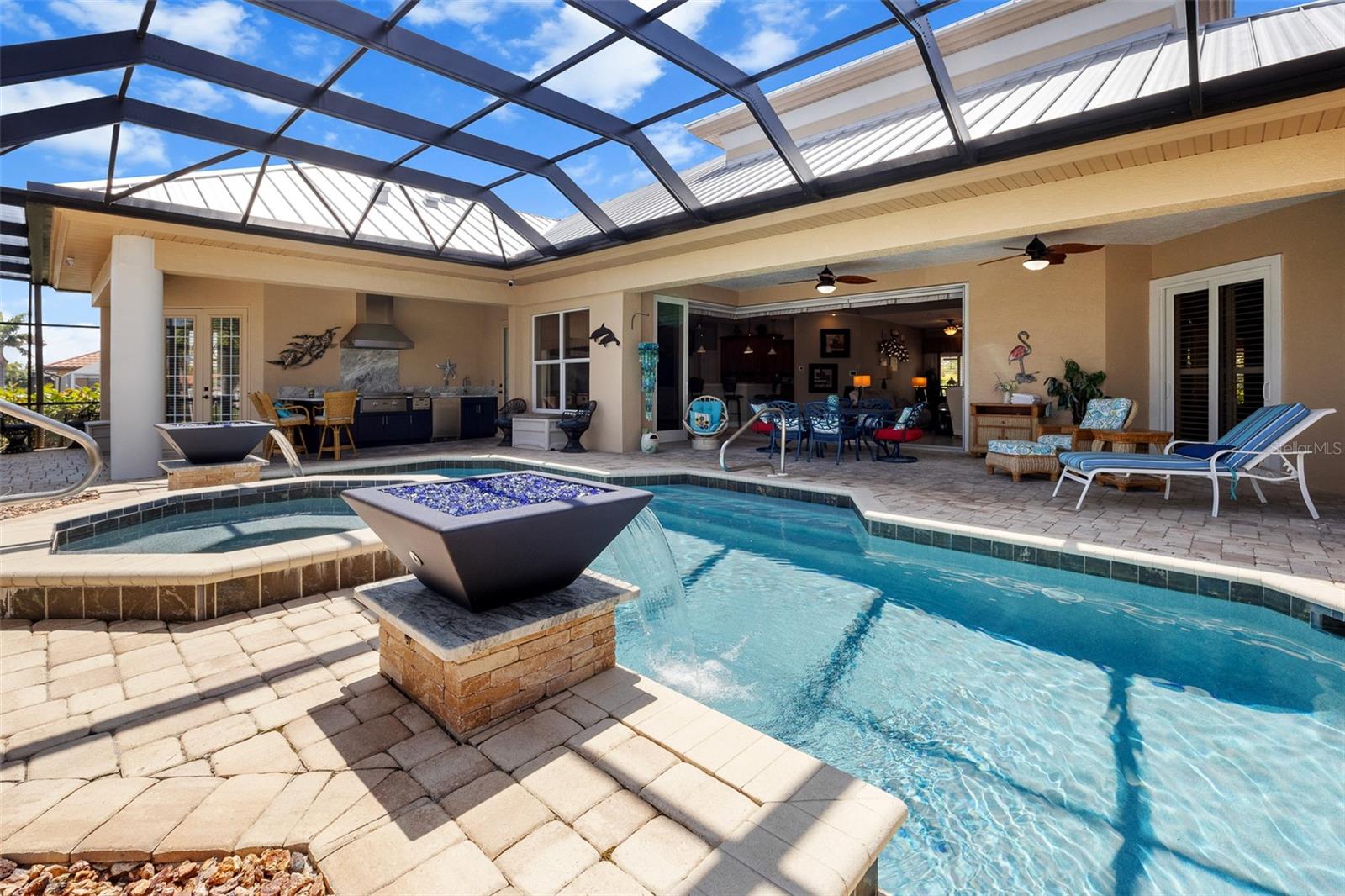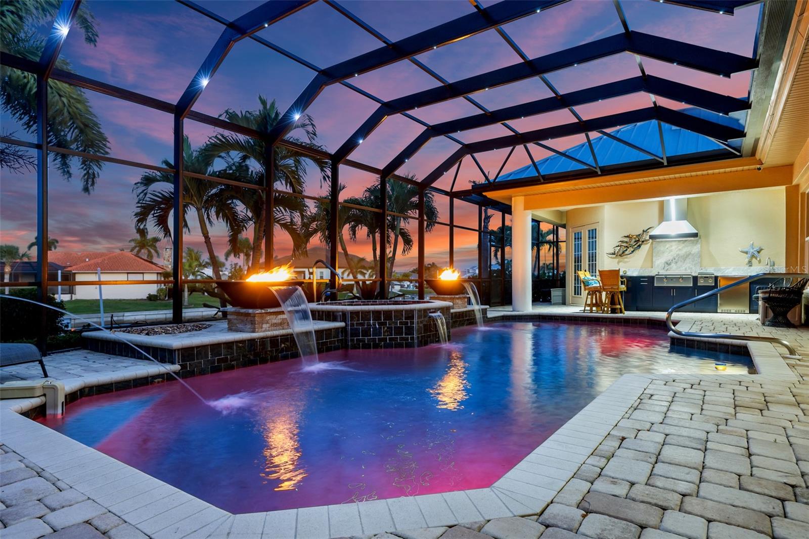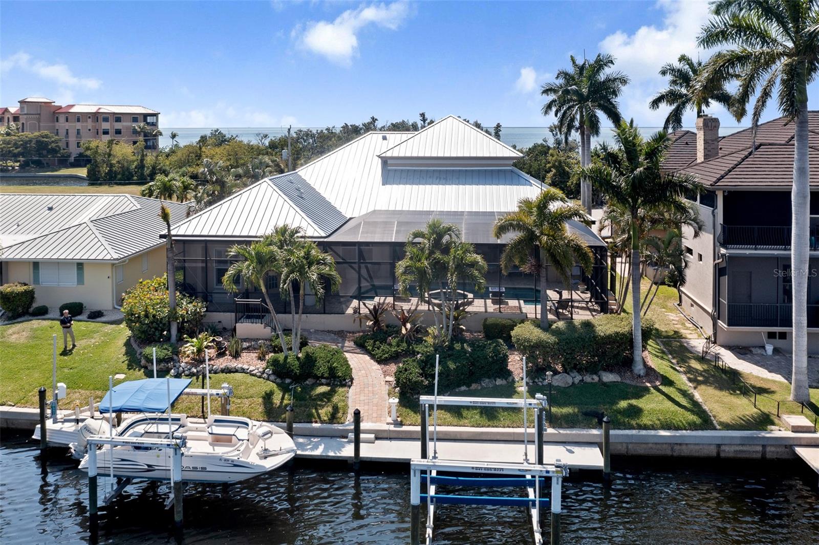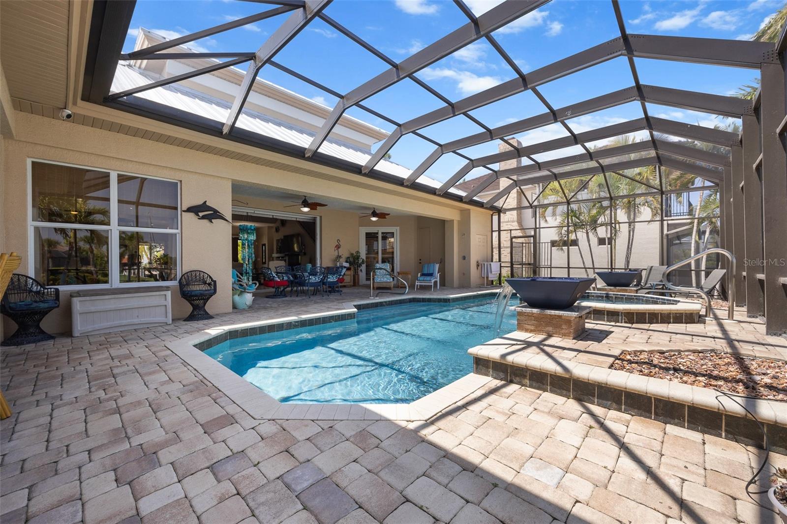 NO FLOODING FROM HURRICANE! HIGHER ELEVATION! HOME IS READY TO SHOW! ONE OF THE BEST SAILBOAT LOCATIONS IN PUNTA GORDA ISLES BOASTING 2-MINUTE ACCESS TO CHARLOTTE HARBOR LEADING TO THE GULF OF MEXICO! This exquisite home provides stunning views of the bay and mesmerizing sunsets from the front porch plus intersecting canal views and great sunrises while enjoying your morning coffee on the lanai. Boating enthusiasts will appreciate the 80'of waterfrontage, concrete seawall with dock, 12,000 lb. and 6,000 lb. boat lifts, and additional lift for a kayak, along with shore power connection and water at the dock. Experience luxury waterfront living at its finest in this custom-built home by Tim Towles featuring 3 bedrooms plus loft/bonus room, 3.5 bathrooms, and a 2-car oversized garage. This elegant residence offers a total of 2,846 sf of living area and the interior is adorned with upgraded design features, soaring ceilings, zero-corner slider and a gas fireplace, creating a warm and inviting ambiance. The open floor plan seamlessly connects the living room with a separate dining room, while the kitchen is a chef's delight, featuring a 5-burner gas cooktop, built-in double oven, stainless appliances, granite, wood cabinetry with pull-out drawers, breakfast bar, and a wine chiller. The primary suite offers lanai access, a California closet, and a luxurious ensuite with dual Decolav semi-recessed sinks, soaking tub, and large walk-in shower. The guest suite also provides lanai access and a private bath with a walk-in shower, which conveniently serves as a pool bath. The second floor presents a large loft room that can be utilized as an office, den or media room and offers full harbor views and access to a balcony. Step outside to discover an expansive covered lanai, screened heated pool and spa with propane fireballs and a Dolphin fountain plus a fully equipped summer kitchen. The property also features a new metal roof, impact windows and sliders, 2-zone A/C, convenient circular driveway and lush tropical landscaping. Nestled in a popular golf and boating community, this home is just minutes from the Yacht Club, Fishermen's Village, and the historic downtown area of Punta Gorda, offering access to arts, community events, entertainment, world-class fishing, boating, fine dining, and beautiful parks, as well as easy access to the SWFL gulf beaches. Don't miss the opportunity to indulge in the ultimate waterfront lifestyle.