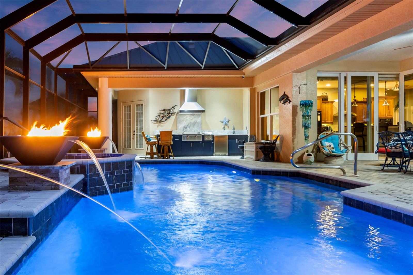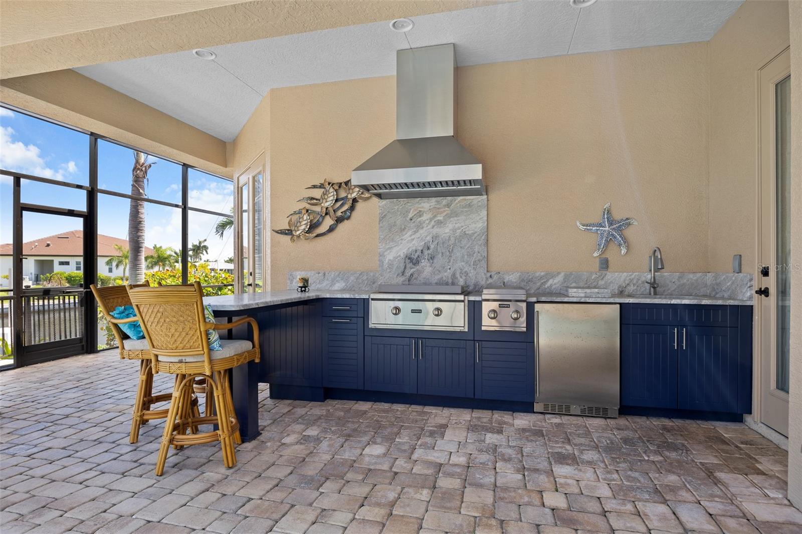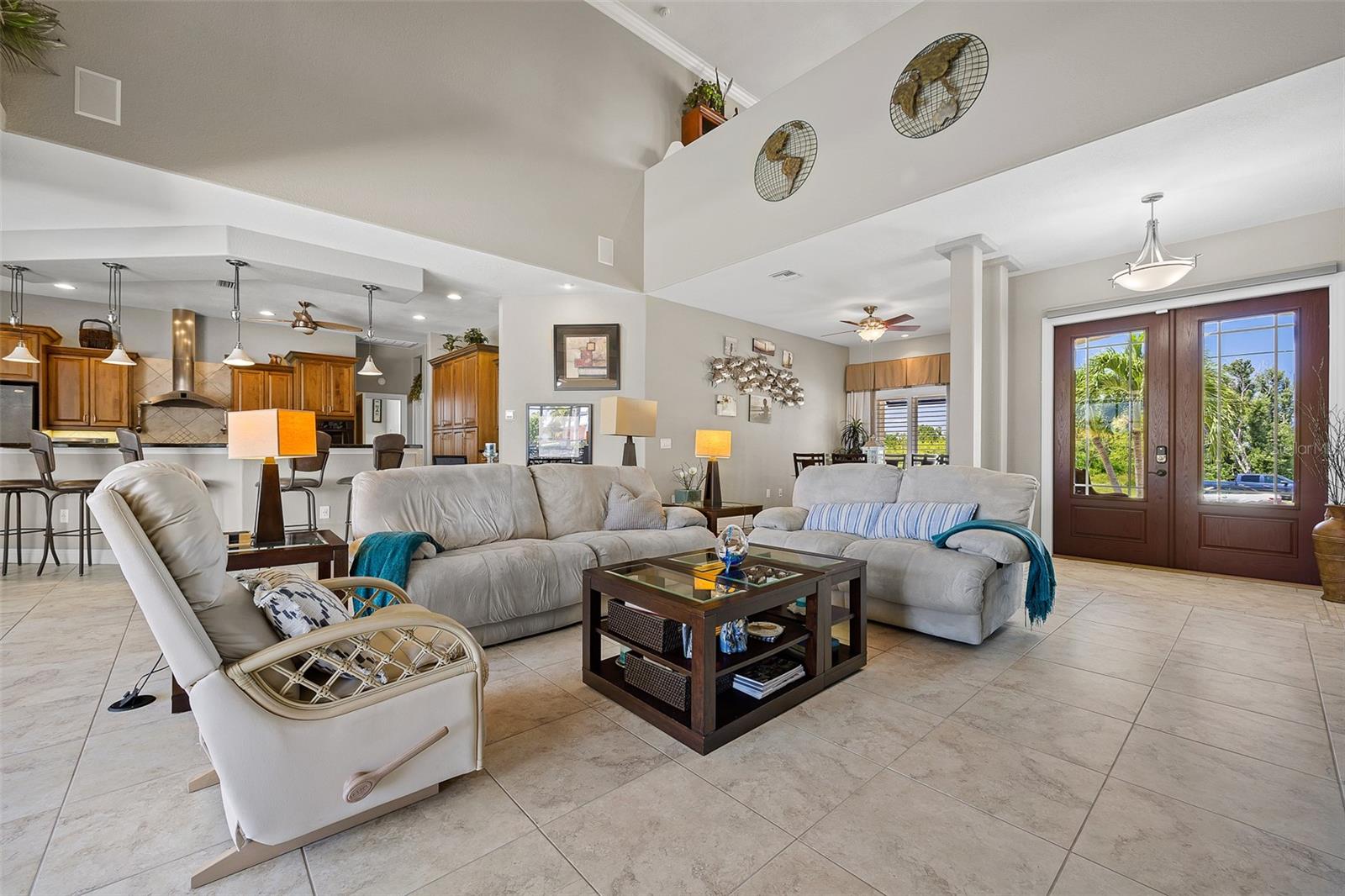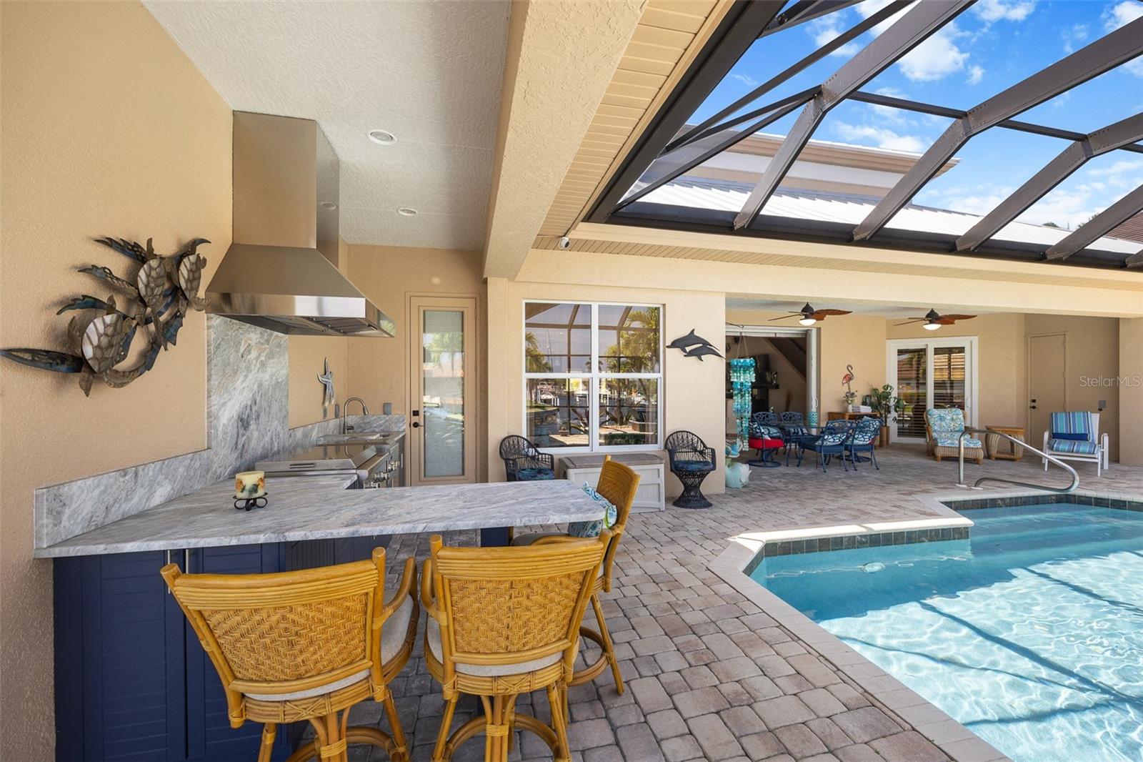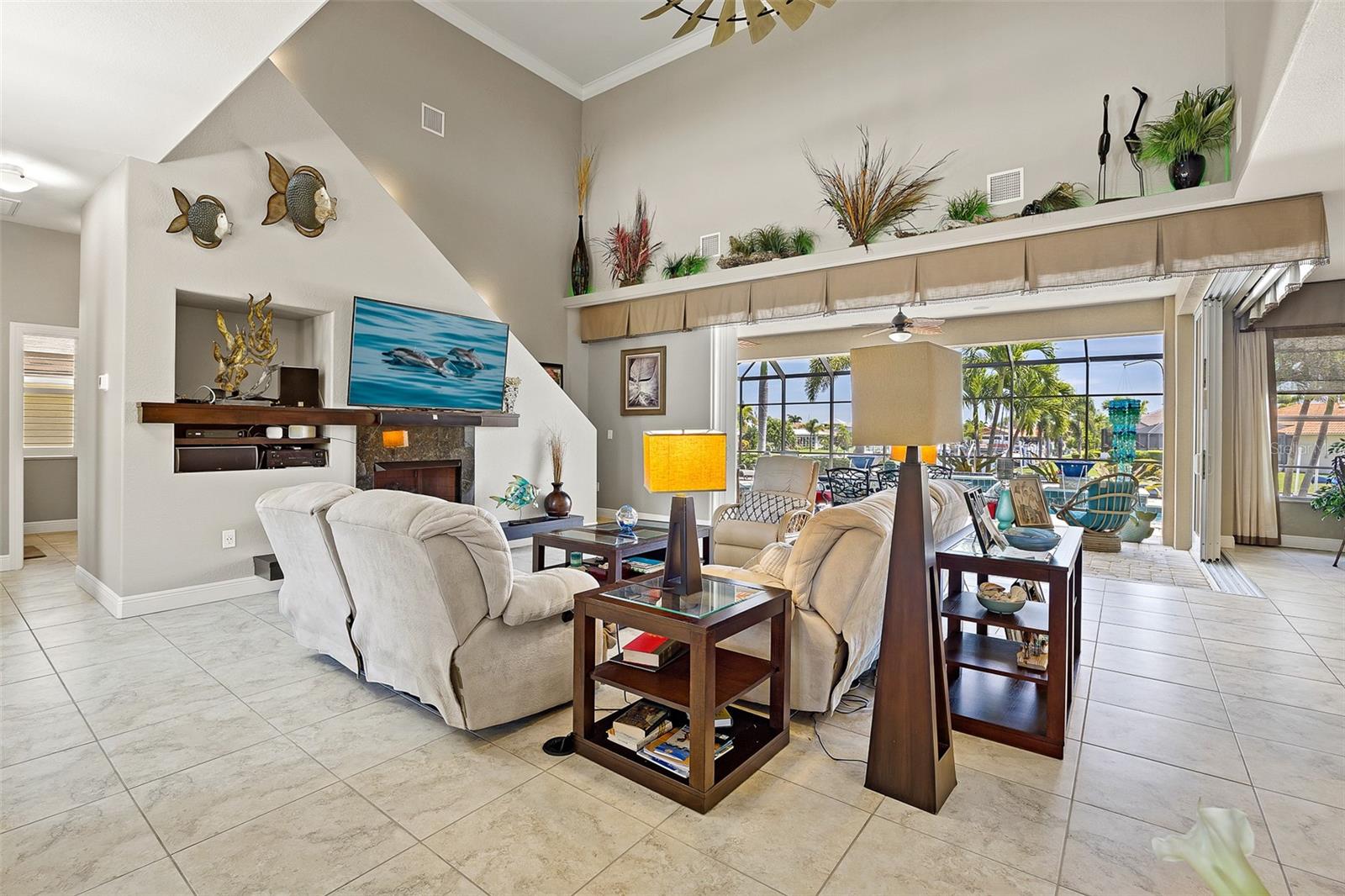 NO FLOODING FROM HURRICANE! HIGHER ELEVATION! HOME IS READY TO SHOW! ONE OF THE BEST SAILBOAT LOCATIONS IN PUNTA GORDA ISLES BOASTING 2-MINUTE ACCESS TO CHARLOTTE HARBOR LEADING TO THE GULF OF MEXICO! This exquisite home provides stunning views of the bay and mesmerizing sunsets from the front porch plus intersecting canal views and great sunrises while enjoying your morning coffee on the lanai. Boating enthusiasts will appreciate the 80'of waterfrontage, concrete seawall with dock, 12,000 lb. and 6,000 lb. boat lifts, and additional lift for a kayak, along with shore power connection and water at the dock. Experience luxury waterfront living at its finest in this custom-built home by Tim Towles featuring 3 bedrooms plus loft/bonus room, 3.5 bathrooms, and a 2-car oversized garage. This elegant residence offers a total of 2,846 sf of living area and the interior is adorned with upgraded design features, soaring ceilings, zero-corner slider and a gas fireplace, creating a warm and inviting ambiance. The open floor plan seamlessly connects the living room with a separate dining room, while the kitchen is a chef's delight, featuring a 5-burner gas cooktop, built-in double oven, stainless appliances, granite, wood cabinetry with pull-out drawers, breakfast bar, and a wine chiller. The primary suite offers lanai access, a California closet, and a luxurious ensuite with dual Decolav semi-recessed sinks, soaking tub, and large walk-in shower. The guest suite also provides lanai access and a private bath with a walk-in shower, which conveniently serves as a pool bath. The second floor presents a large loft room that can be utilized as an office, den or media room and offers full harbor views and access to a balcony. Step outside to discover an expansive covered lanai, screened heated pool and spa with propane fireballs and a Dolphin fountain plus a fully equipped summer kitchen. The property also features a new metal roof, impact windows and sliders, 2-zone A/C, convenient circular driveway and lush tropical landscaping. Nestled in a popular golf and boating community, this home is just minutes from the Yacht Club, Fishermen's Village, and the historic downtown area of Punta Gorda, offering access to arts, community events, entertainment, world-class fishing, boating, fine dining, and beautiful parks, as well as easy access to the SWFL gulf beaches. Don't miss the opportunity to indulge in the ultimate waterfront lifestyle.