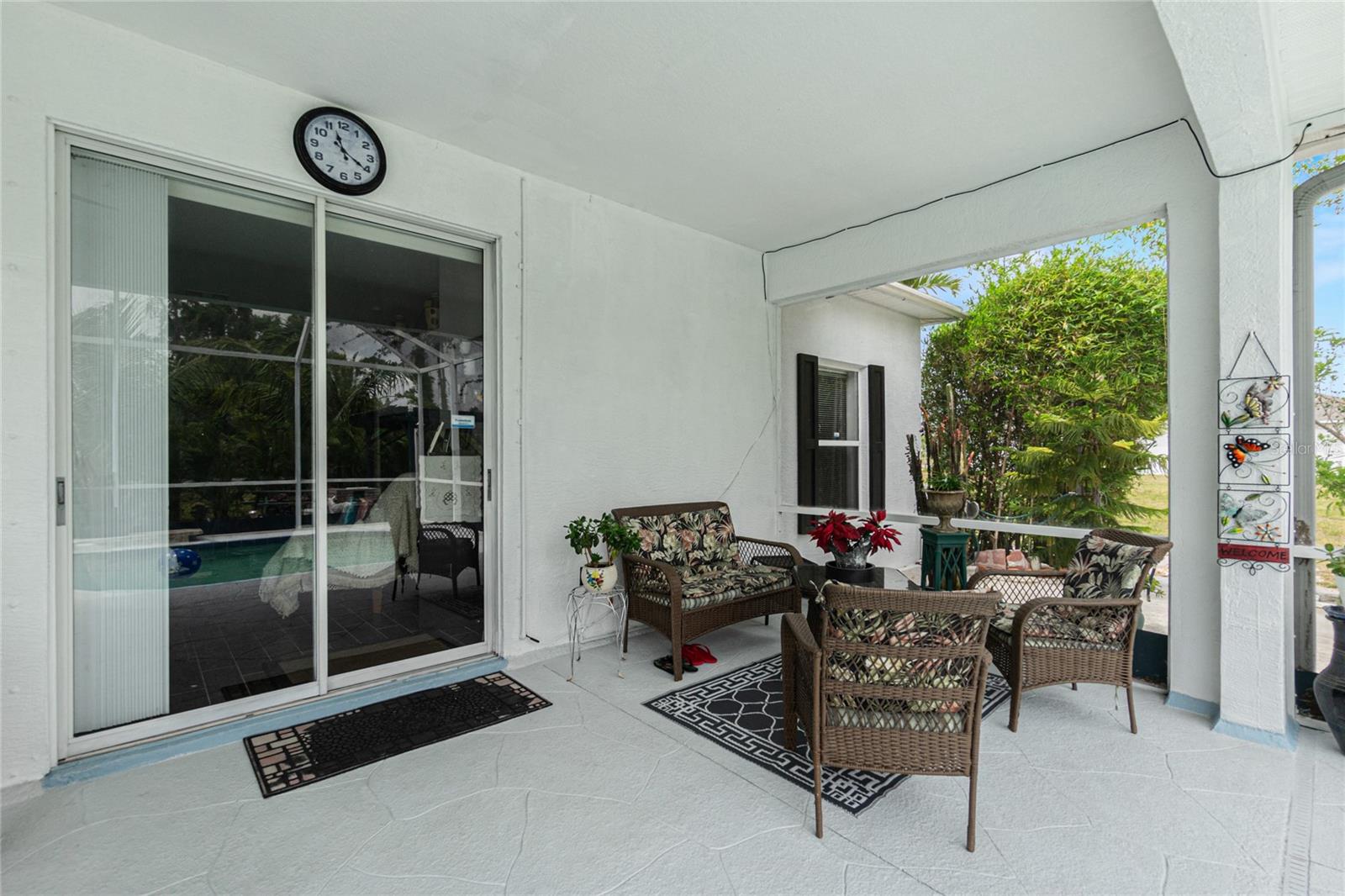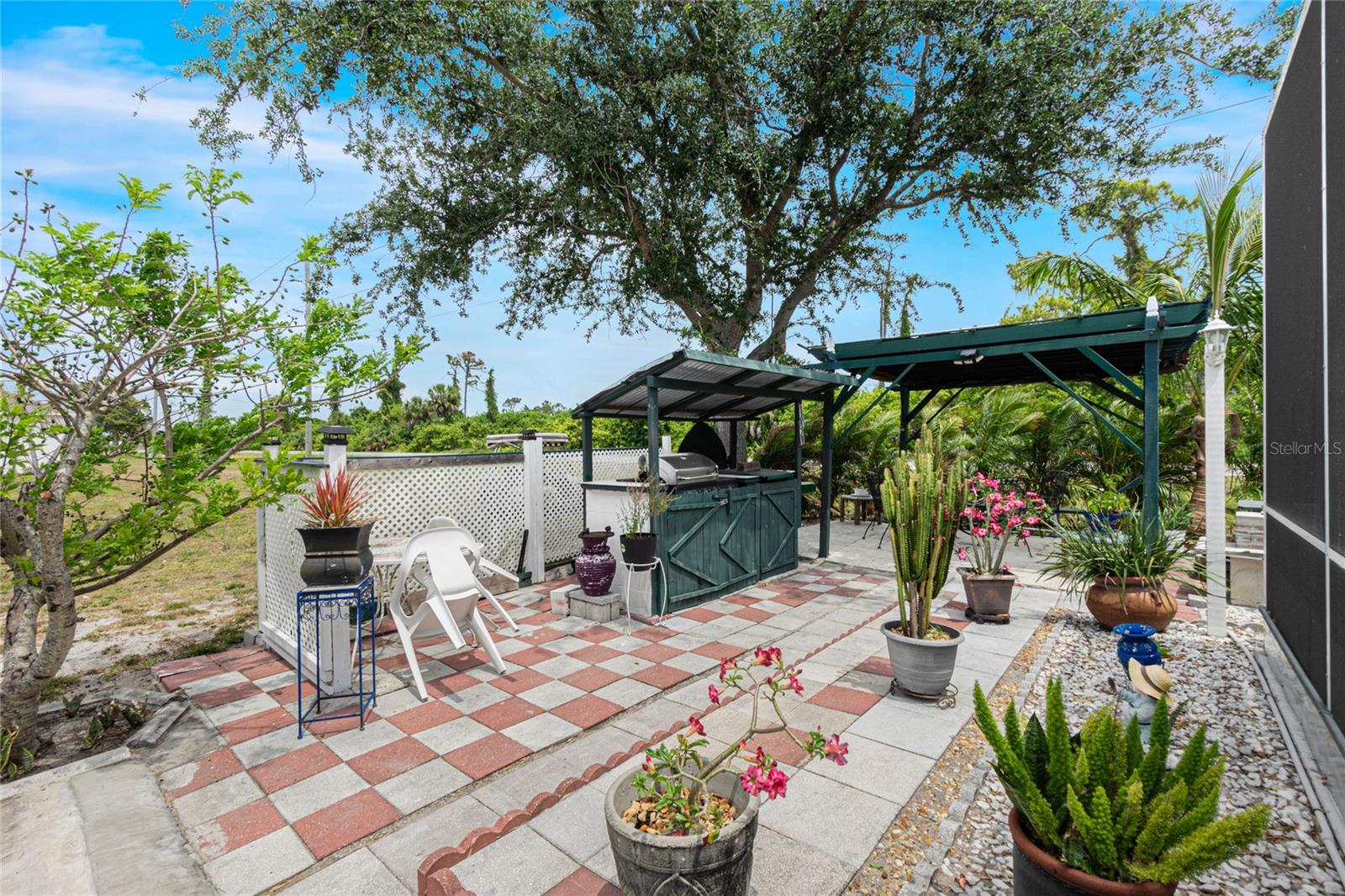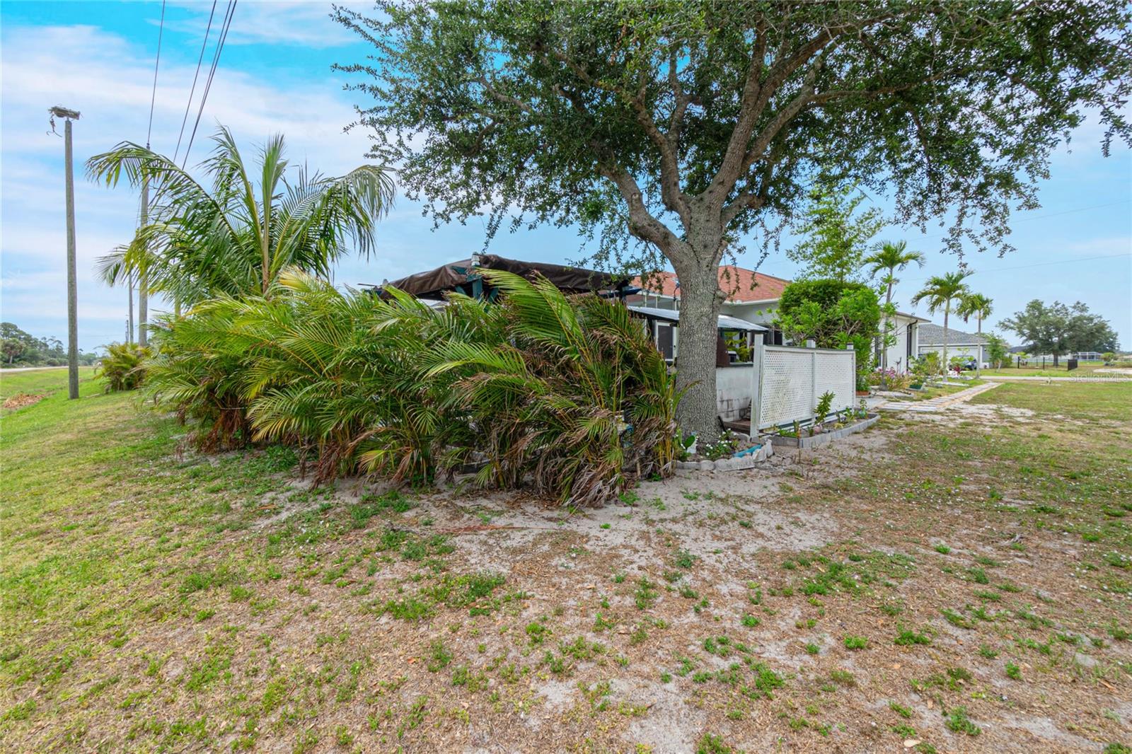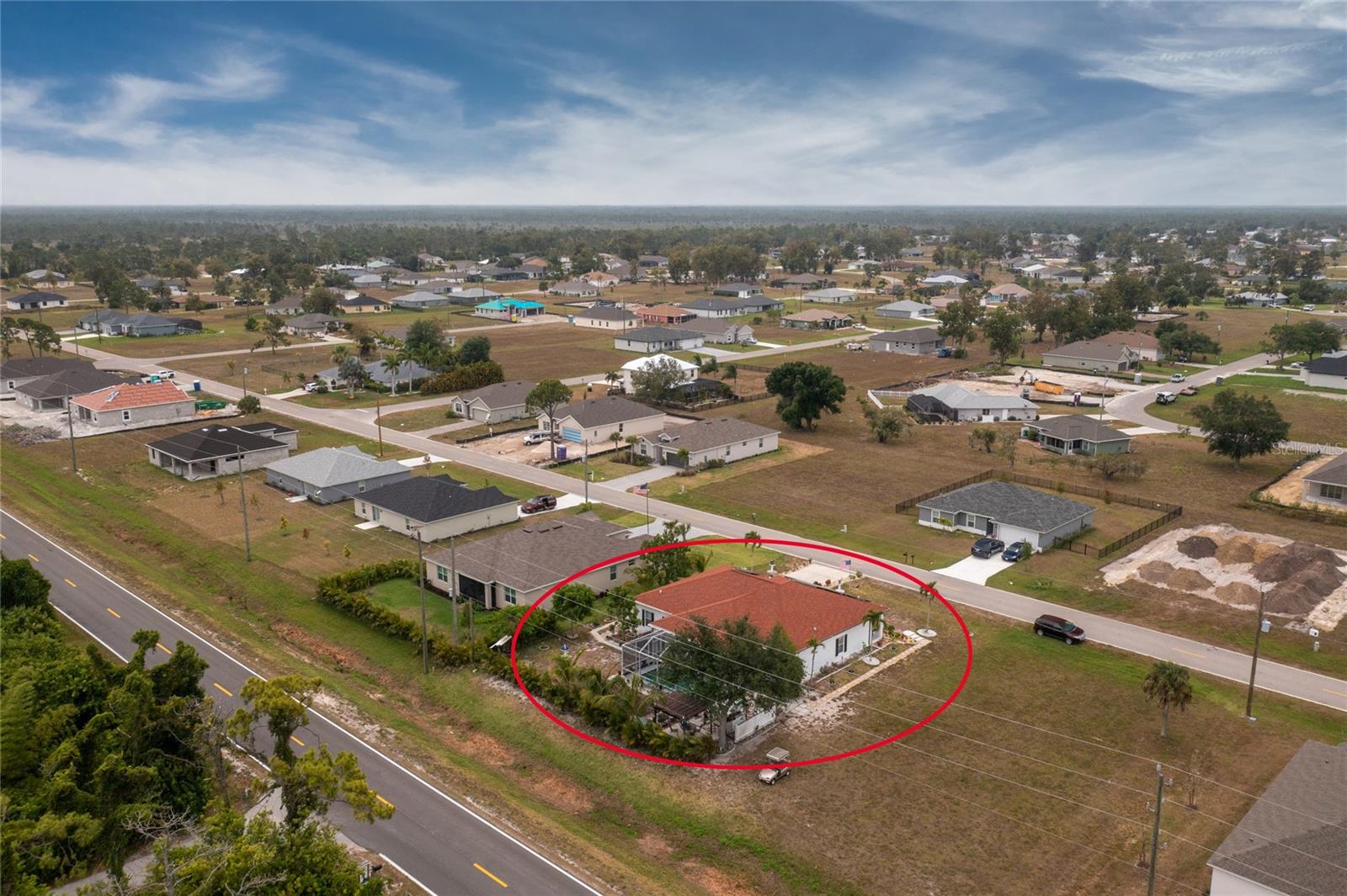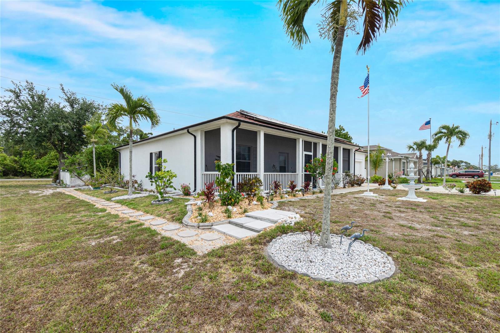 impressive 3 Bedroom, 2 Bathroom POOL HOME with attached 2 car Garage located in the desirable deed restricted community of BURNT STORE VILLAGE. This light and bright home offers an open and split bedroom floor plan with 40x6 screened Front Porch, Foyer, Den/Office, Bonus Room, Great Room, well equipped Kitchen and Inside Laundry. When you enter the Foyer on the right French doors with glass panels open to the large Den/Office. On the left French doors with glass panels open to the Bonus Room. This room is currently used as a Living Room. Either room could be used as a Dining Room or 4th Bedroom. The spacious Great Room with sliding glass doors to the Lanai opens to the large Kitchen- true open concept. The Kitchen features beautiful wood cabinetry, granite counters, tile backsplash, double door refrigerator, dishwasher, built in microwave, oven/range, dining space, huge closet pantry. The Master Bedroom suite has a walk in closet and private bathroom with walk in shower and tub. There are two additional generous sized bedrooms and the guest bathroom has a tub/shower combination. Your living space extends to the screened Lanai with 22x10 swimming pool, large covered area and covered patio and covered grilling area outside of the pool cage. Flooring is tile and diagonal lay tile in the living areas, carpet in the bedrooms. Other features include ***NEW ROOF 2023***, hurricane shutters, 10 foot ceilings. Utilities are county water and sewer. Burnt Store Village has 13 miles of quiet, county-maintained streets that are great for bike riding, and the Burnt Store Village Community Park has a walking path around a picturesque lake, picnic tables and a playground. Only 10 minutes to Burnt Store Marina to the south and 10-15 minutes to historic Punta Gorda to the north with shopping, dining, medical care, waterfront parks, boat ramps, fishing piers, walking and biking paths, Fishermen's Village, Charlotte Harbor Event Center, art galleries, weekend farmers markets, events and more. This is a beautiful home in a great community!