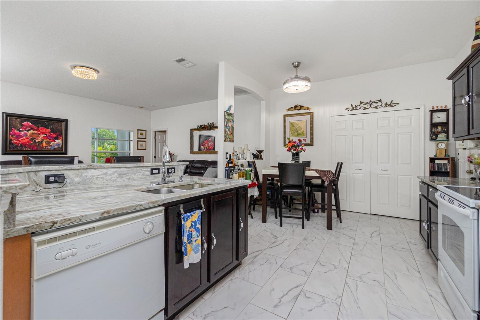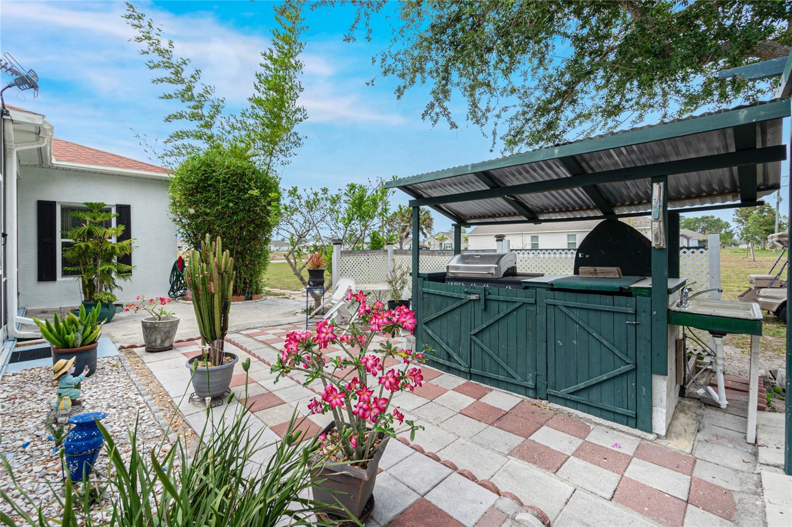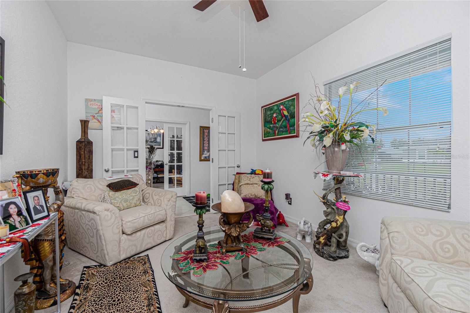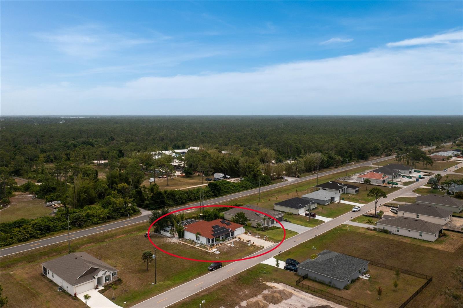 impressive 3 Bedroom, 2 Bathroom POOL HOME with attached 2 car Garage located in the desirable deed restricted community of BURNT STORE VILLAGE. This light and bright home offers an open and split bedroom floor plan with 40x6 screened Front Porch, Foyer, Den/Office, Bonus Room, Great Room, well equipped Kitchen and Inside Laundry. When you enter the Foyer on the right French doors with glass panels open to the large Den/Office. On the left French doors with glass panels open to the Bonus Room. This room is currently used as a Living Room. Either room could be used as a Dining Room or 4th Bedroom. The spacious Great Room with sliding glass doors to the Lanai opens to the large Kitchen- true open concept. The Kitchen features beautiful wood cabinetry, granite counters, tile backsplash, double door refrigerator, dishwasher, built in microwave, oven/range, dining space, huge closet pantry. The Master Bedroom suite has a walk in closet and private bathroom with walk in shower and tub. There are two additional generous sized bedrooms and the guest bathroom has a tub/shower combination. Your living space extends to the screened Lanai with 22x10 swimming pool, large covered area and covered patio and covered grilling area outside of the pool cage. Flooring is tile and diagonal lay tile in the living areas, carpet in the bedrooms. Other features include ***NEW ROOF 2023***, hurricane shutters, 10 foot ceilings. Utilities are county water and sewer. Burnt Store Village has 13 miles of quiet, county-maintained streets that are great for bike riding, and the Burnt Store Village Community Park has a walking path around a picturesque lake, picnic tables and a playground. Only 10 minutes to Burnt Store Marina to the south and 10-15 minutes to historic Punta Gorda to the north with shopping, dining, medical care, waterfront parks, boat ramps, fishing piers, walking and biking paths, Fishermen's Village, Charlotte Harbor Event Center, art galleries, weekend farmers markets, events and more. This is a beautiful home in a great community!