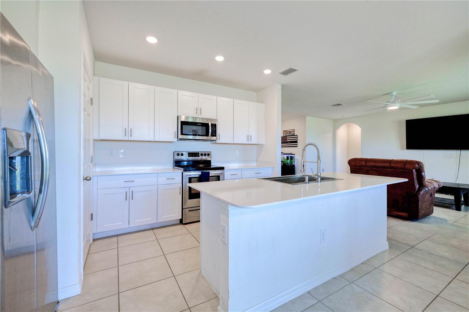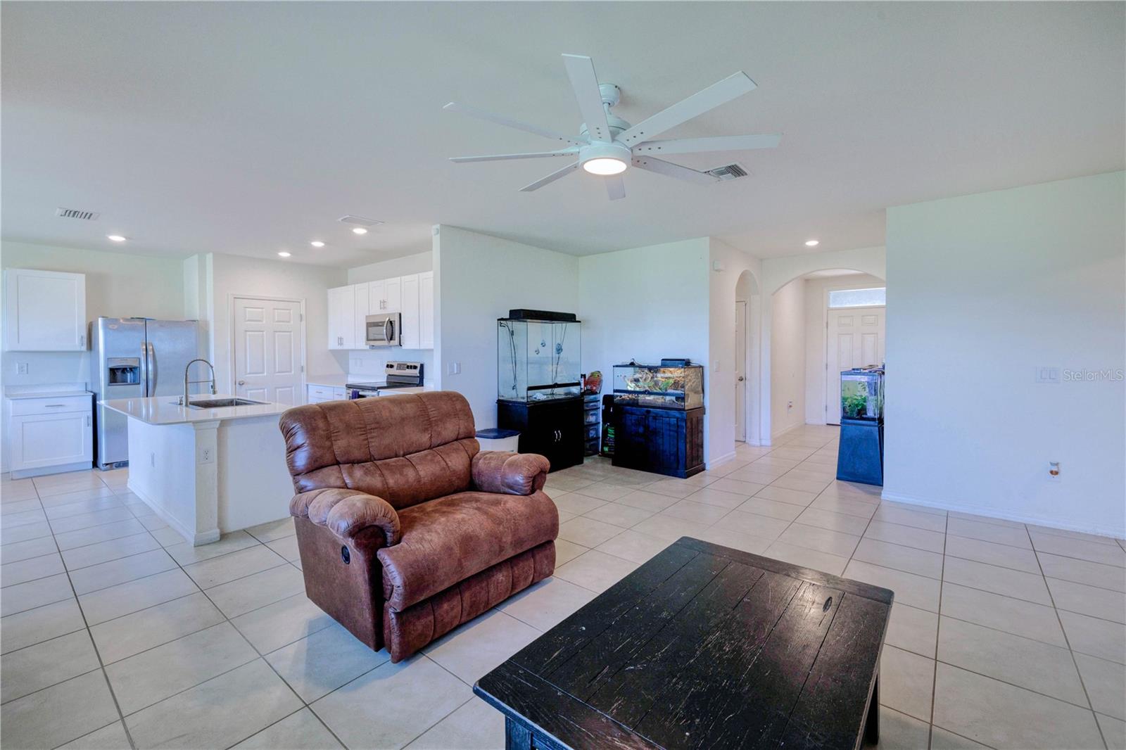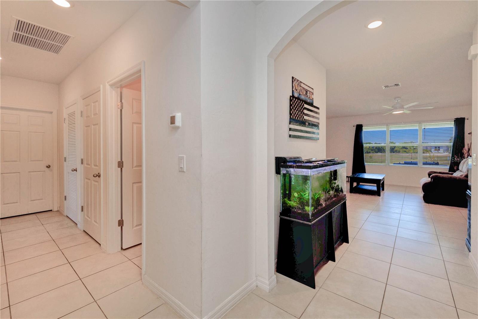 SPACIOUS 4 Bedroom, 2 Bathroom, 2 Car Garage home located in the desirable Deep Creek community. LOW HOA FEES & NO FLOOD REQUIRED! CLICK ON THE VIRTUAL TOUR LINK 1 FOR THE VIDEO AND VIRTUAL LINK 2 FOR THE 3D TOUR. Featuring a bright & airy floor plan, tile flooring in main living areas, recessed lighting, and MORE! Spend quality time with friends and family with an open living room flowing to the kitchen. The kitchen offers ALL stainless-steel appliances, Quartz countertops, an island with a breakfast bar, a closet pantry, and an off-kitchen dining room. A spacious master bedroom has a large walk-in closet and a private bathroom with dual sink vanity, linen closet, and walk-in shower. The three guest rooms are a fantastic size with built-in closets and a shared guest bathroom nearby. Step out to a large open backyard full of opportunity. 2020 ROOF - 2020 APPLIANCES - HURRICANE PROTECTION - PAVER DRIVEWAY - WIRED FOR GENERATOR. Deep Creek Golf Course is just a couple of miles down the road and a short car ride to world-class beaches. Easy access to local favorites such as Fishermen s Village, Ponce De Leon Park, shopping & boutiques, fine & casual dining, and LIVE entertainment. Schedule your showing TODAY! Room Feature: Linen Closet In Bath (Primary Bedroom).