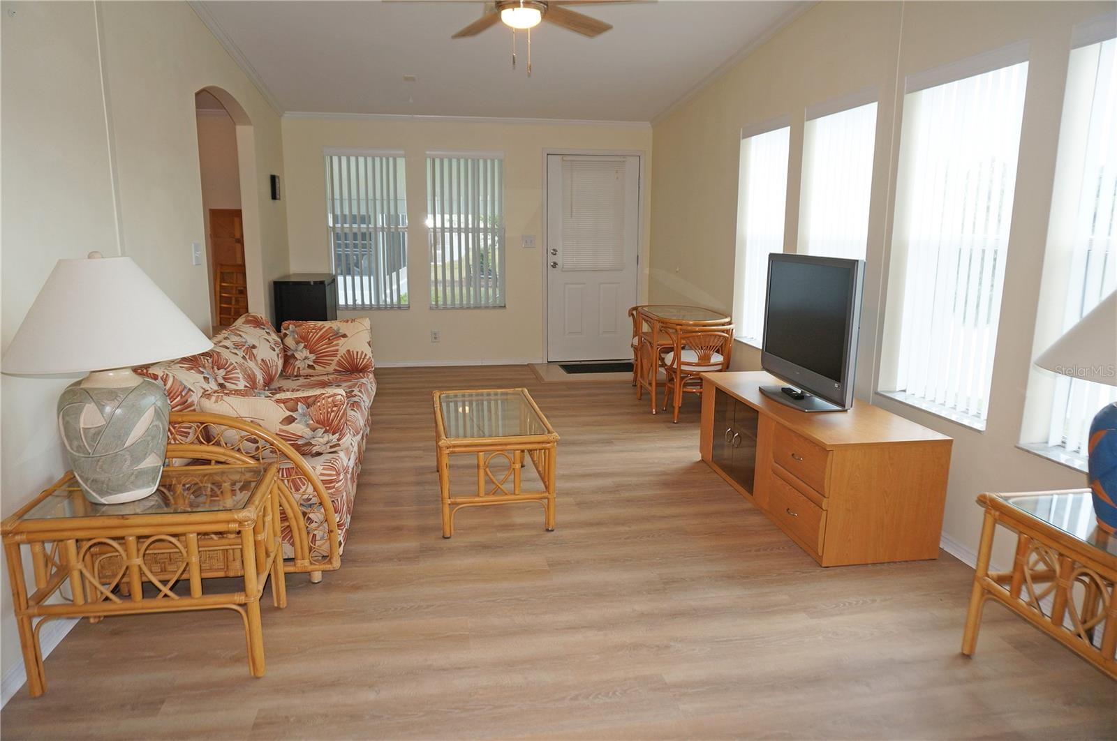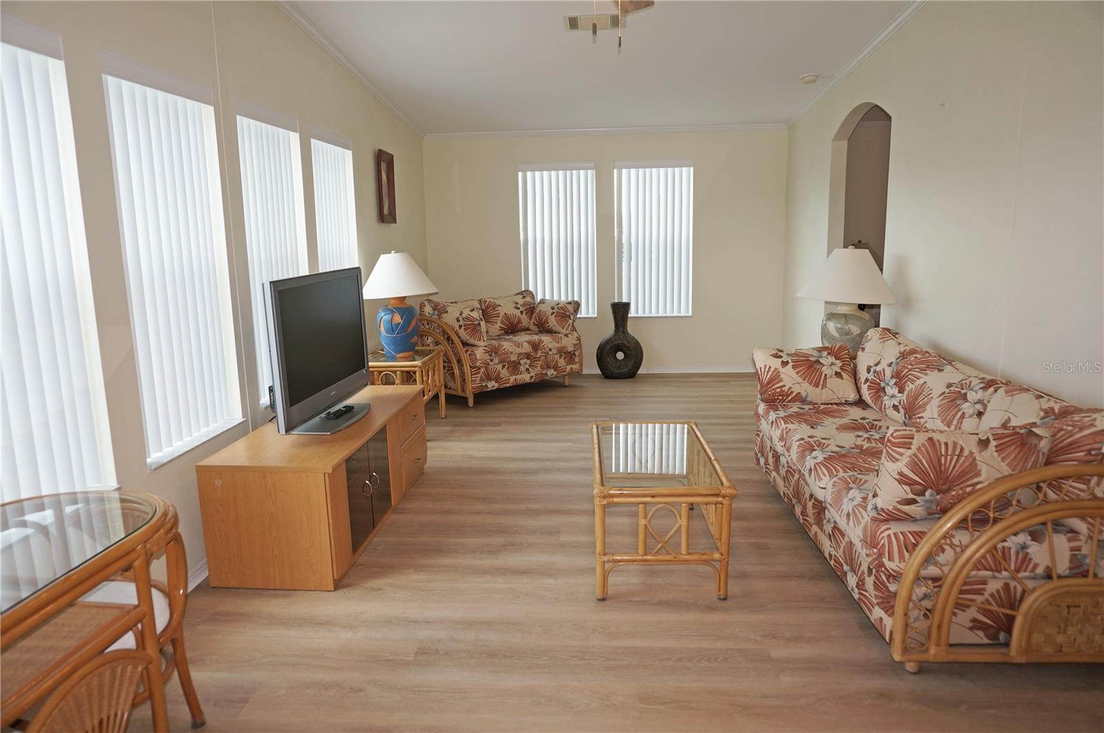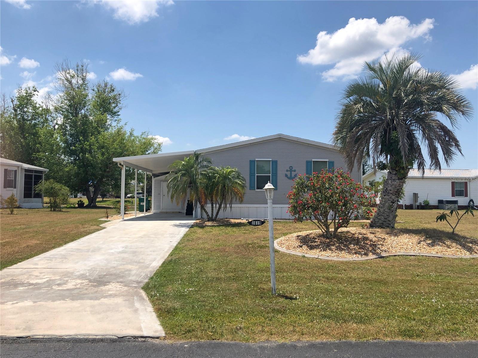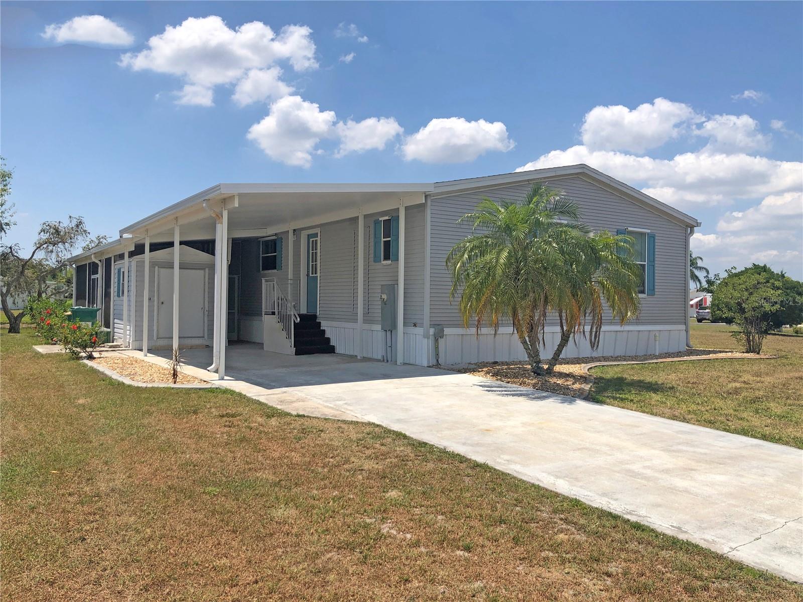 Impressive *FURNISHED* 2 Bedroom, 2 Bathroom home with Carport located in the desirable 55+ community of RIVERS EDGE located on Hunter Creek and the Peace River. **** NO LOT RENT FEES- YOU OWN THE LAND**** Well maintained double wide built in 2005. This light and bright home with high ceilings and large windows offers a Great Room with vaulted ceiling, well equipped Kitchen, spacious Dining Area, 26x11 Florida Room with a wall of windows with lake view and Inside Laundry closet with washer and dryer. The Kitchen features white cabinetry, oven/range, dishwasher, microwave, refrigerator, good counter and cabinet space. The Master Bedroom suite offers two double closets with built ins and private bathroom with walk in shower. There is a generous sized guest bedroom and the guest bathroom has a tub/shower combination. Your living space extends to the large screened back porch overlooking the lake. *NEW ROOF 2021.....NEW A/C 2020....NEW REFRIGERATOR 2022.....NEW WATER HEATER 2021* Other features include: luxury vinyl plank flooring throughout the home, tile in kitchen and bathrooms, hurricane shutters, rain gutters, storage unit in the carport area. Private water company provides water and sewer. RIVERS EDGE has a heated community pool and a clubhouse with kitchen, fitness center, library. There are plenty of community activities : community dinners, game nights, ladies lunches, pool parties, yoga and more. There is a community boat ramp and dock with 3 slips for DAY use, first come first serve. You can use your golf cart throughout the community and there is free boat and RV storage. Rivers Edge is 5 minutes from Golf and 15 minutes from historic downtown Punta Gorda shopping, dining, medical care, waterfront parks, boat ramps, fishing piers, walking and biking paths, weekend farmers markets, events, Fishermen's Village, art galleries and more.
