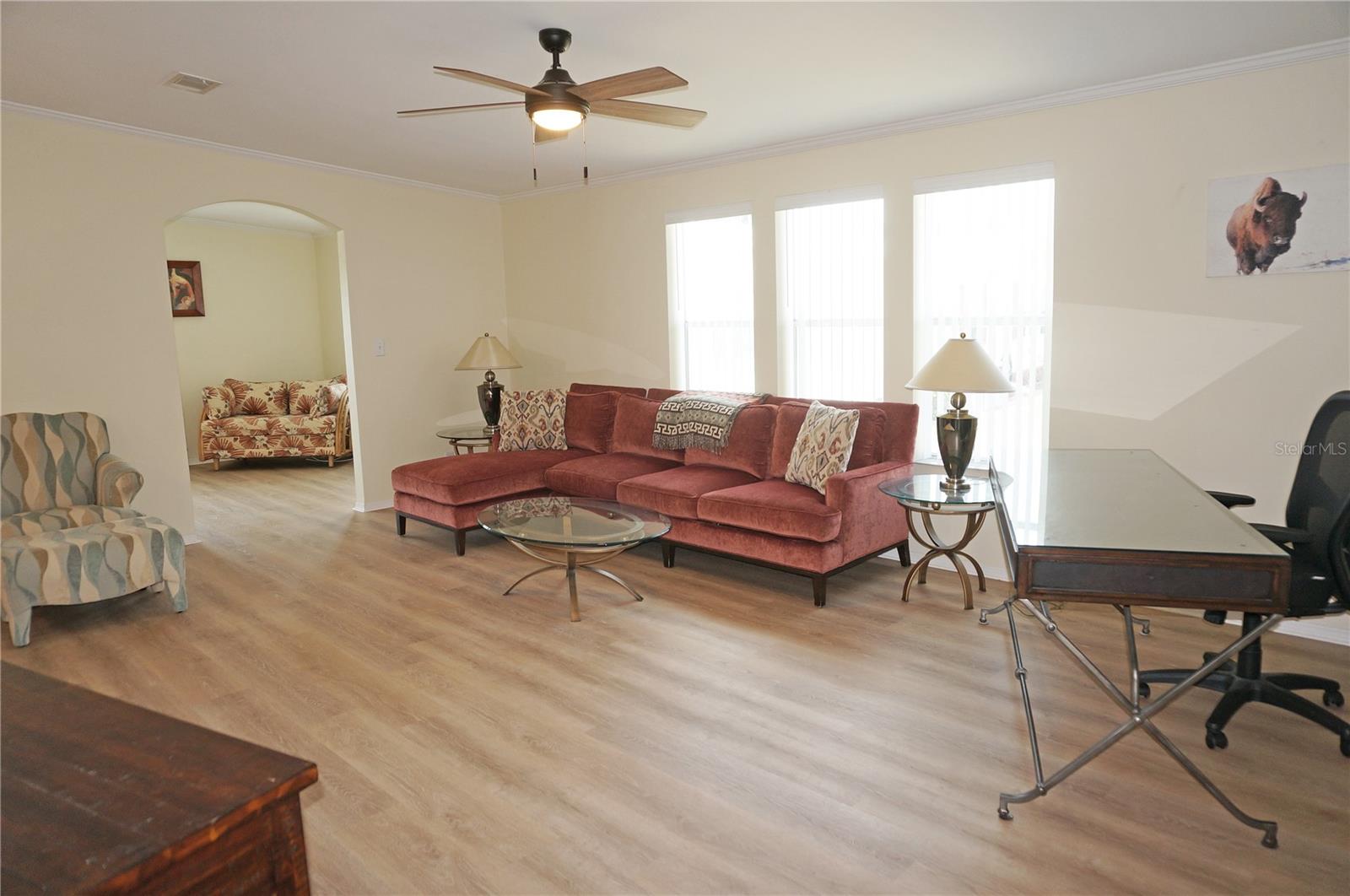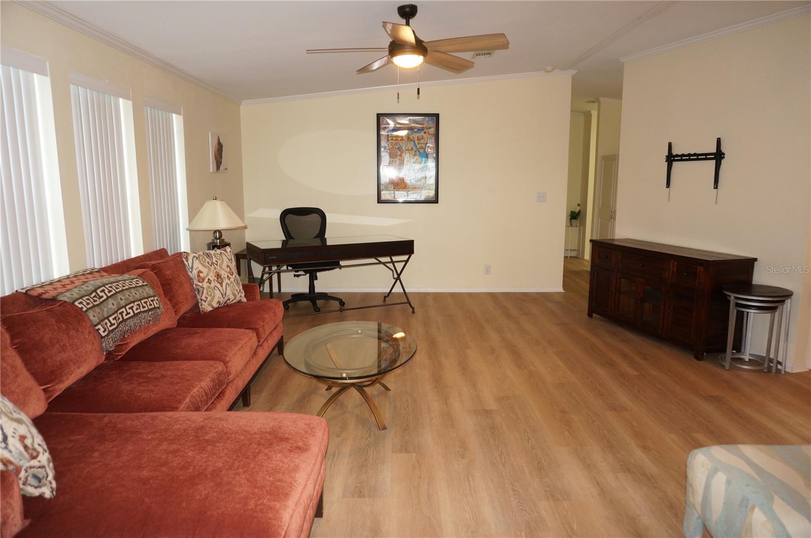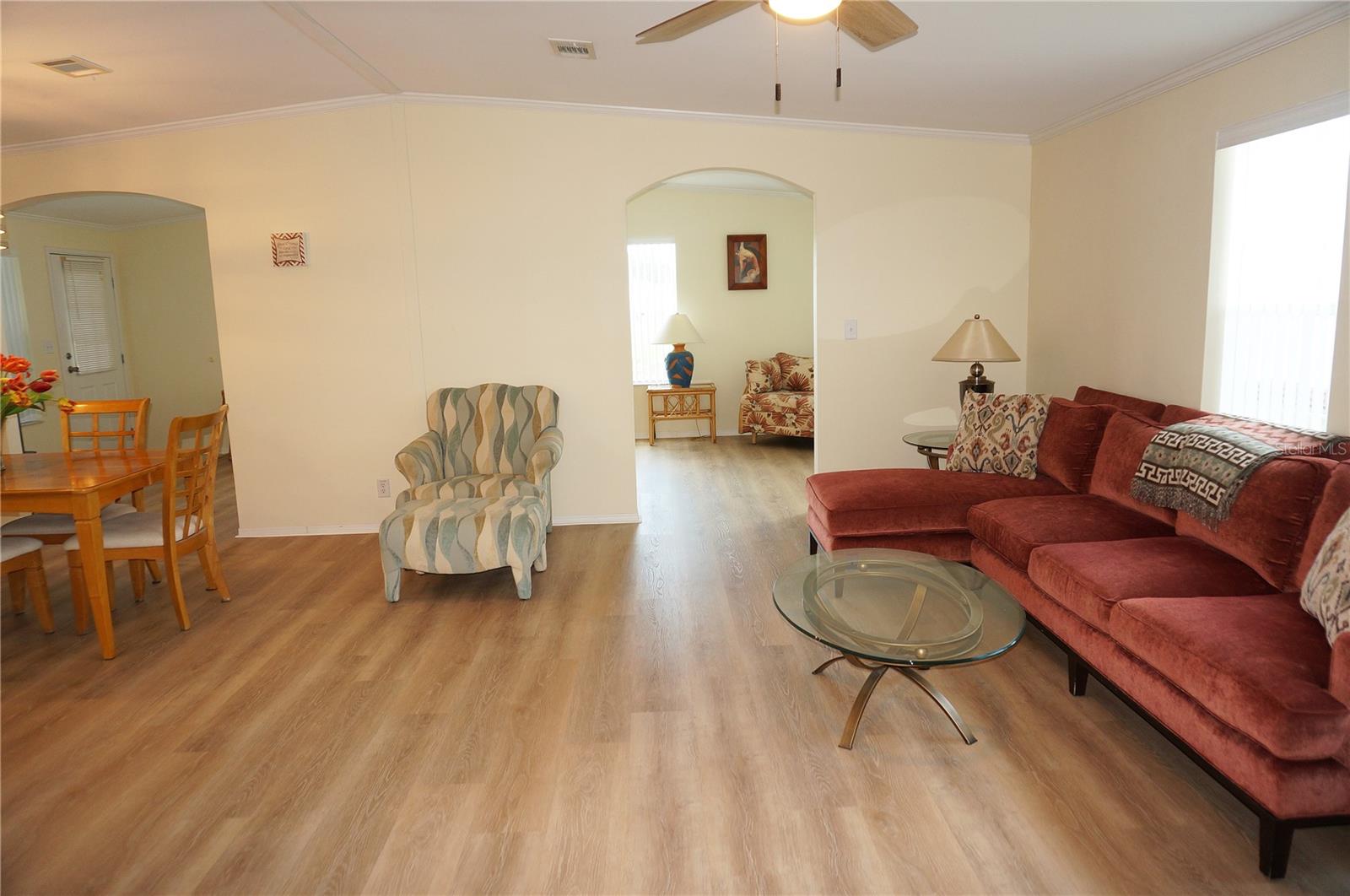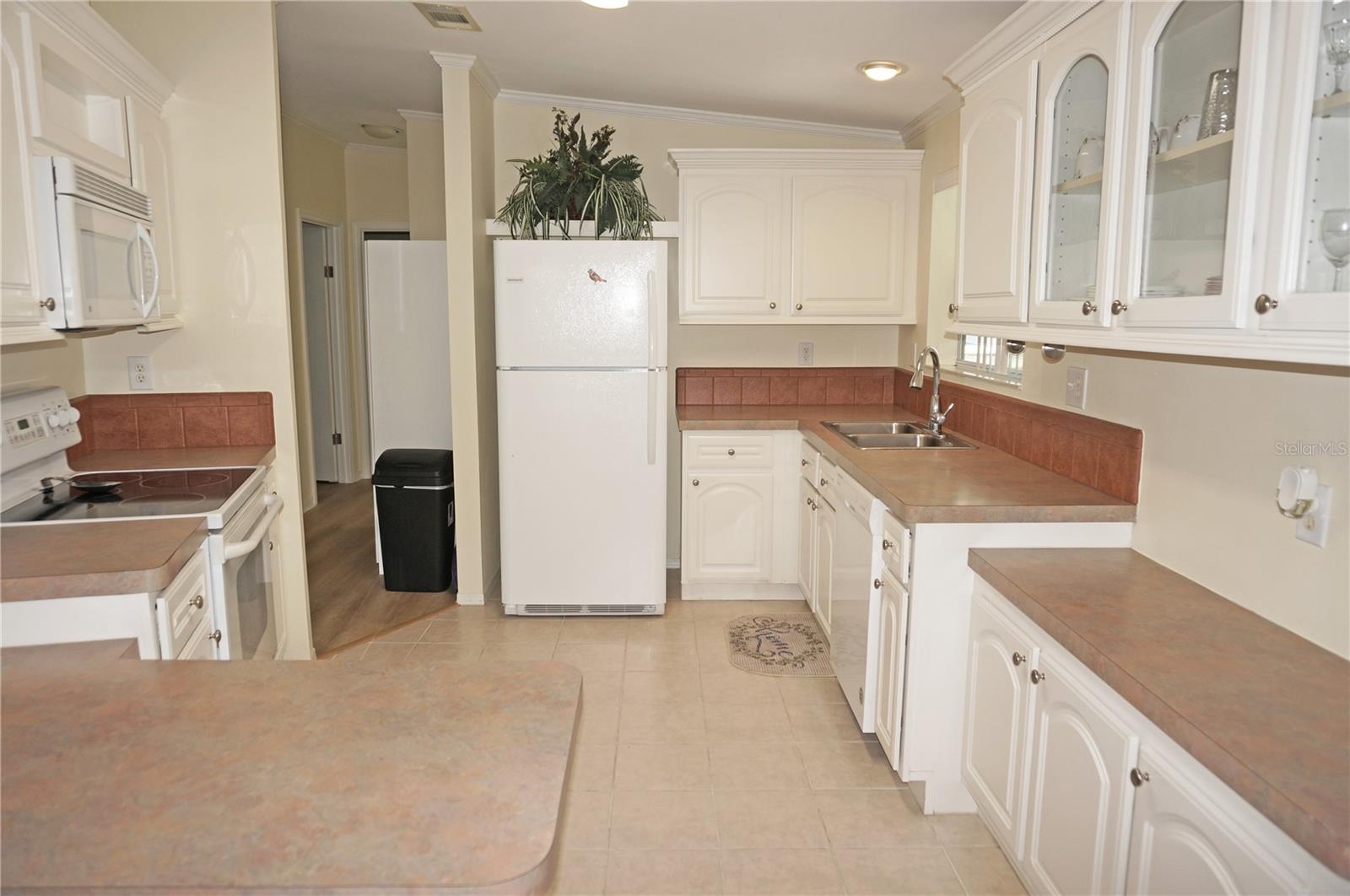 Impressive *FURNISHED* 2 Bedroom, 2 Bathroom home with Carport located in the desirable 55+ community of RIVERS EDGE located on Hunter Creek and the Peace River. **** NO LOT RENT FEES- YOU OWN THE LAND**** Well maintained double wide built in 2005. This light and bright home with high ceilings and large windows offers a Great Room with vaulted ceiling, well equipped Kitchen, spacious Dining Area, 26x11 Florida Room with a wall of windows with lake view and Inside Laundry closet with washer and dryer. The Kitchen features white cabinetry, oven/range, dishwasher, microwave, refrigerator, good counter and cabinet space. The Master Bedroom suite offers two double closets with built ins and private bathroom with walk in shower. There is a generous sized guest bedroom and the guest bathroom has a tub/shower combination. Your living space extends to the large screened back porch overlooking the lake. *NEW ROOF 2021.....NEW A/C 2020....NEW REFRIGERATOR 2022.....NEW WATER HEATER 2021* Other features include: luxury vinyl plank flooring throughout the home, tile in kitchen and bathrooms, hurricane shutters, rain gutters, storage unit in the carport area. Private water company provides water and sewer. RIVERS EDGE has a heated community pool and a clubhouse with kitchen, fitness center, library. There are plenty of community activities : community dinners, game nights, ladies lunches, pool parties, yoga and more. There is a community boat ramp and dock with 3 slips for DAY use, first come first serve. You can use your golf cart throughout the community and there is free boat and RV storage. Rivers Edge is 5 minutes from Golf and 15 minutes from historic downtown Punta Gorda shopping, dining, medical care, waterfront parks, boat ramps, fishing piers, walking and biking paths, weekend farmers markets, events, Fishermen's Village, art galleries and more.