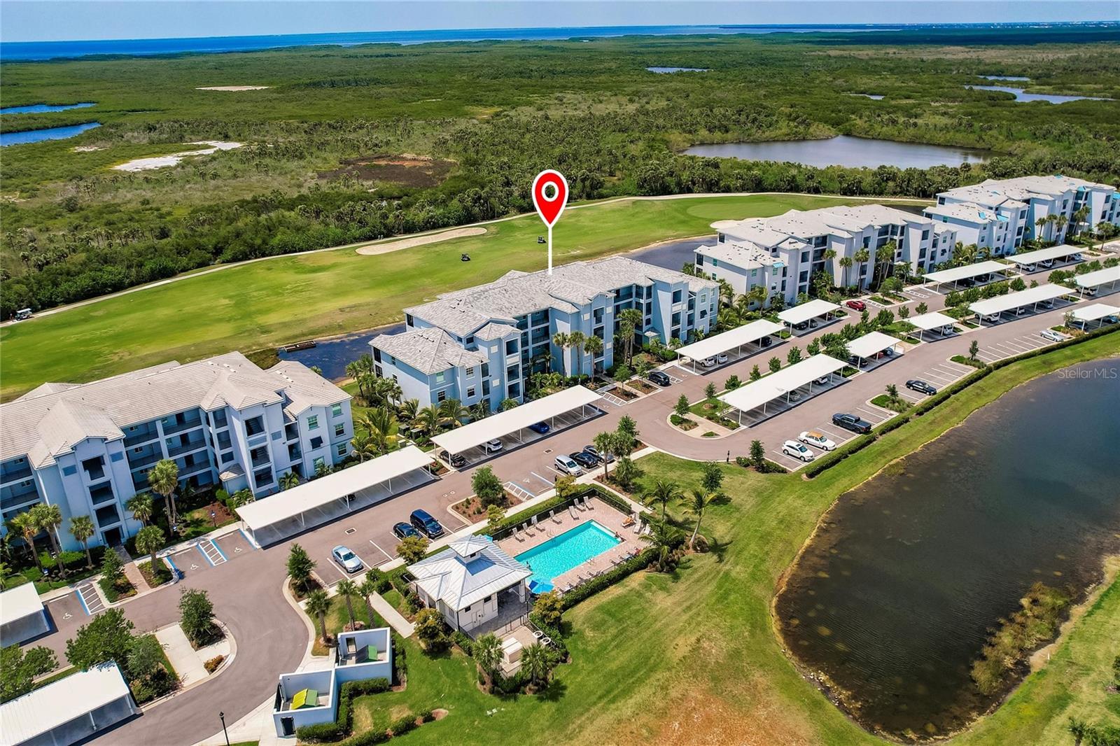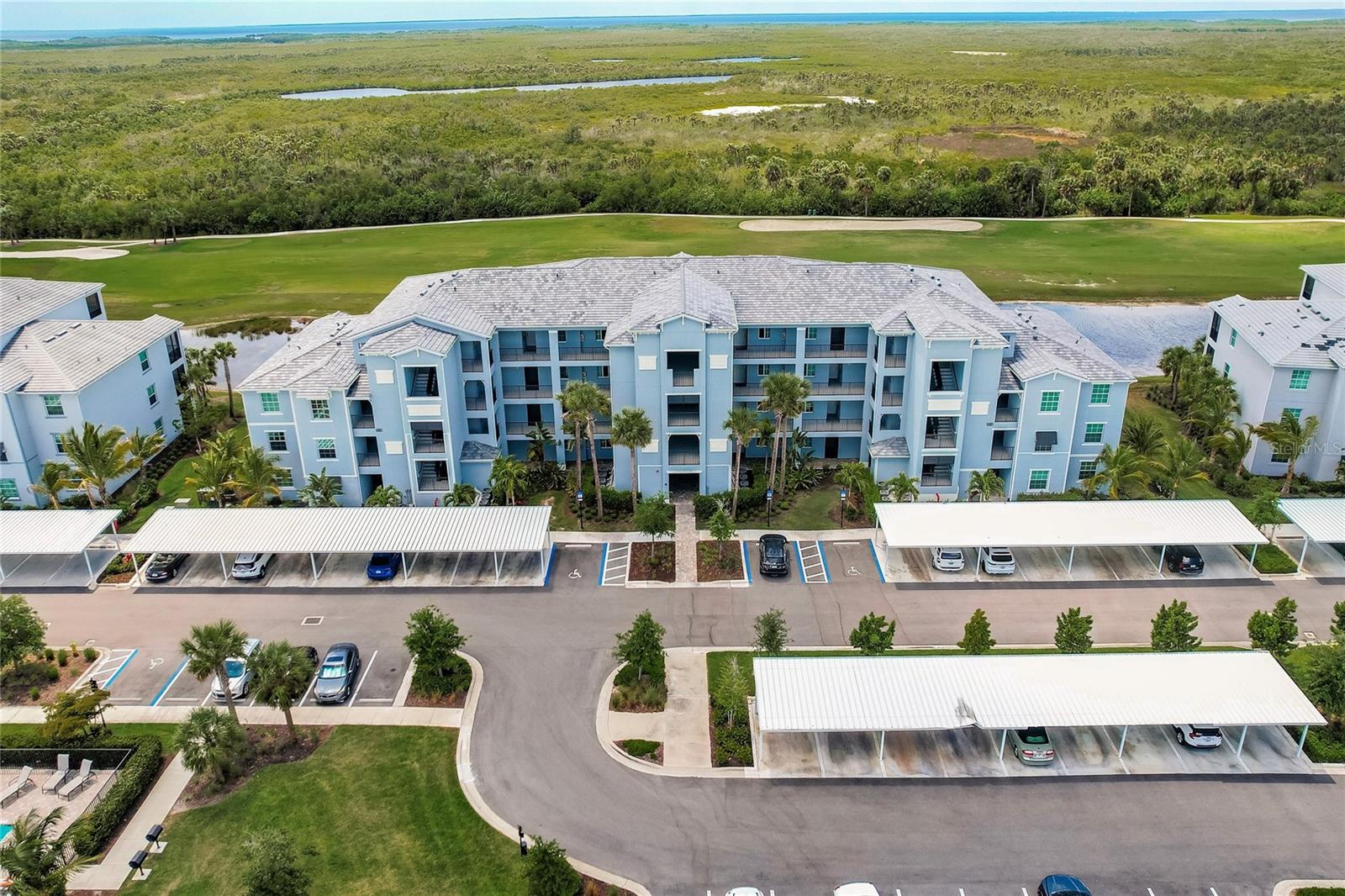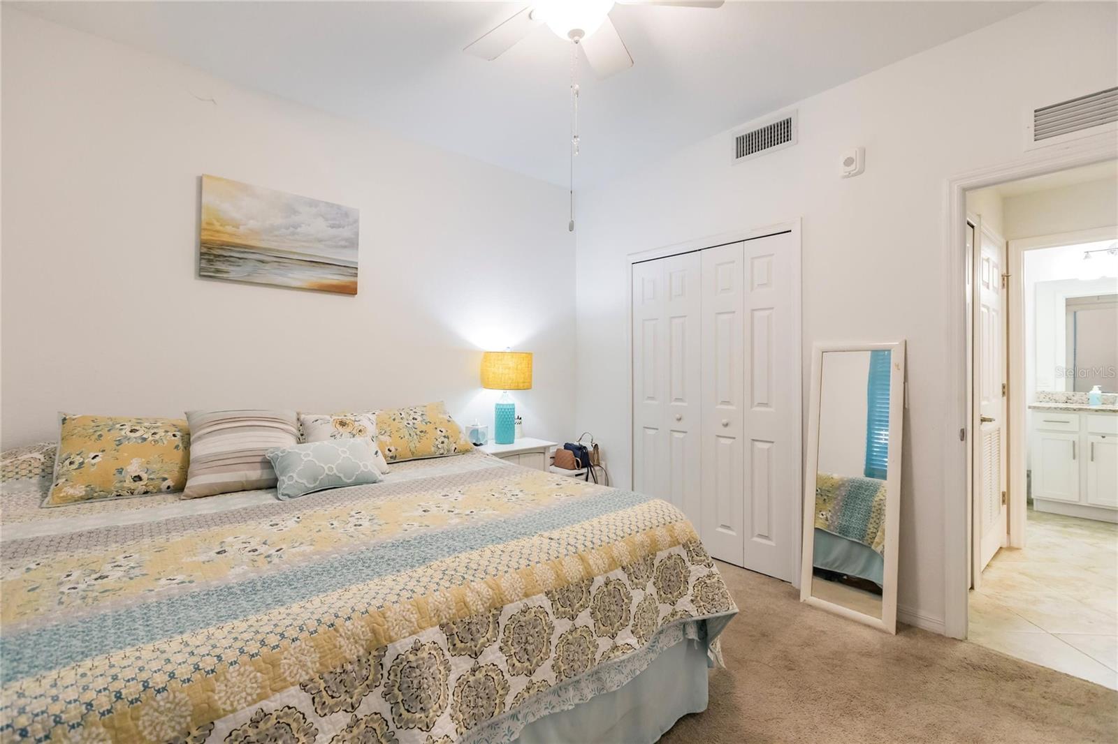 GOLF MEMBERSHIP INCLUDED!! Looking for your winter retreat or resort style living? Then, you need to tour this exceptional lake front 2 bedroom, 2 bath condo in the community of Terrace II at Heritage Landing. Nestled in a quiet section of Punta Gorda with spectacular view of lake and golf course, this condo offers open floor plan with living, dining, and spacious kitchen. The kitchen boasts granite counters,warm wood cabinetry, pantry, stainless appliances, and island with breakfast bar and second breakfast bar that opens to the main living area for easy entertaining. The master bedroom has 2 walk in closets and private en suite bath with custom tiled shower. You will enjoy relaxing on your screened and brick paved lanai overlooking the beautiful lake and golf course and watching the waterfowl and wildlife unique to SW Florida. Other key features include dedicated laundry room with washer & dryer, assigned parking, and public water & sewer service for convenience and reliability. Plus, you can walk right across the street to the Terrace’s heated pool or head over to Heritage Landing’s heated pool and spa for year round enjoyment. Other amenities include club house, state of the art fitness center, spa offering massages, manicures, and pedicures; 24 hour guarded gate, golf course, tennis, pickleball, tiki bar with entertainment, and beautifully landscaped grounds and lakes. This community has many walking and bike paths for enjoying the beautiful surroundings. Proximity to local waterways and beaches, dining, shopping, and golf courses makes this property ideal for the Florida lifestyle. Also, easy access to public boat ramps providing access to many waterways including beautiful Charlotte Harbor, the Peace and Myakka Rivers, and the Gulf of Mexico. And you are minutes to historic downtown Punta Gorda and popular Fishermen’s Village with quaint shops and cafes. So, don’t wait to start enjoying your piece of Florida paradise! Bedroom Closet Type: Walk-in Closet (Primary Bedroom).