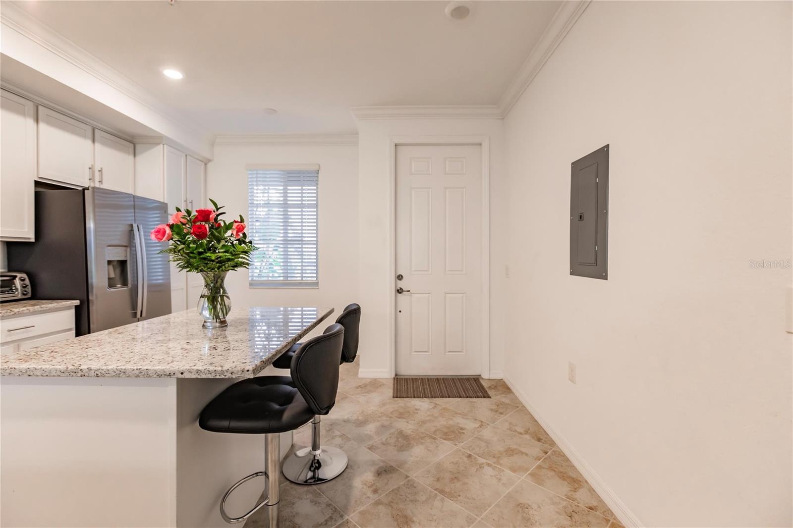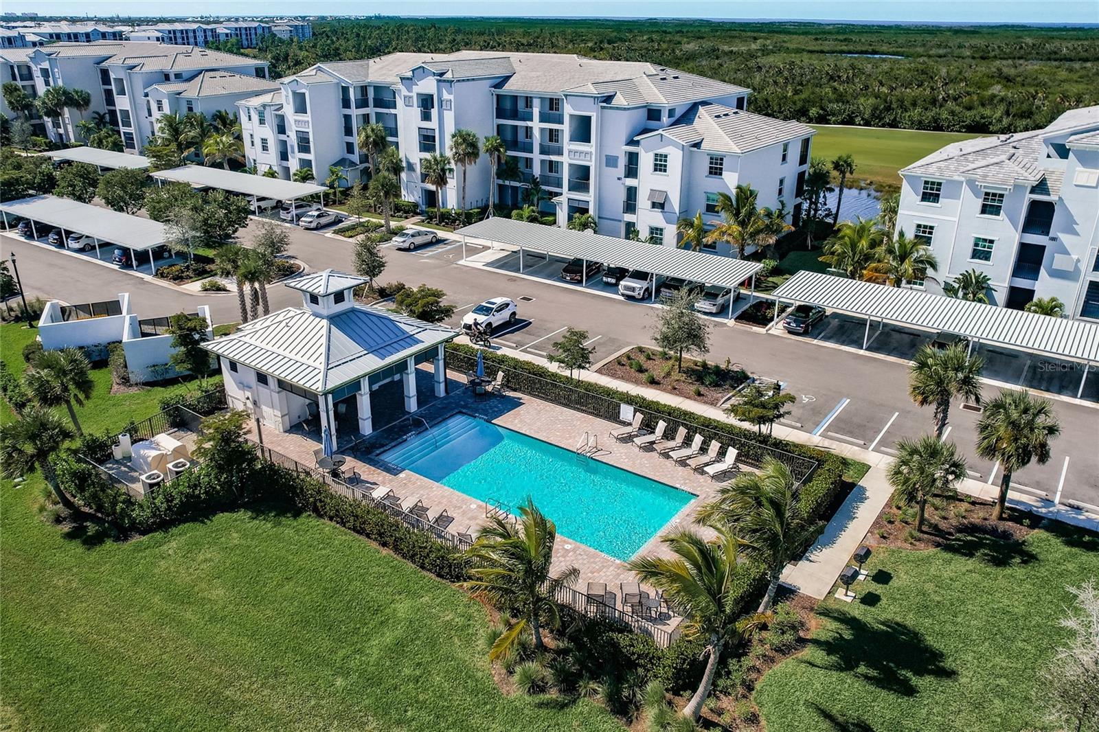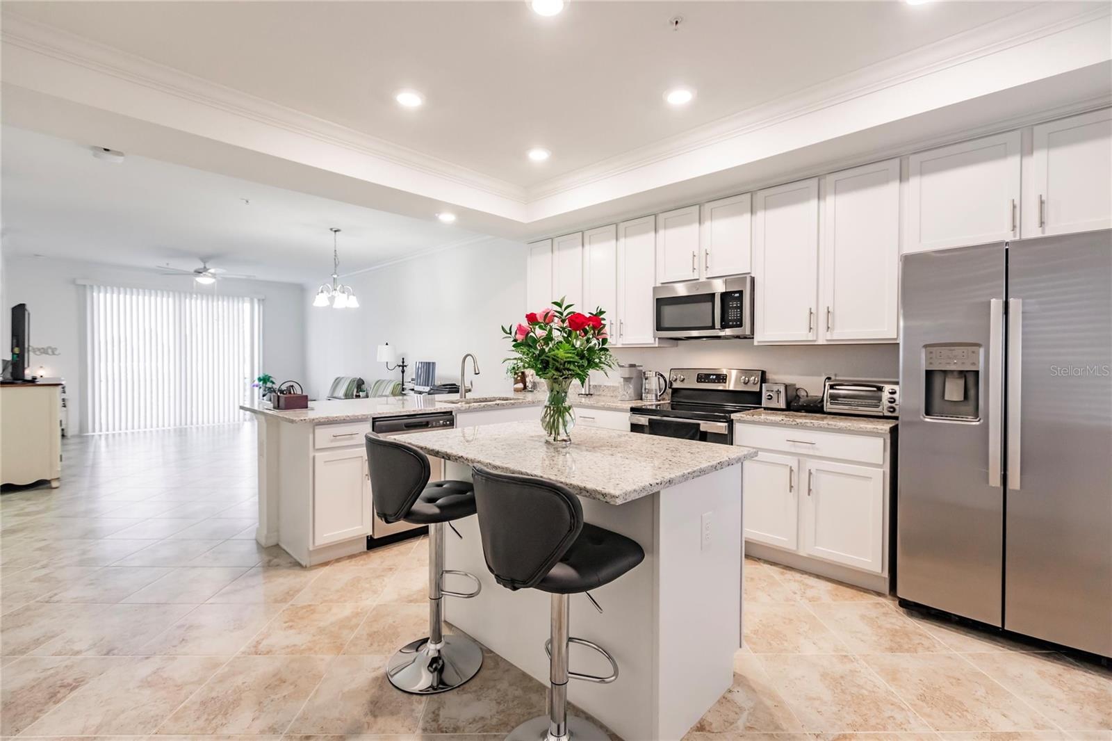 GOLF MEMBERSHIP INCLUDED!! Looking for your winter retreat or resort style living? Then, you need to tour this exceptional lake front 2 bedroom, 2 bath condo in the community of Terrace II at Heritage Landing. Nestled in a quiet section of Punta Gorda with spectacular view of lake and golf course, this condo offers open floor plan with living, dining, and spacious kitchen. The kitchen boasts granite counters,warm wood cabinetry, pantry, stainless appliances, and island with breakfast bar and second breakfast bar that opens to the main living area for easy entertaining. The master bedroom has 2 walk in closets and private en suite bath with custom tiled shower. You will enjoy relaxing on your screened and brick paved lanai overlooking the beautiful lake and golf course and watching the waterfowl and wildlife unique to SW Florida. Other key features include dedicated laundry room with washer & dryer, assigned parking, and public water & sewer service for convenience and reliability. Plus, you can walk right across the street to the Terrace’s heated pool or head over to Heritage Landing’s heated pool and spa for year round enjoyment. Other amenities include club house, state of the art fitness center, spa offering massages, manicures, and pedicures; 24 hour guarded gate, golf course, tennis, pickleball, tiki bar with entertainment, and beautifully landscaped grounds and lakes. This community has many walking and bike paths for enjoying the beautiful surroundings. Proximity to local waterways and beaches, dining, shopping, and golf courses makes this property ideal for the Florida lifestyle. Also, easy access to public boat ramps providing access to many waterways including beautiful Charlotte Harbor, the Peace and Myakka Rivers, and the Gulf of Mexico. And you are minutes to historic downtown Punta Gorda and popular Fishermen’s Village with quaint shops and cafes. So, don’t wait to start enjoying your piece of Florida paradise! Bedroom Closet Type: Walk-in Closet (Primary Bedroom).