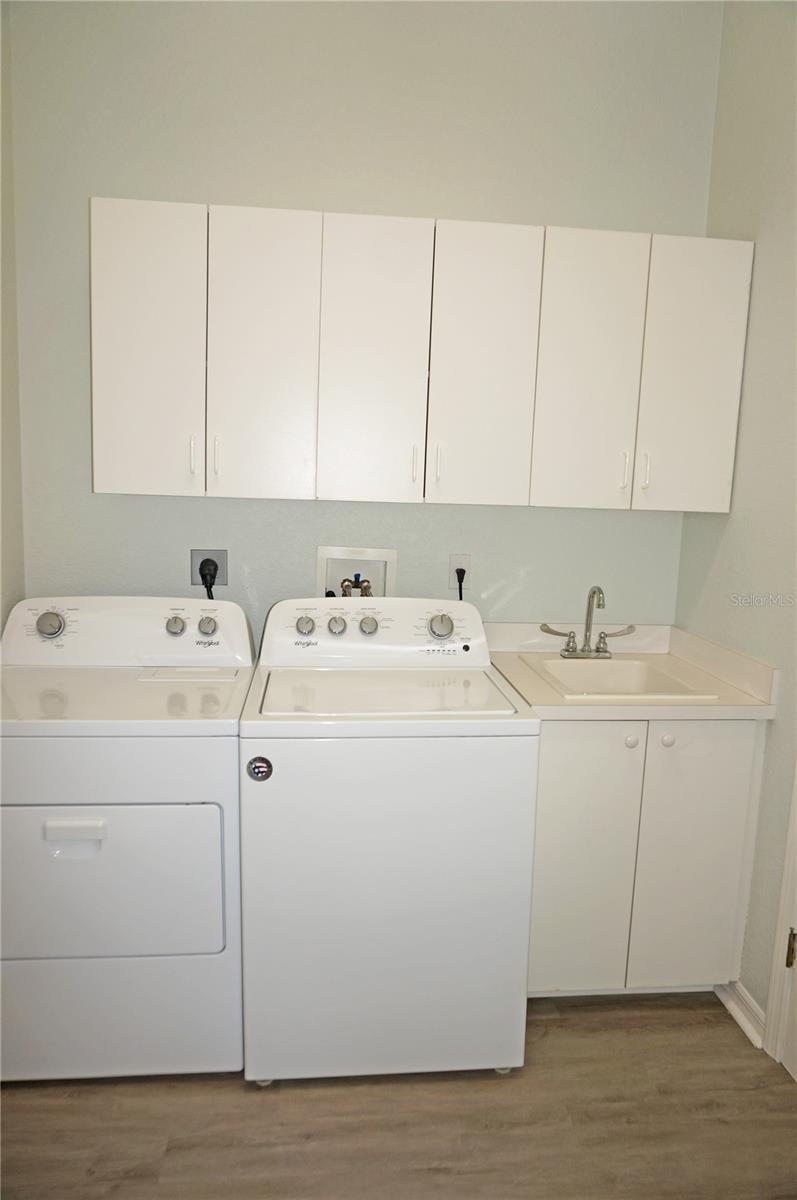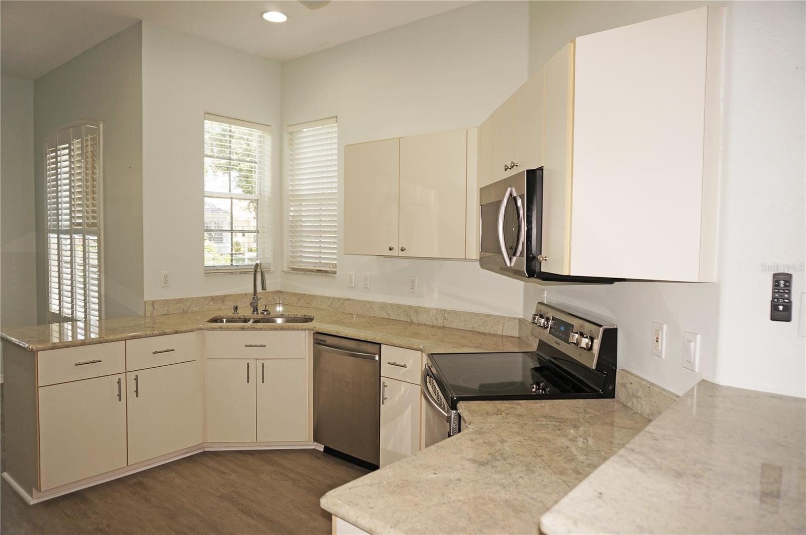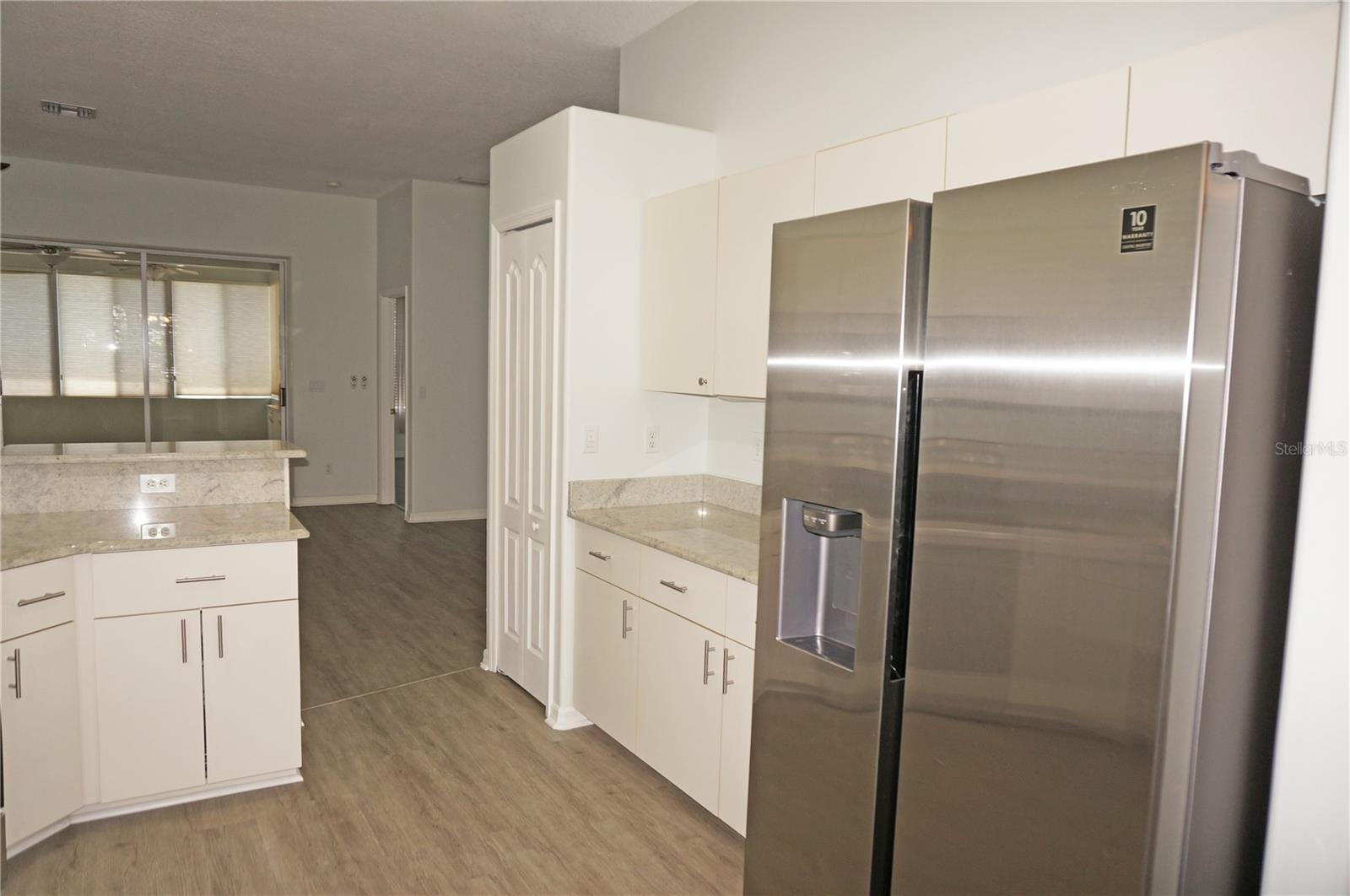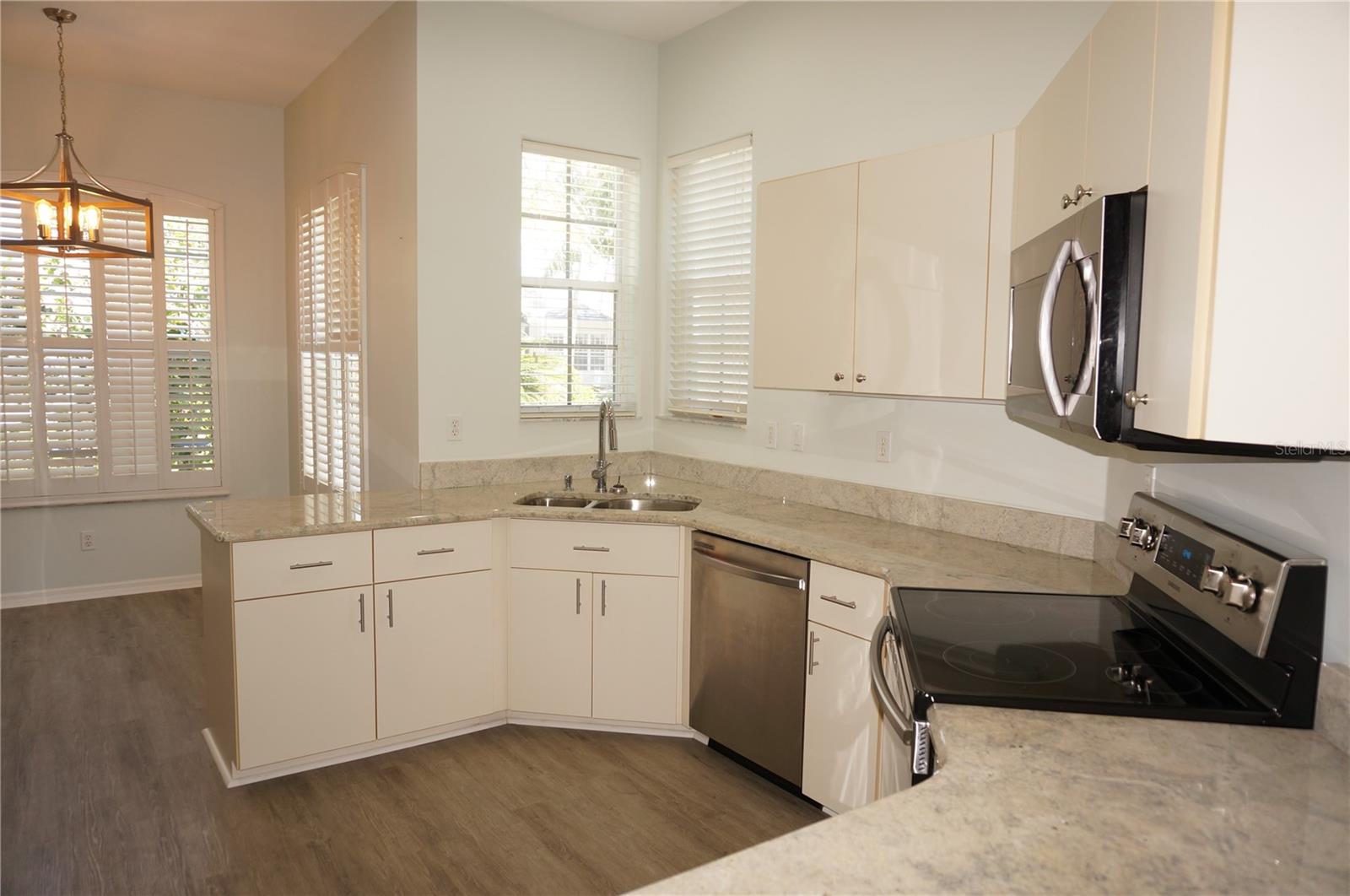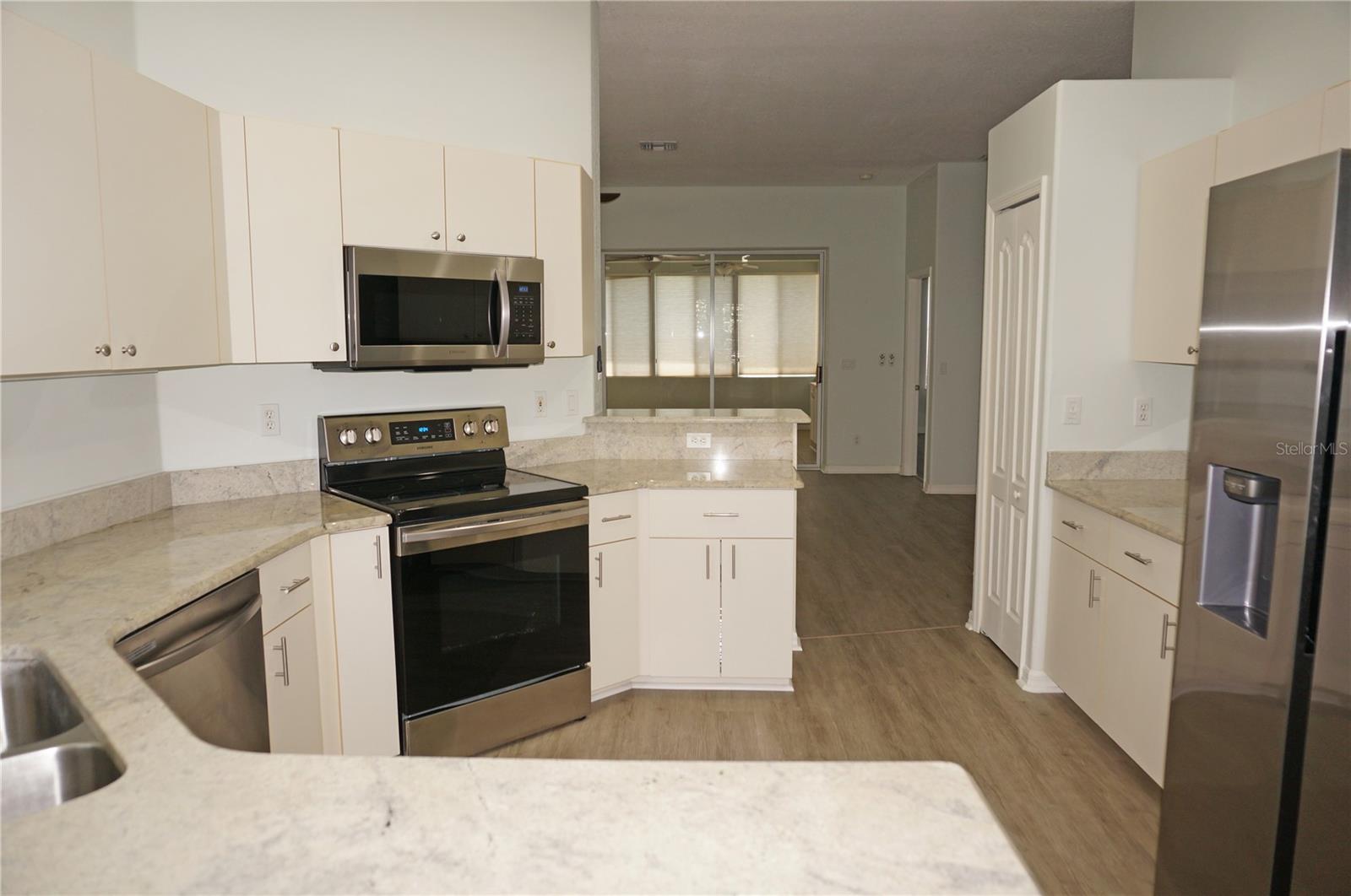Impressive MOVE IN READY 3 Bedroom, 2 Bathroom home with attached 2 Car Garage located in the desirable gated golf community of SEMINOLE LAKES. This home has been completely updated: *NEW ROOF 2023*, NEW exterior paint 2023, new granite counters in the Kitchen and bathrooms, lighting has been replaced, appliances are 3 years old and there is luxury vinyl flooring throughout the home. This light and bright home offers an open floor plan with Great Room, Dining Room, 19x18 Florida Room, well appointed Kitchen and Inside Laundry Room. The Foyer has diagonal lay tile, a transom window over the front door and a coat closet. Sliding glass doors lead from the Great Room to the Florida Room (custom enclosed lanai) that has two walls of windows and a dry bar, perfect for entertaining. A side door takes you to the backyard with greenbelt view of lush tropical landscaping. The Kitchen has new granite counters, stainless refrigerator, dishwasher, microwave and oven/range, double sink, dining area with plantation shutters and pantry closet. Great counter and cabinet space. The Inside Laundry has a washer, dryer, sink and cabinets. The Master Bedroom suite features a walk in closet and private bathroom with dual sinks, granite counters, garden tub and walk in shower. There are two additional generous sized bedrooms and the guest bathroom has granite counters and a tub/shower combination. Other features include: hurricane shutters, security system, ceiling fans, 10 foot ceilings, screened front entry, security system, window treatments. SEMINOLE LAKES features an 18 hole par 62 Ron Garl executive Golf Course, tennis, access to pickleball courts, bocce courts, heated community pool, clubhouse, fitness room, library, underground utilities. This challenging golf course has eight lakes and a spectacular view of natures wildlife. Only 10 minutes to historic downtown Punta Gorda shopping, dining, medical care, waterfront parks, fishing piers, boat ramps, art galleries, walking and biking paths, weekend farmers markets, Fishermens Village, events and more!