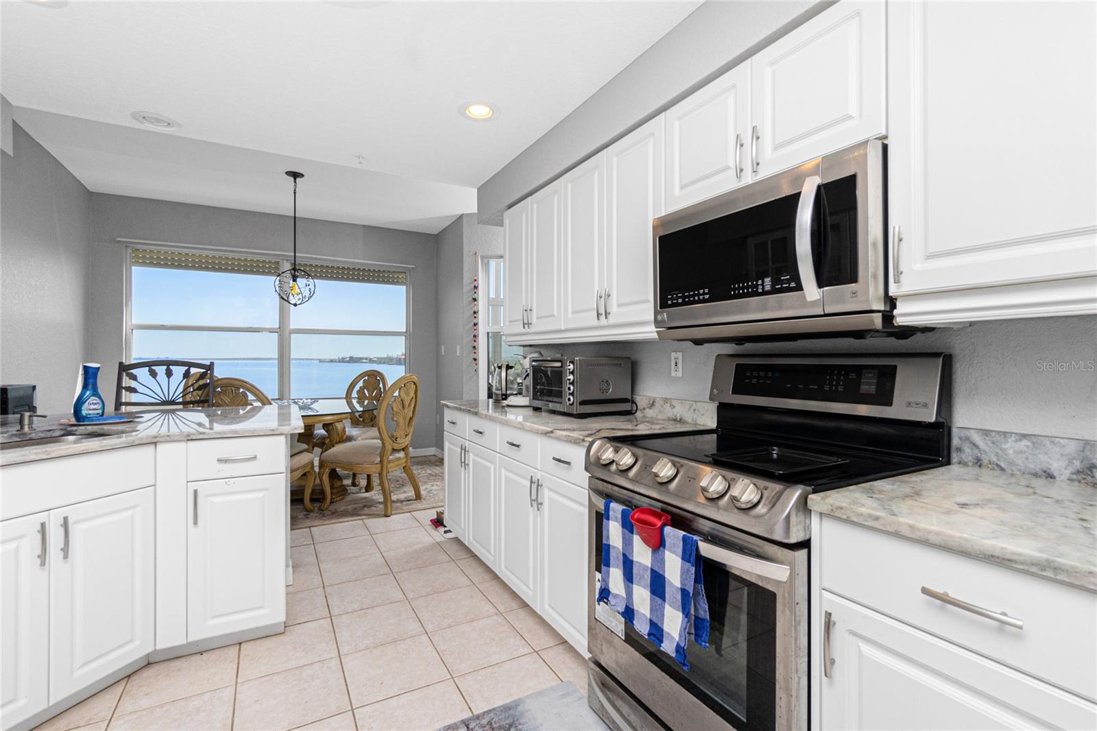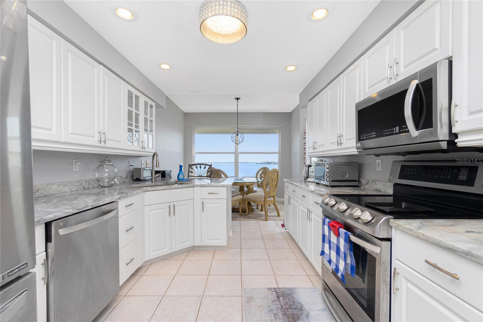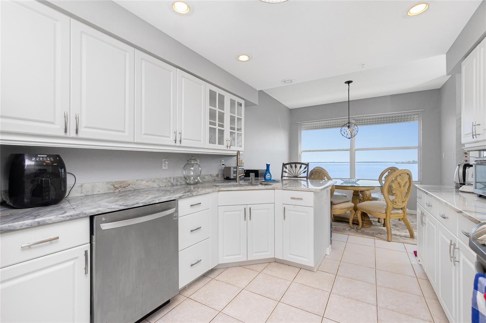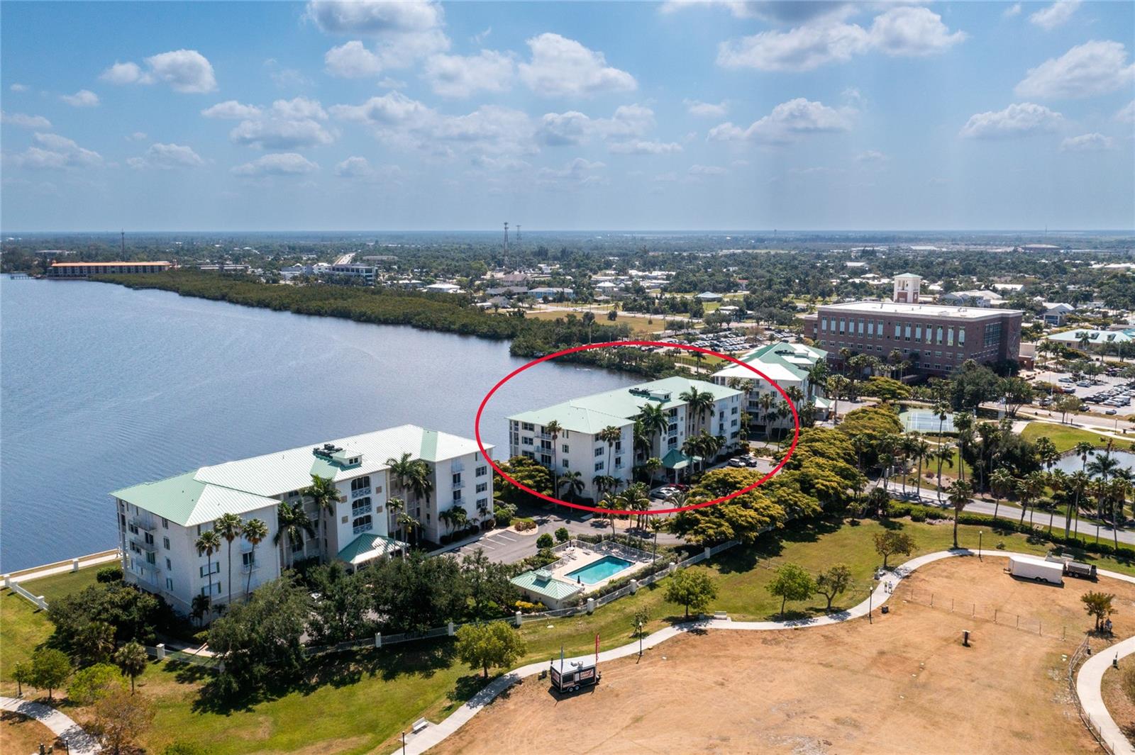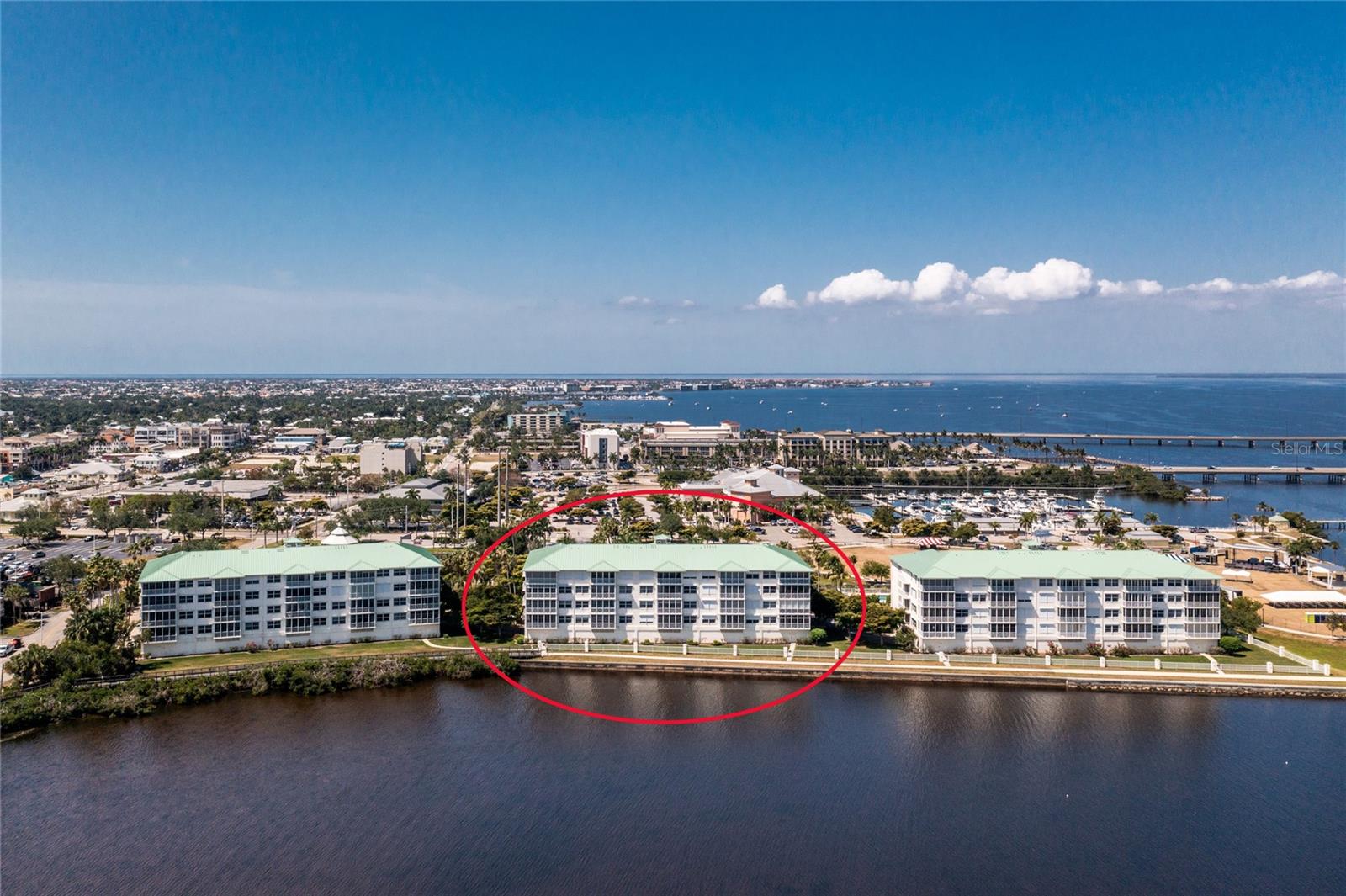 WATERFRONT 3 Bedroom, 2.5 Bathroom end unit condo at HARBOR WALK in downtown Punta Gorda. **Breathtaking panoramic views of CHARLOTTE HARBOR** Located on the fourth floor of a five story building with elevator. This light and bright condo offers an open and split bedroom floor plan with large Foyer with storage closets, Great Room with spectacular water views, Dining Room, well appointed Kitchen, rear 20x9 ft Lanai and Inside Laundry. The Kitchen features white cabinetry, granite counters, breakfast bar, stainless appliances (French door refrigerator, dishwasher, oven/range, microwave) and dining area with water view. The Inside Laundry offers a front loading washer, front loading dryer, white cabinets, granite counter and sink. The Master Bedroom suite has a private balcony, large California style walk in closet and private bathroom with dual sinks, granite counters, white cabinets, tub and walk in shower. There are two additional generous sized bedrooms and the guest bathroom has a walk in shower, granite counter, white cabinetry. There is a formal Dining Room and a half bath with a pedestal sink. Your living space extends via sliding glass doors to the spacious lanai with stunning water views through vinyl windows. Other features include: tile flooring throughout the unit, electric hurricane shutters, custom Hunter Douglas blinds. Utilities are city water and sewer. This unit has under building parking space # 1 and storage unit # 15. HARBOR WALK has a heated inground community pool, tennis court and a secured building entry. This condo is just steps away from Laishley Park and a 5 minute walk to downtown shopping, dining, waterfront parks, fishing piers, boat ramps, art galleries, walking and biking paths, Charlotte Harbor Events Center, weekend farmers markets, events and more. This is a spectacular condo in a great location!