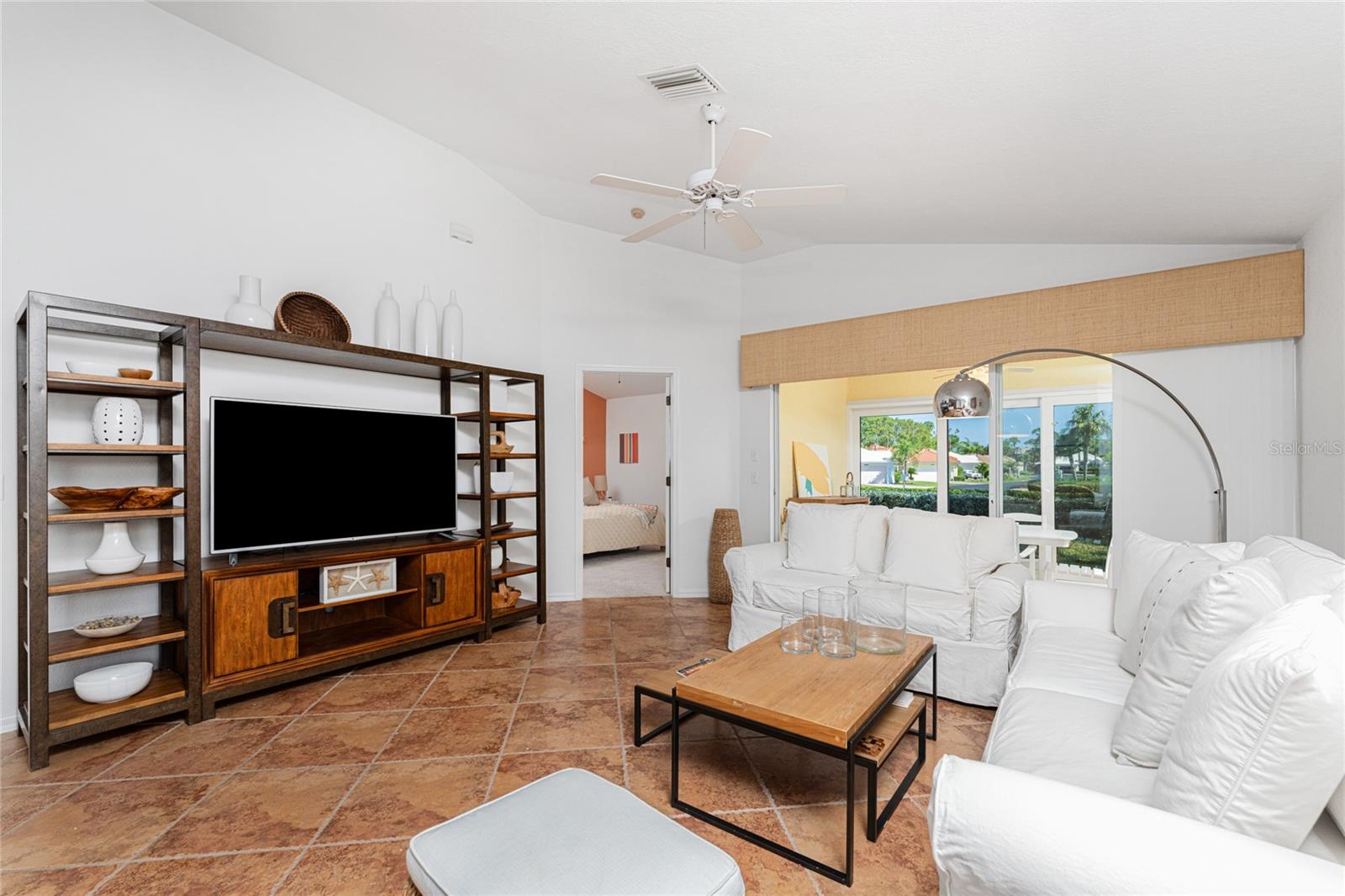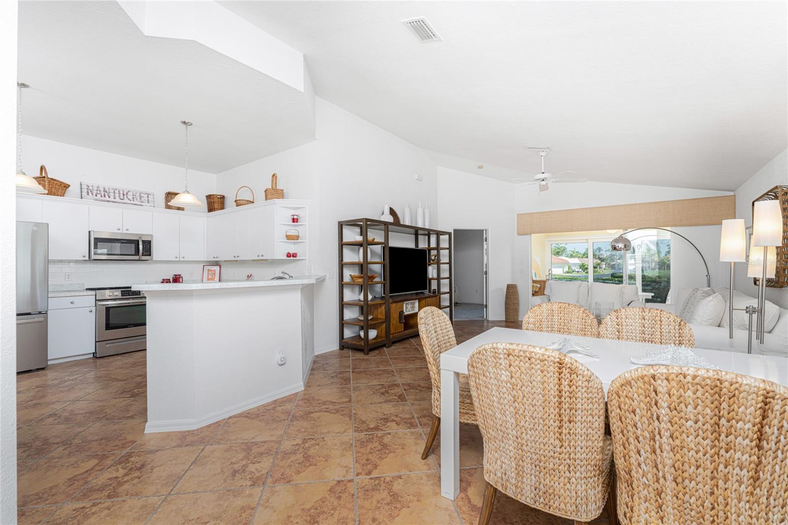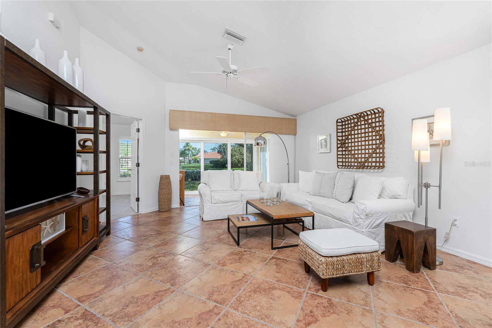 Seasonal rental in place 1/15/25-3/31/25 generating roughly $9200 in rental income. Fabulous two bedroom/ two bath maintenance free villa delivers the ultimate resort lifestyle to its new owners! This villa enjoys the benefits of being an end unit, with plenty of elbow room and privacy. A tropical landscape will welcome you to the screened in entry which also invites in pleasing breezes and Florida sunshine. A terrific open floorplan boasting soaring ceilings and pleasing space is sure to delight. Handsome oversized terracotta floor tile provides a great island vibe against the crisp white walls and chic decor in this fully furnished turnkey residence. Grab a cocktail and head out to the inviting lanai where you are sure to feel like you are on island time! Slide open the glass doors and feel like this is what you have been waiting for. The resident chef will be pleased to work is the expansive kitchen with abundant work surface complimented by white subway tile and ample cabinetry to store all their special gadgets. They will prepare in style with their stainless range & micro and 1 year old stainless refrigerator. Enjoy your meal alfredo, or in the convenient dining area, where you can enjoy the landscape through the pleasing plantation shutters. When you retire to the primary suite you are sure to enjoy the grandeur of the large bedroom with cathedral ceilings, window with plantation shutters, new carpets, walk in closet and ensuite bath. The versatile guest room ( also with new carpet) is sure to be a hit with a handy murphy bed that conveniently leaves the room freed up for a fabulous office/den when not in use. Clever built in storage has been added to an inviting window seat as well as flanking the murphy bed. Your guests will find their private full bath with tub shower combo right outside their door. The oversized one car garage is a tinkerers dream with incredible built in storage for all of their stuff. This villa has been re-piped and has newer hot water heater ( 3yrs) AC ( 5yrs), Washer/ Dryer ( 4yrs)...and a 6 year old metal roof. Burnt Store Marina residents enjoy access to two on site restaurants, ship’s store, 27 hole golf course, activity club, pickle ball, tennis and fitness center, great walking paths, along with the largest Deepwater Marina in SWFL.