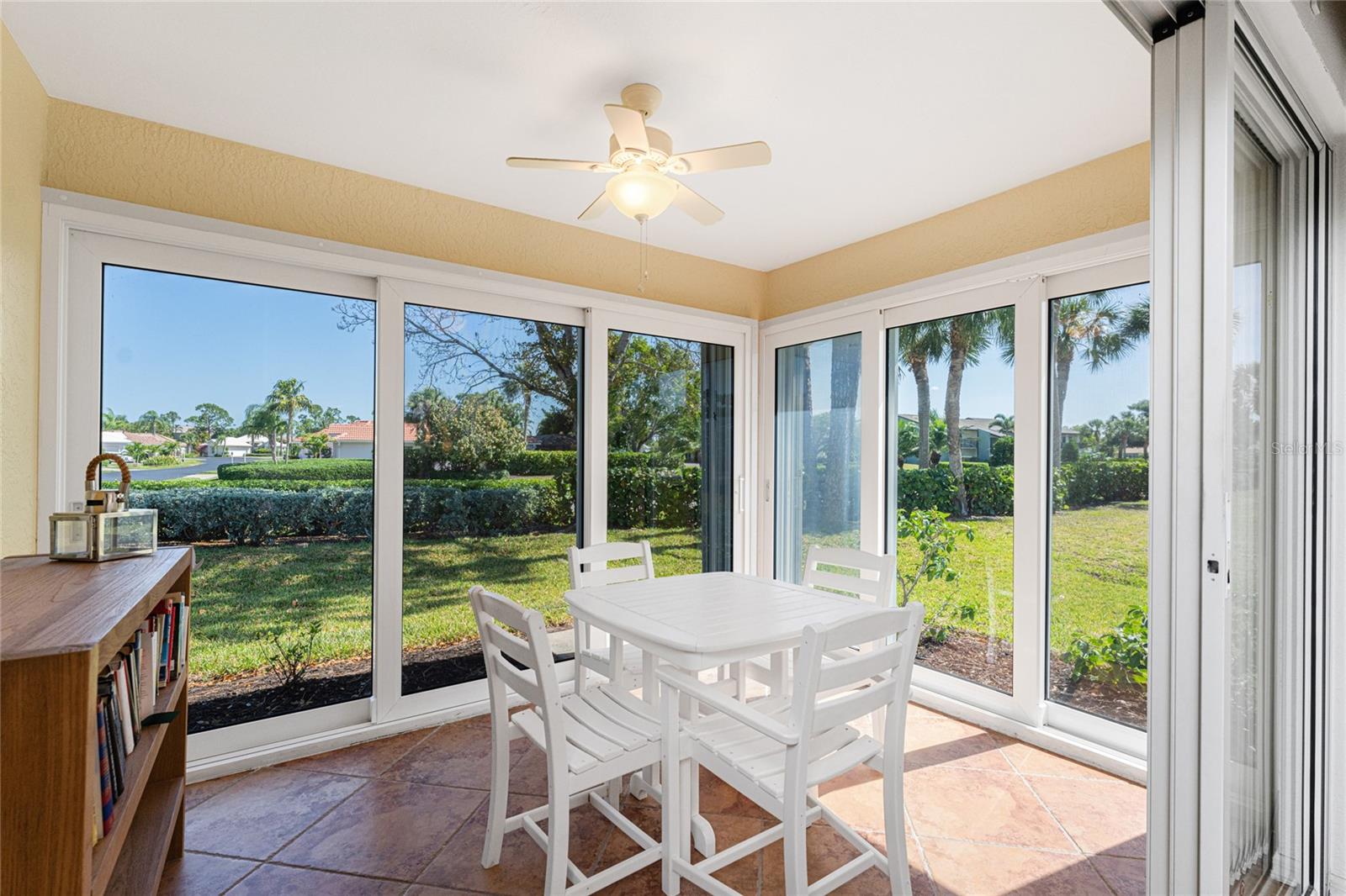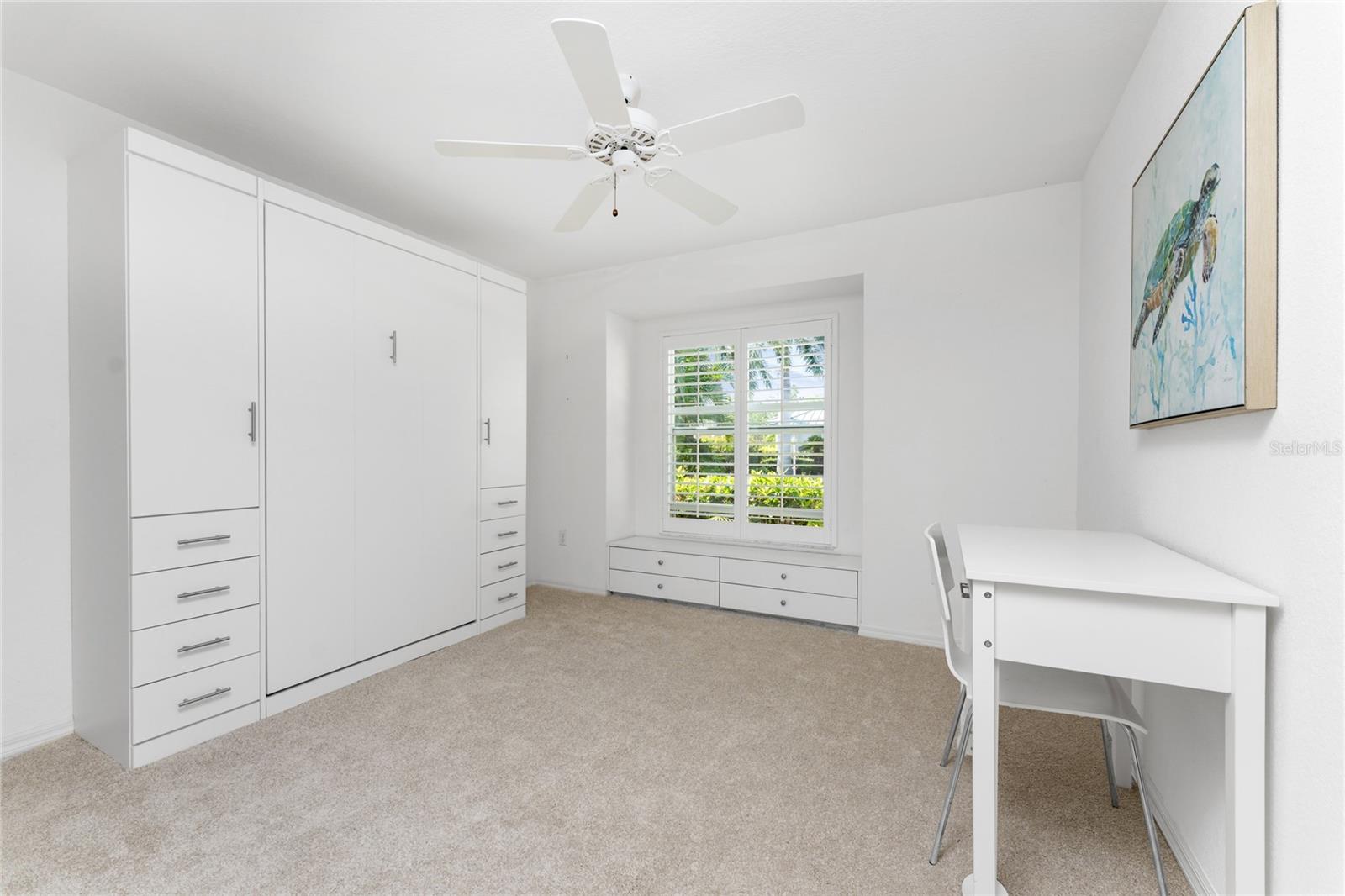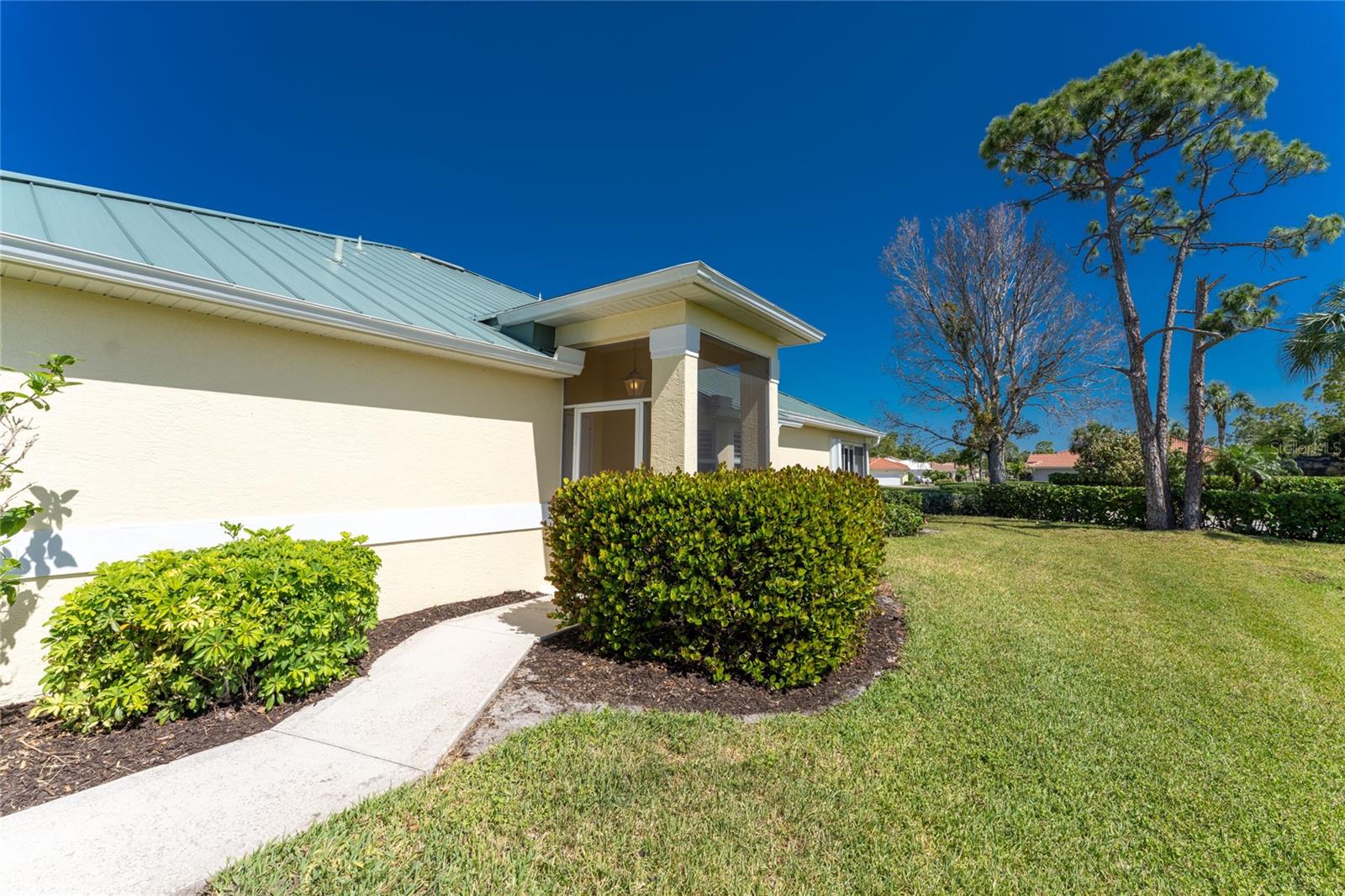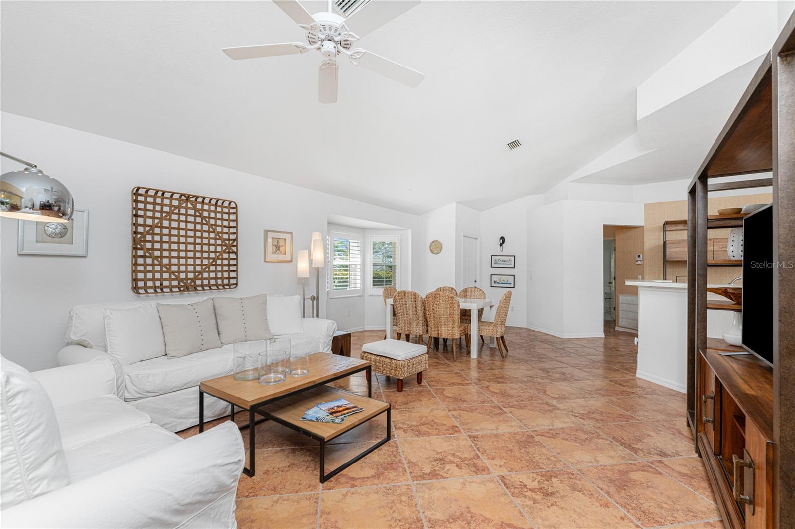 Seasonal rental in place 1/15/25-3/31/25 generating roughly $9200 in rental income. Fabulous two bedroom/ two bath maintenance free villa delivers the ultimate resort lifestyle to its new owners! This villa enjoys the benefits of being an end unit, with plenty of elbow room and privacy. A tropical landscape will welcome you to the screened in entry which also invites in pleasing breezes and Florida sunshine. A terrific open floorplan boasting soaring ceilings and pleasing space is sure to delight. Handsome oversized terracotta floor tile provides a great island vibe against the crisp white walls and chic decor in this fully furnished turnkey residence. Grab a cocktail and head out to the inviting lanai where you are sure to feel like you are on island time! Slide open the glass doors and feel like this is what you have been waiting for. The resident chef will be pleased to work is the expansive kitchen with abundant work surface complimented by white subway tile and ample cabinetry to store all their special gadgets. They will prepare in style with their stainless range & micro and 1 year old stainless refrigerator. Enjoy your meal alfredo, or in the convenient dining area, where you can enjoy the landscape through the pleasing plantation shutters. When you retire to the primary suite you are sure to enjoy the grandeur of the large bedroom with cathedral ceilings, window with plantation shutters, new carpets, walk in closet and ensuite bath. The versatile guest room ( also with new carpet) is sure to be a hit with a handy murphy bed that conveniently leaves the room freed up for a fabulous office/den when not in use. Clever built in storage has been added to an inviting window seat as well as flanking the murphy bed. Your guests will find their private full bath with tub shower combo right outside their door. The oversized one car garage is a tinkerers dream with incredible built in storage for all of their stuff. This villa has been re-piped and has newer hot water heater ( 3yrs) AC ( 5yrs), Washer/ Dryer ( 4yrs)...and a 6 year old metal roof. Burnt Store Marina residents enjoy access to two on site restaurants, ship’s store, 27 hole golf course, activity club, pickle ball, tennis and fitness center, great walking paths, along with the largest Deepwater Marina in SWFL.