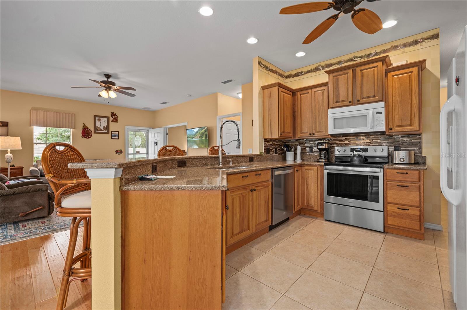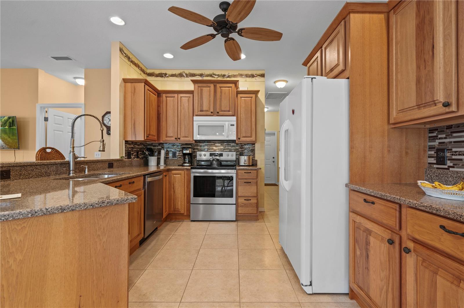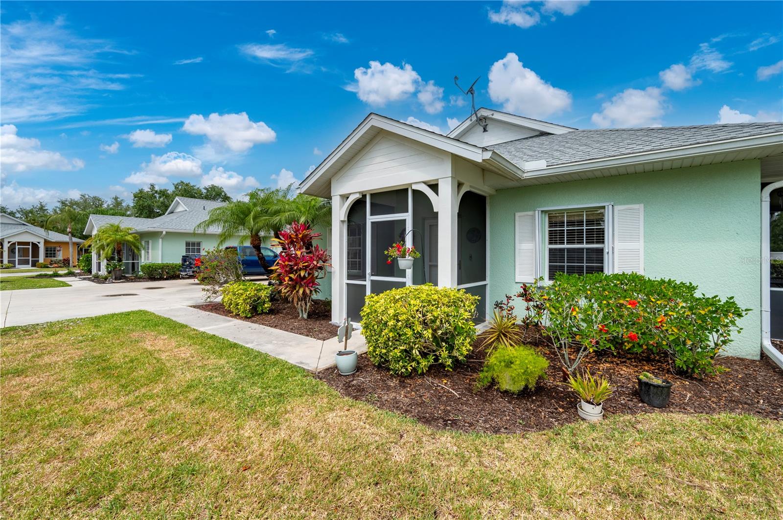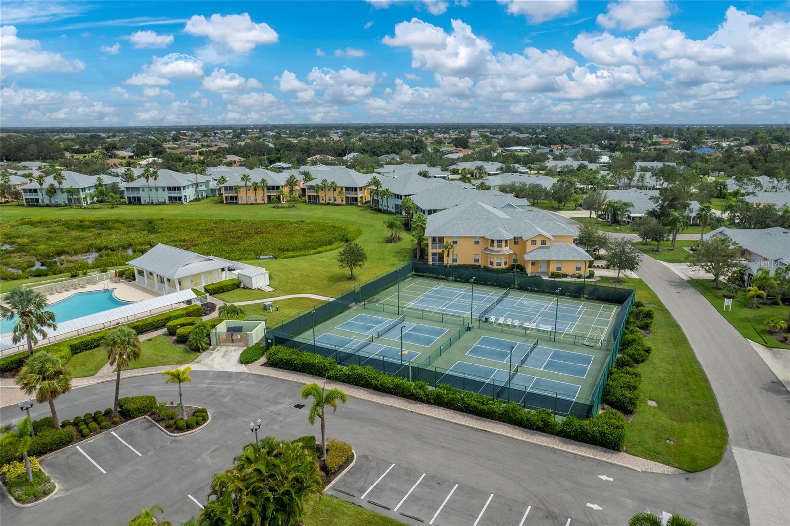 Welcome to your slice of paradise in Punta Gorda's sought-after Heritage Lake Park! This 2-bedroom, 2-bathroom villa nestled in a gated community offers the perfect blend of comfort and style. Step into a meticulously maintained home boasting a 2-car garage and a den for added flexibility. Enjoy the peace of mind with a brand-new roof and HVAC system, as well as hurricane accordion shutters for added protection. The kitchen is a chef's dream with granite surfaces, modern appliances, and custom cabinetry featuring soft-close technology. The tile inlay backsplash adds a touch of elegance to the space. Entertain effortlessly with double glass sliding doors leading to a private outdoor lanai oasis. Inside, LED lighting illuminates the engineered hardwood floors, creating a warm ambiance throughout. Retreat to the spacious den through French doors. Relax in the comfort of the primary suite featuring walk-in closets and an ensuite bathroom. Outside, mature landscaping provides privacy while you enjoy tranquil lake views on your walks around the community. Take advantage of the community's outstanding amenities, including a pool, tennis courts, clubhouse, and gym. Plus, with gated security and a vibrant calendar of community events, you'll feel right at home. Conveniently located near local shopping, restaurants, and amenities, this property offers the ultimate Florida lifestyle. Don't miss your chance to experience Heritage Lake Park!