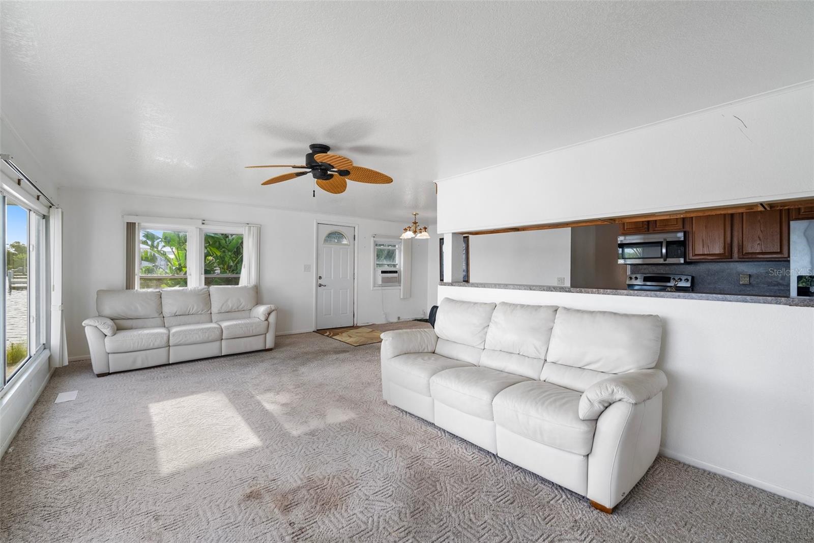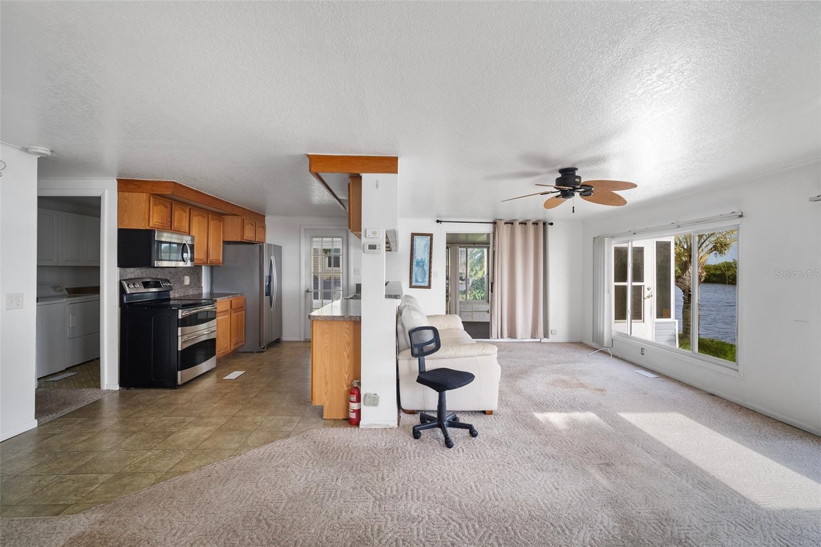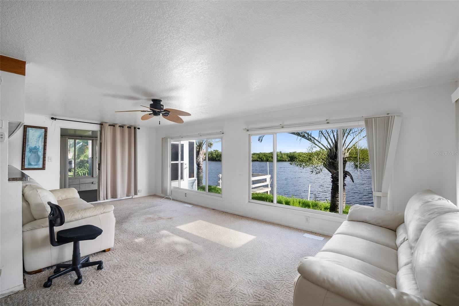 Upon arrival, you'll be captivated by the beauty of this expansive riverfront home. Boasting 3 bedrooms, 2 bathrooms, carport parking, and a generously sized 3-season Florida room, this residence offers a serene retreat on the Peace River. Additionally, an exterior storage/workplace adds convenience and functionality to the property. Nestled within a 55+ community, you'll have the advantage of owning the land with a reasonable HOA monthly fee. Enjoy picturesque views of the Peace River from both the living area and the Florida room, which also grants access to your private dock. Inside, a spacious kitchen and dining area provide ample room for culinary endeavors and gatherings. Each bedroom features built-ins for added storage convenience, while an interior laundry room adds practicality to daily living. Community amenities abound, including a pool, shuffleboard courts, bocce court, horseshoe pits, residents lounge, and parking/storage options for your boat or RV. Residents also enjoy access to the Pelican Harbor Yacht Club, enhancing the waterfront lifestyle. Conveniently located less than 6 miles or a mere 10-minute drive from Historic downtown Punta Gorda, this home offers easy access to dining, shopping, and entertainment options. For boating enthusiasts, Charlotte Harbor is just 5 nautical miles away, providing direct access to the Gulf of Mexico. Embrace waterfront living at its finest and make this tranquil oasis your new home. Schedule a showing today and experience the allure of riverfront living on the Peace River.