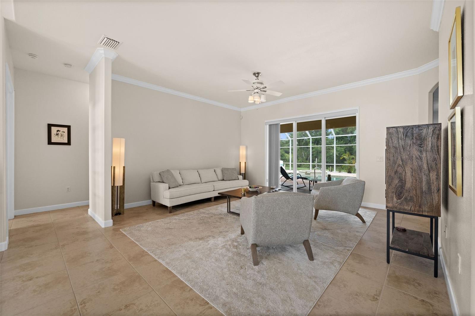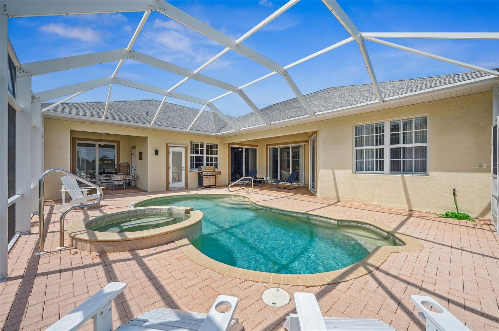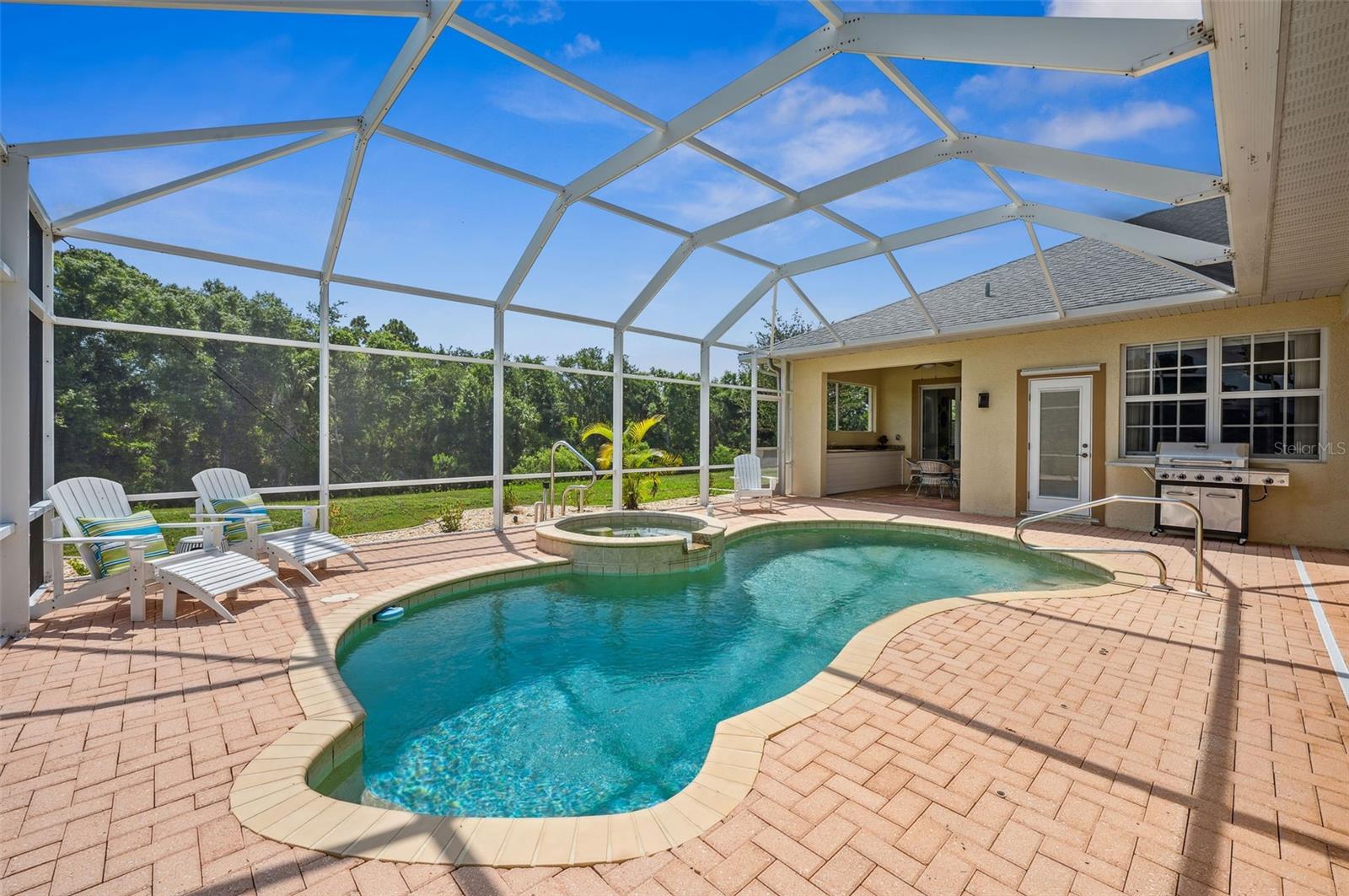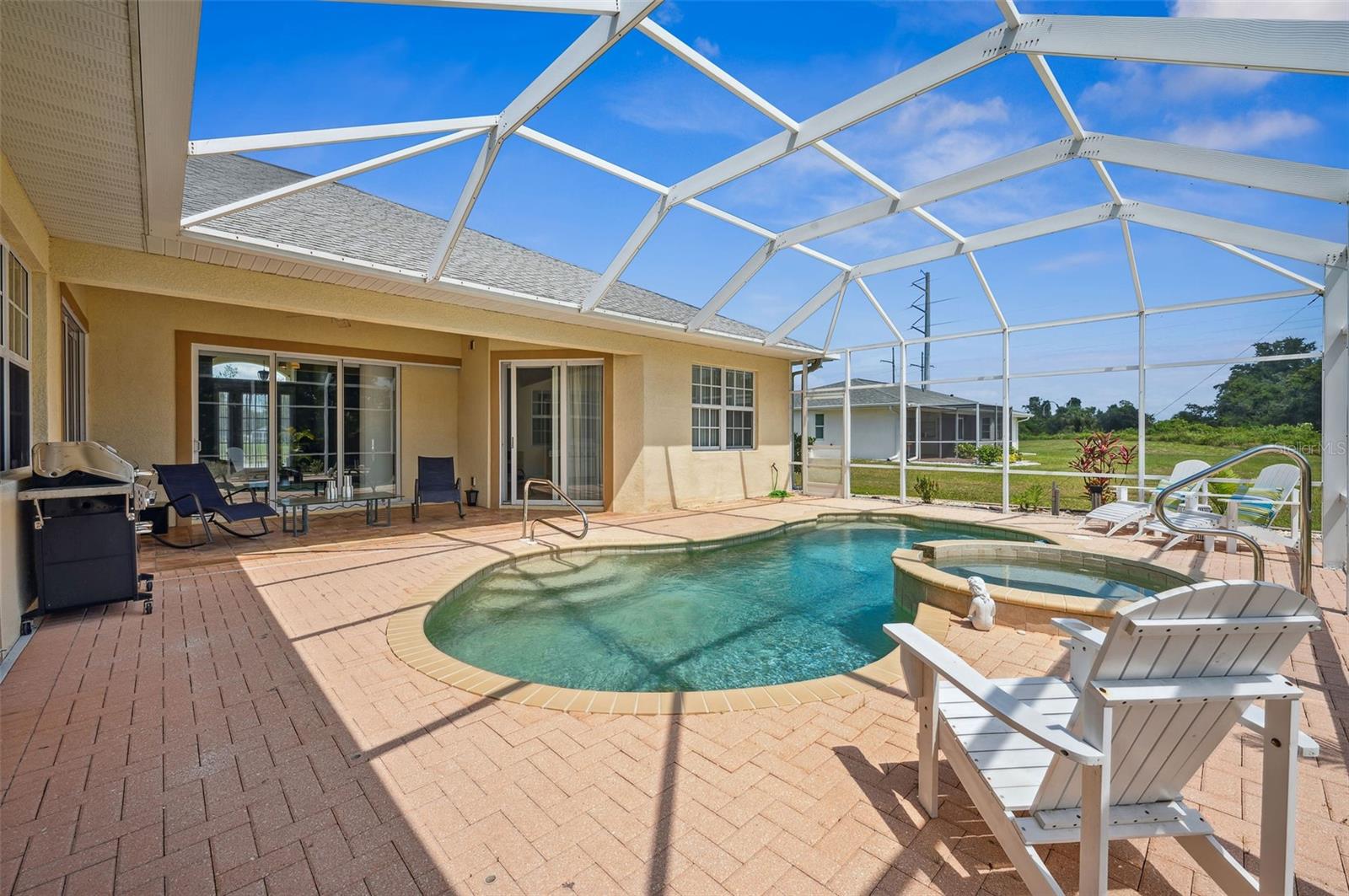 BEAUTIFUL CUSTOM 4 Bedroom, 2.5 Bathroom, 2 Car Garage, Pool home with a Family room and Bonus room, located on an OVERSIZED LOT in desirable Deep Creek. LOW HOA FEES & NO FLOOD REQUIRED! TAXES ARE BASED ON A NON HOMESTEAD RATE. THIS IS NOT THE SELLERS PRIMARY HOME. CLICK ON THE VIRTUAL TOUR LINK 1 FOR THE VIDEO AND VIRTUAL LINK 2 FOR THE 3D TOUR. Featuring a bright and airy floor plan with over 3300 sq-feet of living space, porcelain tile flooring in main living areas, 14-foot ceilings, crown molding, and SO MUCH MORE! Spend quality time with friends and family in the living room with a large glass slider to the lanai. The kitchen offers ALL Stainless-steel appliances, granite countertops, a tiled backsplash, a large built-in pantry, plenty of cabinets for storage, an island with a breakfast bar, and an off-kitchen formal dining room. Expand your living and entertaining space to the family room with a large glass slider to the lanai. A spacious master bedroom has a tray ceiling, glass slider to the lanai, HIS & HERS walk-in closets, and a private bathroom with a dual sink vanity, tiled walk-in shower, garden soaking tub, and private toilet. One guest room has French doors and a built-in closet, and could also function as an office. The additional guest rooms are on a split floor plan offering plenty of privacy with built-in closets and a shared guest bathroom nearby. Host game or movie nights with a Bonus/Media room with a glass slider to the lanai. Sip your morning coffee or unwind with your favorite beverage taking in the serene surroundings on the lanai, complete with an outdoor kitchen with a Jenn-Air cooktop grill. Dip into the crystal waters of a private heated pool & spa, or soak up the sun from the pool deck. Conveniently located across from the Deep Creek golf course, making this a perfect home for a Golf Enthusiast. Close to I-75 & US-41 for easy access to beaches and local favorites such as Fishermen s Village, the New Sun Seeker Resort, Ponce De Leon Park, shopping & boutiques, fine & casual dining, and LIVE entertainment. Schedule your showing TODAY!