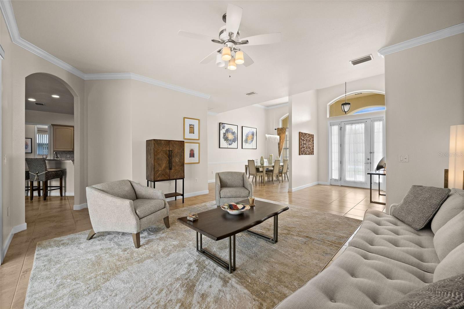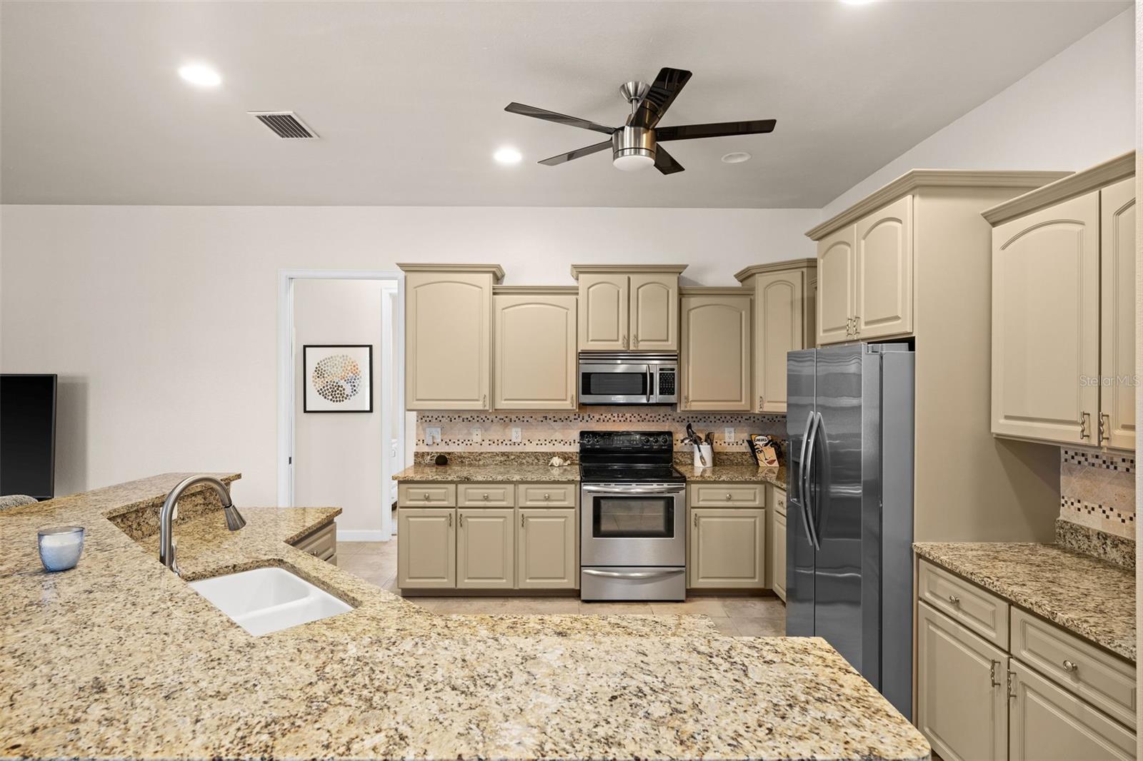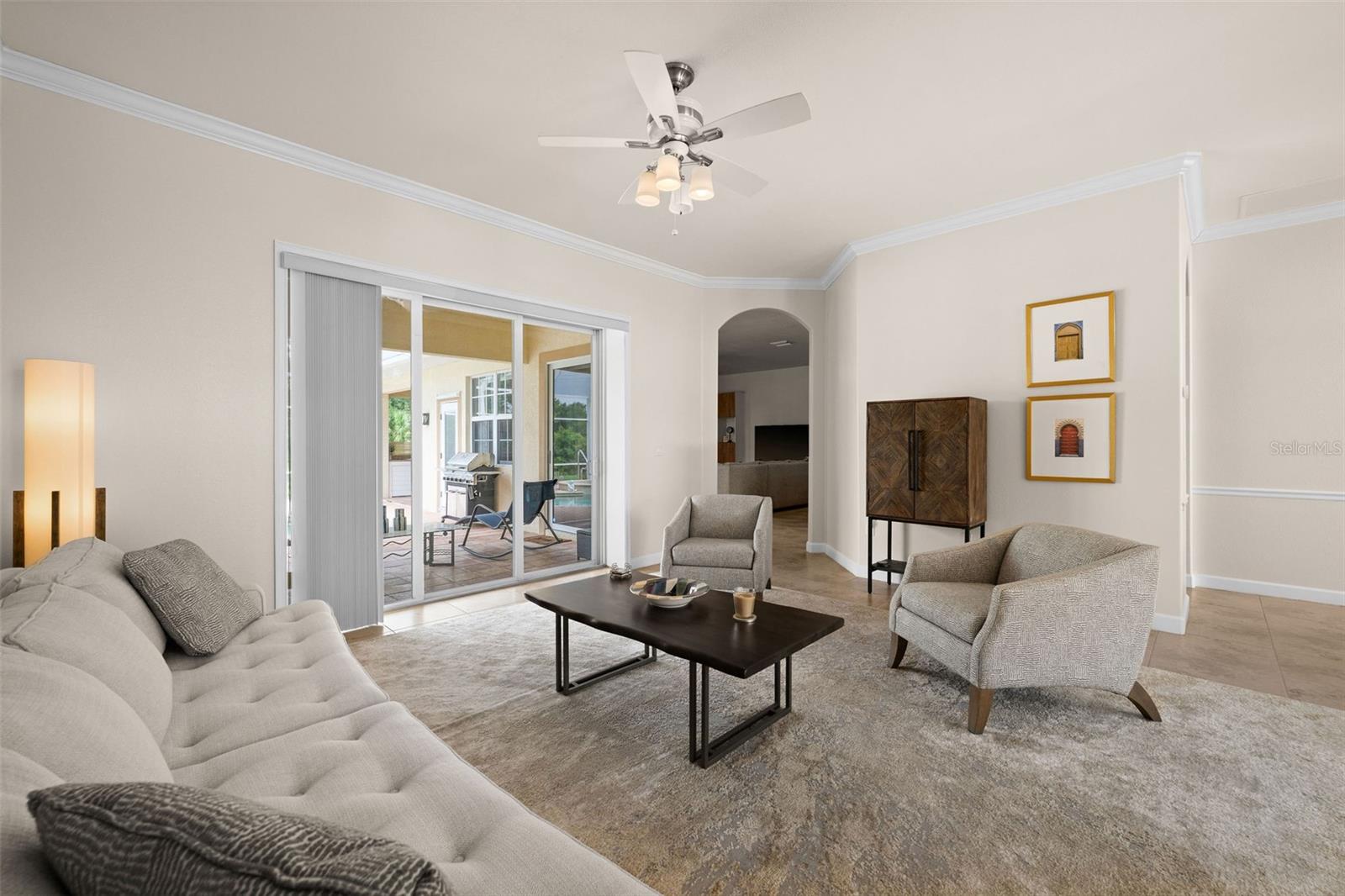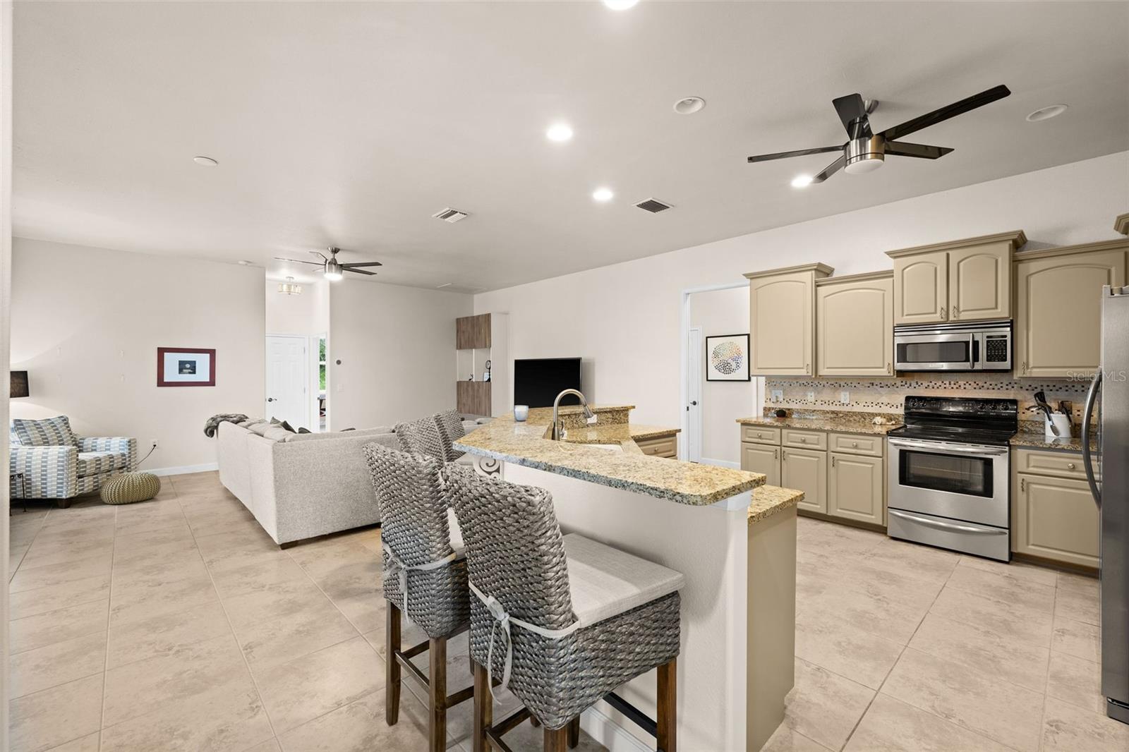 BEAUTIFUL CUSTOM 4 Bedroom, 2.5 Bathroom, 2 Car Garage, Pool home with a Family room and Bonus room, located on an OVERSIZED LOT in desirable Deep Creek. LOW HOA FEES & NO FLOOD REQUIRED! TAXES ARE BASED ON A NON HOMESTEAD RATE. THIS IS NOT THE SELLERS PRIMARY HOME. CLICK ON THE VIRTUAL TOUR LINK 1 FOR THE VIDEO AND VIRTUAL LINK 2 FOR THE 3D TOUR. Featuring a bright and airy floor plan with over 3300 sq-feet of living space, porcelain tile flooring in main living areas, 14-foot ceilings, crown molding, and SO MUCH MORE! Spend quality time with friends and family in the living room with a large glass slider to the lanai. The kitchen offers ALL Stainless-steel appliances, granite countertops, a tiled backsplash, a large built-in pantry, plenty of cabinets for storage, an island with a breakfast bar, and an off-kitchen formal dining room. Expand your living and entertaining space to the family room with a large glass slider to the lanai. A spacious master bedroom has a tray ceiling, glass slider to the lanai, HIS & HERS walk-in closets, and a private bathroom with a dual sink vanity, tiled walk-in shower, garden soaking tub, and private toilet. One guest room has French doors and a built-in closet, and could also function as an office. The additional guest rooms are on a split floor plan offering plenty of privacy with built-in closets and a shared guest bathroom nearby. Host game or movie nights with a Bonus/Media room with a glass slider to the lanai. Sip your morning coffee or unwind with your favorite beverage taking in the serene surroundings on the lanai, complete with an outdoor kitchen with a Jenn-Air cooktop grill. Dip into the crystal waters of a private heated pool & spa, or soak up the sun from the pool deck. Conveniently located across from the Deep Creek golf course, making this a perfect home for a Golf Enthusiast. Close to I-75 & US-41 for easy access to beaches and local favorites such as Fishermen s Village, the New Sun Seeker Resort, Ponce De Leon Park, shopping & boutiques, fine & casual dining, and LIVE entertainment. Schedule your showing TODAY!