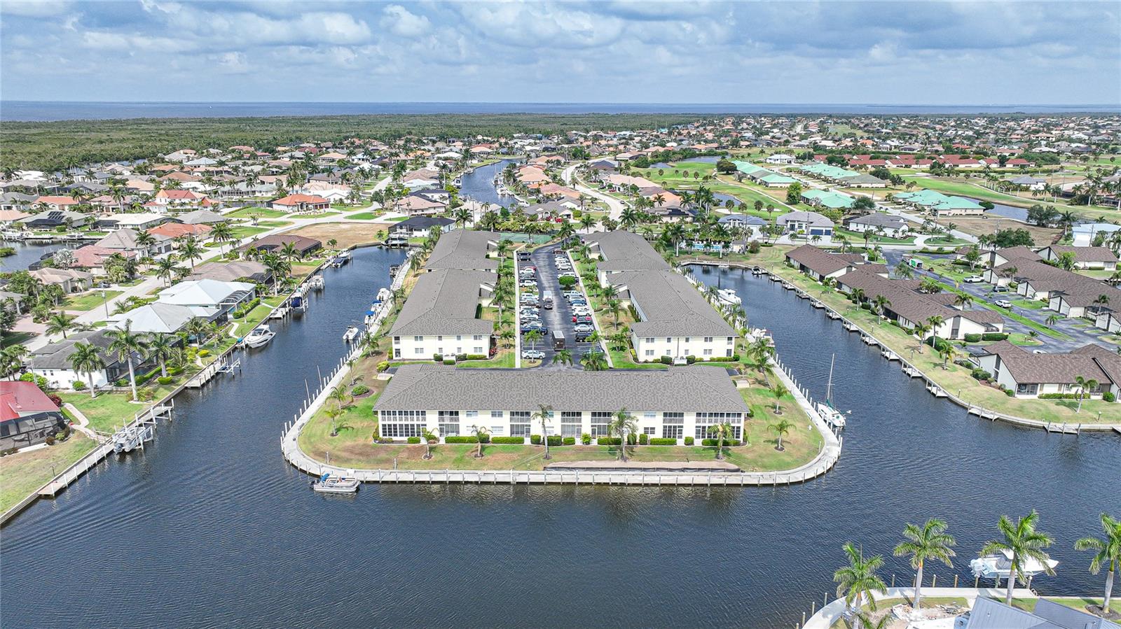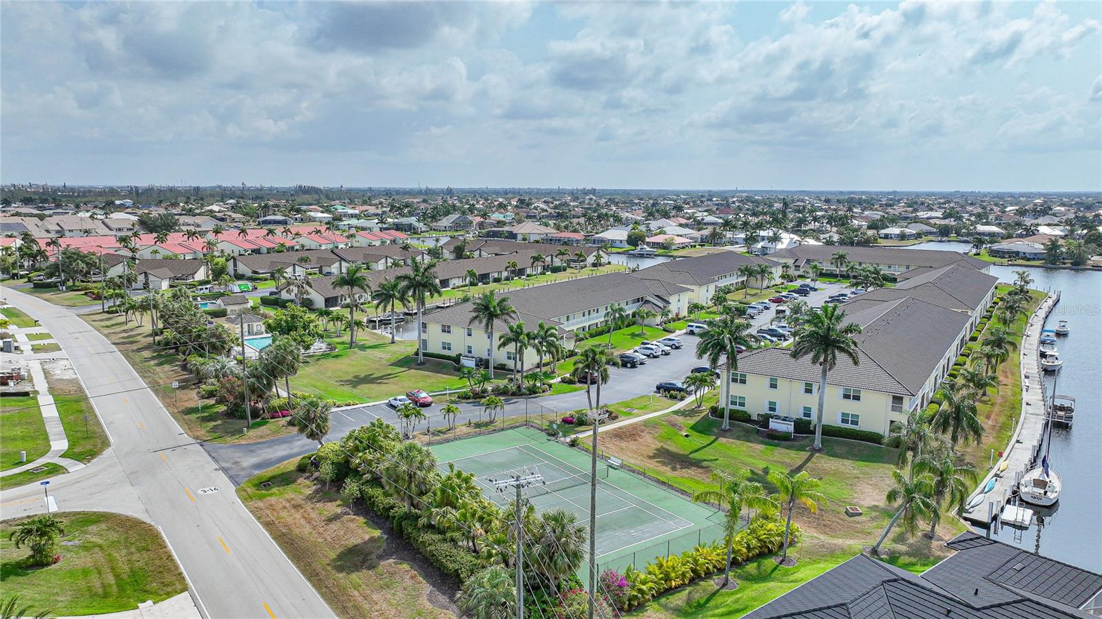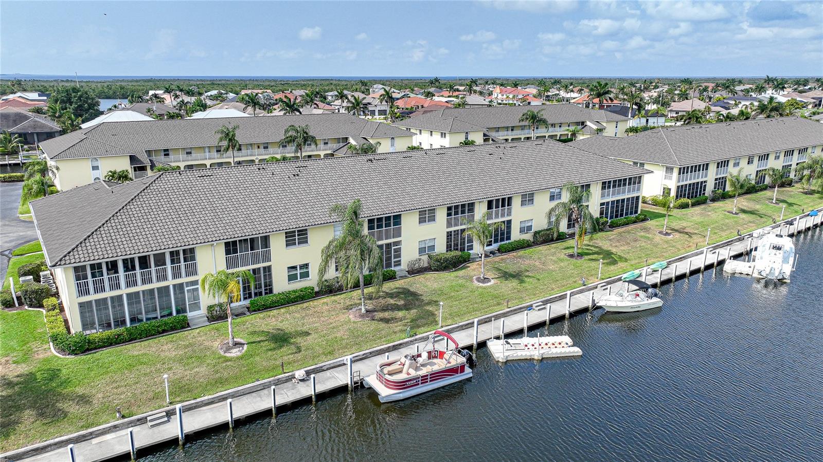 If you are looking for a turnkey, fully furnished, ground floor condo residence located in a friendly and well established community, then Spinnaker Point is just what you have been seeking. A wonderful community nestled in beautiful Punta Gorda Isles, surrounded by a network of City maintained canals and concrete seawalls leading to Charlotte Harbor and the Gulf of Mexico, where you can enjoy our beautiful weather, sailing, and fishing. Docks are available for boats up to 30 feet on a first come, first served basis for either your power boat or sailboat. Beautiful canal views from this first floor condo that can be your winter retreat or an investment rental unit. The Kitchen is tiled and has granite counter tops and stainless appliances. The kitchen also has decorative back lit crown molding and there is a bistro table that is the perfect spot for enjoying your morning coffee. The recently carpeted dining room and great room combo, overlooks the canal and has access to the lanai through sliding glass doors. The screened in lanai also has a built in closet for storing your bicycles, fishing poles, coolers, beach chairs, etc. Simply walk out your back door and enjoy a brisk walk around the wrap around dock that encompasses the entire complex. The Primary Bedroom Suite has been remodeled with double quartz top sinks, tiled and glass door shower, and has an ample walk in closet. The guest bedroom is equipped with a Murphy bed and the guest bath has a tub and shower combo. A washer and dryer is conveniently located inside the unit. Spinnaker Point has 70 units with low monthly maintenance fees, New Roof, and nearly 1,500 feet of seawall, providing ample space and slips for resident boaters. In addition, a newly updated heated in-ground pool with pool house provides a relaxing area for swimming, and sun bathing. There is also a Tennis Court which can also be used as a Pickle Ball court, and Basketball net. St Andrews, a private golf course is located just across the street, and public courses are just a few minutes drive. Spinnaker Point is located within minutes to famous Fisherman’s Village, Historic downtown Punta Gorda with numerous restaurants, shopping and activities, and major highways and airports. What are you waiting for? Let's do this! Come out and see this great unit!