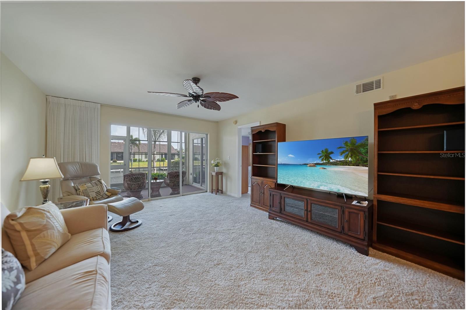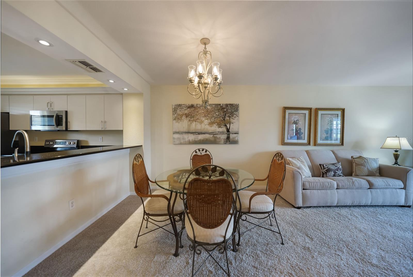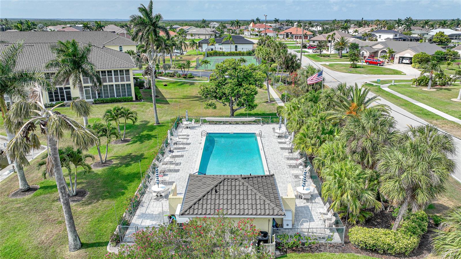 If you are looking for a turnkey, fully furnished, ground floor condo residence located in a friendly and well established community, then Spinnaker Point is just what you have been seeking. A wonderful community nestled in beautiful Punta Gorda Isles, surrounded by a network of City maintained canals and concrete seawalls leading to Charlotte Harbor and the Gulf of Mexico, where you can enjoy our beautiful weather, sailing, and fishing. Docks are available for boats up to 30 feet on a first come, first served basis for either your power boat or sailboat. Beautiful canal views from this first floor condo that can be your winter retreat or an investment rental unit. The Kitchen is tiled and has granite counter tops and stainless appliances. The kitchen also has decorative back lit crown molding and there is a bistro table that is the perfect spot for enjoying your morning coffee. The recently carpeted dining room and great room combo, overlooks the canal and has access to the lanai through sliding glass doors. The screened in lanai also has a built in closet for storing your bicycles, fishing poles, coolers, beach chairs, etc. Simply walk out your back door and enjoy a brisk walk around the wrap around dock that encompasses the entire complex. The Primary Bedroom Suite has been remodeled with double quartz top sinks, tiled and glass door shower, and has an ample walk in closet. The guest bedroom is equipped with a Murphy bed and the guest bath has a tub and shower combo. A washer and dryer is conveniently located inside the unit. Spinnaker Point has 70 units with low monthly maintenance fees, New Roof, and nearly 1,500 feet of seawall, providing ample space and slips for resident boaters. In addition, a newly updated heated in-ground pool with pool house provides a relaxing area for swimming, and sun bathing. There is also a Tennis Court which can also be used as a Pickle Ball court, and Basketball net. St Andrews, a private golf course is located just across the street, and public courses are just a few minutes drive. Spinnaker Point is located within minutes to famous Fisherman’s Village, Historic downtown Punta Gorda with numerous restaurants, shopping and activities, and major highways and airports. What are you waiting for? Let's do this! Come out and see this great unit!