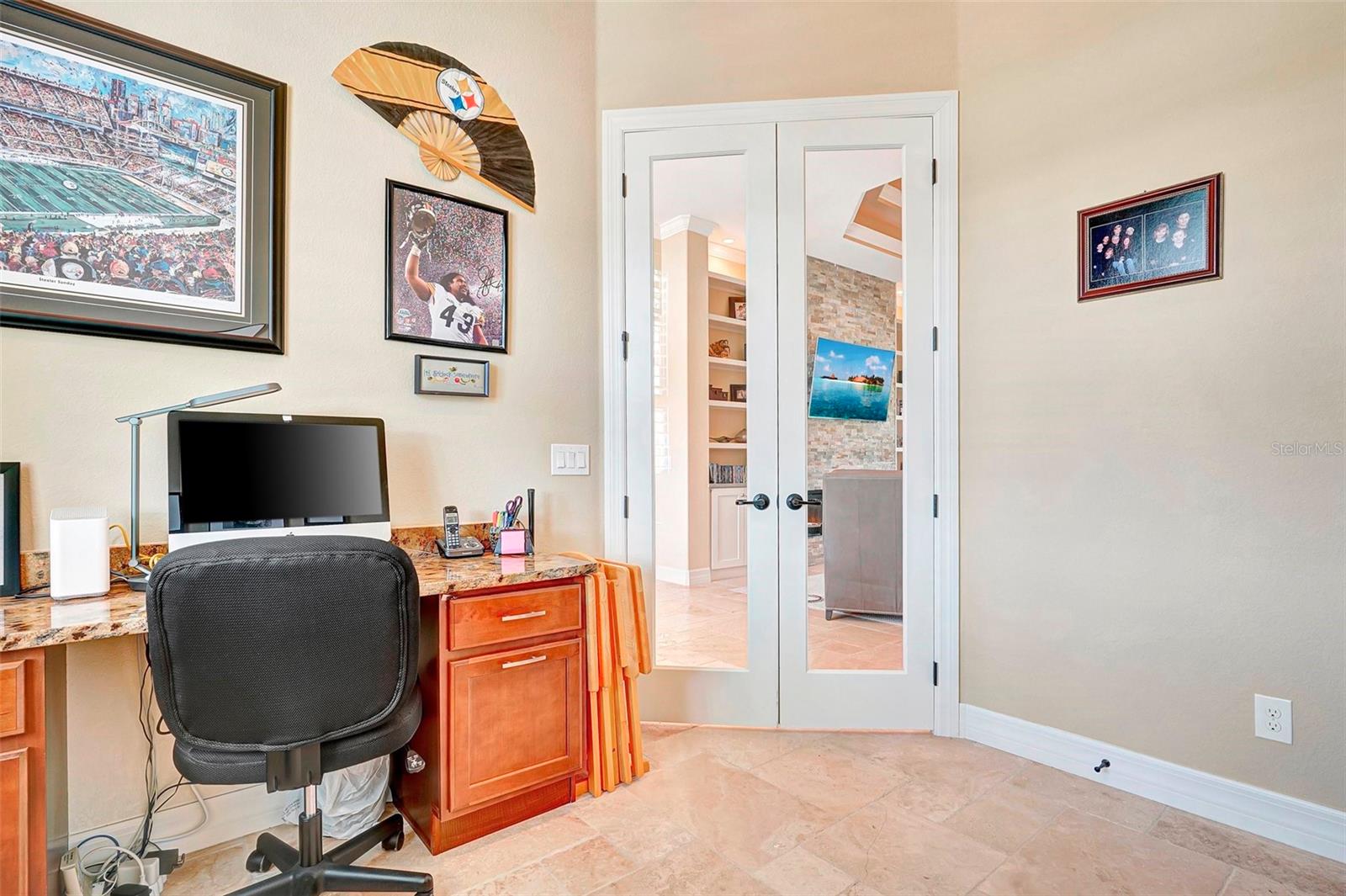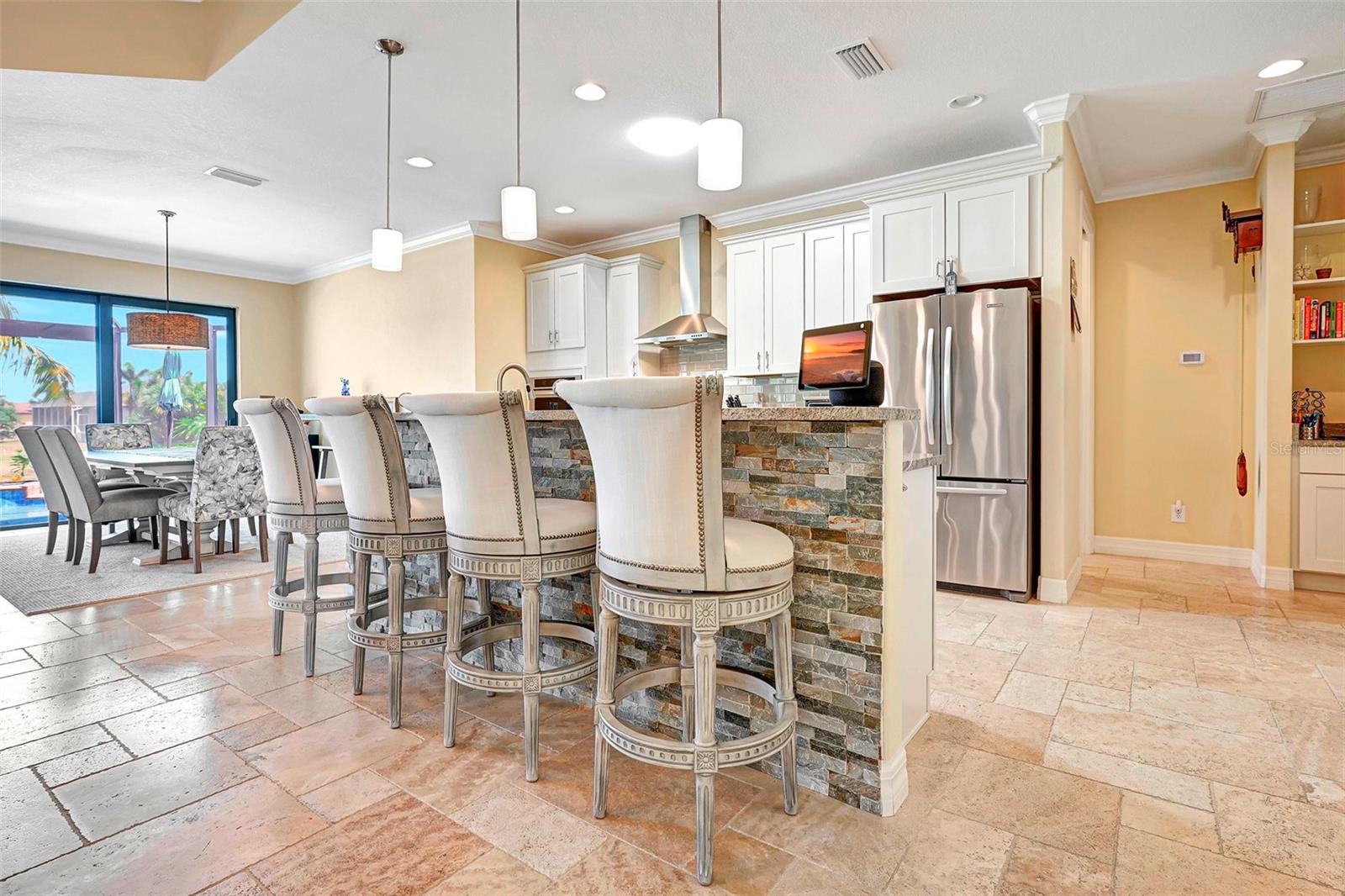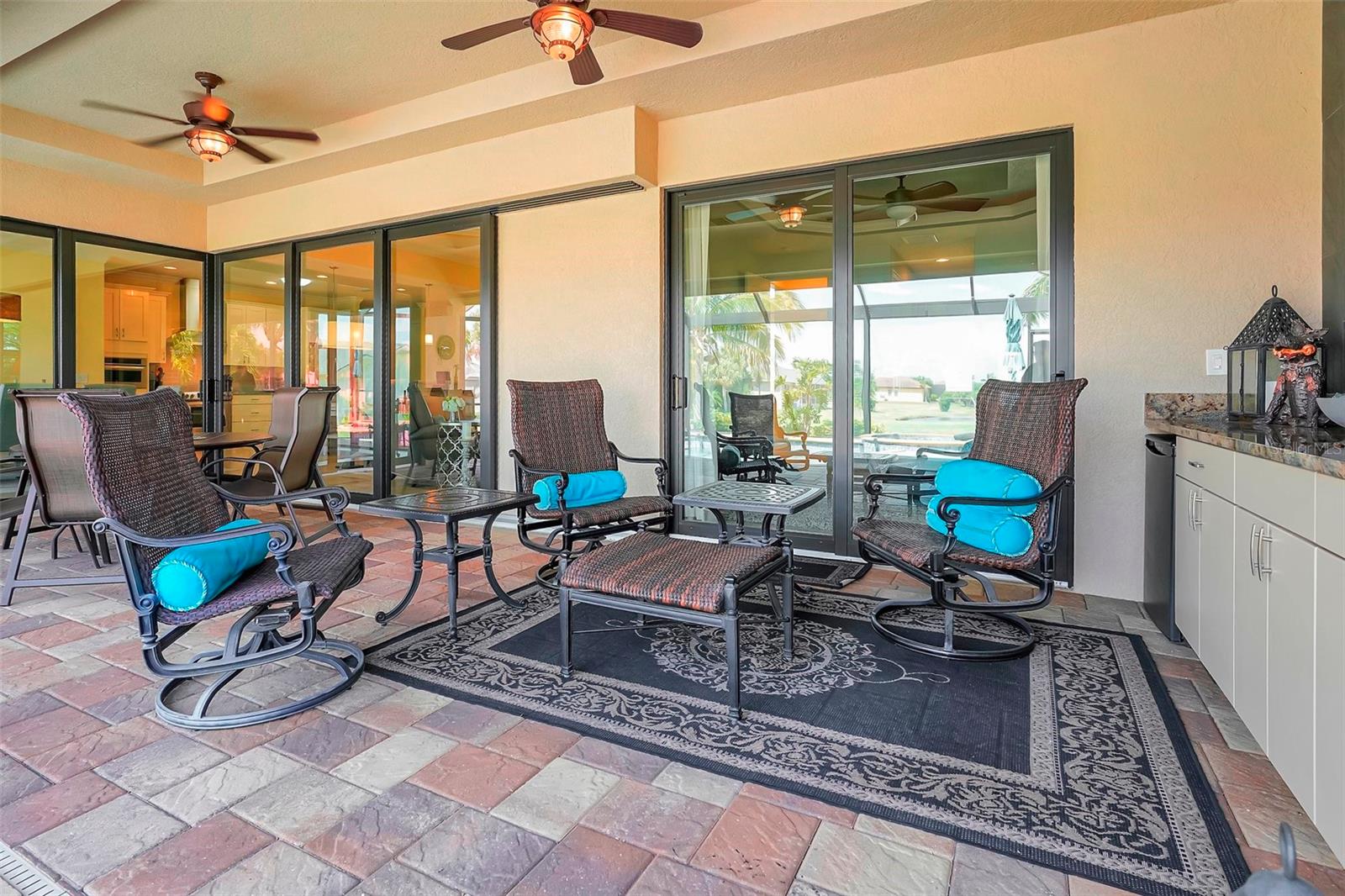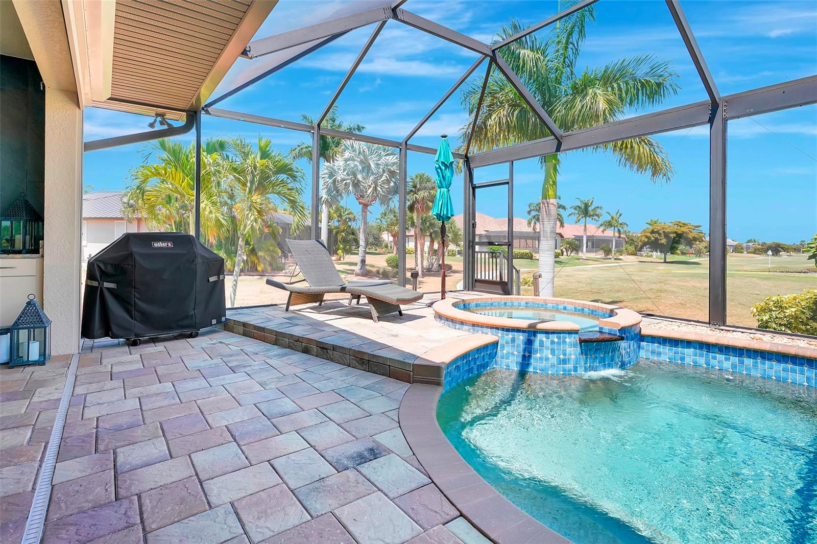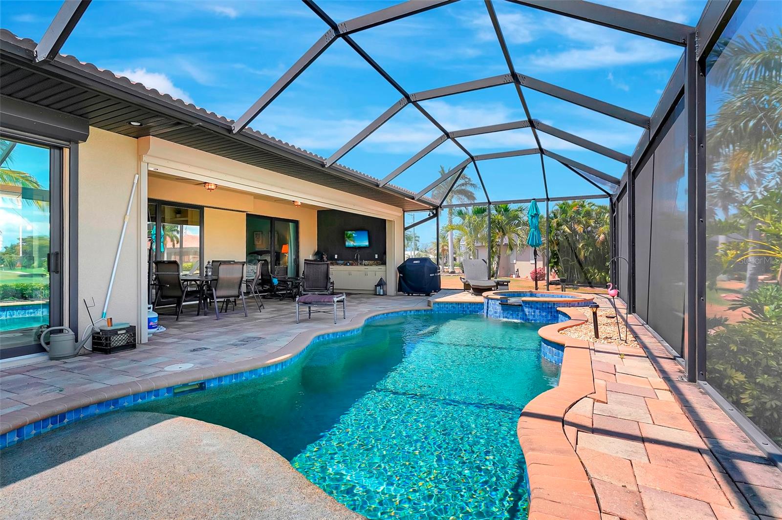 ***PRICE REDUCTION***Now is the time to make this tastefully designed custom built home on St Andrews Golf Course your own! Featuring Double Tray Ceilings with ambient lighting, zero edge pocket doors, custom crown moldings, tubular skylight accents, travertine rough edged tile flooring, tubular skylight accents, plantation shutters. The floorplan is open & spacious making this home perfect for entertaining. The open kitchen boasts of custom wood cabinetry, granite counter and stainless steel appliance upgrades, overlooking the great room with a built-in chiseled stone wall unit and contemporary designed fireplace as its focal point. Enjoy the spacious lanai while you prepare a delightful meal at your outdoor kitchen. Relax in the spa and lagoon style pool with its ambient lighting system with the golf course backdrop.Outside there is a 3 car garage, paver drive and pool deck, hurricane windows and an electric roll down sun screen. A/C replaced in late 2023.