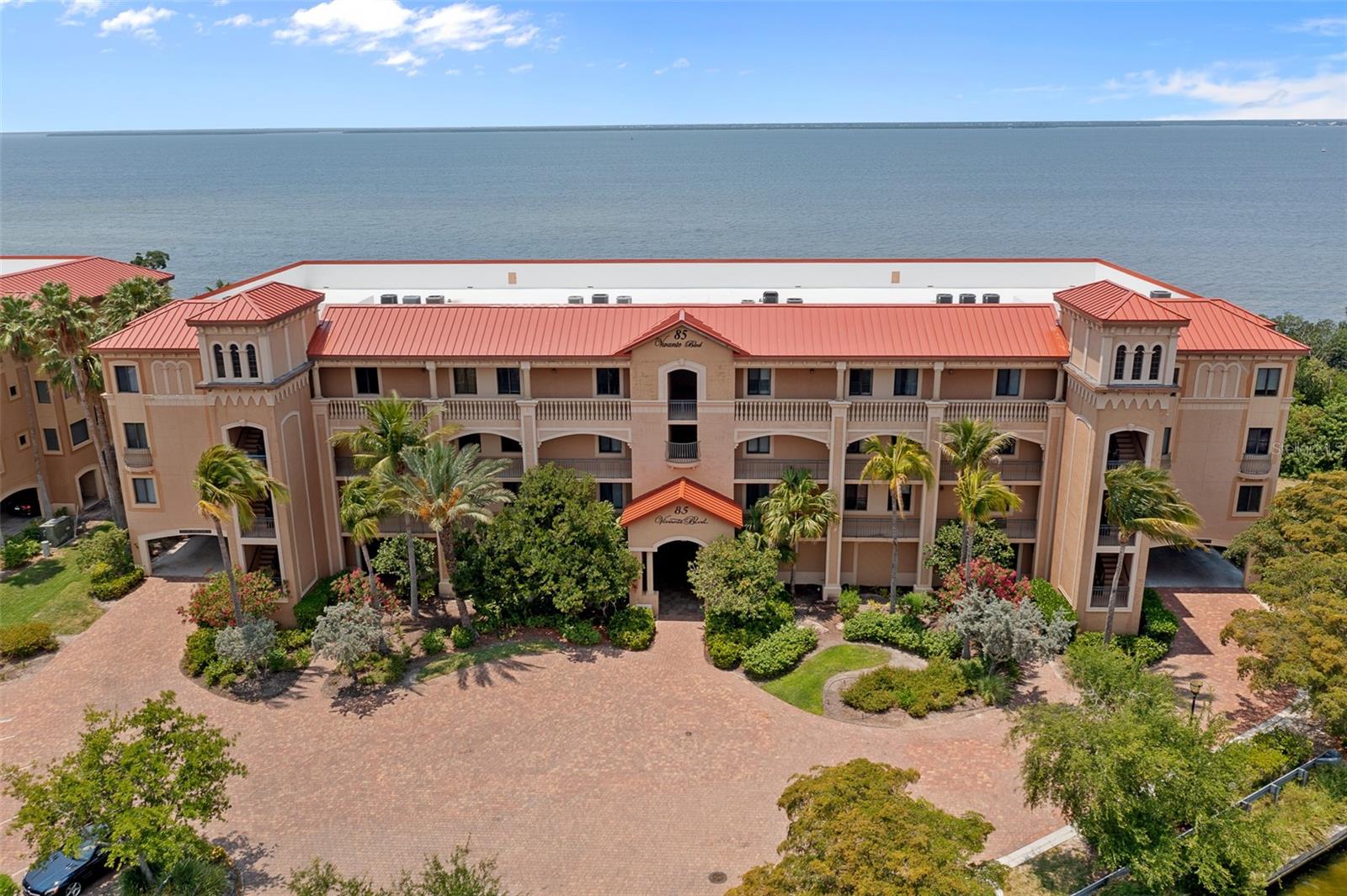 LOCATION! LOCATION! LOCATION! AMAZING HARBOR VIEWS AND SPECTACULAR SUNSETS! ONLY END UNIT WITH SOUTHWESTERN EXPOSURE! EXCEPTIONAL 3 BEDROOM, 3 BATH, WATERFRONT CONDO WITH APPROX. 2,400 SQ. FT. OF LIVING AREA! Brand new A/C. A private elevator leads to the 3rd floor end unit where you will find an elegantly designed interior featuring open floor plan with large slider to lanai with open harbor views, contemporary décor, high ceilings, crown molding, plantation shutters and tile flooring in main living area. Beautifully updated eat-in kitchen offers quartz counters, tile backsplash, new GE Café stainless appliances, center island and breakfast bar. Generous primary suite features access to lanai, his and her walk-in closets and private bath featuring dual vanities, jetted tub and walk-in shower. All bedrooms feature luxury vinyl plank flooring and tile flooring in baths. Upgraded laundry room offers new LG washer and dryer plus cabinets for additional storage. Special features include new roof, impact windows and doors, plenty of storage throughout and all assessments paid. Unit includes two parking spaces (1 & 2) steps from the elevator and 4’ x 6’ storage unit (#3) in garage. Vivante offers fantastic amenities including 6 lighted tennis courts, resort-style pool and lap pool, poolside cabana, fitness center, spa and grand clubhouse with billiard room, media room, library, game room, party room and outside you’ll find a grilling area and firepit. Monthly fee includes landscaping, use of amenities, front gate security, exterior building, flood and amenities insurance, water, sewer and trash, cable and internet, professional management services with an on-sight manager. Quiet waterfront community just minutes from Fishermen's Village, Isles Yacht Club and historic downtown Punta Gorda with community events, entertainment and much more. Maintenance free living with wonderful community amenities. Don't miss this opportunity! Schedule your private showing today!