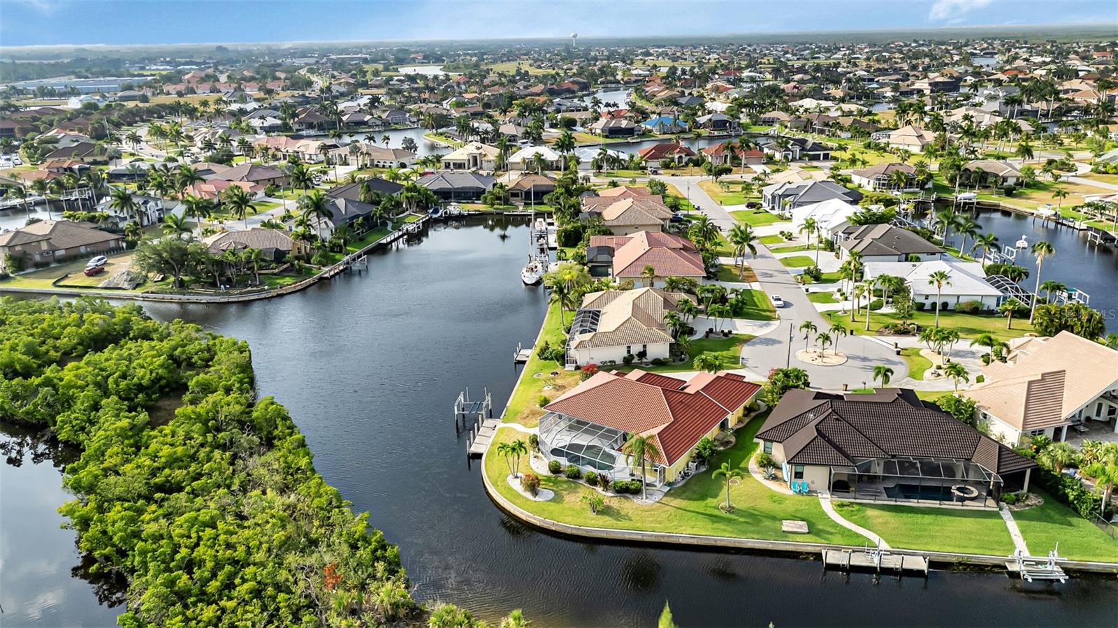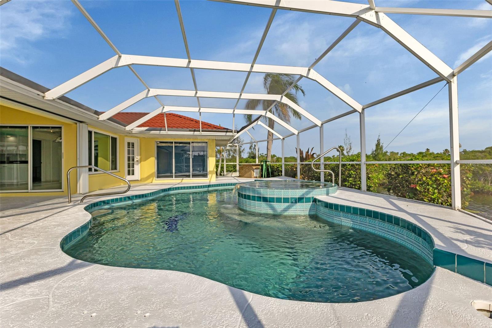 Live the Costal Lifestyle with 160 FEET of SAILBOAT WATERFRONTAGE with this 3 Bedroom, 2 Bathroom, 2 Car Garage, Pool home in the highly desired Burnt Store Isles community. Featuring a bright & open floor plan, high & vaulted ceilings, recessed & pendant lighting, BREATHTAKING water views and MUCH MORE! Entertaining is made easy in an open living and formal dining room with a wet bar and large glass slider to the lanai. The EAT-IN kitchen offers ALL Stainless-steel appliances, including a DOUBLE-Oven, tiled backsplash, closet pantry, a breakfast bar, and a large window & glass slider to the lanai for BEAUTIFUL water view dining! The spacious master bedroom has a glass slider to the lanai, a walk-in closet, and an en-suite bathroom with HIS & HERS split vanities, a walk-in shower, soaking tub, linen and water closets. The guest bedrooms are on a split floor plan, providing plenty of privacy, with a shared guest bathroom nearby. An outdoor oasis awaits where you can sip your morning coffee or unwind with your favorite evening beverage while taking in the GORGEOUS view of the mangroves and abundance of wildlife including manatees, eagles, osprey and numerous other birds and fish to complete the luxury costal feel. Dip into the crystal waters of a HEATED pool & spa, perfect for year-round use, or soak up the sun from the pool deck, complete with an outdoor shower. Set sail for endless water adventures from your backyard with a private 6x30 dock with water and electricity and 10,000 lb boat lift. 2024 STEEL TILED ROOF – 2024 GUTTERS – 2023 SOFFIT & FASCIA - HURRICANE IMPACT WINDOWS – LANAI HURRICANE SHUTTERS – 2024 ENERGRY EFFICIENT SPLIT HVAC – 2024 POOL CAGE. Burnt Store Isles is an optional HOA, deed-restricted, waterfront, and golfing community with Twin Isles Country Club situated in the center of the community. You can also enjoy all the amenities that Punta Gorda has to offer such as biking, fishing, boating, dining, live entertainment, and much more! Schedule your showing TODAY!