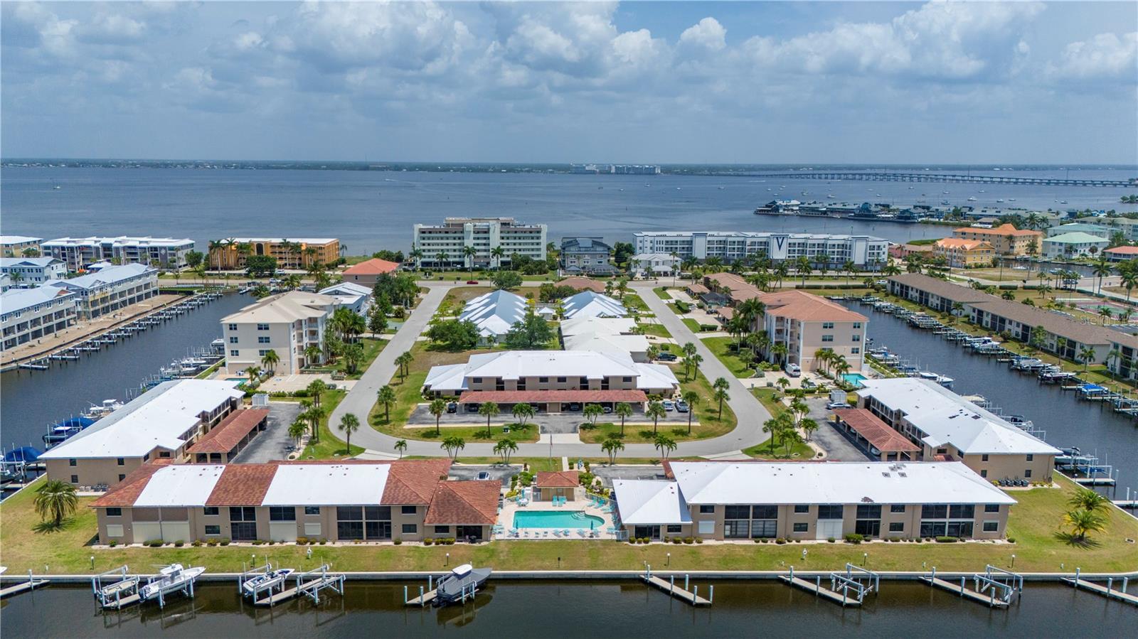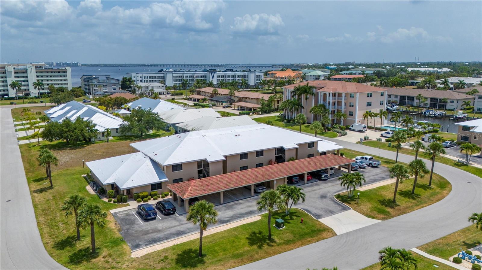 In Punta Gorda Isles, this exceptional GROUND-level END-unit condo offers a rare opportunity. Boasting 1483 sqft, 3 bedrooms, 2 bathrooms, and a screened lanai, it also includes a coveted DEEDED DOCK and boat slip complete with shore power and water access, ideal for Gulf exploration. Located just 5 minutes from Charlotte Harbor by the renowned Fishermen’s Village, this property resides within the well-maintained and pet-friendly Sea Isles community comprised of only 5 buildings. Residents here enjoy access to a heated swimming pool and covered parking, as well as the convenience of being within walking or biking distance to village shops, the yacht club, farmers market, library, dog park, and historic district. Additionally, it’s only a short drive to amenities like an 18-hole golf course, a charming public beach, and downtown Punta Gorda with its plethora of shops, restaurants, and entertainment options. This condo comes with dock and slip #516, positioned on an extra-wide canal. Here, fishing enthusiasts will find ample space to enjoy their hobby, with easy access to Charlotte Harbor just moments away. This attractive ground-level unit ensures privacy with no neighbors above or below and features FRESH PAINT, NEW CARPET, and a spacious kitchen equipped with solid wood cabinets and a generous breakfast bar overlooking the great room. Neutral tile flooring enhances the living spaces, while the 98-square-foot lanai includes a sizable storage closet. The master suite offers a large walk-in closet, vanity, and walk in shower. Two guests rooms one with large walk-in closet are perfect for entertaining or can be used as office/den space. An interior laundry room adds further convenience. Immerse yourself in the quintessential Florida lifestyle at this exceptional condo.With its unbeatable location, abundant amenities, and serene waterfront setting, every day feels like a vacation!