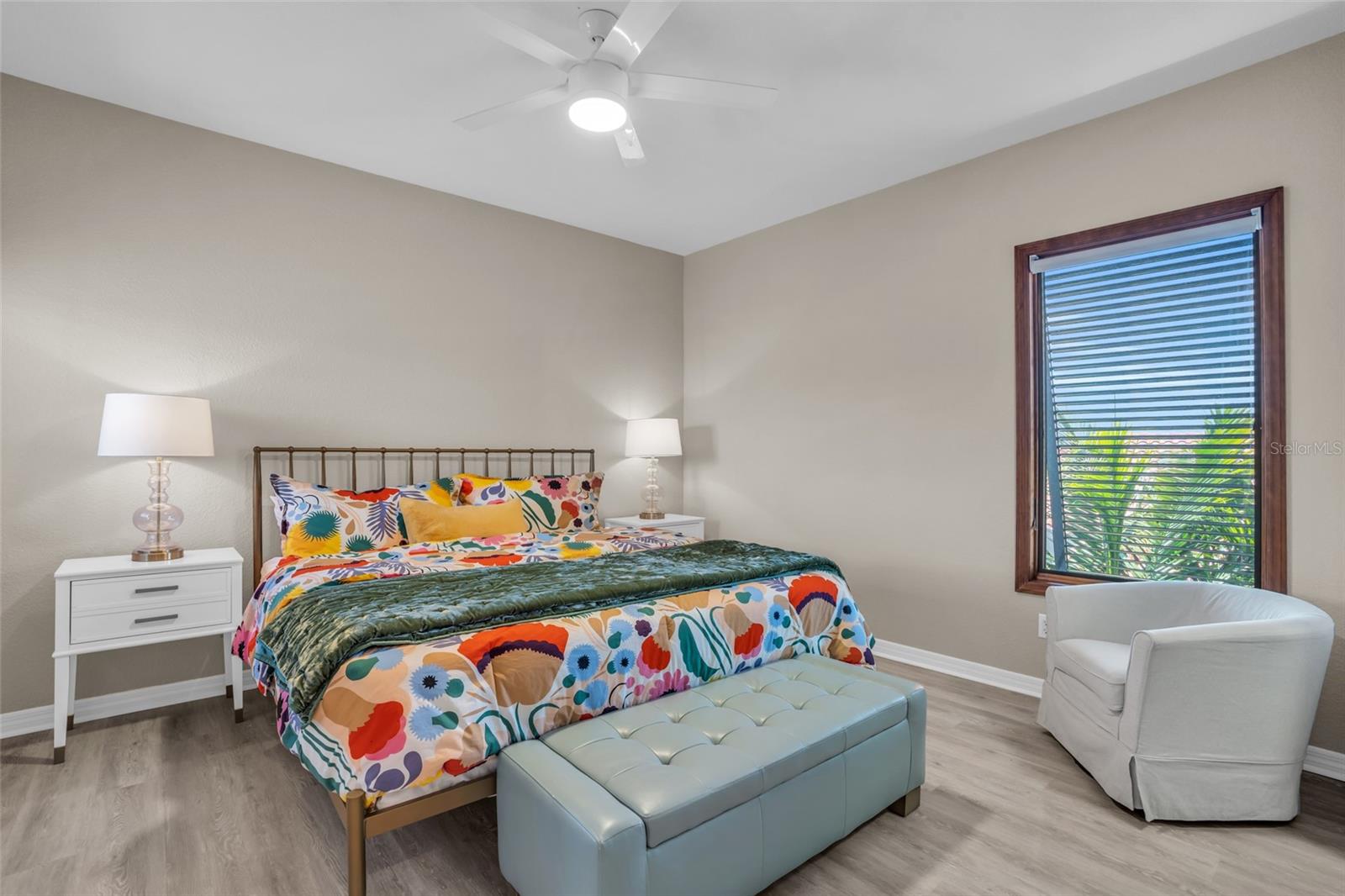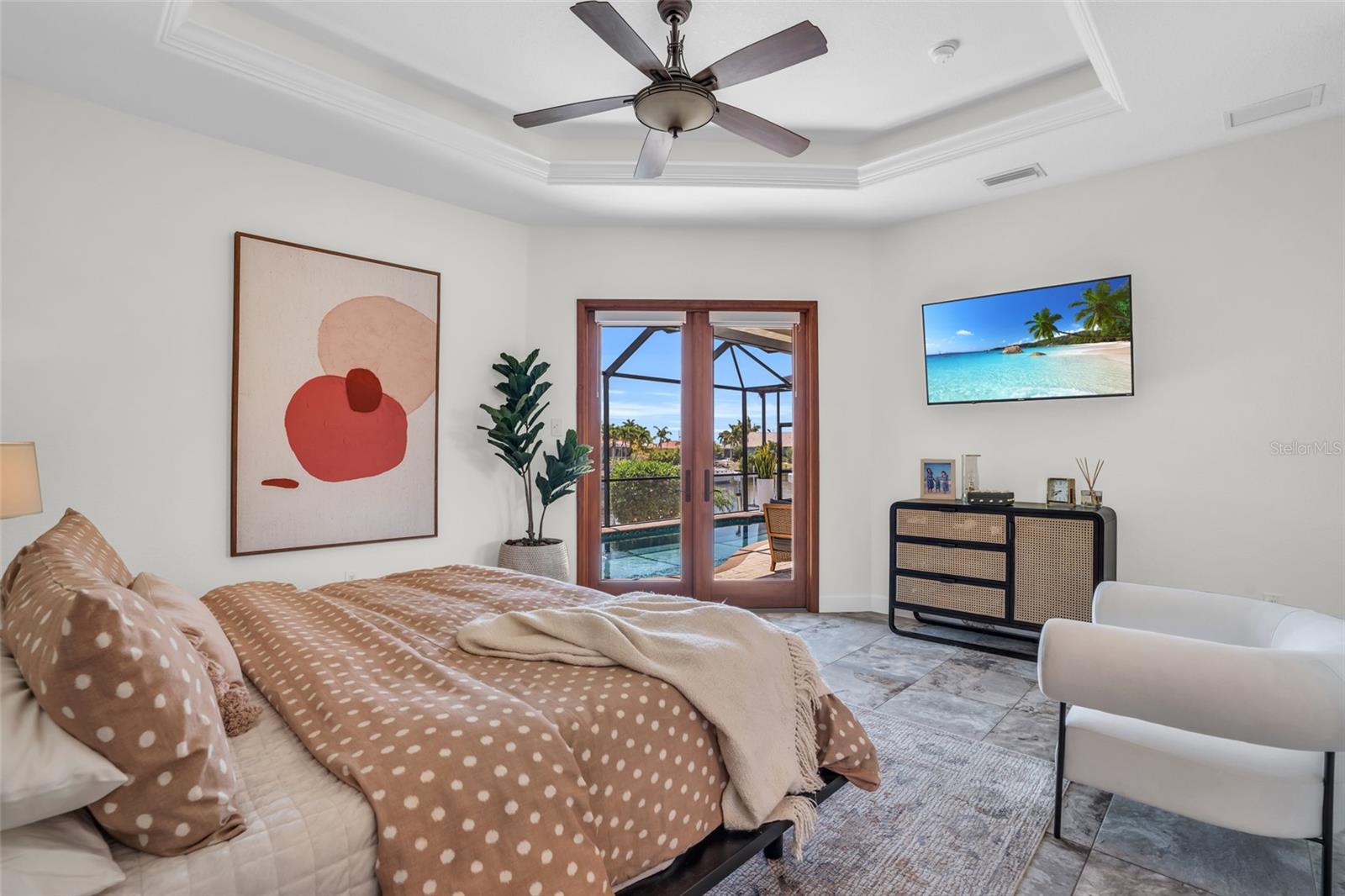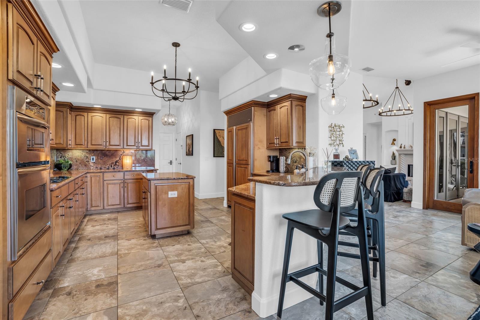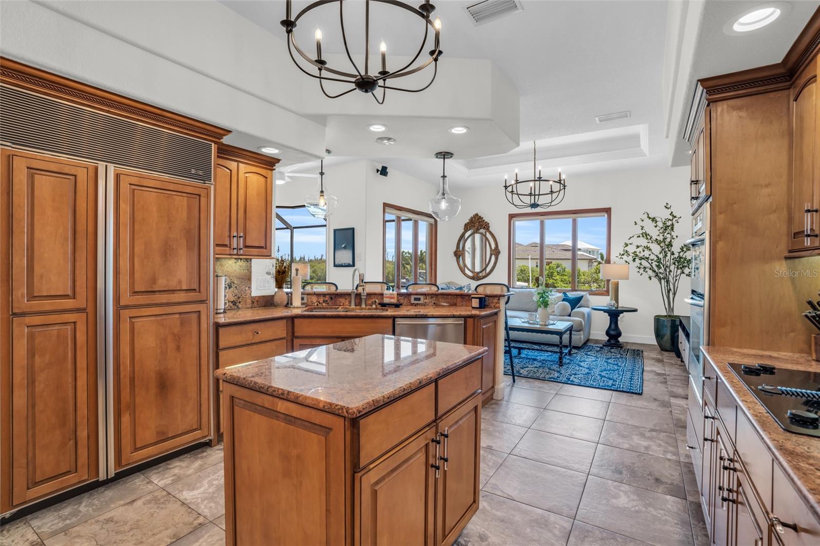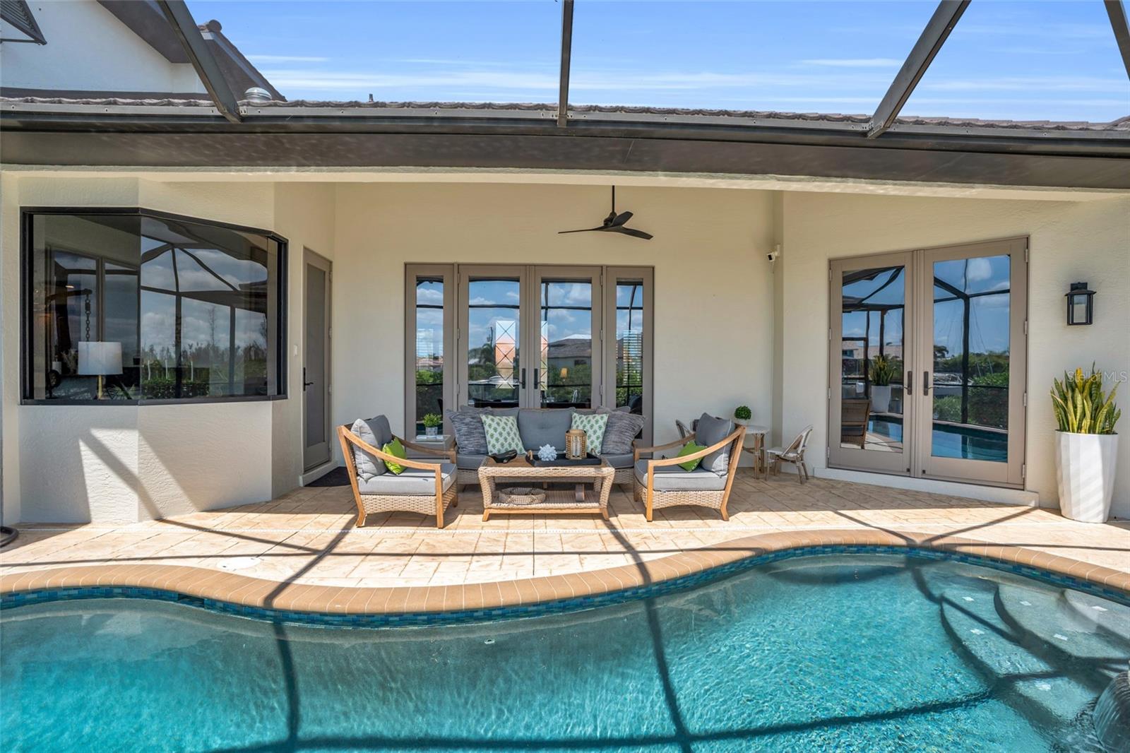 Discover this CUSTOM-built, one-of-a-kind WATERFRONT pool home in PUNTA GORDA ISLES, offering easy sailboat access to Charlotte Harbor & the Gulf via Buckley's Pass. This meticulously maintained residence features 73 feet of water frontage with a concrete seawall maintained by city, dock with elec/water, & a RARE 28,000 POUND BOAT LIFT. ALL DOCK POSTS ARE CONCRETE- not wood. Bunks for 2 jet skis &boat at this time. Step inside to an inviting semi-open floor plan with SOARING CEILINGS, highlighted by an elegant custom iron double entry door that is hurricane plus rated. The home boasts 3 bdrms, including a main-level master suite & an additional bedroom(4TH) or den , & 4 total baths. The interior is adorned with designer details such as soaring ceilings, arched built-ins, EIGHT FOOT INTERIOR AND EXTERIOR DOORS, stunning flooring, plantation shutters, French doors, designer light fixtures & a beautiful LIMESTONE surround fireplace in the living room. The oversized gourmet kitchen is a chef's dream, featuring cherry wood cabinetry, paneled BUILT-IN SUB ZERO refrigeration, granite counters & backsplash, a built-in oven, down draft cooktop, island, breakfast bar, pull outs, pantry, & a casual dining/bar area with an aquarium window to enjoy the stunning water views, plus a family room for additional relaxation space. The main level master suite provides private access to the lanai with double doors & includes a luxurious bath with marble, dual sinks, a garden tub, and a Roman shower. There are also 2 walk-in closets. An additional main level bedroom/den features soaring ceilings, California Closet modern built in with queen Murphy bed (seller willing to have prof. removed if buyer prefers), duel closets, drawers, built in light, charging station & overhead storage. The second floor houses two large bedrooms with walk-in closets & a separate marble guest bath. The outdoor entertaining area is perfect for gatherings, with a covered lanai, a half bath, an OUTDOOR SHOWER, & a screened, HEATED, SALTWATER pool and SPA with lovely WATERFALL FEATURE, all overlooking amazing water views that includes intersecting canal view. The lush tropical landscaping adds to the home’s great curb appeal. Winters are wonderful with opening up all the double doors to the lanai from the master suite & living room bringing the outdoors in. Located in a premier golf & boating community, this home is close to the Yacht Club, Country Club, Fishermen's Village, and Punta Gorda's historic downtown, which features restaurants, shopping, community events, and entertainment. Don’t miss this opportunity to own a piece of paradise. NOTABLE UPGRADES: Decra Stone Coated Metal Roofing w/ Lifetime Lim Warr. Upgraded Solid soffit system on both levels (Metal soffits are the first to go in a trop.storm) Extended Gutters on all sides of home. Outdoor accent lighting. All upper windows & some lower with new custom Bahama Lockable Shutters for extra prot. Emtek Solid Brass Knurled int.door knobs. 3 Baths have Linen closets. Laundry has pocket door with sink, cabinetry & shelving storage. Separate pool bath. Outdoor storage room great for pool/boat equip. HVAC UV light. LOW TRANSFERABLE FLOOD Insurance $1025 r/t elevation and 2nd level . NO HOA FEES. Lawn/Shrub/Tree trimming $165/month. Pool $140. 1 upper bdrm has triple bunks in walk-in closet that can be removed prior to closing.