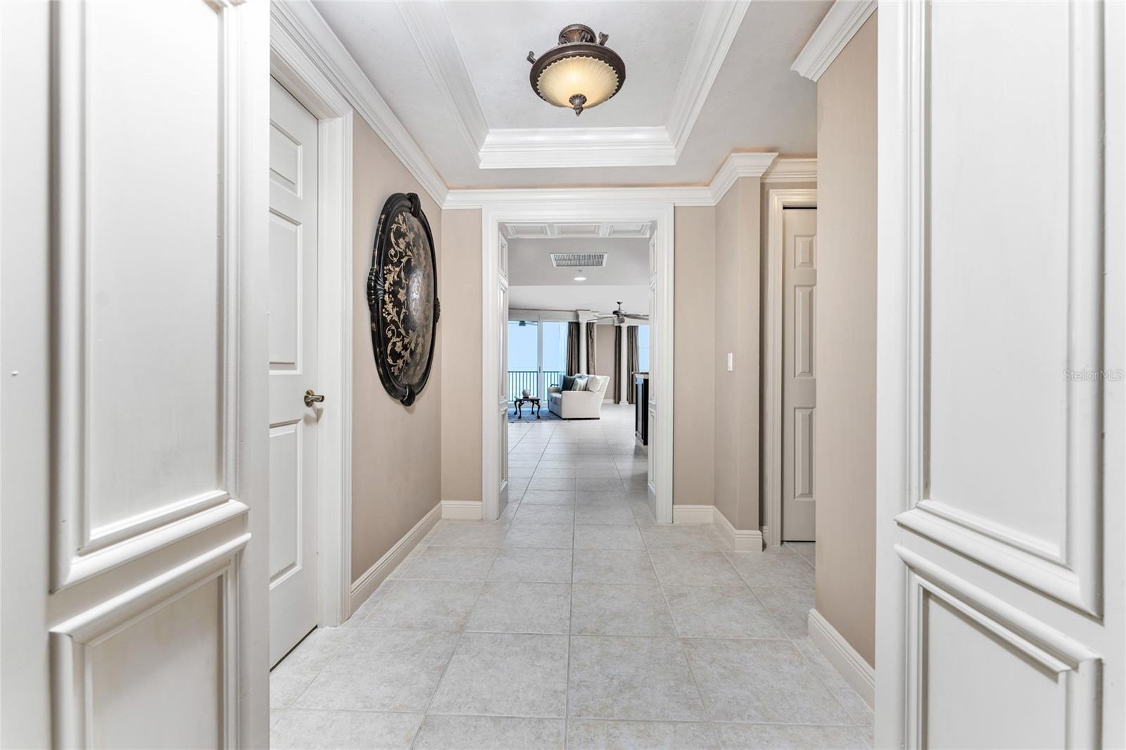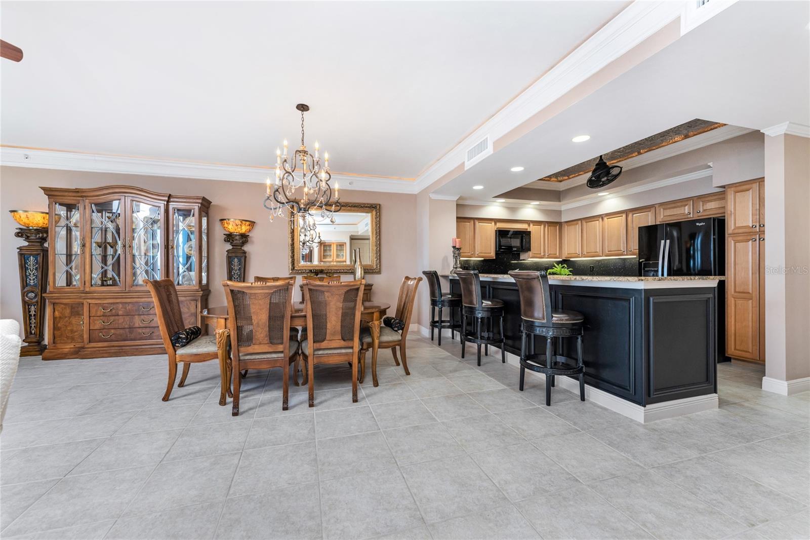 Come experience waterfront living at its finest in this upgraded Grande Isle condo, where million dollar views await! This renovated residence boasts high-end finishes, including extensive moldings and millwork that elevate the elegance of every room. Offered fully furnished and ready for you to move right in, this condo comes with a golf cart and TWO parking spaces! Step into the main living space and be mesmerized by the illuminated crown molding, accentuating the custom draperies and creating an ambiance of sophisticated charm. The incredible views of Charlotte Harbor through the impact sliding doors and windows are nothing short of breathtaking, offering a picturesque backdrop to your daily life. The tiled, screened lanai is the perfect spot to relax and soak in the fiery Florida sunsets, while watching the boats go by. The kitchen is a chef’s delight, featuring a handsome illuminated tin ceiling, granite countertops and a striking stone backsplash. The expansive cabinetry offers handy sliding shelves enhancing your storage capability. Entertaining is a breeze with a built-in granite-topped wet bar and an expansive breakfast bar opening the kitchen to the main living space. The primary suite is a true retreat, offering elegant furniture with incredible water views framed by rich draperies and illuminated moldings, new carpets, direct access to the lanai and a spacious walk-in closet. The ensuite bathroom is complete with dual sinks, a tiled shower, and a garden bath. Guests will feel right at home in the two additional bedrooms. One is an ensuite with a full bathroom, providing privacy and comfort. The other features a built-in Murphy bed and can easily double as an office, offering flexibility to suit your lifestyle needs. Third full bath has a shower converted to storage, which can be transformed back. Grande Isle is renowned for its resort-style amenities, ensuring every day feels like a vacation. Enjoy the Olympic-sized swimming pool, relax in the spa, or rejuvenate in the sauna and steam rooms. The community also offers a grilling area, fitness center, and grand salon, providing everything you need for an active and vibrant lifestyle. Exterior photos were taken pre-Ian.