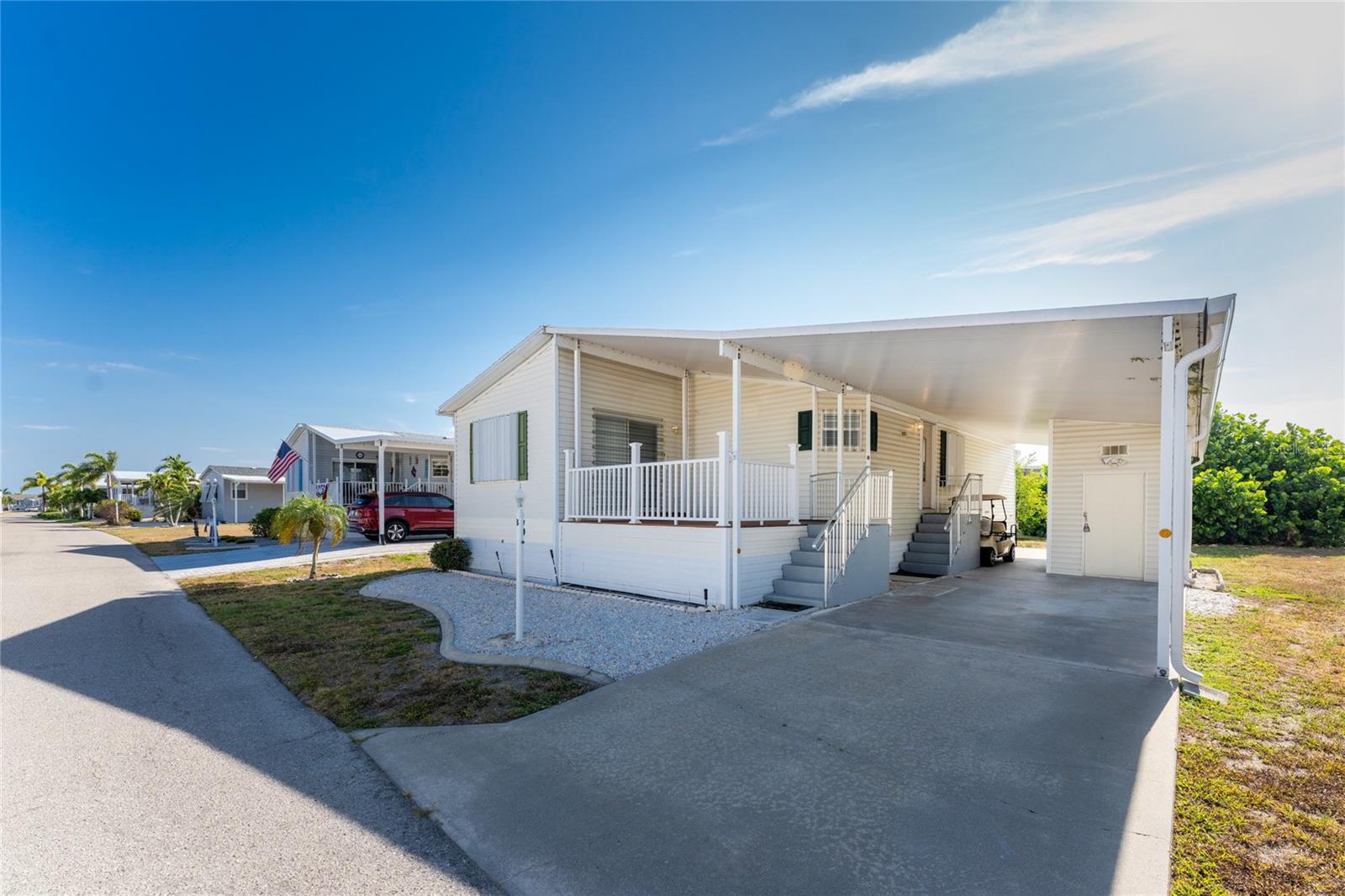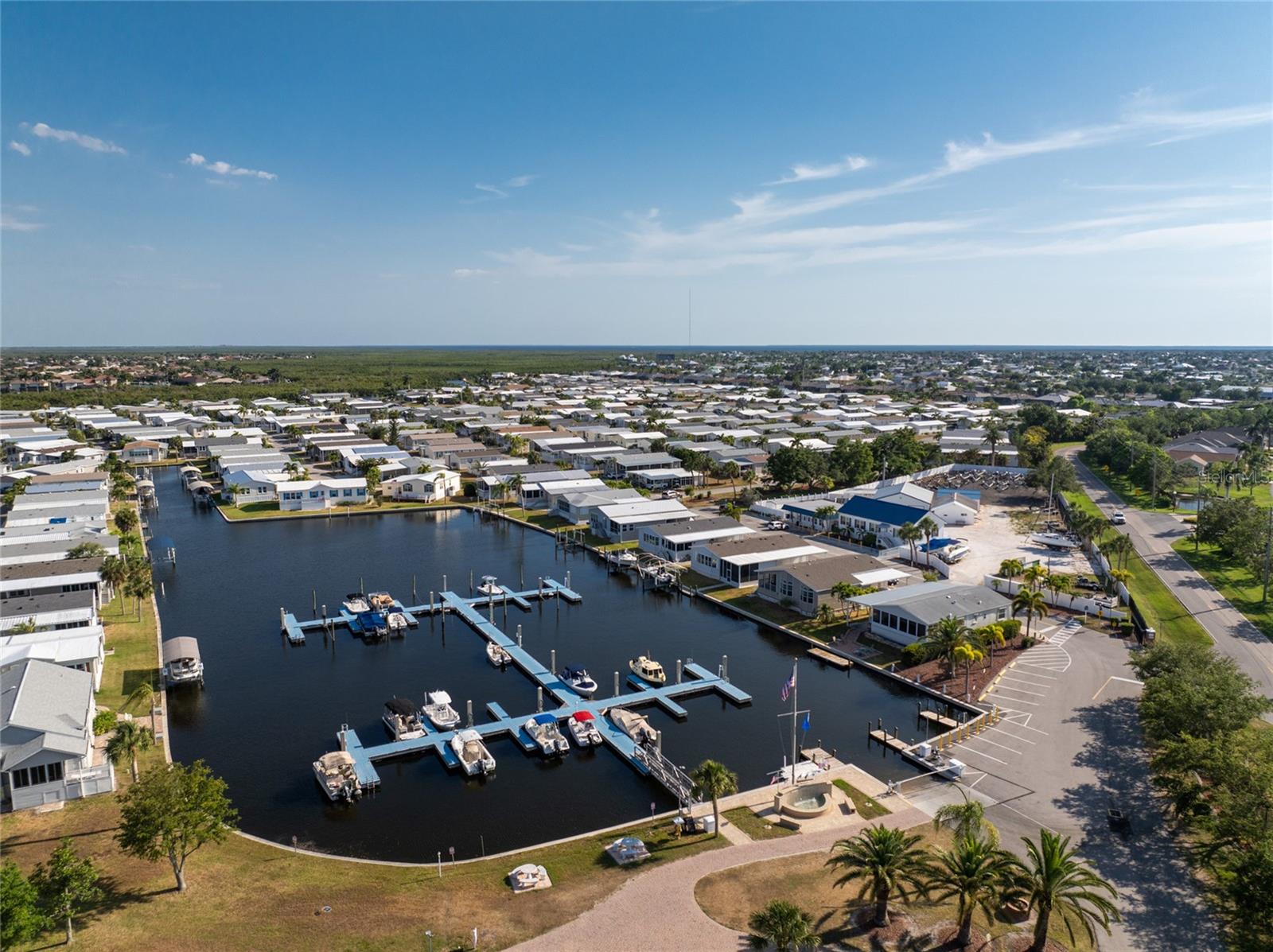 Welcome to wonderful Windmill Village. This vibrant 55+ waterfront community boasts multiple amenities including a marina, pool, boat and trailer storage, shuffleboard courts, boat ramp and more. Boating access to Charlotte Harbor is less than 15 minutes via Alligator Creek. Community streets are private and golf cart friendly. This well cared for Fleetwood home offers two bedrooms, two full baths and a large front deck for relaxing in the warm Florida weather. There is a 10' x 7' storage room at ground level. Boat slips in the marina are available on a first come first served basis. Windmill Village is located close to downtown Punta Gorda where you can find shopping, fine restaurants, weekly farmer's markets and much more. The low monthly fee of $215 covers lawn care, water, sewer, management and recreation facilities. Roof was replaced in 2023. List price does not include the community share buy in and bond of $18,285 which is returned to you when you sell. Call today, homes in Windmill Village are hard to come by in today's market.