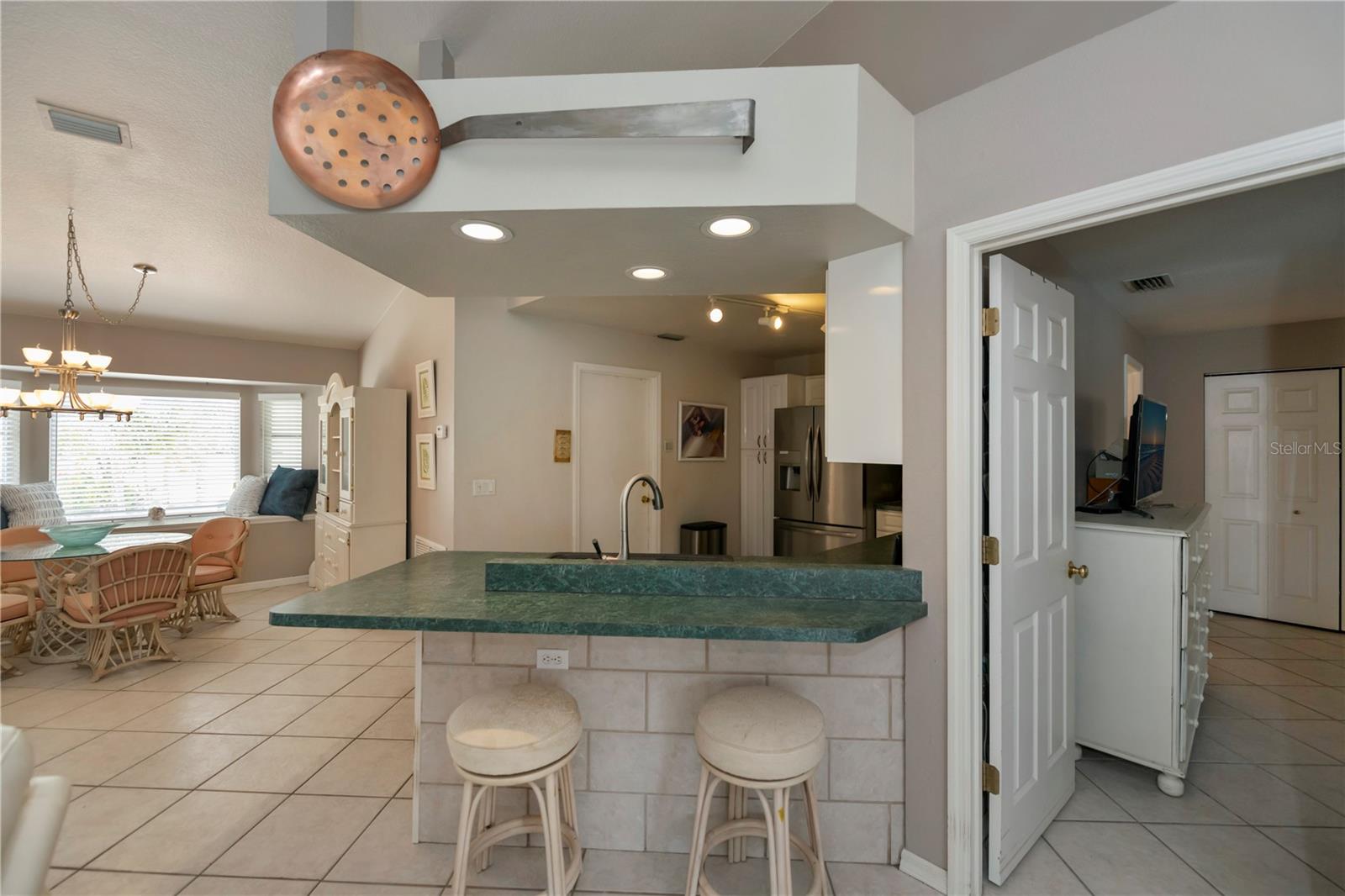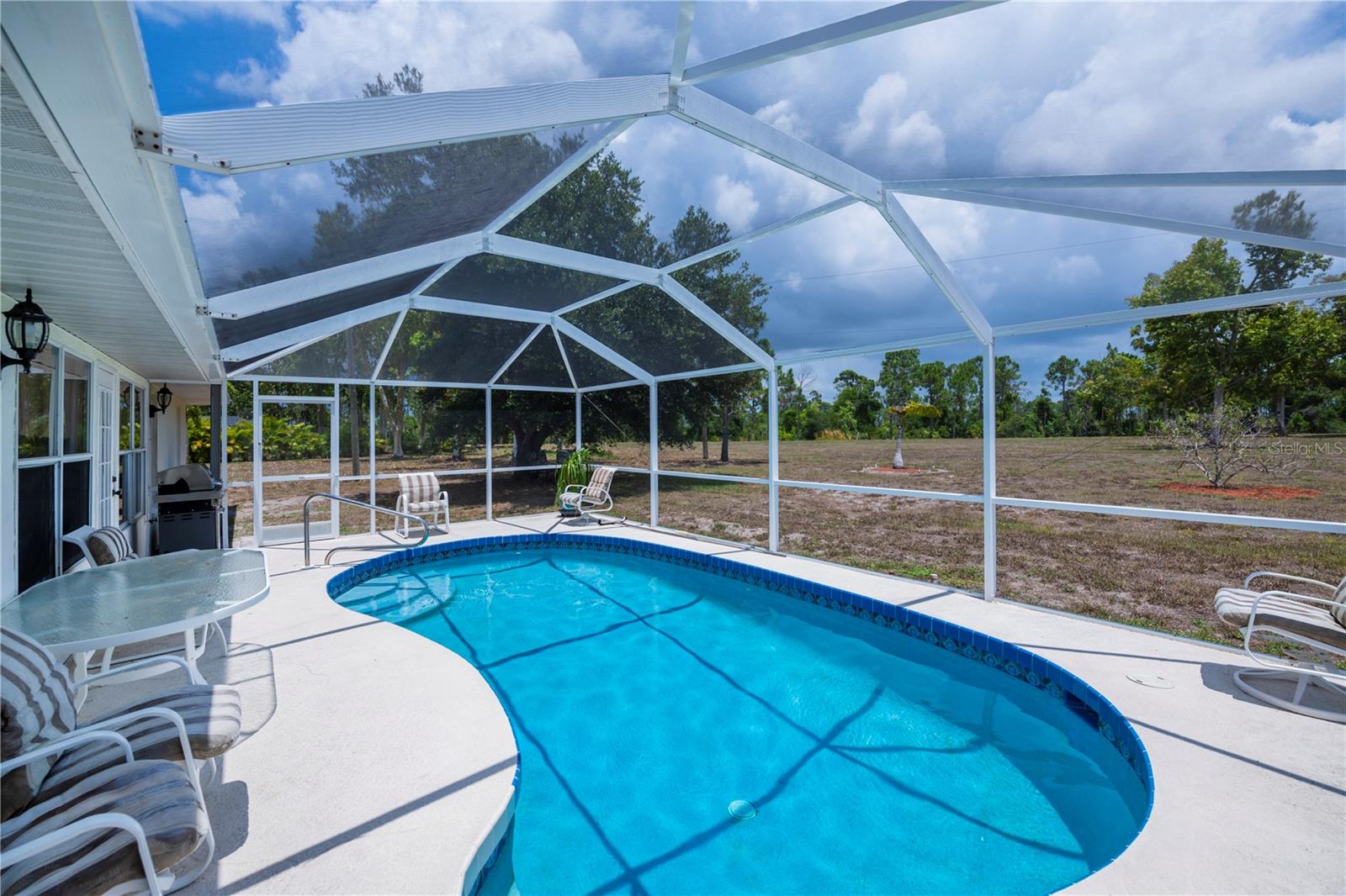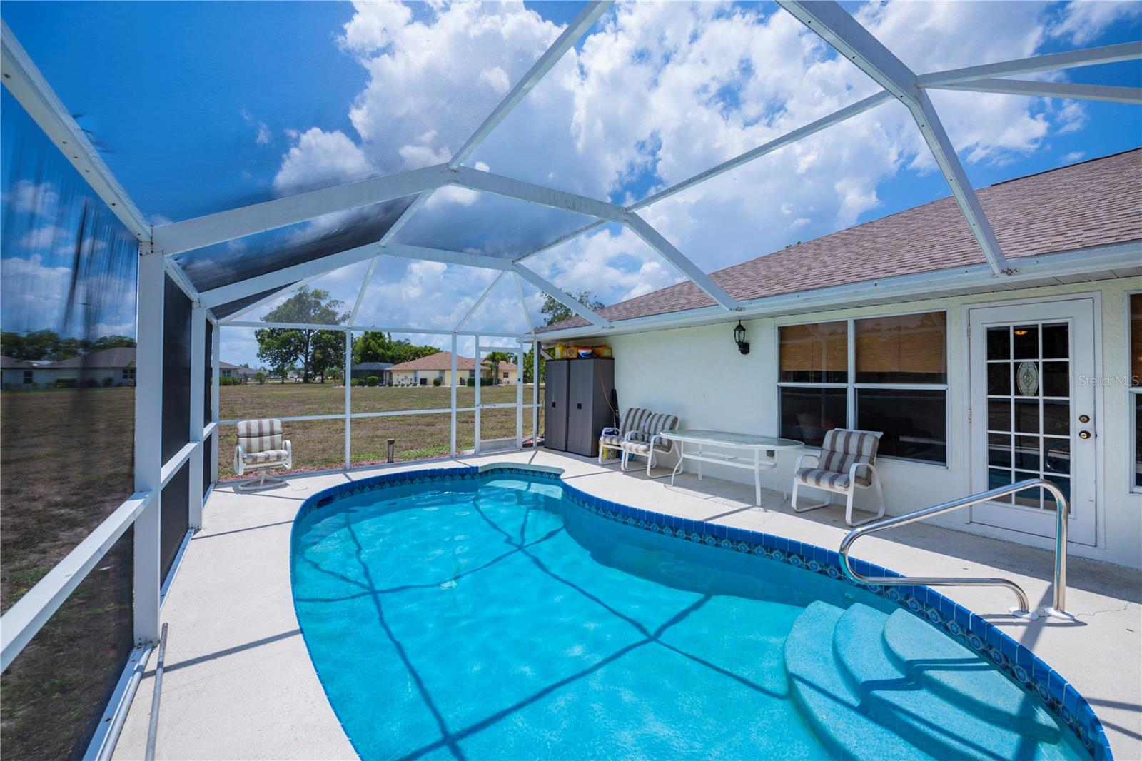 HERE IS YOUR CHANCE FOR BACKYARD PRIVACY with this 3/2/2 POOL HOME located in beautiful Burnt Store Village providing SERENE extended preserve plus an OVERSIZED greenbelt (nearly 90 ft wide and 140 feet deep sides)and a sweet lil creek beyond all that also.... wow wow wow.Wonderful curb appeal immediately, covered front entry way and mature palms are most welcoming. Rich TILE SET ON A DIAGONAL THROUGHOUT this SPLIT FLOORPLAN, greeted with an upgraded front door complimented with leaded glass accent this home has modern custom open column accents too. Lavishly linger in the separate dining space and enjoy its COZY WINDOW SEAT so easy to simply enjoy and stay a while with friends and family. Entertaining made easy with a spacious extended family room and its long list of amenities...Fabulous planter shelves, high ceilings, abundant natural light flows seamlessly from sleek horizontal accent glass over sliding doors bringing the outside in. The spacious kitchen offers stainless appliances, convenient breakfast bar, nicely tiled backsplash and large pantry for more entertaining space plus the ability for bringing groceries straight inside from the garage. All this overlooking the SPARKLING POOL and area to swim day or night covered and open screened lanai, extra all season room.BACKYARD LIVING AT ITS BEST and uniquely special privacy greenbelt! The spacious master bedroom boasts double door closets, with its own private patio access and large ensuite bath. Both guest suites are also large and share a bath in between, with lovely glass paned french doors on one that makes a perfect office. New POOL PUMP with a 1 year warranty, ROOF is only 3 years young,1 YEAR on AC, and enjoy the extra workshop in the spacious 2 car garage. ENJOY NATURE FULLY instead of any backyard neighbors , this is the Florida lifestyle you have dreamed of , sparkling pool with lots of serenity to enjoy with friends or family anytime of day.. Burnt Store Village is DEED RESTRICTED and on 520 acres and has 13 miles of quiet, county -maintained streets great for biking, plus BSV Community Park has a walking path around a picturesque lake, picnic tables and a playground. Close to shopping, dining, Burnt Store Marina this areas largest Marina is only a minute away featuring GOLF, RESTAURANTS AND GIFT SHOP, historic downtown Punta Gorda, farmers markets, Punta Gorda airport and US 41. OWNER IS OFFERING A 1 YEAR HOME WARRANTY...talk about peace of mind...YES!!! Make your appointment to see this fantastic POOL HOME, with huge price adjustment , endless backyard privacy, and great deed restricted community TODAY!