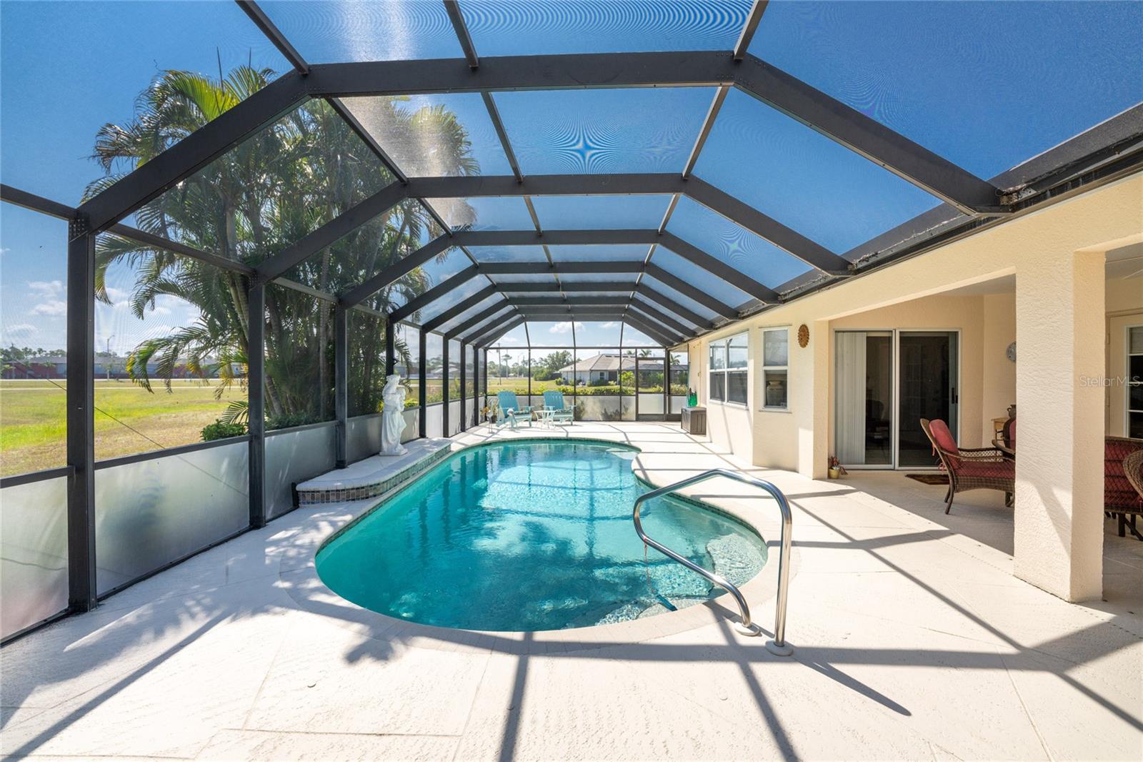 SIGNIFICANT PRICE REDUCTION....SOLD MOSTLY FURNISHED! Welcome to your beautiful home in tranquil Burnt Store Lakes located in desirable X flood zone. This lovingly maintained ONE-OWNER 3-bedroom, 2-bathroom POOL HOME with LIVING AREA, DINING AREA, FAMILY ROOM exudes pride of ownership inside and out. This home features a NEW 2023 STYLISH FLAT TILE ROOF AND GUTTERS and spacious tiled living areas with high ceilings. Step into the inviting great room that seamlessly combines living and dining spaces, ideal for entertaining guests. The kitchen is a chef's delight, equipped with plenty of WOOD CABINETS, a stylish tile backsplash, solid surface counters, STAINLESS FRIGIDAIRE APPLIANCES and a EAT-IN AREA WITHIN THE KITCHEN. Off the kitchen, a comfortable FAMILY ROOM awaits, perfect for relaxing and casual gatherings. Enjoy panoramic views of the pristine pool, thanks to the expansive glass doors that flood the interior with natural light. Solar window film ensures energy efficiency while custom window treatments and blinds add a touch of sophistication. Retreat to the primary bedroom suite featuring plush carpeting, his-and-her closets, and a luxurious ensuite bathroom with a high vanity, shower, and whirlpool tub. Two additional guest bedrooms and a dedicated laundry room with GE WASHER and DRYER provide ample space and convenience. Outside, enjoy the tranquility of your .29-ACRE LANDSCAPED OASIS, complete with its PRIVATE WELL FOR IRRIGATION, a STAMPED CONCRETE DRIVEWAY AND WALKWAY, CONCRETE CURBED PLANTING BEDS, and a SPRAWLING GREENBELT for added privacy. The HEATED POOL, nestled within a SPACIOUS LANAI and POOL CAGE, offers the ultimate retreat for soaking up the Florida sunshine year-round. This home is not just about luxury; it's also about practicality. This home comes with a BACKUP GENERATOR, SURGE PROTECTION, RHEEM A/C, as well as a WHOLE HOUSE WATER FILTRATION SYSTEM, every detail has been thoughtfully considered for your comfort and convenience. Burnt Store Lakes is a beautiful Deed Restricted Community with new custom homes being built throughout the neighborhood. Public water and sewers are in place, and this home has its own well to irrigate your lawn and plantings. Burnt Store Lakes Residents enjoy the Community Park which has covered picnic benches, a playground, and restrooms. There is a kayak ramp for Residents only that accesses Charlotte Harbor and the incredible wildlife in the Charlotte Harbor Aquatic Preserve such as Manatees, porpoises, sea turtles and an abundance of game fish. Next door at Burnt Store Marina, SW Florida’s full-service deep-water marina, restaurants are open to the public and amenities such as golf and boat dockage may be available. It’s just a short drive to Downtown Punta Gorda, one of Florida’s best small towns, with plenty of restaurants and town activities to enjoy. Just across the bridge in Port Charlotte is the new Allegiant Airways Sunseeker Resort. Or to Cape Coral, one of the largest cities in Florida. It doesn’t get any better than this to live your dream Florida Lifestyle. Schedule your private showing today and come enjoy the Florida lifestyle.