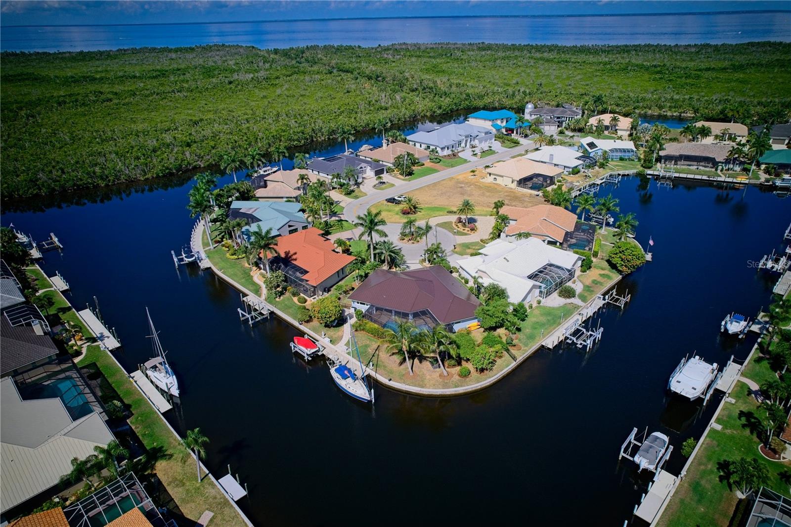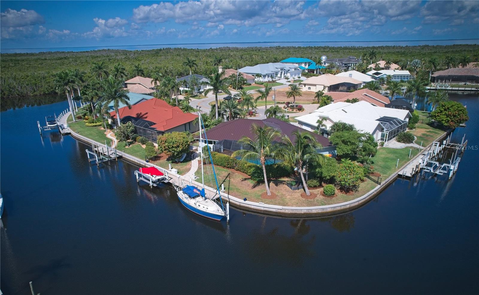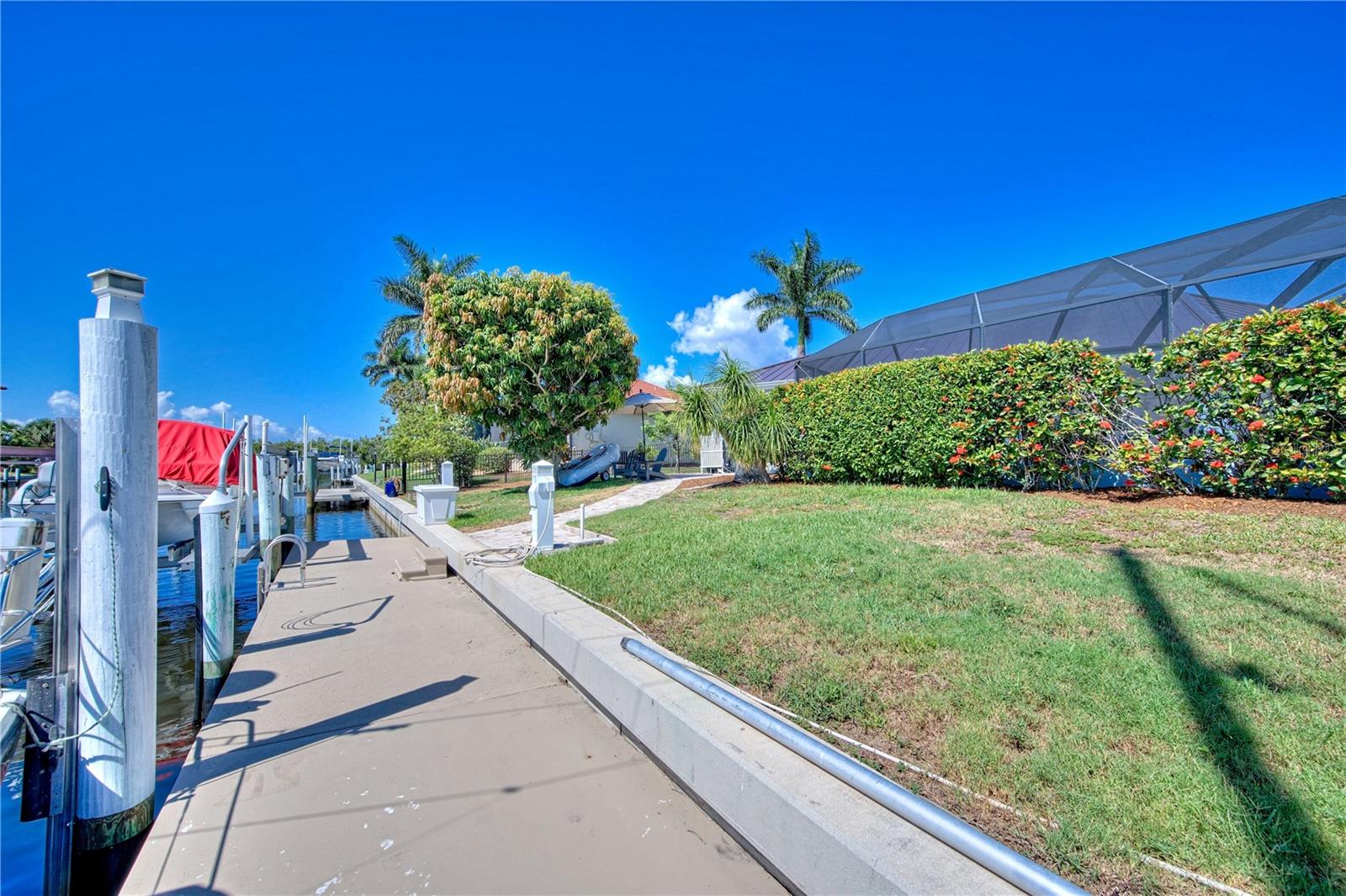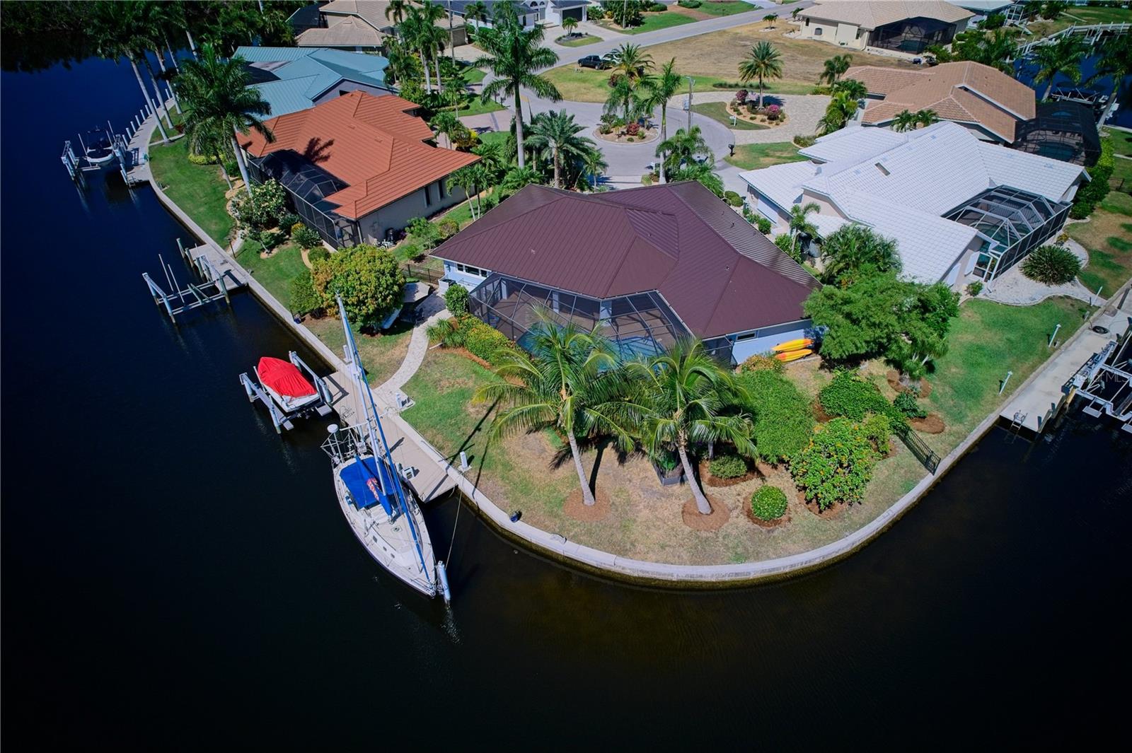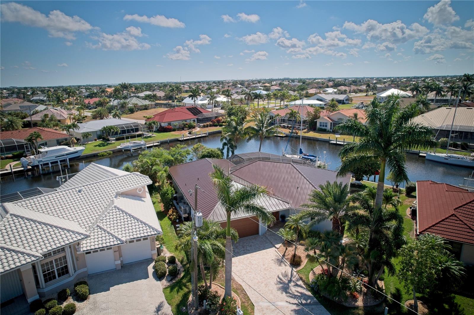 This is a very special location with the home being close to the Harbor and no bridges to The Gulf. It is located on deep water / sailboat water without bridges & which leads out to Charlotte Harbor where you can continue on to Boca Grande Pass & the Gulf of Mexico. Step into amazing in Punta Gorda Isles! This lovely waterfront luxury home is all about location. 173 beautiful feet of waterfront with unobstructed (no bridges) deep waterways all the way to Charlotte Harbor & The Gulf. This home embellishes true split floor plan. Completely updated. The Main Bedroom has a suite of its own completely on the other side of the home. The two large guest bedrooms each have a water view. All interior doors are solid wood / solid core imported from Brazil. This delightful home has three large bedrooms (each with walk-in closets) and an office / flex room. The Primary bedroom's ensuite, double shower heads in the walk-in shower, double sinks with so much storage space. There are two walk-in closets in this bedroom for all of your conveniences. Every detail has been professionally designed and all updates are exceptional. New roof with 20 year warranty is transferrable. The new impact garage door, whole house Honeywell / Generac Generator with transfer switch, 32 foot salt water pool with new heater; Kitchenaid appliance suite, entire home (including closets and baths) have Porcelain tile imported from Spain, gas island cooktop, solid maple cabinets, All bathrooms are completely updated, Pool has been updated with Pebble Tec and new finishes, new pool cage, new driveway and walkway to dock, freshly painted, New PGT hurricane impact windows with SS hardware and new PGT sliders with SS hardware. The private backyard has mature landscaping including mango, key lime and papaya trees. There is a raised garden bed with pineapples and space for additional growing. From your dock you will be in the entrance to navigational waters in 10 minutes. At the dock there is a SlideMoor (for a large boat) System as well as 10,000 lb. boat lift. Please note that The City of Punta Gorda maintains seawalls in Punta Gorda Isles (included on tax bill) and dredges from waterways to Charlotte Harbor to 6 ft. at MLT / mean low tide. Fly directly into Punta Gorda or Fort Myers to visit and decide to stay! Enjoy local venues, resorts, restaurants, and very friendly neighborhood. Bamboo is non-invasive and landscaped Native / Native Friendly. Feature sheets are available upon request. Please see the aerial video. Make your appointment to view today in person or Live Video!