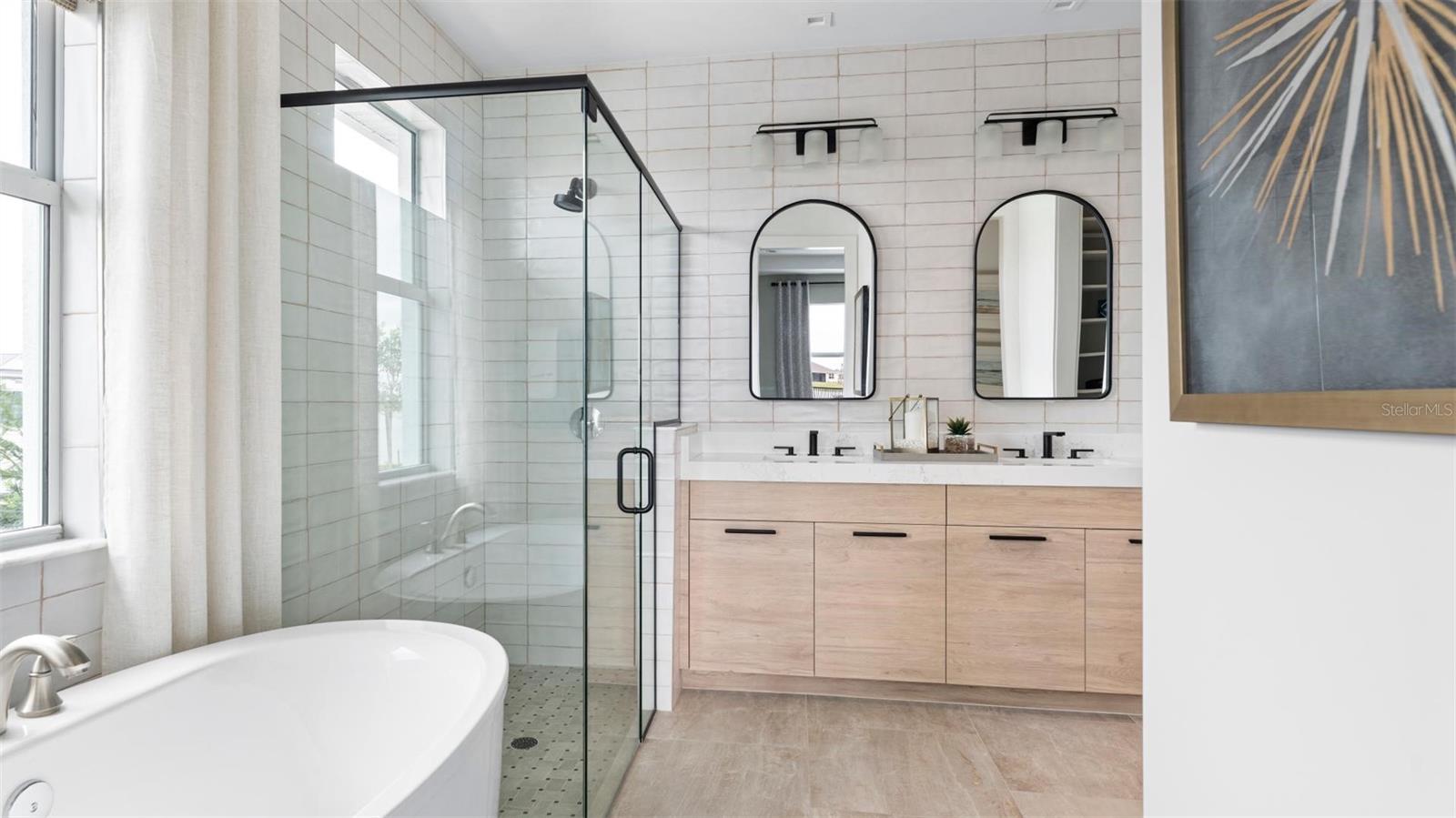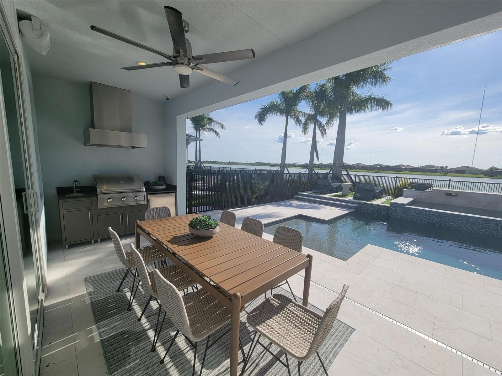 GORGEOUS TOLL BROTHERS MODEL HOME FOR SALE! Step inside your 2,236 square feet new construction, luxury single-family home. This gorgeous 3 bedroom, 2.5 bathroom with flex space and 2.5 car garage sits along Lake Babcock with a western-exposed backyard perfect for beautiful Florida sunsets. This model home features stunning Shaw 24x24 tile floors throughout the home along with beautiful custom trim work, absolutely no carpet in your home! Your gorgeous chef's kitchen features beautiful Cambria quartz countertops, Daltile cream backsplash, and beige soft-close cabinets and drawers with matte hardware creating copious amounts of kitchen storage space. All KitchenAid appliances are stainless steel, including counter depth refrigerator, gas cooktop with range hood, dishwasher, wall oven and microwave with glass touch control. From your kitchen to your open-concept living room and casual dining space oversees the gorgeous water view of Lake Babcock and your private custom pool and spa. Step outside your sliding glass doors to your amazing outdoor living space showcasing beautiful maintenance-free landscaping, custom pool and spa, water view of Lake Babcock, and an amazing outdoor kitchen setup with refrigerator, gas grill, hooded vent, countertop space, and cabinets. Buyer is able to add a floating dock to property after closing on the home, electric boats up to 8 knots are permitted on Lake Babcock! Inside your spacious primary bedroom suite features a beautiful tray ceiling with detailed shiplap inside along with custom headboard wall detail. Your spa-like primary bathroom includes a lovely, free-standing Kohler bathtub, frameless walk-in shower with gorgeous Shaw shower floor and wall tile, and dual-sinks with upgraded soft-close cabinets below-- accompanied with a beautiful, walk-in closet and wooden built-in closet organizer. Don't forget about the laundry! Your laundry room features Whirlpool gas dryer and washing machine with soft-close cabinets above for extra storage space. Hurricane impact glass windows and doors throughout your home ensure optimal safety for Florida's hurricane season. This is a brand new construction home with all the latest building codes with builder warranty. This home is located close to additional Babcock Ranch amenities with TWO SWIMMING POOLS (Cypress Lodge & Lake Timber) Tennis, Pickle Ball courts, Fitness Center, Shopping, Restaurants, and community events. Babcock Ranch has over 20 miles of walking/jogging/biking trails and kayak launches along our beautiful lakes.