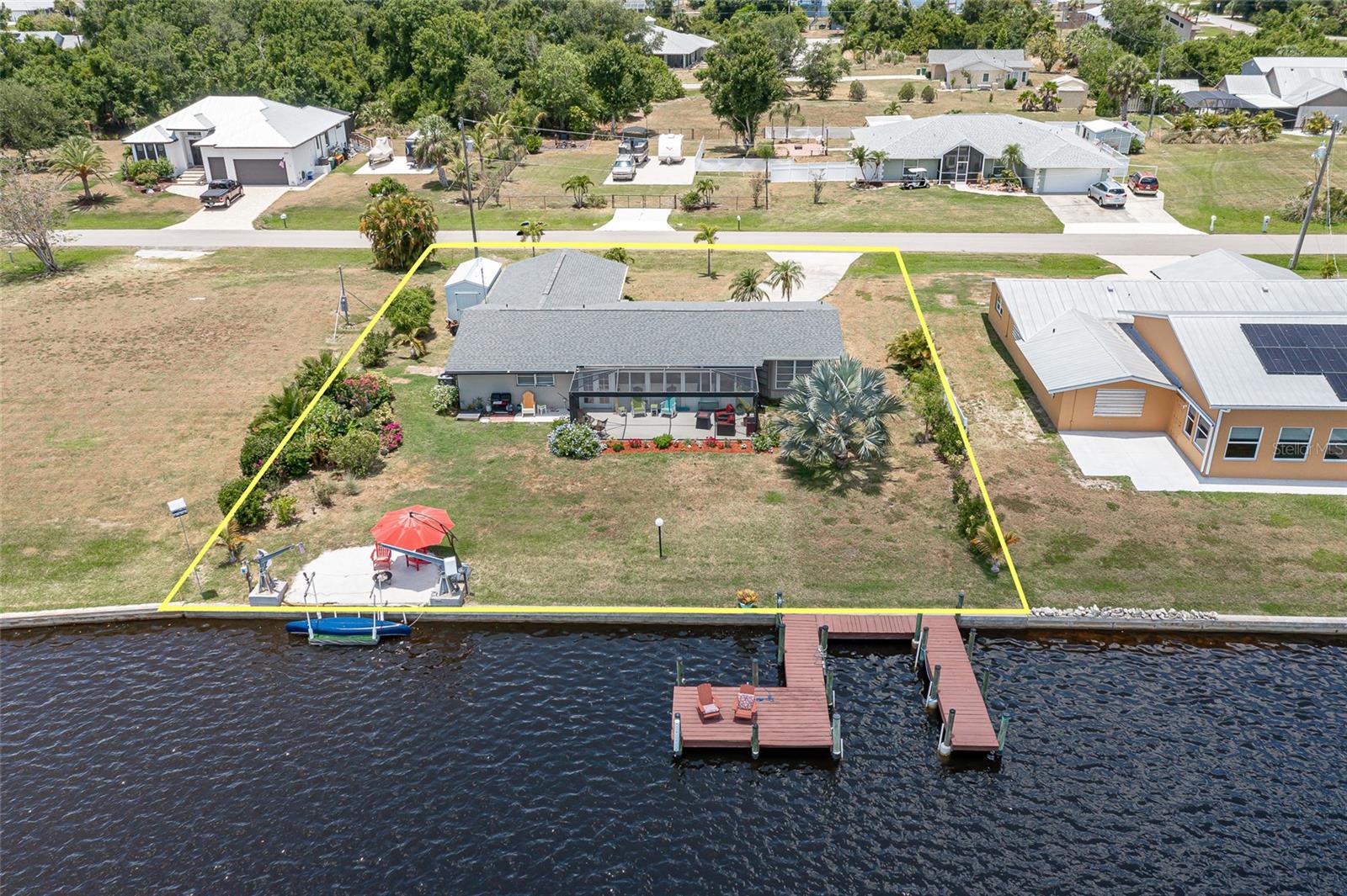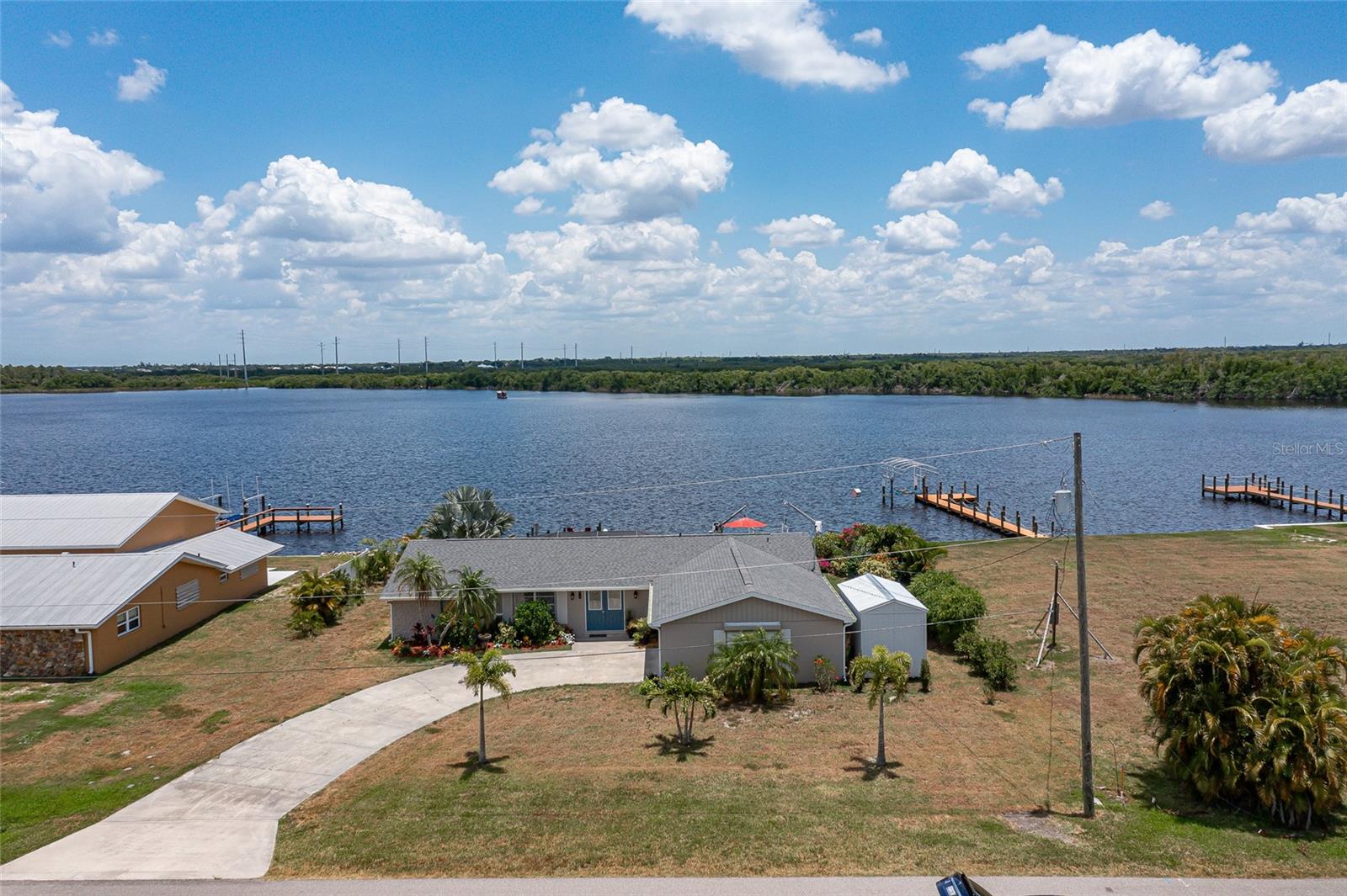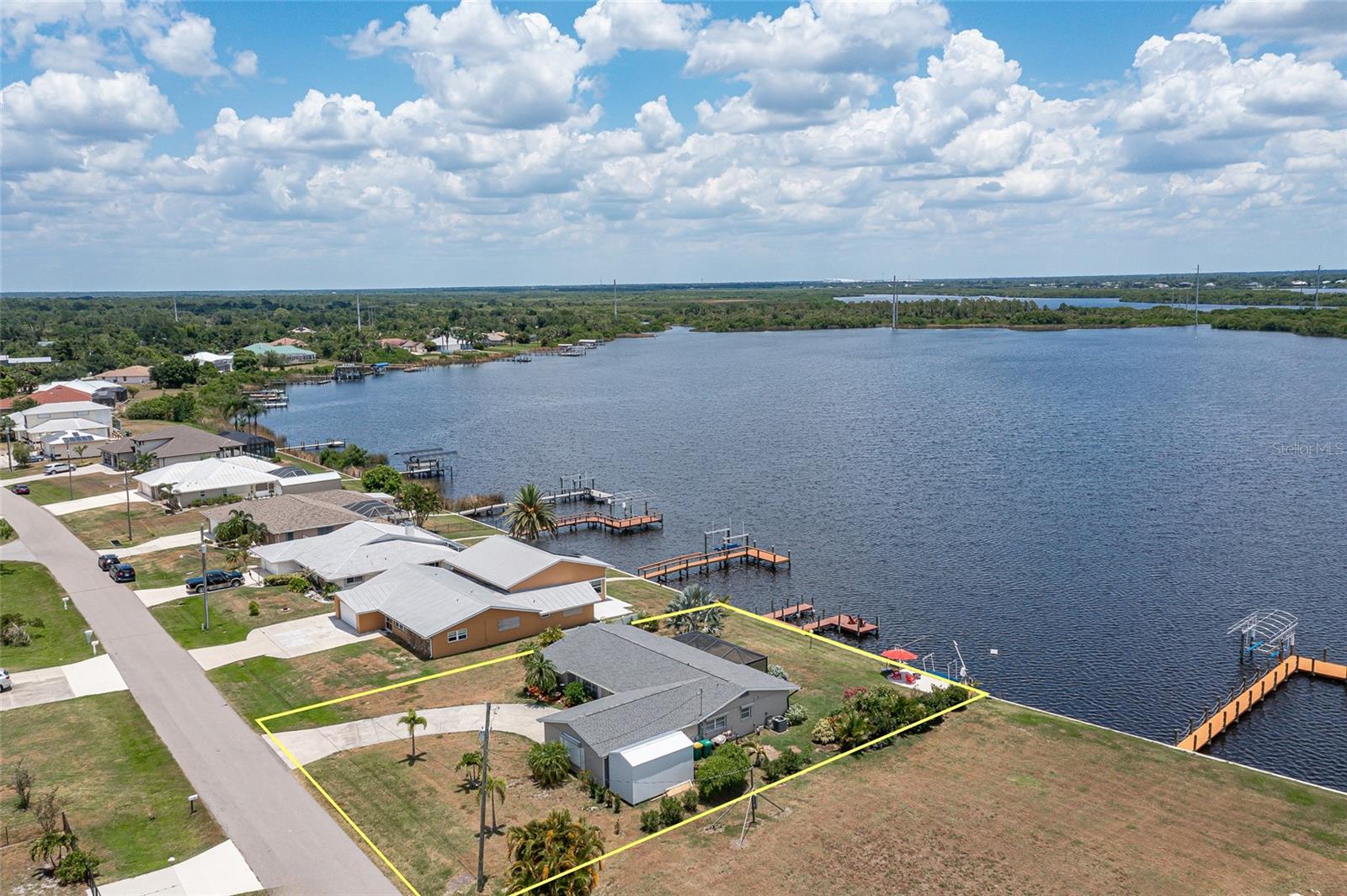 UPDATED, 3 BED/2 BATH, WATERFRONT HOME IN HARBOUR HEIGHTS ALONG THE PEACE RIVER W/ ***NEW ROOF***, ***104 FT OF WATER FRONTAGE*** & EXCEPTIONAL WATER VIEWS OF WHIDDEN BAY - This 3 bed/2 bath home has seen nearly every room recently updated. The result is a light & bright, renovated waterfront residence w/a contemporary open floor plan & coastal vibes throughout. The layout includes an open concept living room, kitchen & Florida room. The kitchen boasts stainless steel appliances, a mix of quartz & butcher block counters w/a breakfast bar & designer pendant lighting plus solid wood cabinetry. Large picture windows in the Florida room & master bedroom overlook the spectacular view. Other architectural details include tile flooring throughout w/beautiful Mexican tile in the Florida room, shiplap accent wall, and modern ceiling fans. The spacious master suite has an oversized walk-in closet, a spa-like master bath w/LED lighted mirror & glass-enclosed shower. The split bedroom floor plan features two large guest rooms. A French door opens to the screened patio. Picture frame screens on the patio ensure a pest-free, unobstructed view. Enjoy gorgeous sunrises over Whidden Bay. LONG LIST OF UPDATES including NEW roof, ALL NEW stainless-steel appliances, NEW water heater, NEW electrical wiring w/new electrical box & wiring from street to home, NEW PEX plumbing throughout, NEW impact garage door, & NEW shed. Other amenities include whole-house hurricane protection that includes electric & manual roll down shutters plus an oversized, attached, 2-car garage w/workshop & adjacent shed. Well-maintained, tropical landscaping surrounds the home creating the feeling of a private oasis. A small sandy beach has been created between the davits meanwhile a two-pronged wooden dock is just waiting to host your boat, kayak, wave runner or paddleboard. Let your maritime adventures begin from your backyard & start living the Florida dream. You'll enjoy front row access to some of the best fishing & boating that SW Florida has to offer. Home is located on a VERY QUIET street. Harbour Heights boasts a nearby waterfront park w/playground, boat launch, tennis/pickle ball courts, basketball courts & picnic area. Seller has a transferrable NFIP flood policy with $3,187 annual payment. Make an appointment today.
