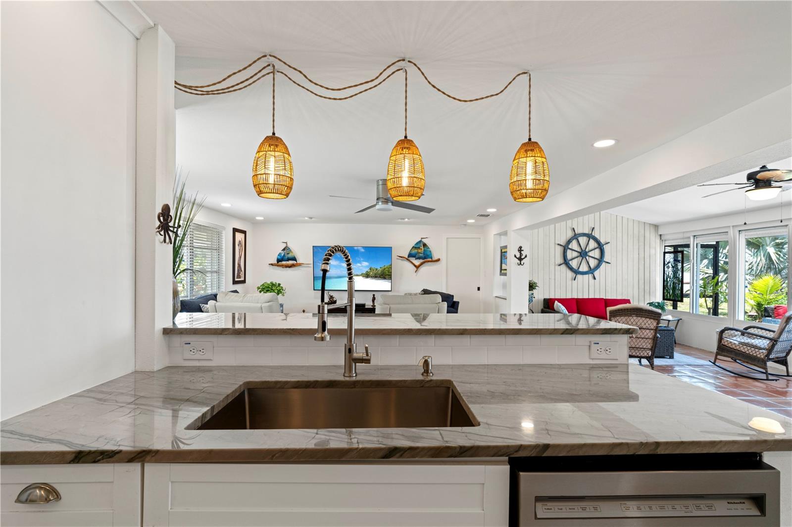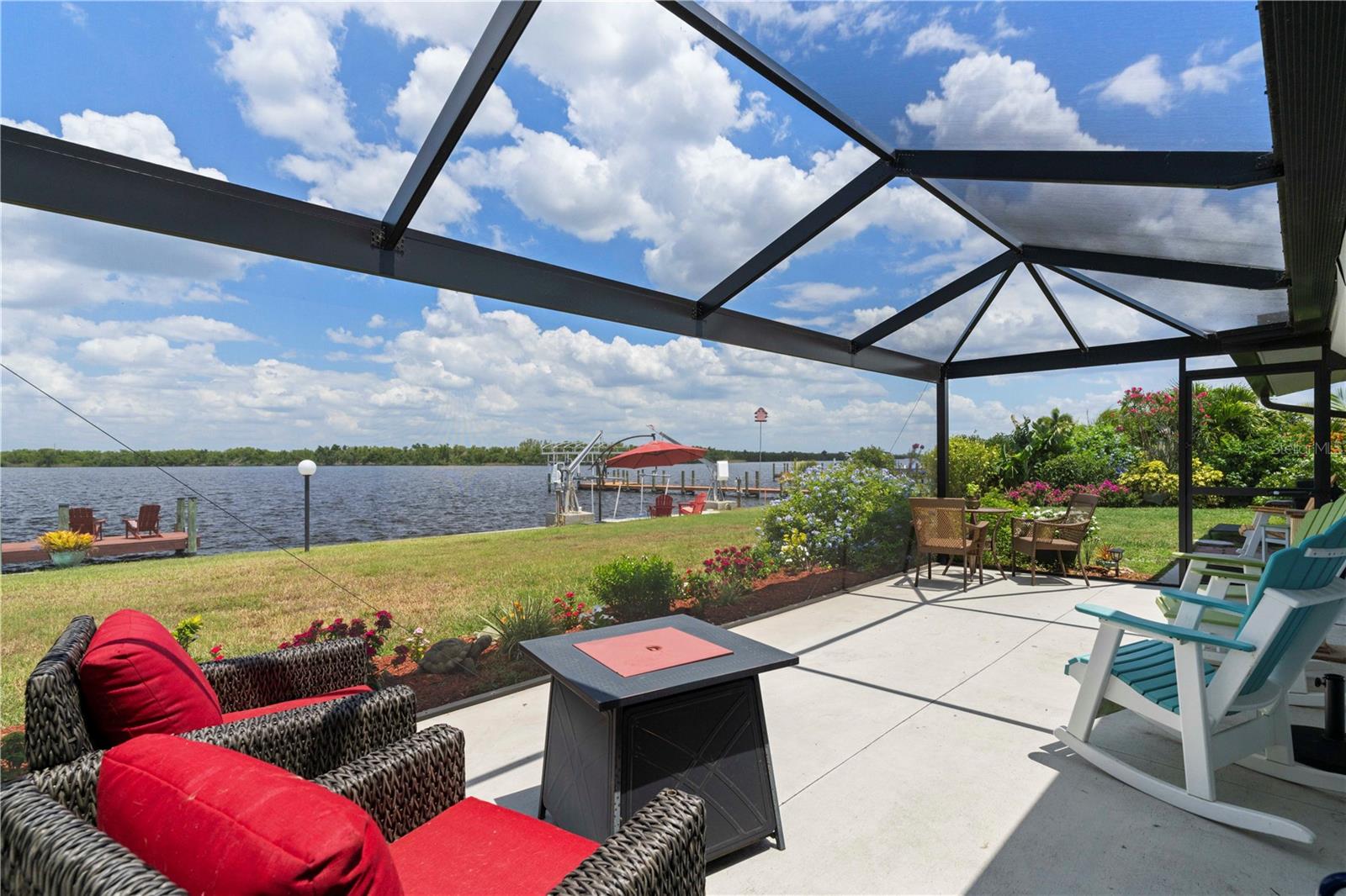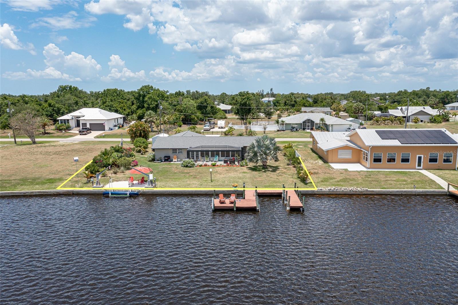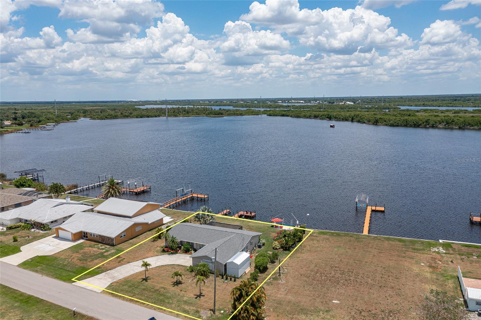 UPDATED, 3 BED/2 BATH, WATERFRONT HOME IN HARBOUR HEIGHTS ALONG THE PEACE RIVER W/ ***NEW ROOF***, ***104 FT OF WATER FRONTAGE*** & EXCEPTIONAL WATER VIEWS OF WHIDDEN BAY - This 3 bed/2 bath home has seen nearly every room recently updated. The result is a light & bright, renovated waterfront residence w/a contemporary open floor plan & coastal vibes throughout. The layout includes an open concept living room, kitchen & Florida room. The kitchen boasts stainless steel appliances, a mix of quartz & butcher block counters w/a breakfast bar & designer pendant lighting plus solid wood cabinetry. Large picture windows in the Florida room & master bedroom overlook the spectacular view. Other architectural details include tile flooring throughout w/beautiful Mexican tile in the Florida room, shiplap accent wall, and modern ceiling fans. The spacious master suite has an oversized walk-in closet, a spa-like master bath w/LED lighted mirror & glass-enclosed shower. The split bedroom floor plan features two large guest rooms. A French door opens to the screened patio. Picture frame screens on the patio ensure a pest-free, unobstructed view. Enjoy gorgeous sunrises over Whidden Bay. LONG LIST OF UPDATES including NEW roof, ALL NEW stainless-steel appliances, NEW water heater, NEW electrical wiring w/new electrical box & wiring from street to home, NEW PEX plumbing throughout, NEW impact garage door, & NEW shed. Other amenities include whole-house hurricane protection that includes electric & manual roll down shutters plus an oversized, attached, 2-car garage w/workshop & adjacent shed. Well-maintained, tropical landscaping surrounds the home creating the feeling of a private oasis. A small sandy beach has been created between the davits meanwhile a two-pronged wooden dock is just waiting to host your boat, kayak, wave runner or paddleboard. Let your maritime adventures begin from your backyard & start living the Florida dream. You'll enjoy front row access to some of the best fishing & boating that SW Florida has to offer. Home is located on a VERY QUIET street. Harbour Heights boasts a nearby waterfront park w/playground, boat launch, tennis/pickle ball courts, basketball courts & picnic area. Seller has a transferrable NFIP flood policy with $3,187 annual payment. Make an appointment today.