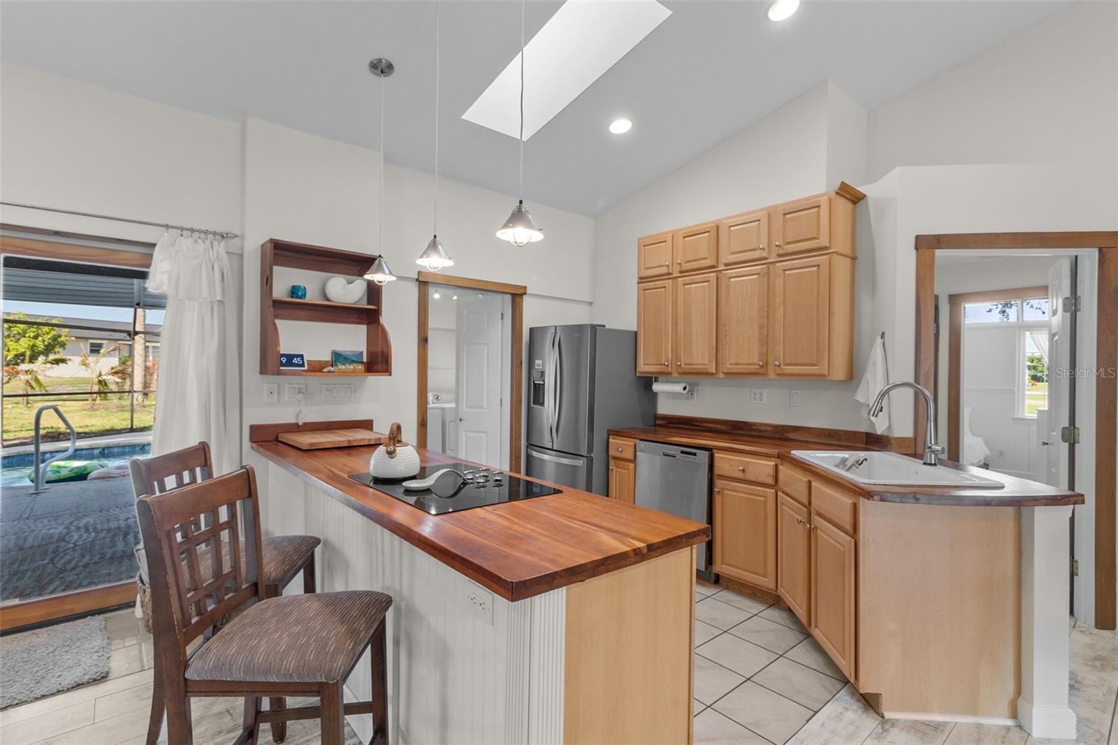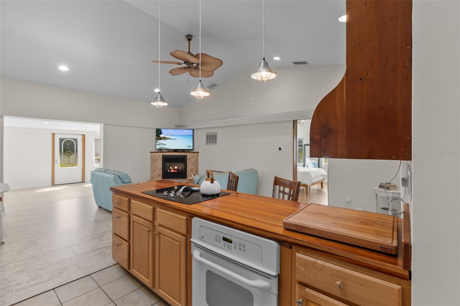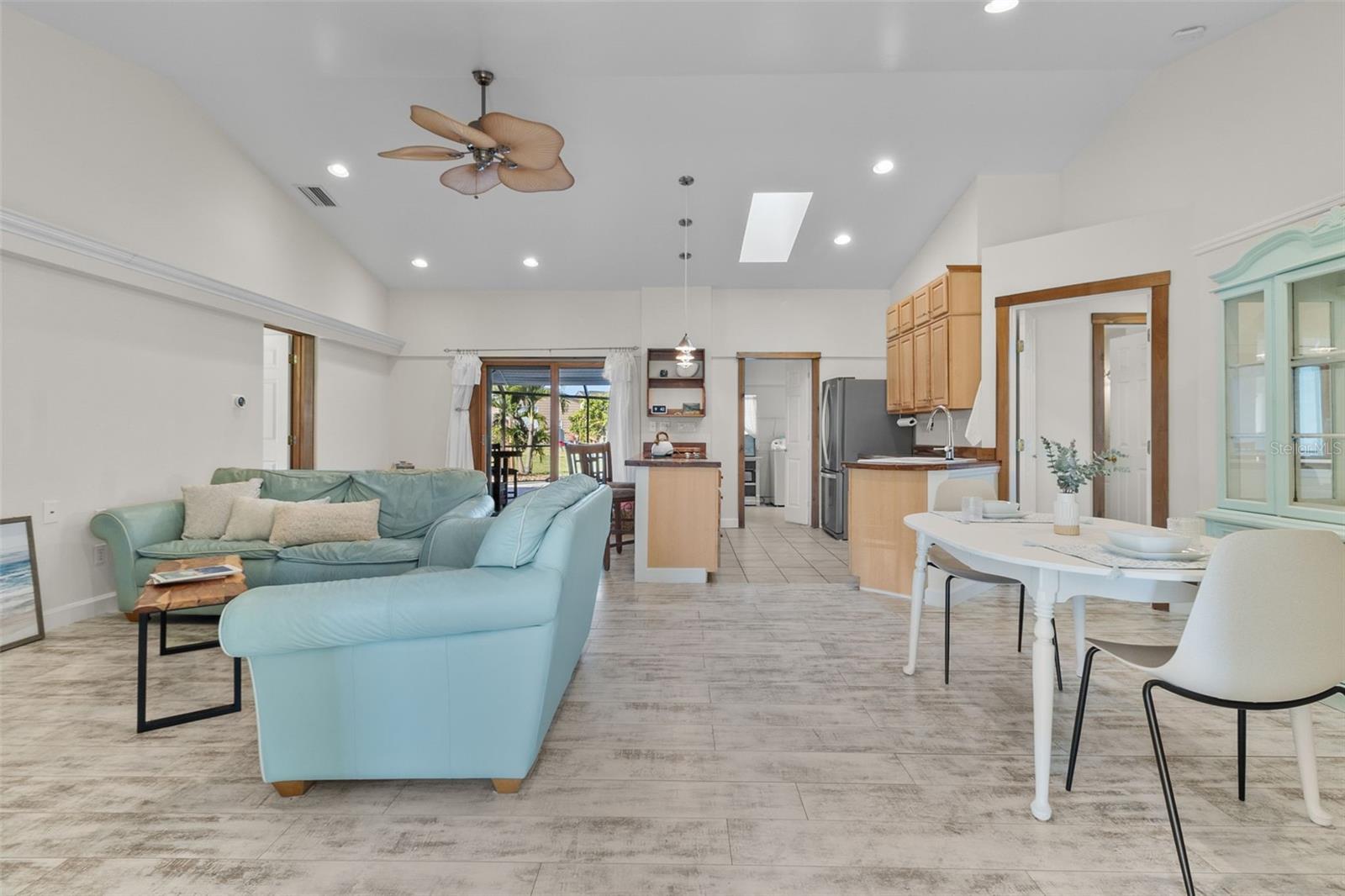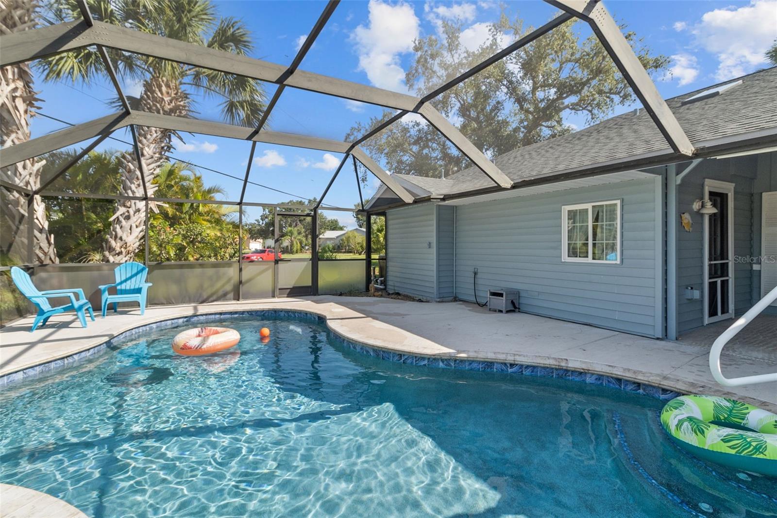 Embrace coastal charm in this delightful 3-bedroom, 2-bath Pool home in Punta Gorda, FL. Situated on an oversized corner lot with mature trees, this residence boasts an abundance of natural light throughout its open floor plan. Enjoy vaulted ceilings, a corner fireplace, and a sky-lit kitchen featuring wood cabinets and countertops. The primary bedroom is a serene retreat with exposed beams and an en-suite bathroom adorned with a stained-glass window, jetted bathtub, and shower. Bright guest bedrooms with high-set windows and a guest bathroom with a spacious walk-in tiled shower offer comfort for all. Additional features include a new roof (2023), newly resurfaced pool, sunroom, oversized laundry room, and smart thermostat. The lanai and pool area, featuring an outdoor shower, create an ideal space for entertaining and relaxation. Boaters will appreciate the private boat ramp access available for a small monthly fee, making it easy to explore the pristine waters of Charlotte Harbor. Just a 5-minute drive from downtown Punta Gorda and Fisherman's Village, offering a variety of dining, shopping, and entertainment options, this home perfectly combines comfort, style, and convenience, creating the ideal coastal lifestyle.