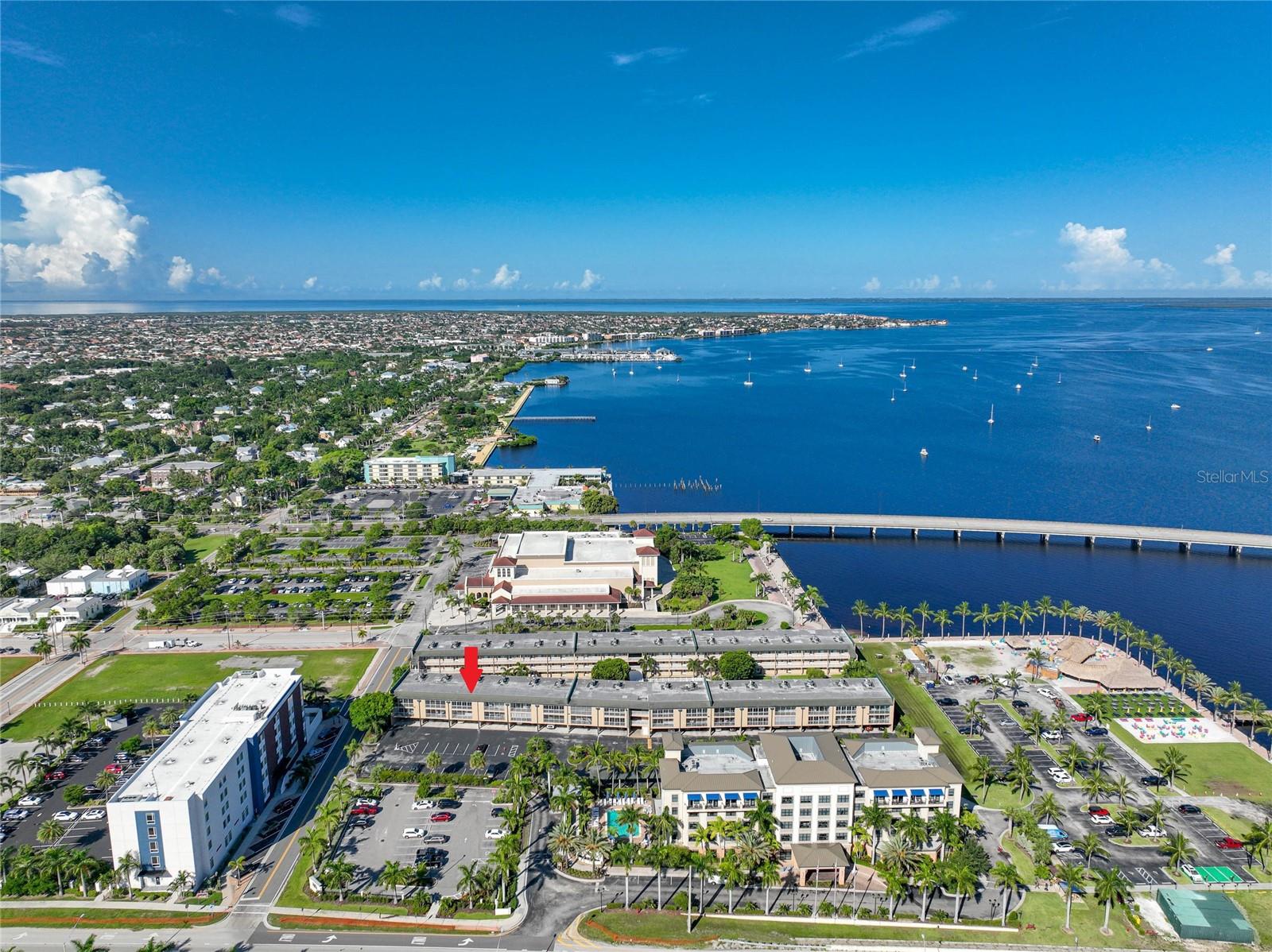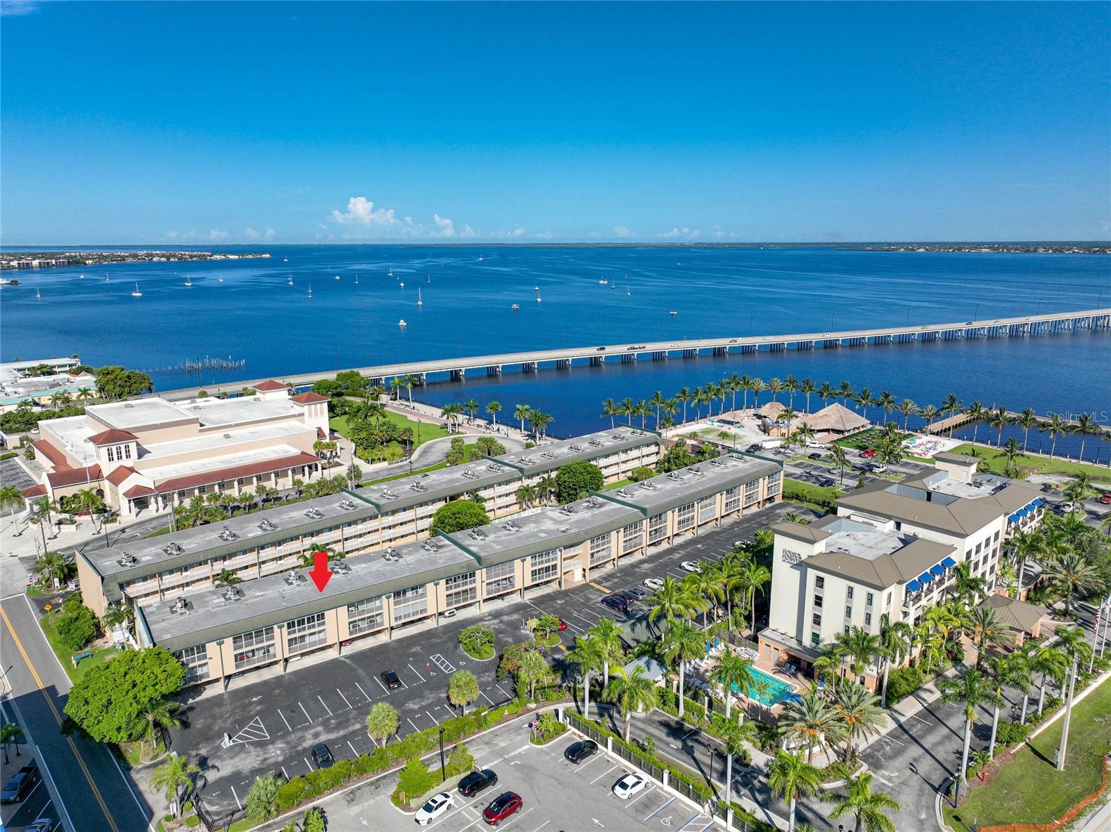 BEAUTIFULLY UPGRADED CHARLEVOI CONDO WITH FABULOUS, ONE-OF-A-KIND LOCATION IN THE HEART OF DOWNTOWN PUNTA GORDA! NO NEED TO FIND A PARKING SPOT ANYMORE – YOU’RE WITHIN A 5-10 MINUTE WALK OF ALL THE RESTAURANTS, ART GALLERIES, FESTIVALS, AND CONCERTS! AND IT’S LITERALLY A FEW STEPS TO THE EVER POPULAR TIKI BAR AND THE RENOWNED 2.4 MILE HARBORWALK! This lovely top floor 2 bedroom/2 bath condo has numerous extras & upgrades throughout. Fantastic, coastal inspired kitchen with granite countertops - breakfast bar - solid wood, furniture grade, washed oak cabinetry with dovetail construction & bead board cabinet doors - overhead glass cabinet doors - built-in lazy Susan - travertine tile backsplash - RO water filtration system - and deluxe fan/light fixture with Edison lights. You’ll love the spacious dining room with tile floors and a built-in bar with granite counter, beverage frig, glass backsplash, and custom shelving above. Both bathrooms have tall, long vanities with lots of storage space, and the master bath features a shower with heavy-weight smoked glass doors and a steam shower option. The 2nd bedroom is adorned with extensive built-ins, including a desk with overhead cabinetry and a beautiful Murphy bed wall system with numerous cabinets, drawers, and large bookcases that slide open to access the queen bed. One feature you won’t find very often is the generous amount of storage space featured in this lovely condo. There’s a large closet in the living room/dining room area; the master bedroom features a nice- sized walk-in closet with custom built-in drawers, shelves and hanging racks – plus, there’s another closet on the other side of the bedroom. The lanai features a large closet with built-in shelving, and there’s even attic access from the 2nd bedroom to a large floored area in the attic that accommodates lots of additional storage - a unique feature only available with top floor units! Numerous other extras & upgrades – hurricane impact windows and sliders; enclosed lanai with acrylic sliding windows, ceiling fan, and electric roll-down storm shutters; high-end custom window treatments, including valances, drapes, sheers, and Hunter Douglas honeycomb blackout shades in kitchen and both bedrooms; numerous dimmer switches throughout, and much more! New Roof installed in 2024. THIS UNIT COMES WITH A DEEDED CARPORT AND ASSIGNED PARKING SPACE 314. PLEASE NOTE: This is a 55+ community. No pets. No LLCs. You must own your unit for 2 years before you can rent it. There is a 6 month minimum rental term. This unit is being sold as is/where is. ENJOY THE 360 VIRTUAL TOUR THAT WALKS YOU THROUGH ALL ROOMS! DON’T WAIT TO SEE THIS LOVELY CONDO! INVEST IN YOUR FUTURE WHILE PRICES IN THIS FABULOUS DOWNTOWN LOCATION ARE STILL THIS AFFORDABLE!