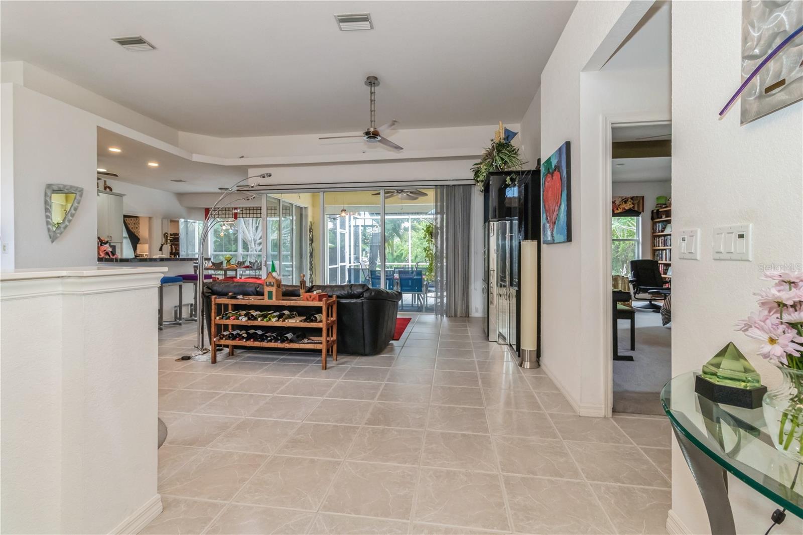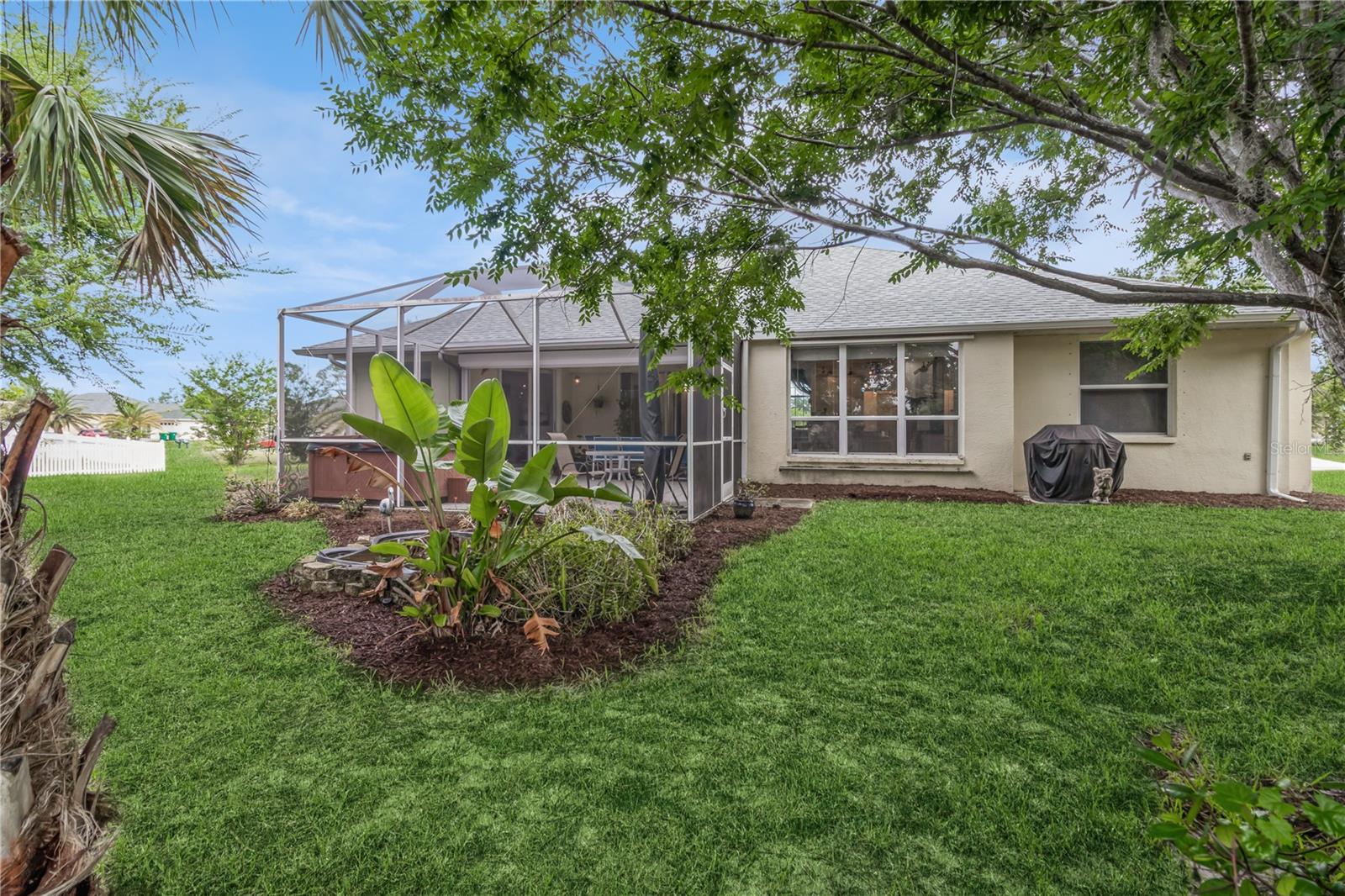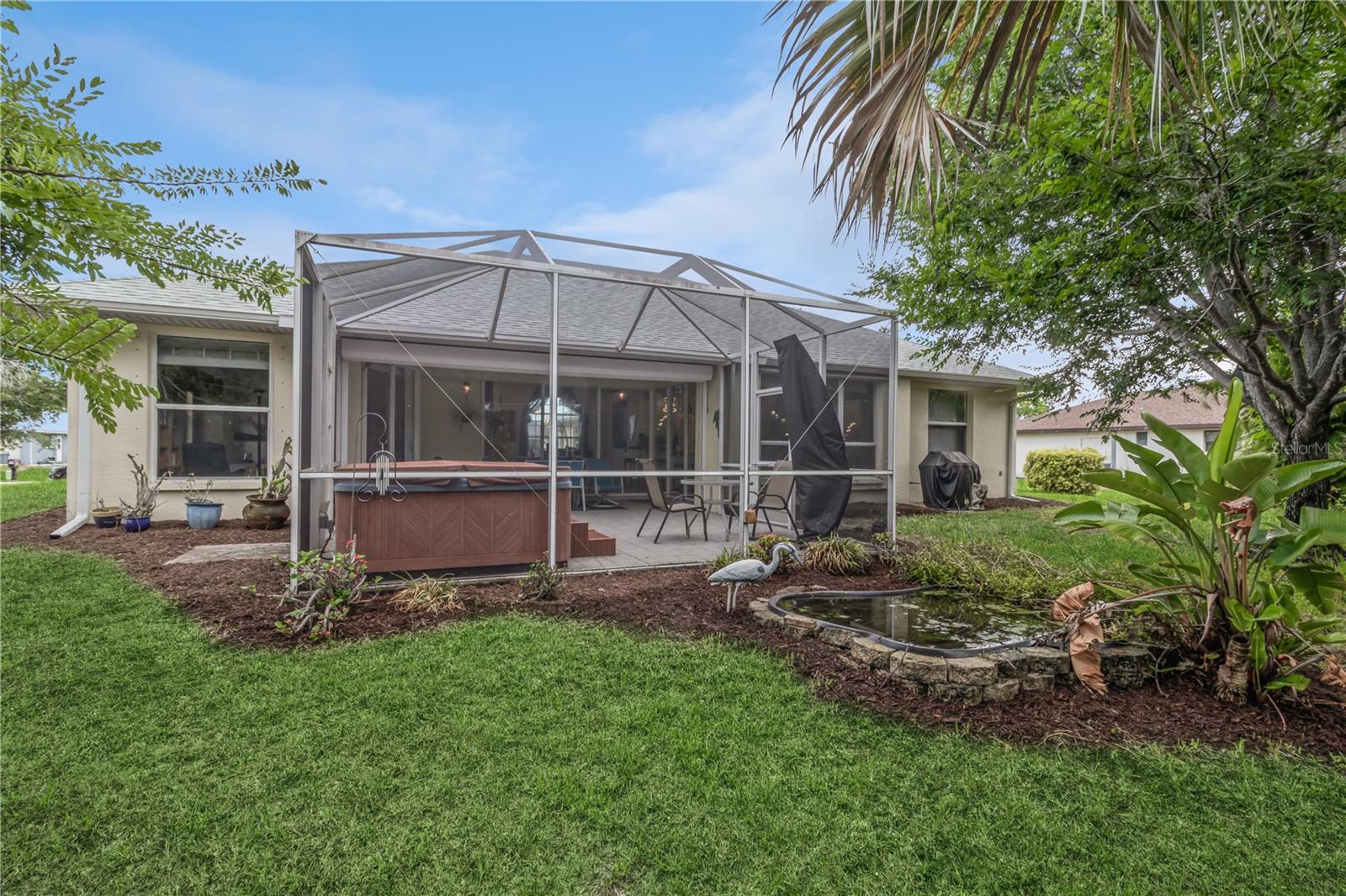 Price Improvement!!!! Welcome to your new horizon! This exquisite property boasts an open concept design with seamless indoor-outdoor living, highlighted by zero-corner sliding doors that invite the beauty of the private backyard into multiple rooms. Enjoy a spacious and airy layout perfect for modern living. Relax in your tranquil oasis featuring a spa tub on a spacious lanai, a serene fishpond, and a well-maintained, oversized lot. Upgraded cabinetry throughout the home adds elegance, architectural interest and ample storage. The owners have added a buried propane tank in the yard that powers a tankless water heater, gas stove, and gas grill, perfect for culinary enthusiasts. Your new home includes a shed with air conditioning and running water, ideal for a workshop or hobby space and is situated in a peaceful area, offering a serene and private lifestyle. Lovingly cared for by the original owners, ensuring excellent condition and move-in readiness. New roof in 2023 and flood zone X keep you safe and dry! This property offers the perfect blend of luxury, comfort, and functionality. Don't miss the opportunity to make this exceptional home yours!