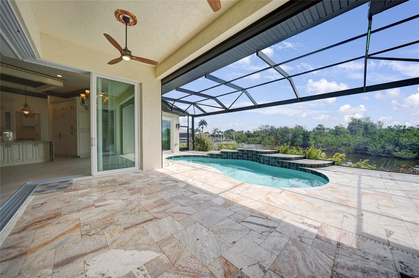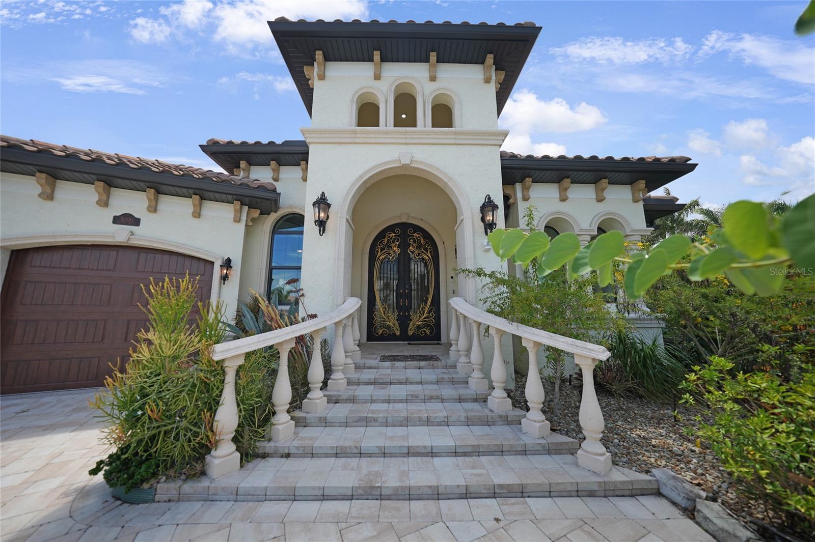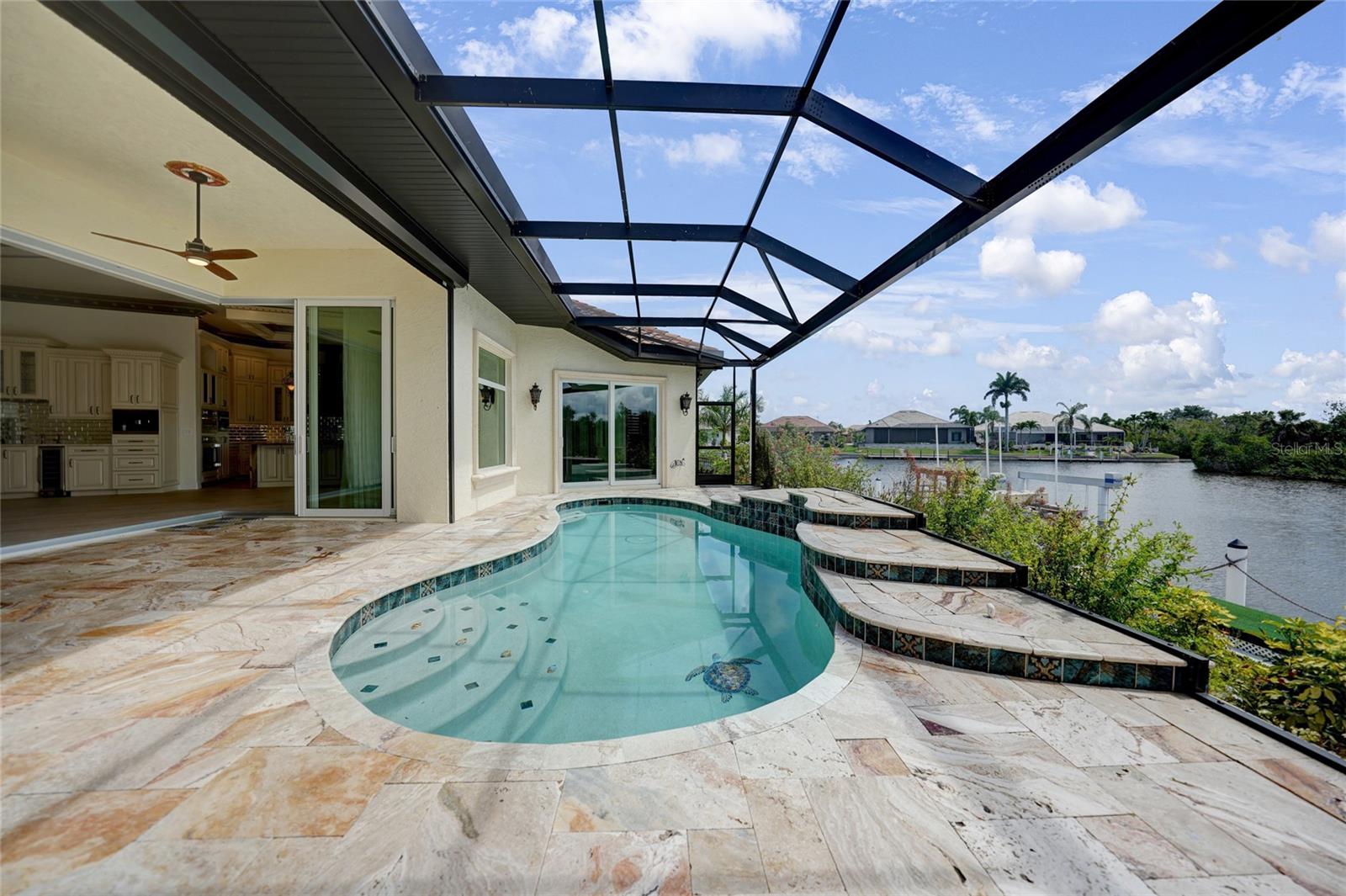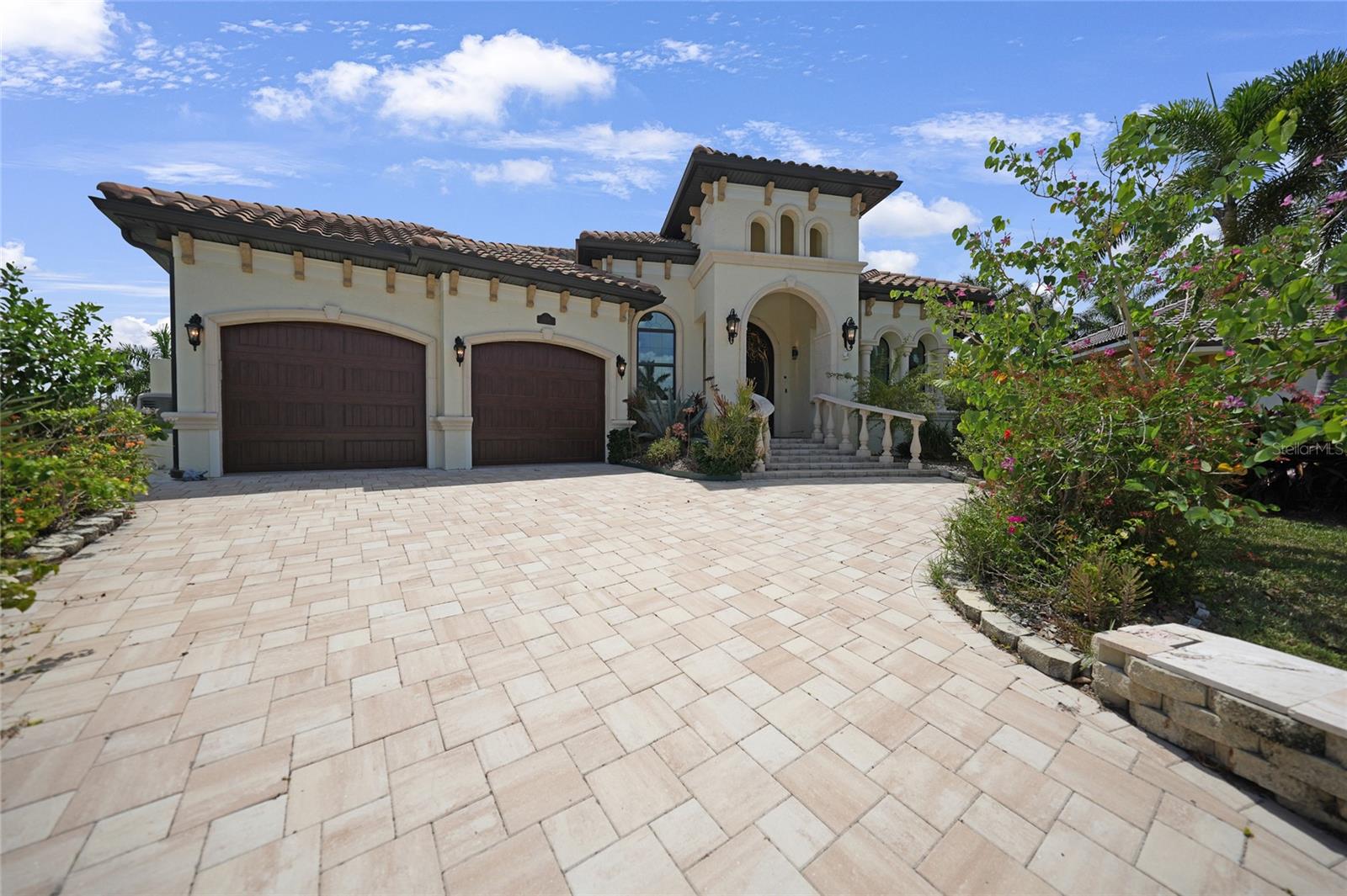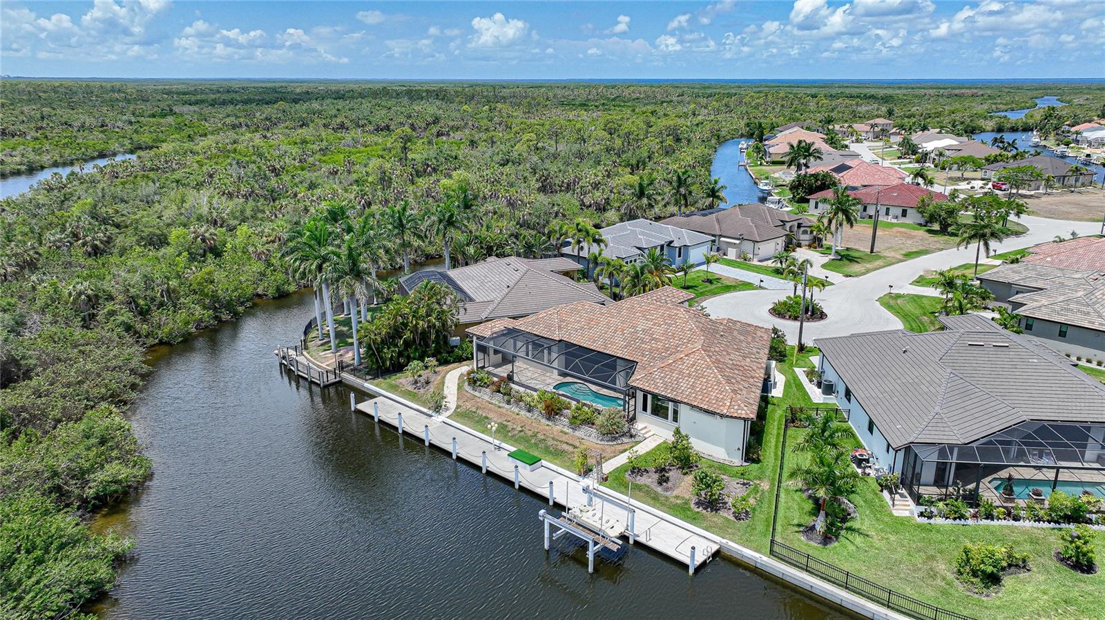 Live the dream in this magnificent waterfront estate, situated on a key lot in Punta Gorda's Burnt Store Isles golfing and boating community. Unwind in unparalleled luxury. This 2,709 sq ft haven offers a split floor plan of 3 bedrooms, 3 baths, dual lavish primary suites, and a chef’s kitchen, all with water and nature preserve views. The spacious chef’s kitchen is enhanced with top-tier Thermador and Meile appliances, solid wood cabinets, a gas range with a handcrafted commercial-grade copper hood, three ovens, and an artisan copper and verdigris sink. Dine in the dining area or at the stunning waterfall island, and take in the expansive zero-corner water views. Each primary suite features waterfront views, spacious closets, and opulent en suite bathrooms. With hand-carved sinks and sumptuous bathing areas, one suite’s Roman shower enclosure is highlighted by a bespoke carved glass surround. On sailboat water with access to Charlotte Harbor and the Gulf of Mexico, the key lot offers 140 feet of frontage and a 120-foot tile dock with a 20,000 lb. lift. Entertain in the outdoor kitchen or relax by the pool while nature surrounds appreciate the waterfowl, manatees, and the serene beauty of the water and nature preserve. Drive down the cul-de-sac to the whimsical Louis Vuitton octopus mailbox. The entire home boasts soaring 12 to 14-foot ceilings. Enjoy year-round comfort with a 20K generator with a 500-gallon fuel tank, hurricane protection, reverse-osmosis water filtration, and four-zone air conditioning – including the oversized garage. Make an appointment today to see this incredible home.