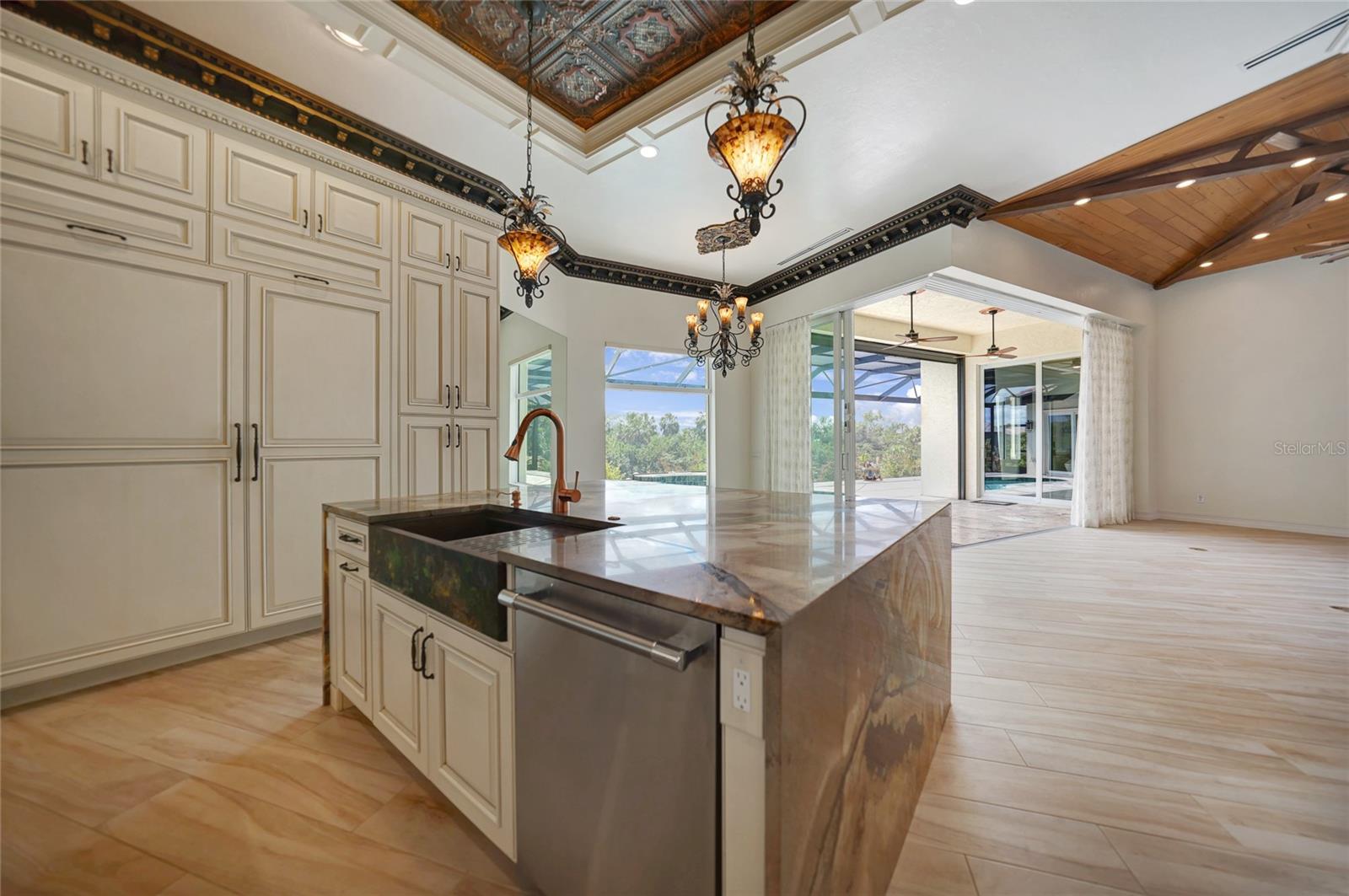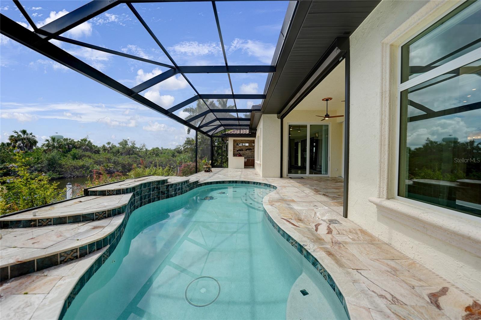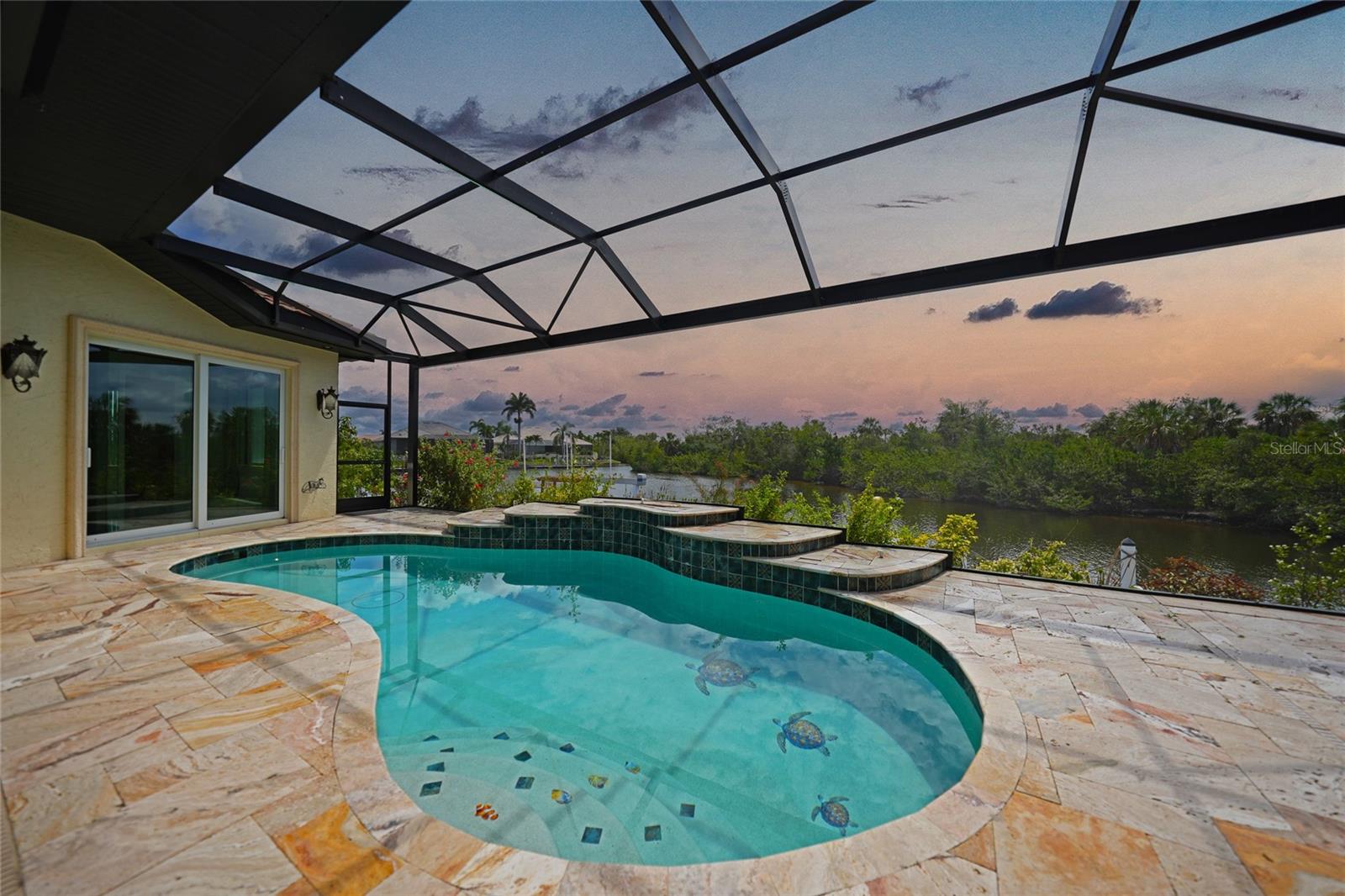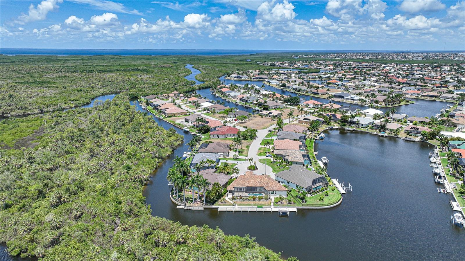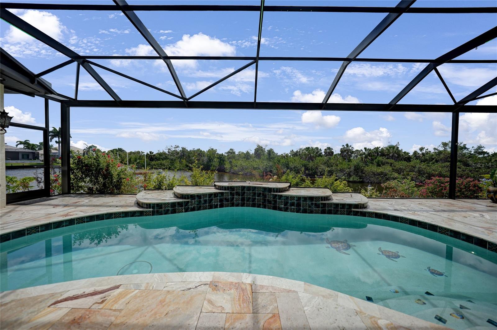 Live the dream in this magnificent waterfront estate, situated on a key lot in Punta Gorda's Burnt Store Isles golfing and boating community. Unwind in unparalleled luxury. This 2,709 sq ft haven offers a split floor plan of 3 bedrooms, 3 baths, dual lavish primary suites, and a chef’s kitchen, all with water and nature preserve views. The spacious chef’s kitchen is enhanced with top-tier Thermador and Meile appliances, solid wood cabinets, a gas range with a handcrafted commercial-grade copper hood, three ovens, and an artisan copper and verdigris sink. Dine in the dining area or at the stunning waterfall island, and take in the expansive zero-corner water views. Each primary suite features waterfront views, spacious closets, and opulent en suite bathrooms. With hand-carved sinks and sumptuous bathing areas, one suite’s Roman shower enclosure is highlighted by a bespoke carved glass surround. On sailboat water with access to Charlotte Harbor and the Gulf of Mexico, the key lot offers 140 feet of frontage and a 120-foot tile dock with a 20,000 lb. lift. Entertain in the outdoor kitchen or relax by the pool while nature surrounds appreciate the waterfowl, manatees, and the serene beauty of the water and nature preserve. Drive down the cul-de-sac to the whimsical Louis Vuitton octopus mailbox. The entire home boasts soaring 12 to 14-foot ceilings. Enjoy year-round comfort with a 20K generator with a 500-gallon fuel tank, hurricane protection, reverse-osmosis water filtration, and four-zone air conditioning – including the oversized garage. Make an appointment today to see this incredible home.