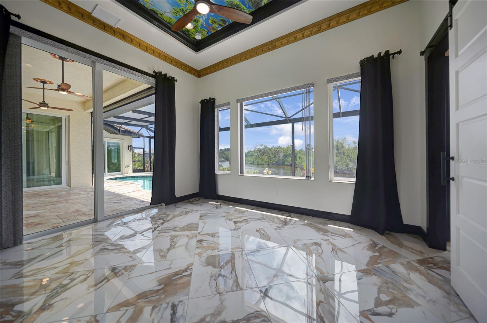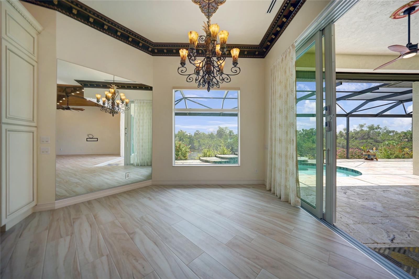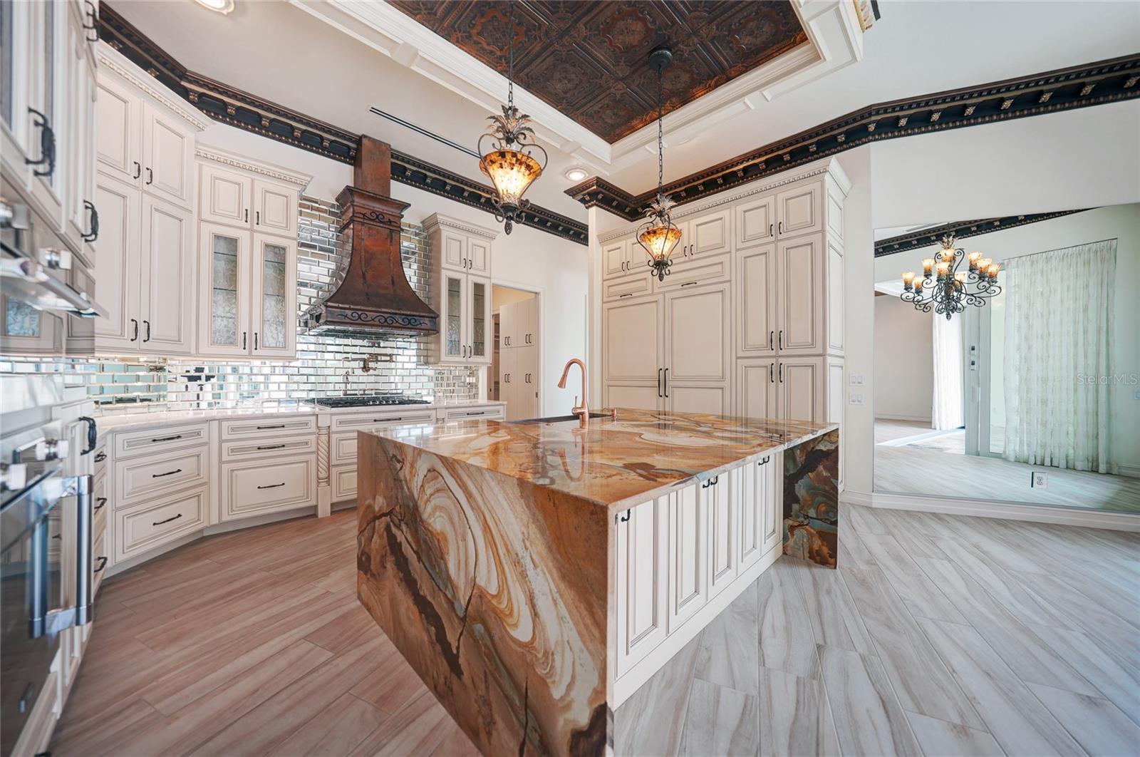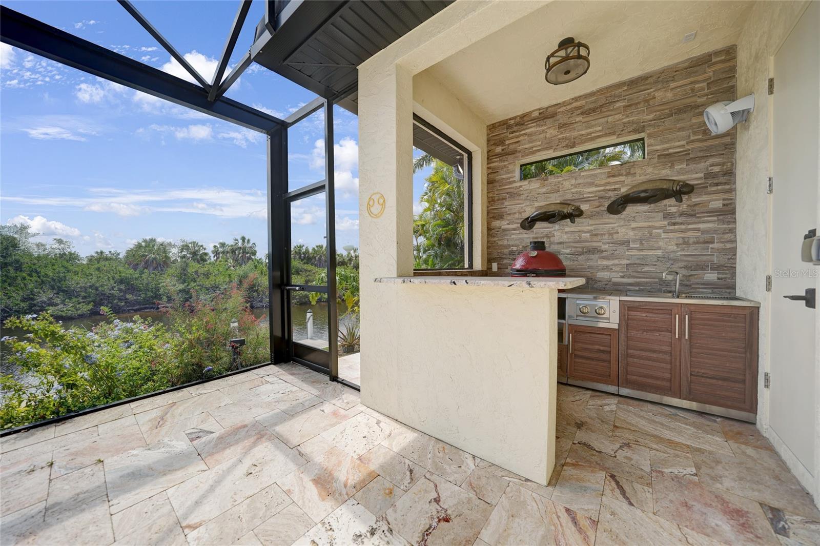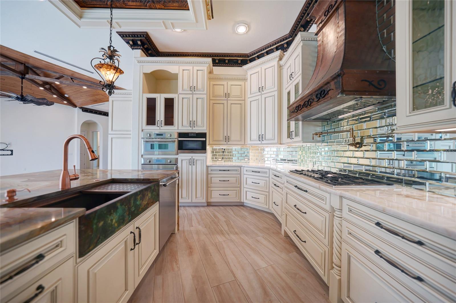 Live the dream in this magnificent waterfront estate, situated on a key lot in Punta Gorda's Burnt Store Isles golfing and boating community. Unwind in unparalleled luxury. This 2,709 sq ft haven offers a split floor plan of 3 bedrooms, 3 baths, dual lavish primary suites, and a chef’s kitchen, all with water and nature preserve views. The spacious chef’s kitchen is enhanced with top-tier Thermador and Meile appliances, solid wood cabinets, a gas range with a handcrafted commercial-grade copper hood, three ovens, and an artisan copper and verdigris sink. Dine in the dining area or at the stunning waterfall island, and take in the expansive zero-corner water views. Each primary suite features waterfront views, spacious closets, and opulent en suite bathrooms. With hand-carved sinks and sumptuous bathing areas, one suite’s Roman shower enclosure is highlighted by a bespoke carved glass surround. On sailboat water with access to Charlotte Harbor and the Gulf of Mexico, the key lot offers 140 feet of frontage and a 120-foot tile dock with a 20,000 lb. lift. Entertain in the outdoor kitchen or relax by the pool while nature surrounds appreciate the waterfowl, manatees, and the serene beauty of the water and nature preserve. Drive down the cul-de-sac to the whimsical Louis Vuitton octopus mailbox. The entire home boasts soaring 12 to 14-foot ceilings. Enjoy year-round comfort with a 20K generator with a 500-gallon fuel tank, hurricane protection, reverse-osmosis water filtration, and four-zone air conditioning – including the oversized garage. Make an appointment today to see this incredible home.