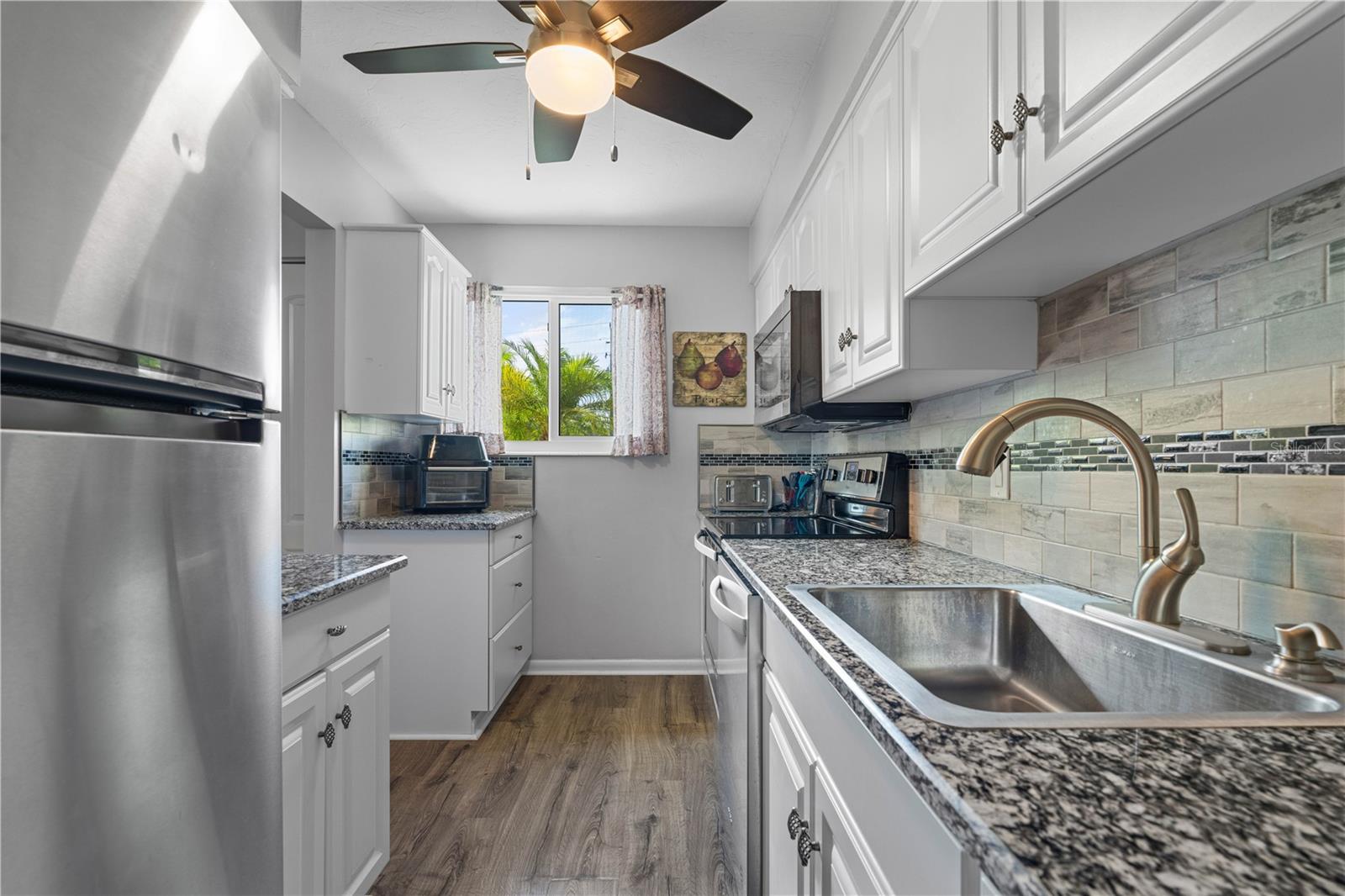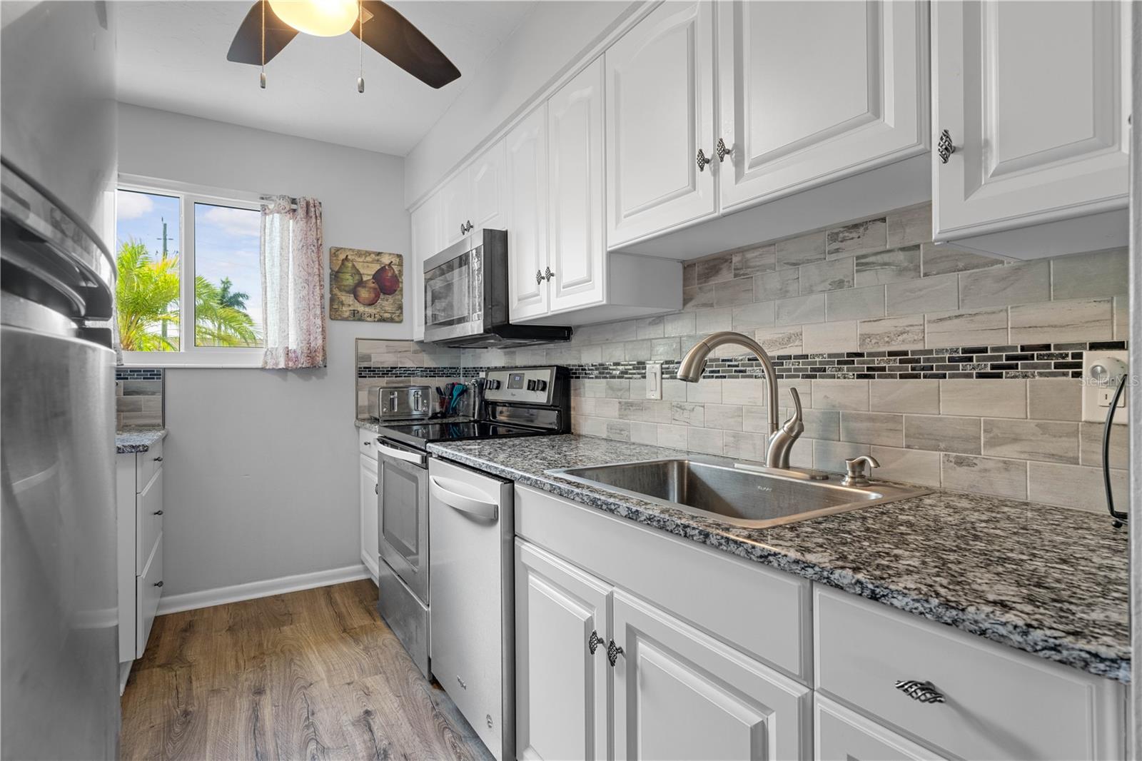 LOCATION, LOCATION, LOCATION! This updated townhome w/full hurricane protection is your gateway to paradise. The condo boasts impact-resistant doors & windows. It's perfect for downsizing full-time residents, snowbirds or investors! Inside, the unit offers a main floor entertaining area & a 2nd floor w/two large bedrooms. Luxury vinyl plank flooring is found throughout the home. Large combined living/dining area opens to a screened lanai extending the living space outside. The kitchen has been elegantly updated w/granite counters, modern subway tile backsplash & stainless steel appliances. A half bath completes the downstairs. Upstairs, the two bedrooms feature large closets. One guest room has a built-in bookshelf for additional storage space. Recent updates include NEW luxury vinyl plank flooring upstairs (2022), NEW impact-resistant windows & sliders (2022) & new water heater (2023). Discover why Punta Gorda is often named as one of the best small towns in Florida. Enjoy being walking distance to Fishermen's Village, Visual Arts Center, the Hounds on Henry Dog Park, History Park, & the Punta Gorda library, plus the entrances to TWO of the Punta Gorda Pathways walking/biking trails are on either side of the condo parking lot - reach either Harbor Walk or Linear Park walkways. Harborwalk leads you through Gilchrist Park to the historic downtown area or simply stroll down Marion Ave directly into downtown. Meanwhile, Linear Park trail leads you past an array of built-in exercise machines to incorporate into your walk. Miles of sidewalks & trails allow you to live an active lifestyle. Well-run condo association is pet & leasing friendly (w/min 1 month lease). Association offers a shared laundry room along w/communal storage area (at back of laundry room). HOA fee includes lawn/landscape maintenance, manager, water/sewer/trash, pest-control & insurance. Make an appointment today. You won't be disappointed.
