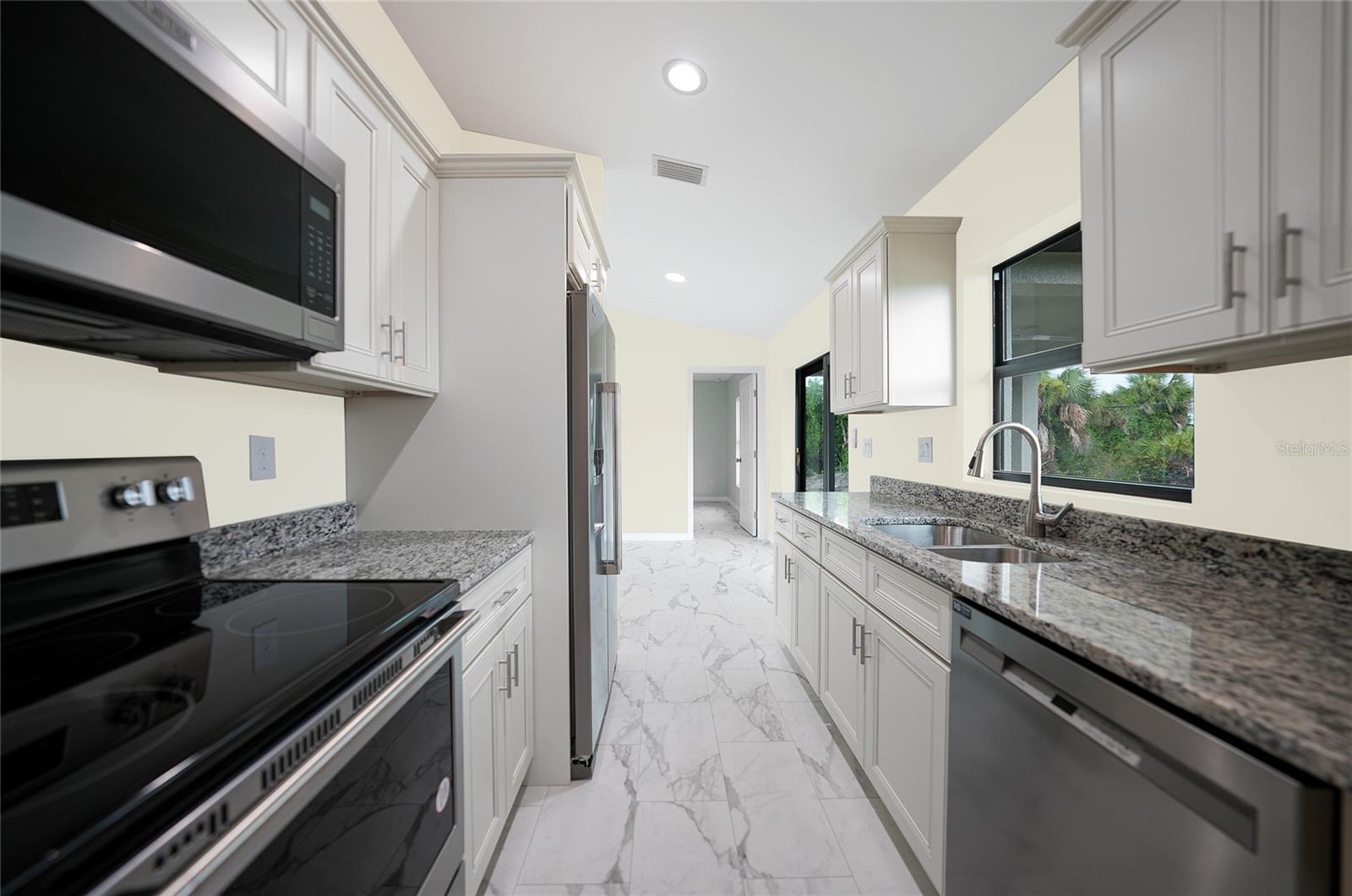 Pre-Construction. To be built. Brand New Pre-Construction - Completion in 6 Months! Move into your new home by year-end. These pre-construction homes offer the complete package: two bedrooms, two baths, a one-car garage, and a covered lanai. The builder's meticulous attention to detail is evident in every aspect, from impact-resistant windows and doors to recessed LED lighting and ceiling fans in all living areas and bedrooms. Enjoy luxury vinyl flooring throughout and stainless steel kitchen appliances. Each home features a split floor plan with a private owner's suite and guest accommodations. The living and dining areas boast vaulted ceilings, enhancing the spacious feel. Buyers can personalize their homes by choosing granite countertops, cabinet styles, flooring, and paint colors upon signing the contract with the builder. Conveniently located in Charlotte Park, just minutes from downtown Punta Gorda, these homes are eligible for conventional, FHA, and VA financing. The photos provided are of a previous build of this exact model, showcasing what will be constructed on site. Detailed building and floor plans are available in the attachments.